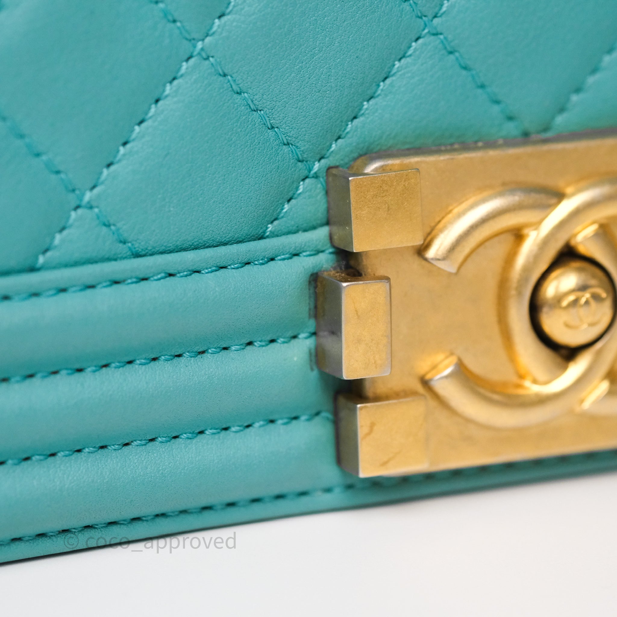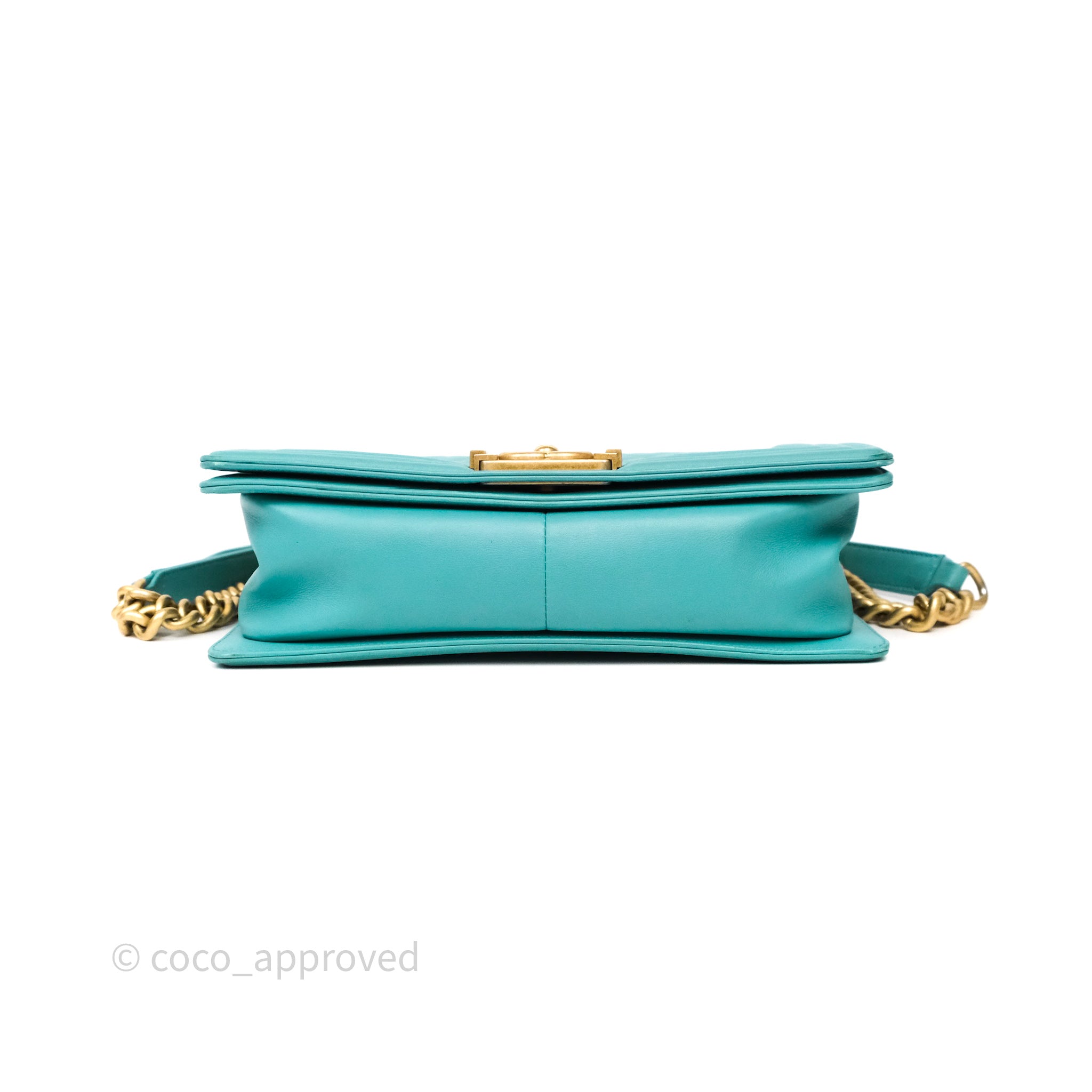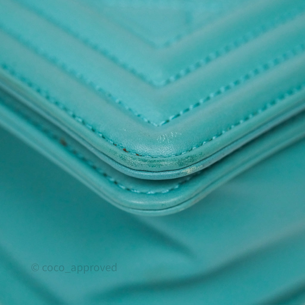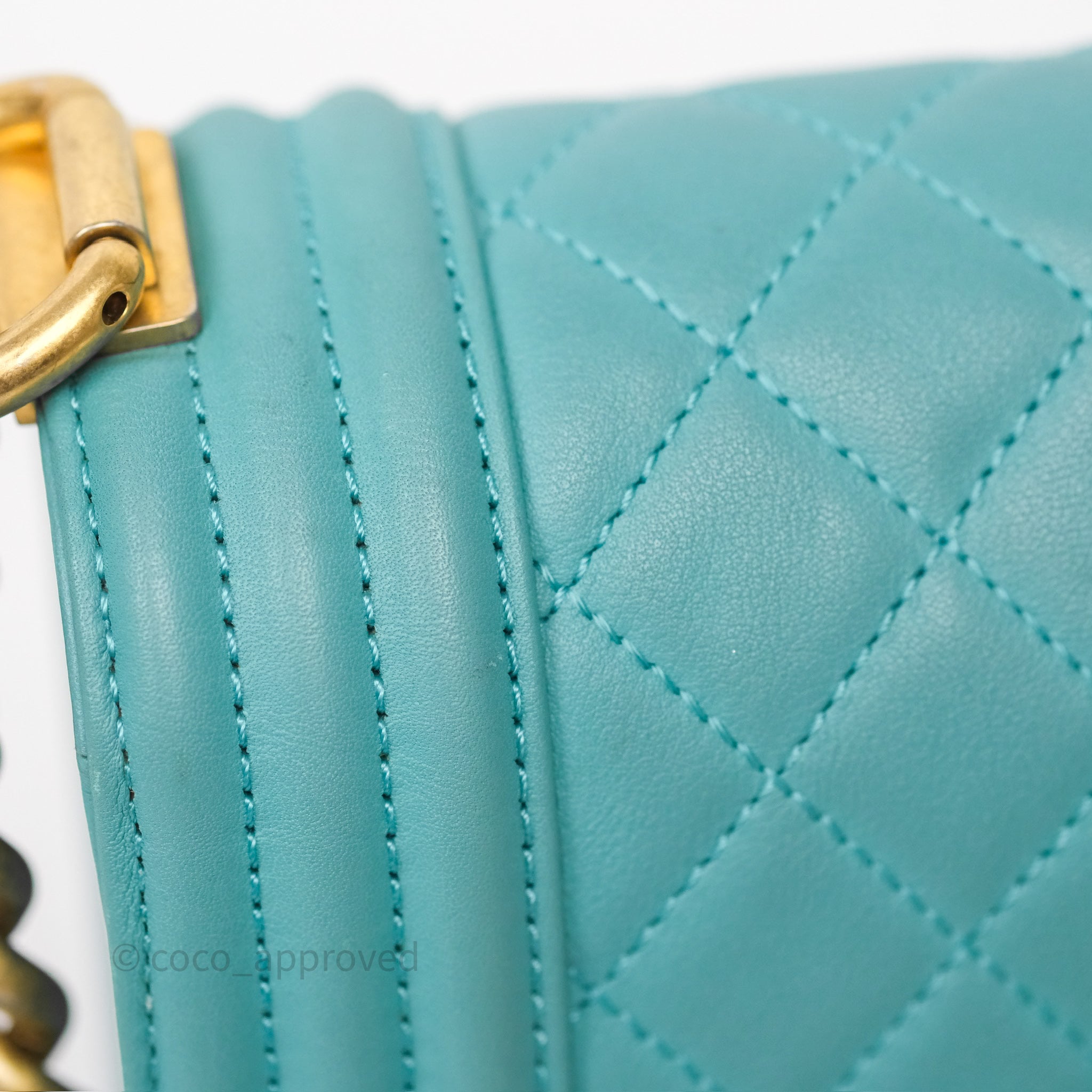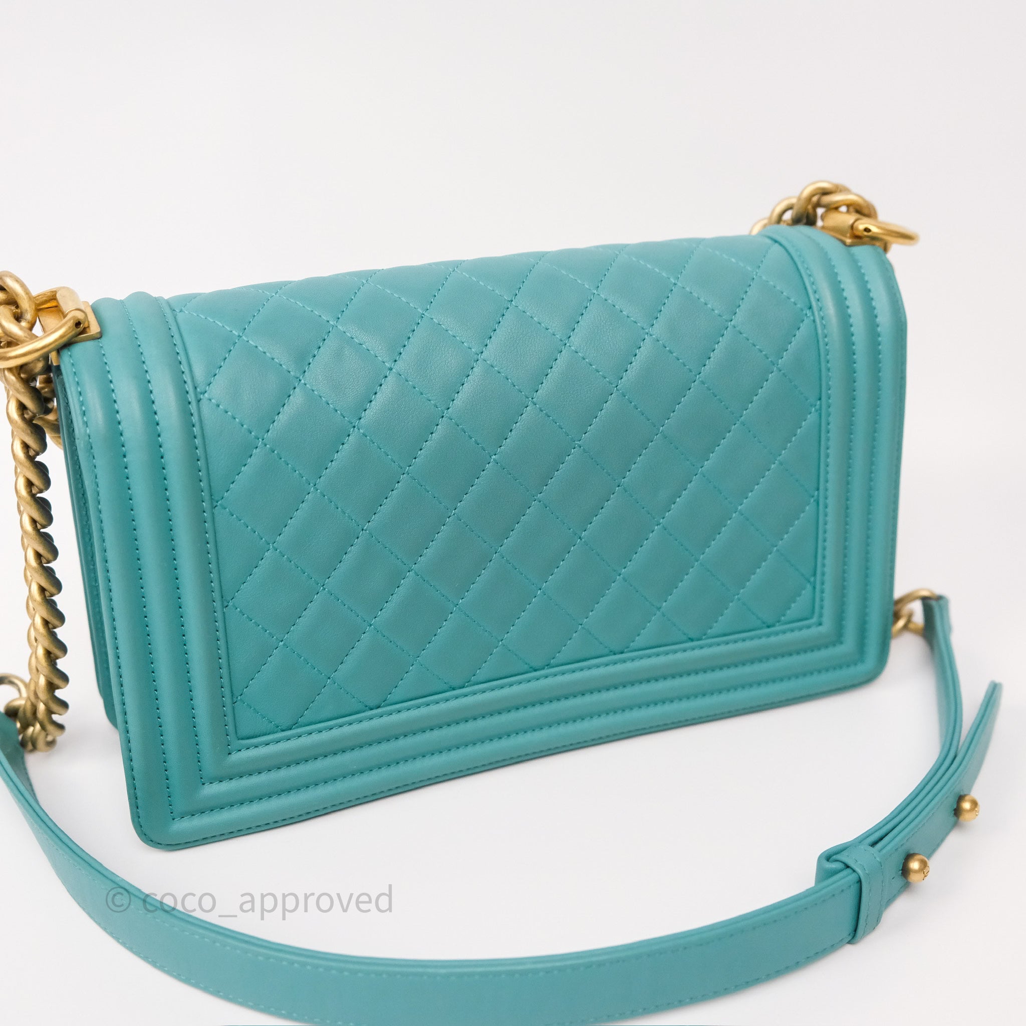 Chanel Medium Boy Quilted Turquoise Calfskin Aged Gold Hardware