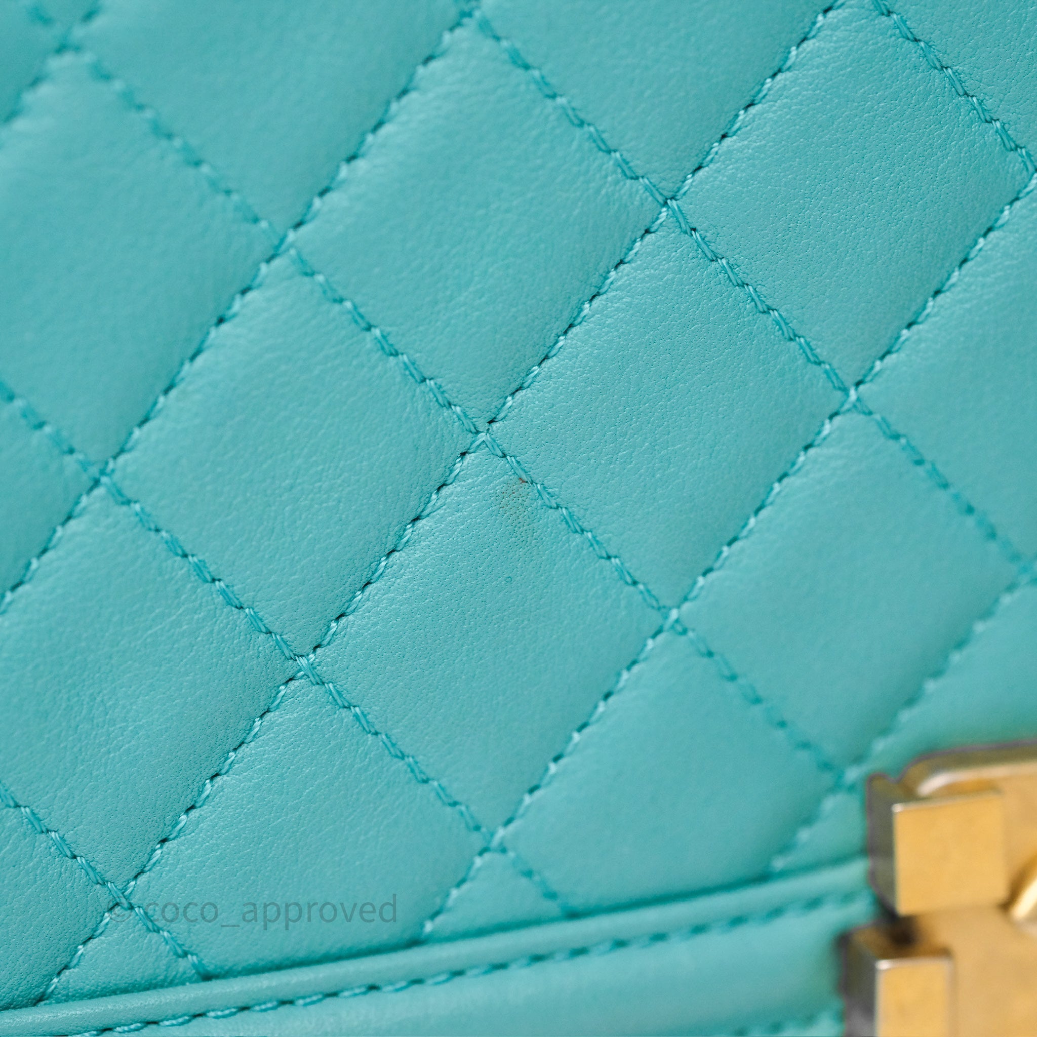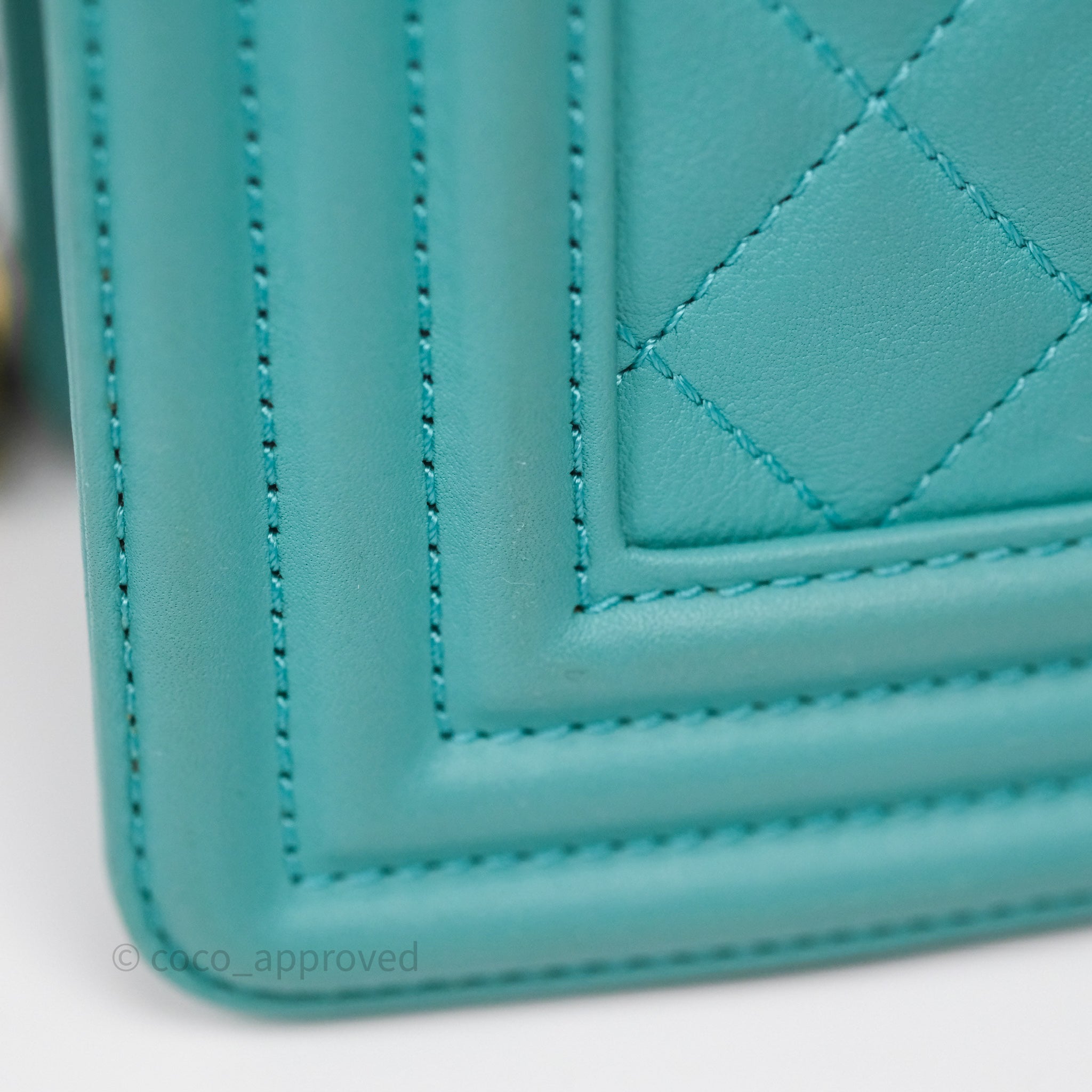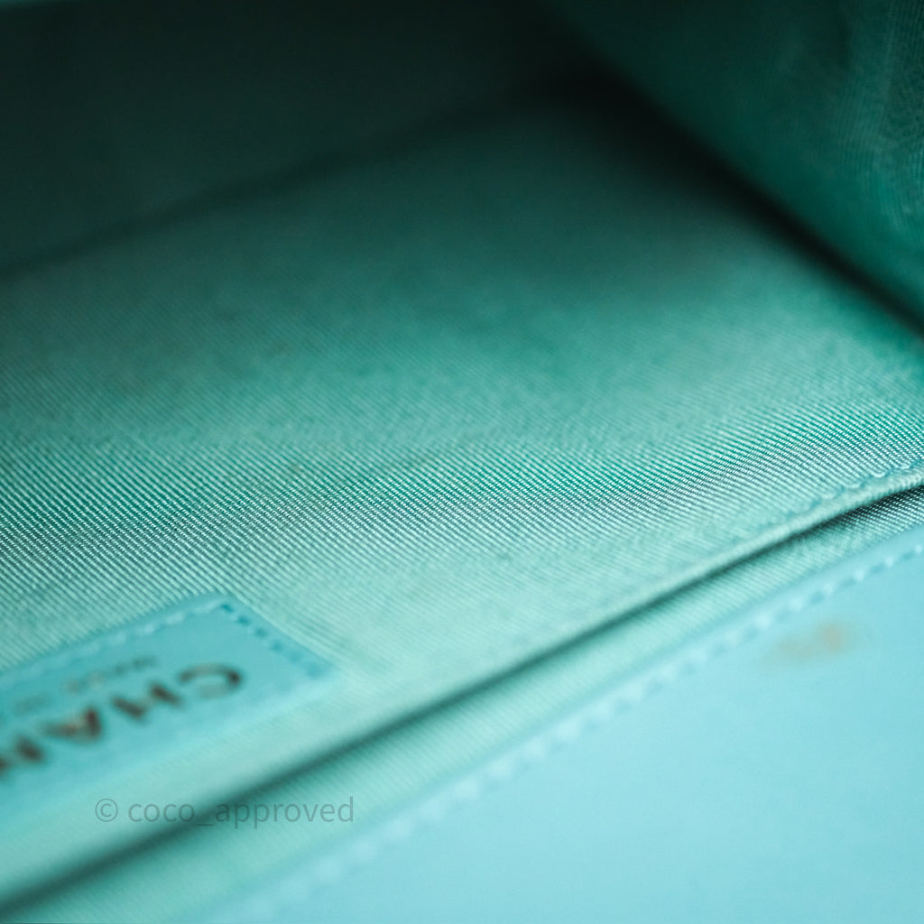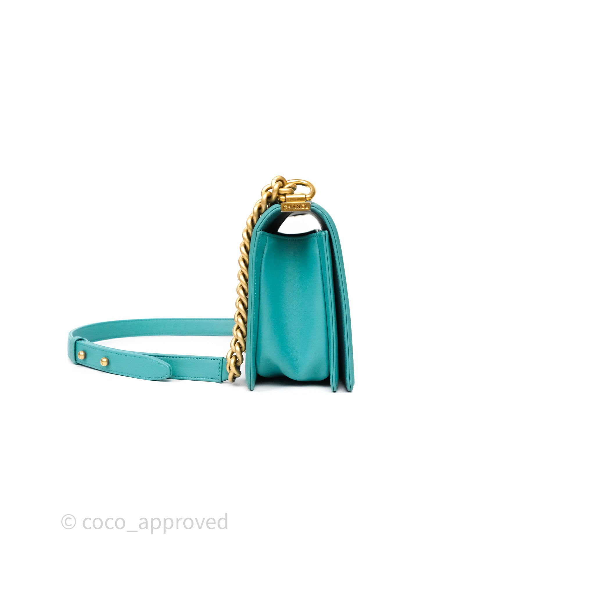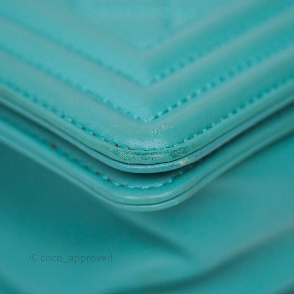 Chanel Medium Boy Quilted Turquoise Calfskin Aged Gold Hardware