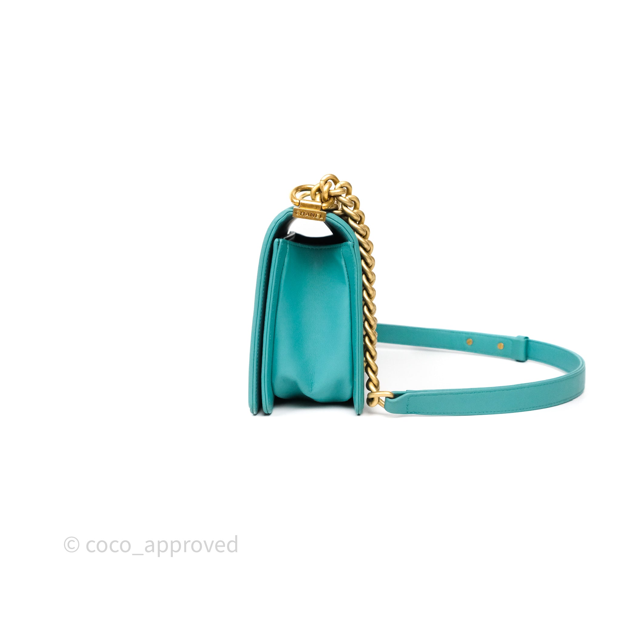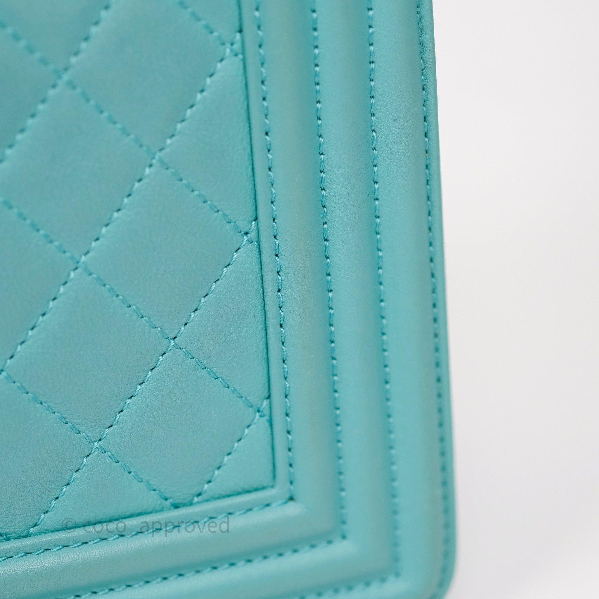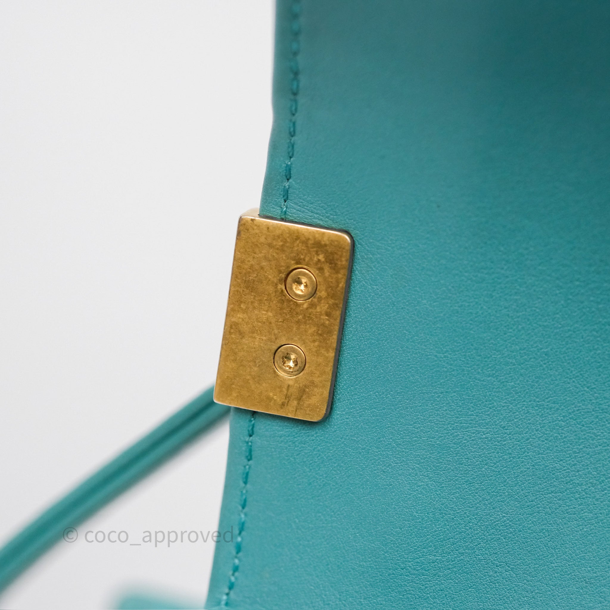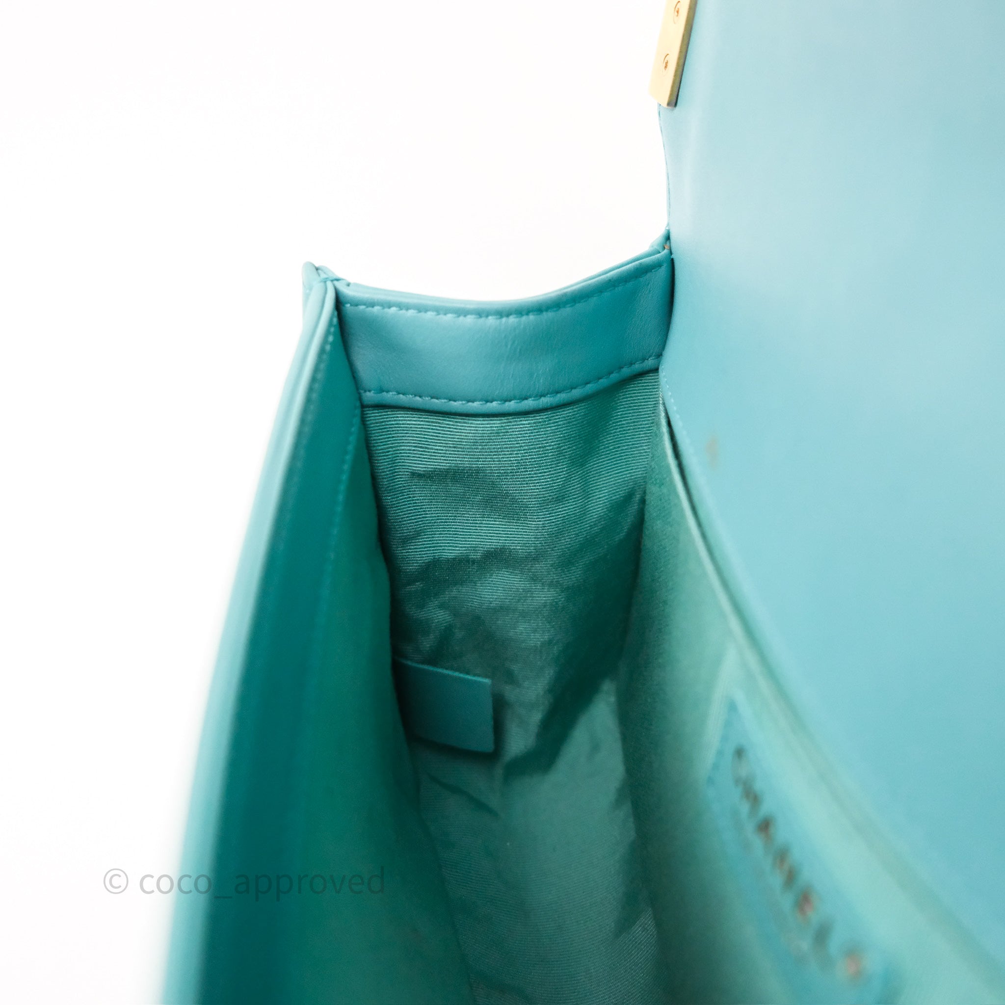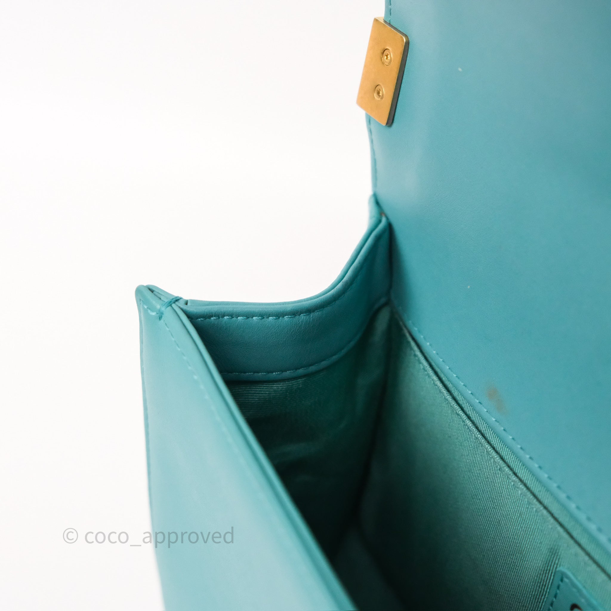 Chanel Medium Boy Quilted Turquoise Calfskin Aged Gold Hardware