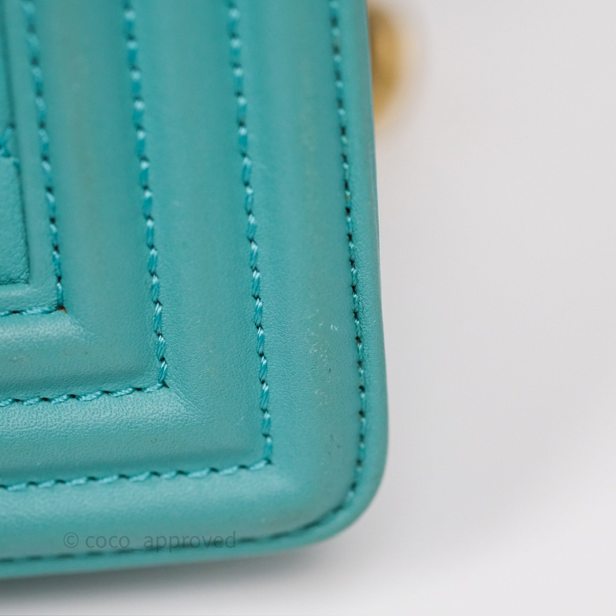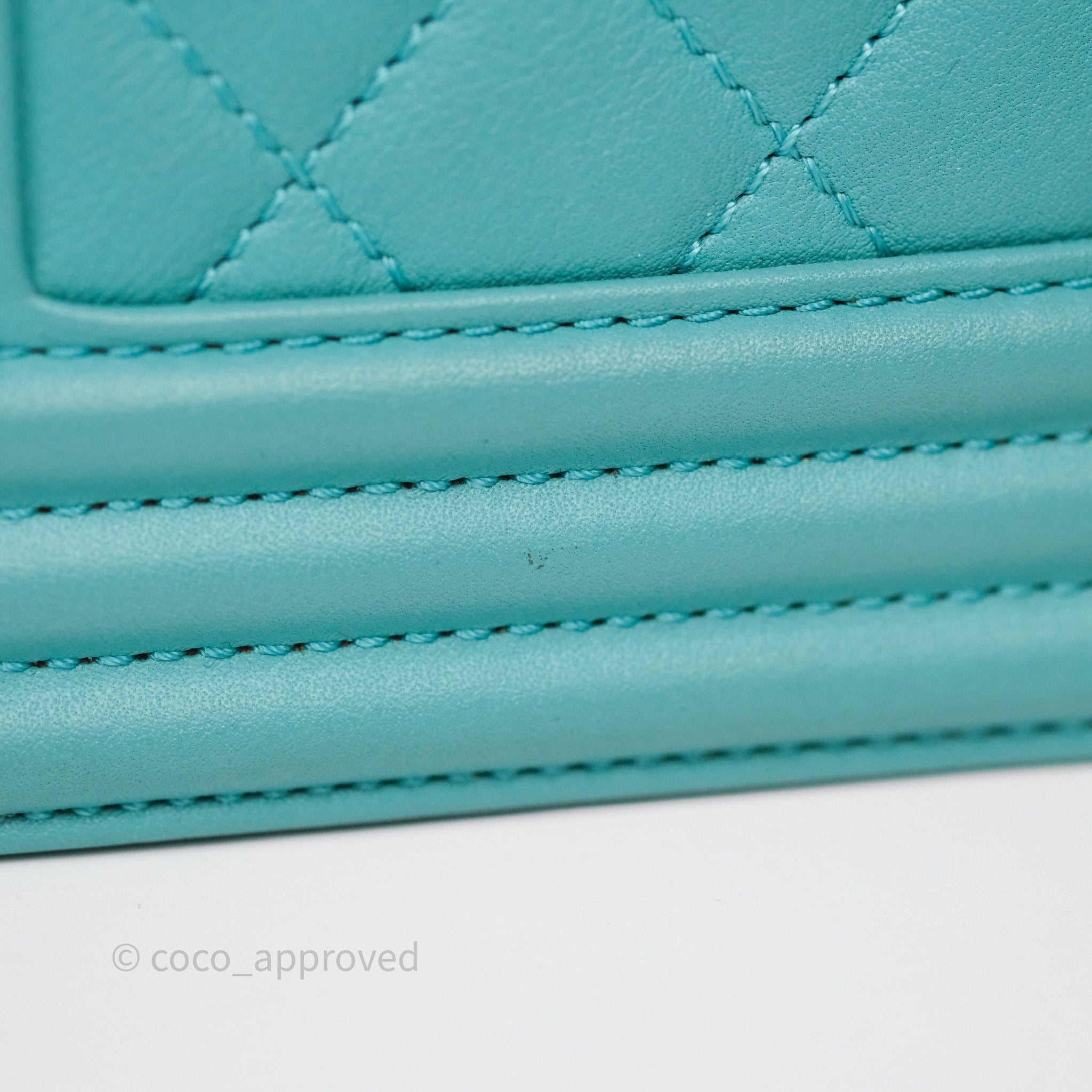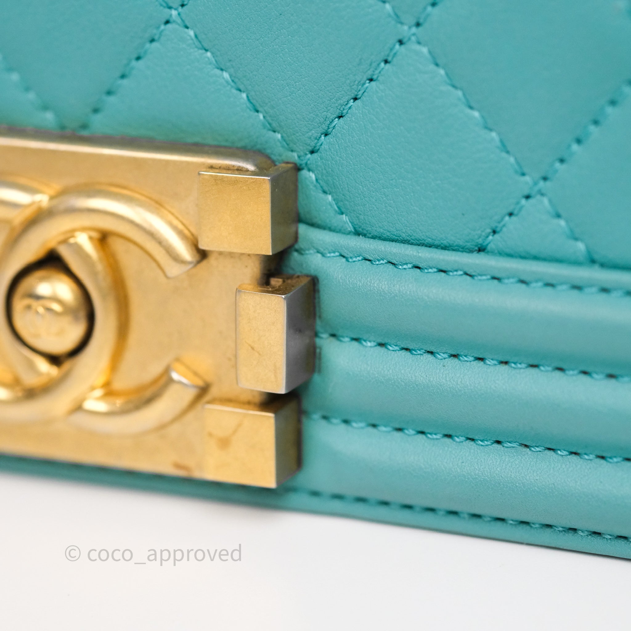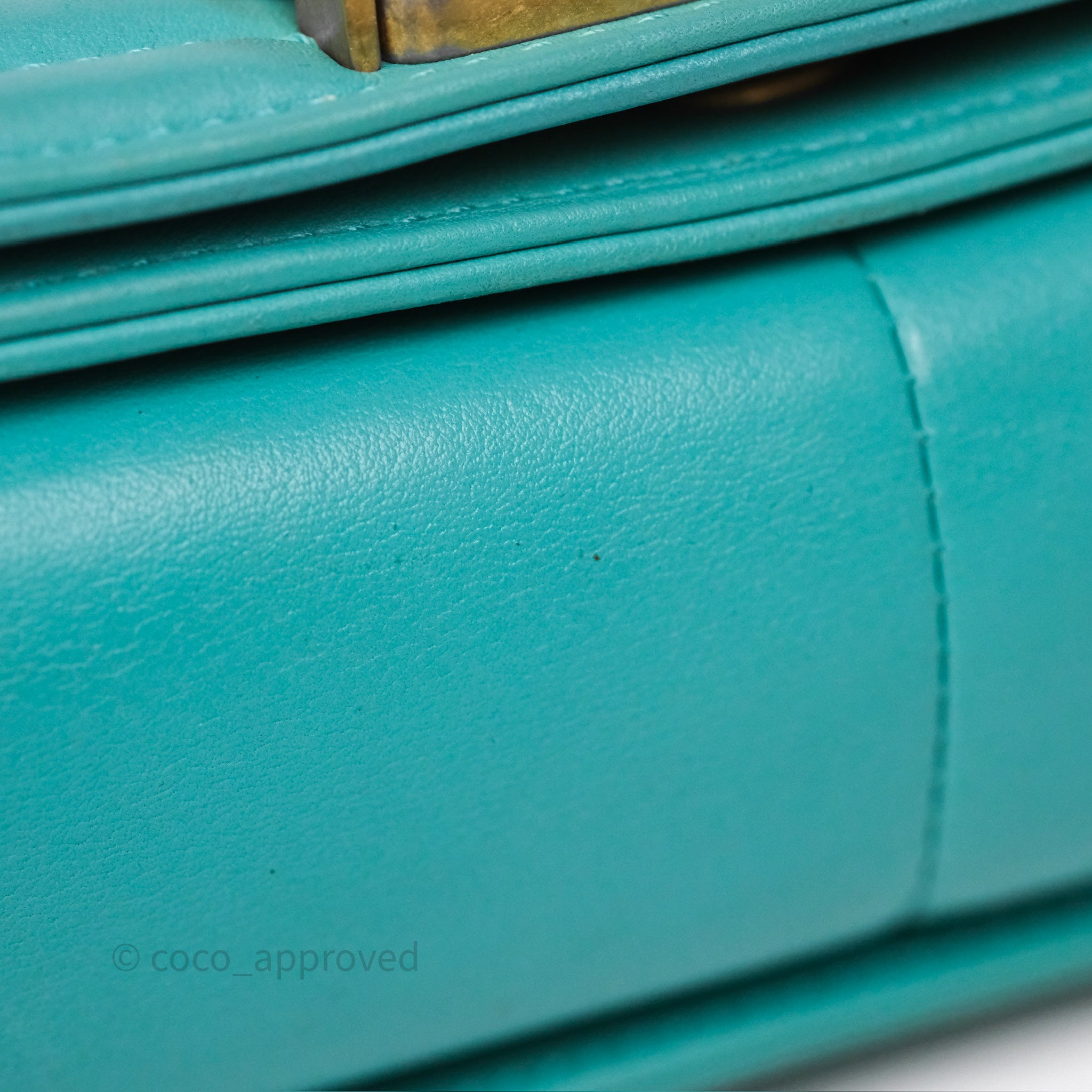 Chanel Medium Boy Quilted Turquoise Calfskin Aged Gold Hardware