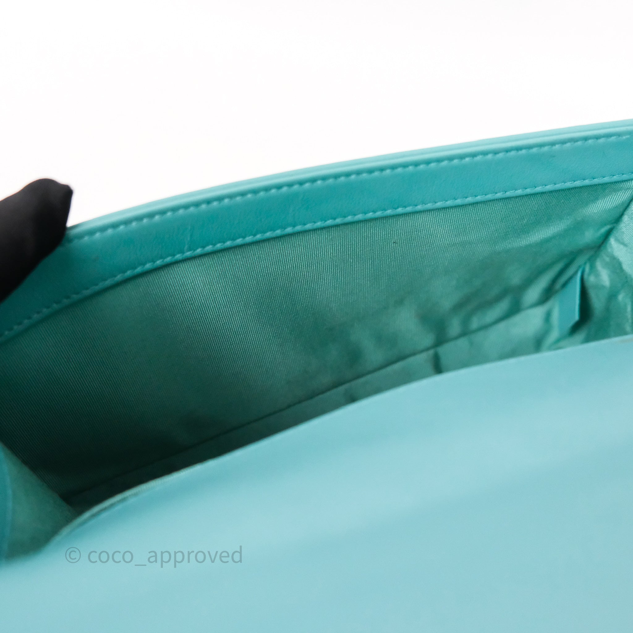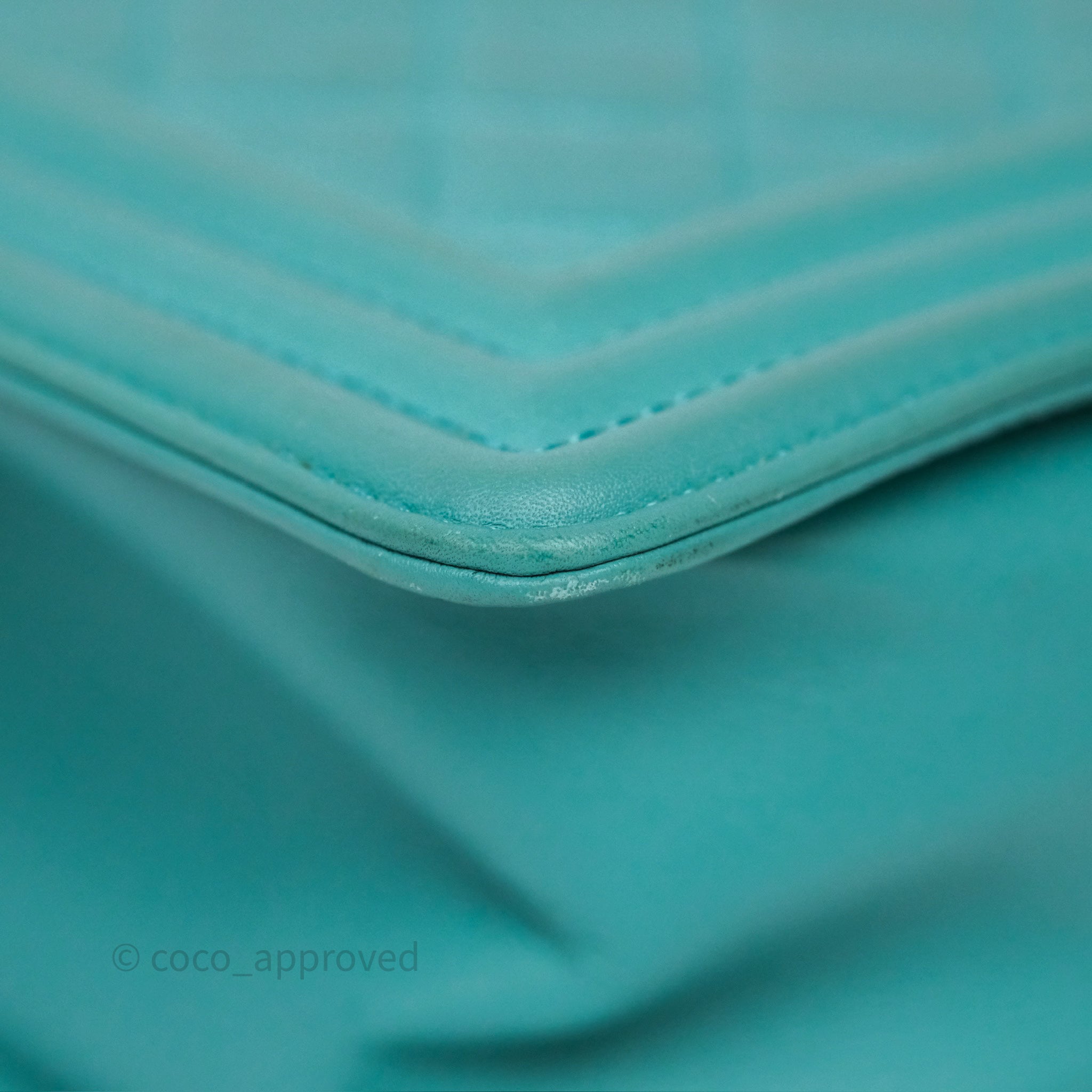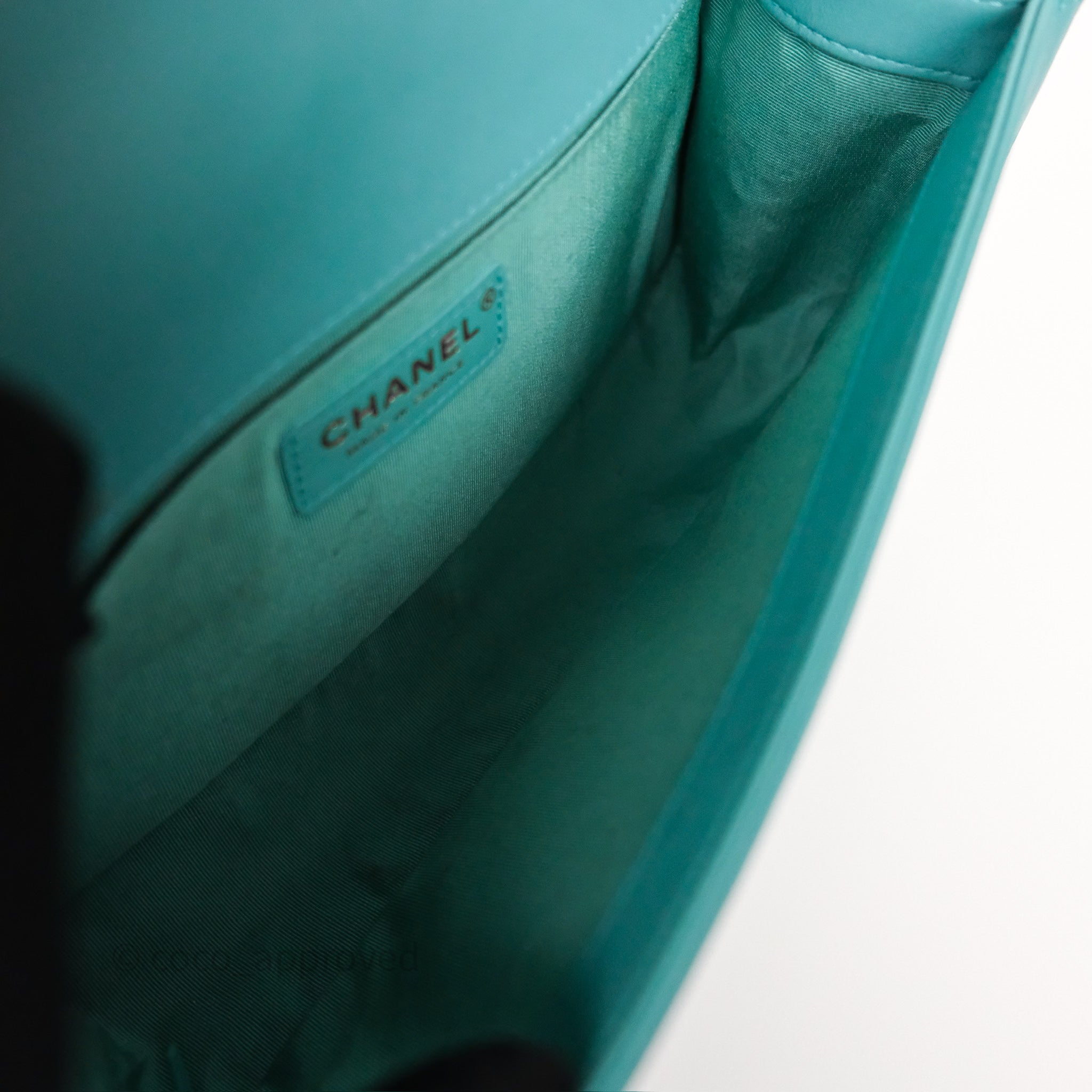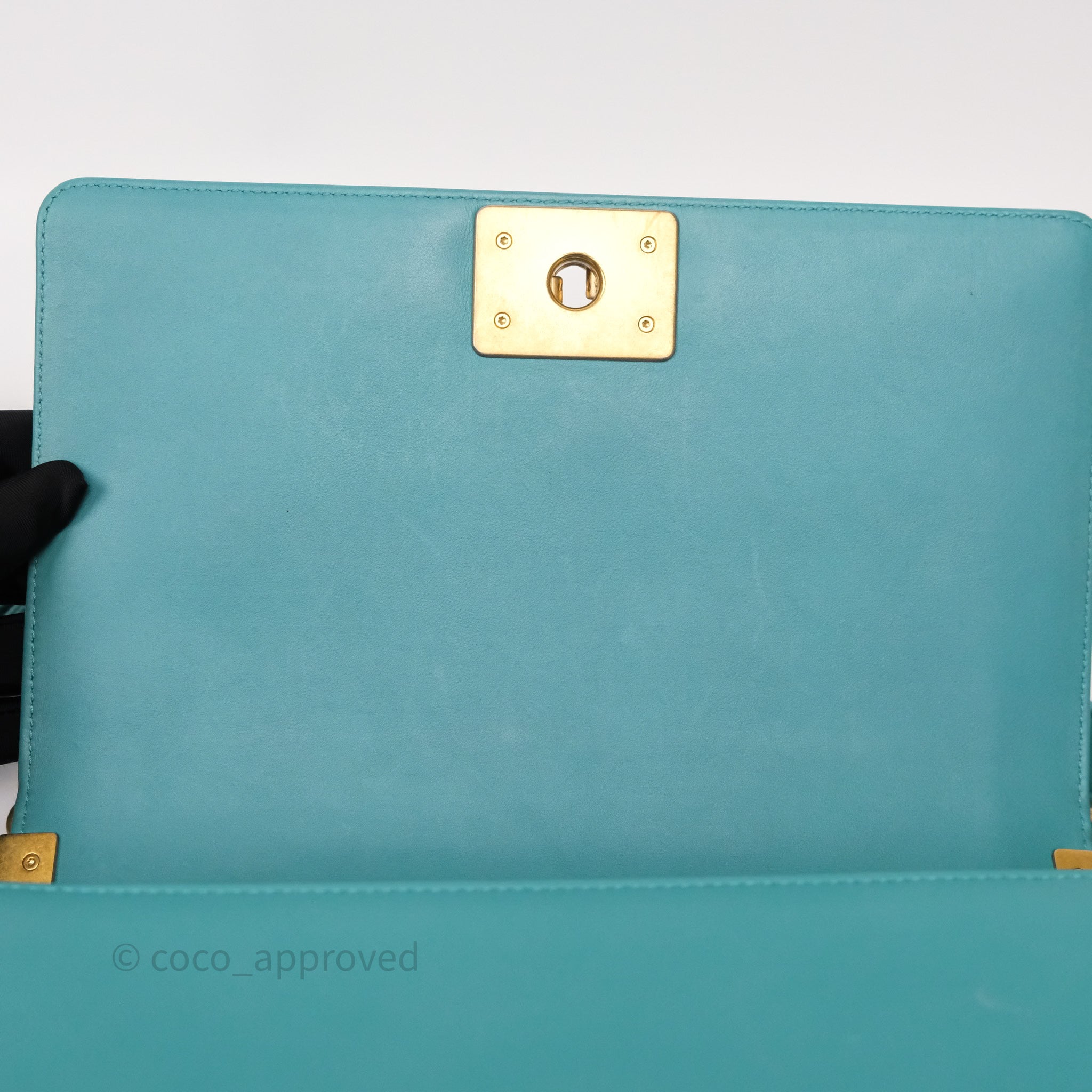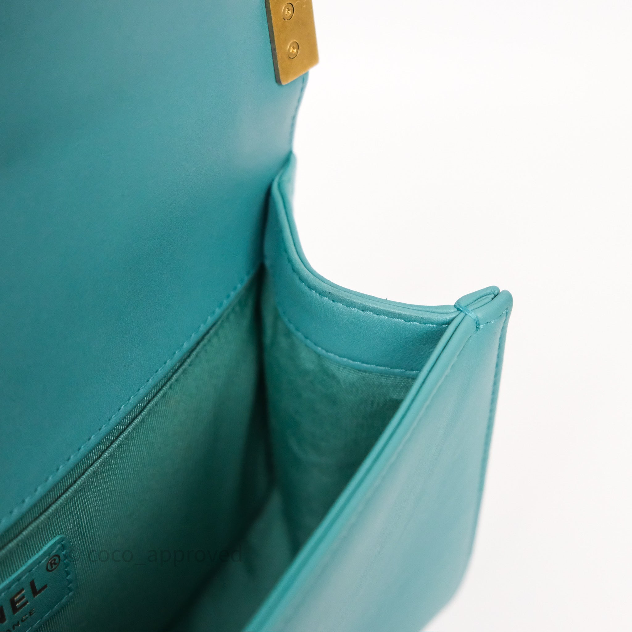 Chanel Medium Boy Quilted Turquoise Calfskin Aged Gold Hardware