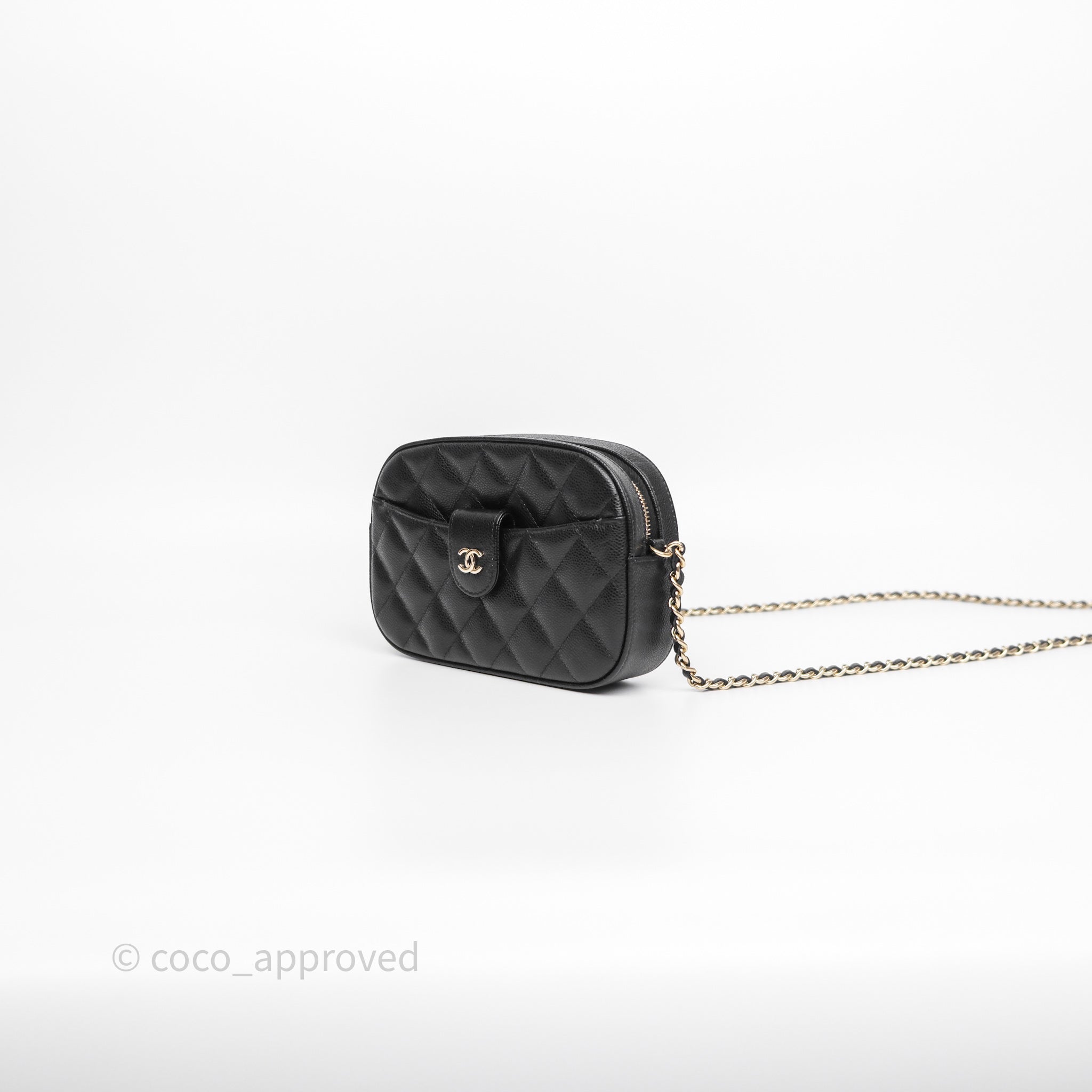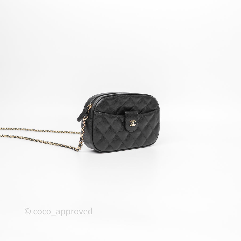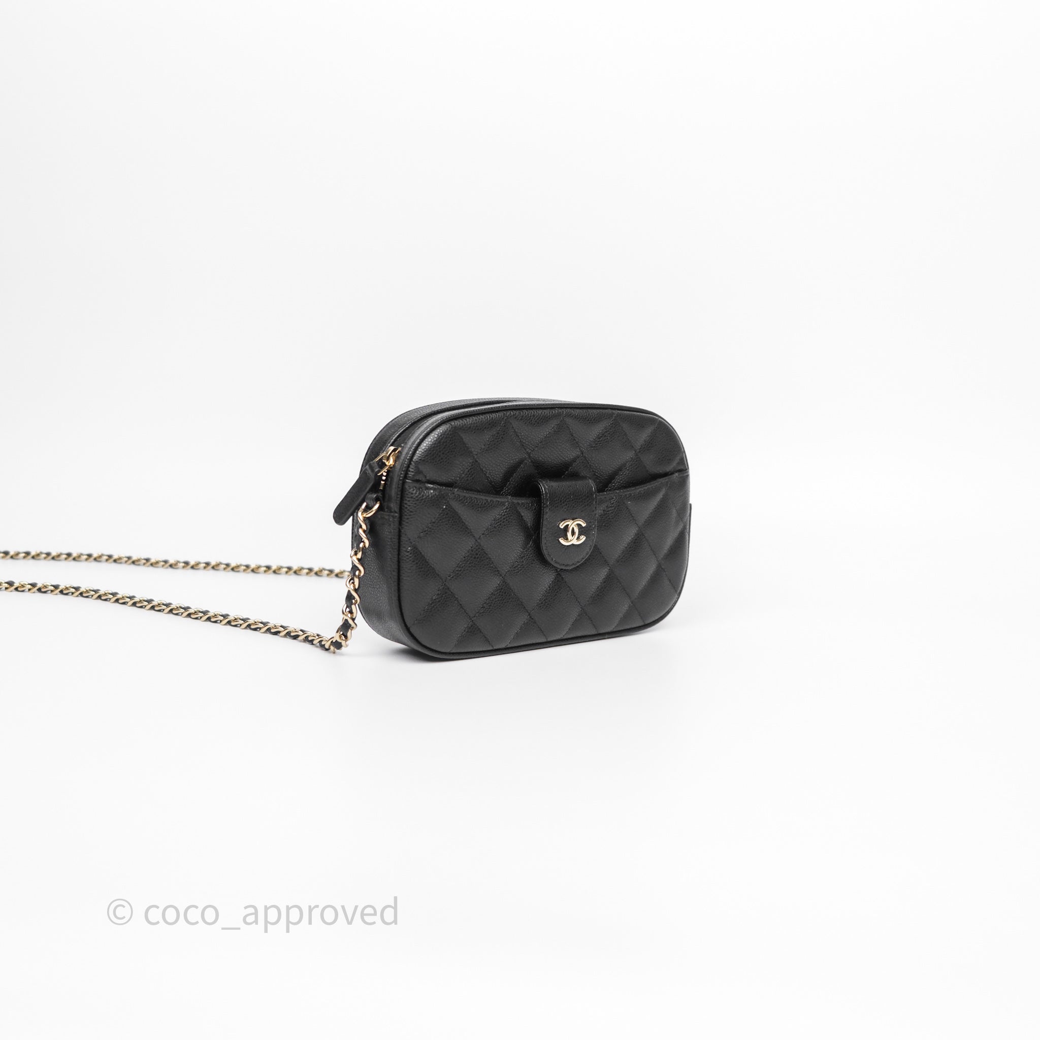 Chanel Mini Camera Bag with Chain Black Caviar Gold Hardware 24S