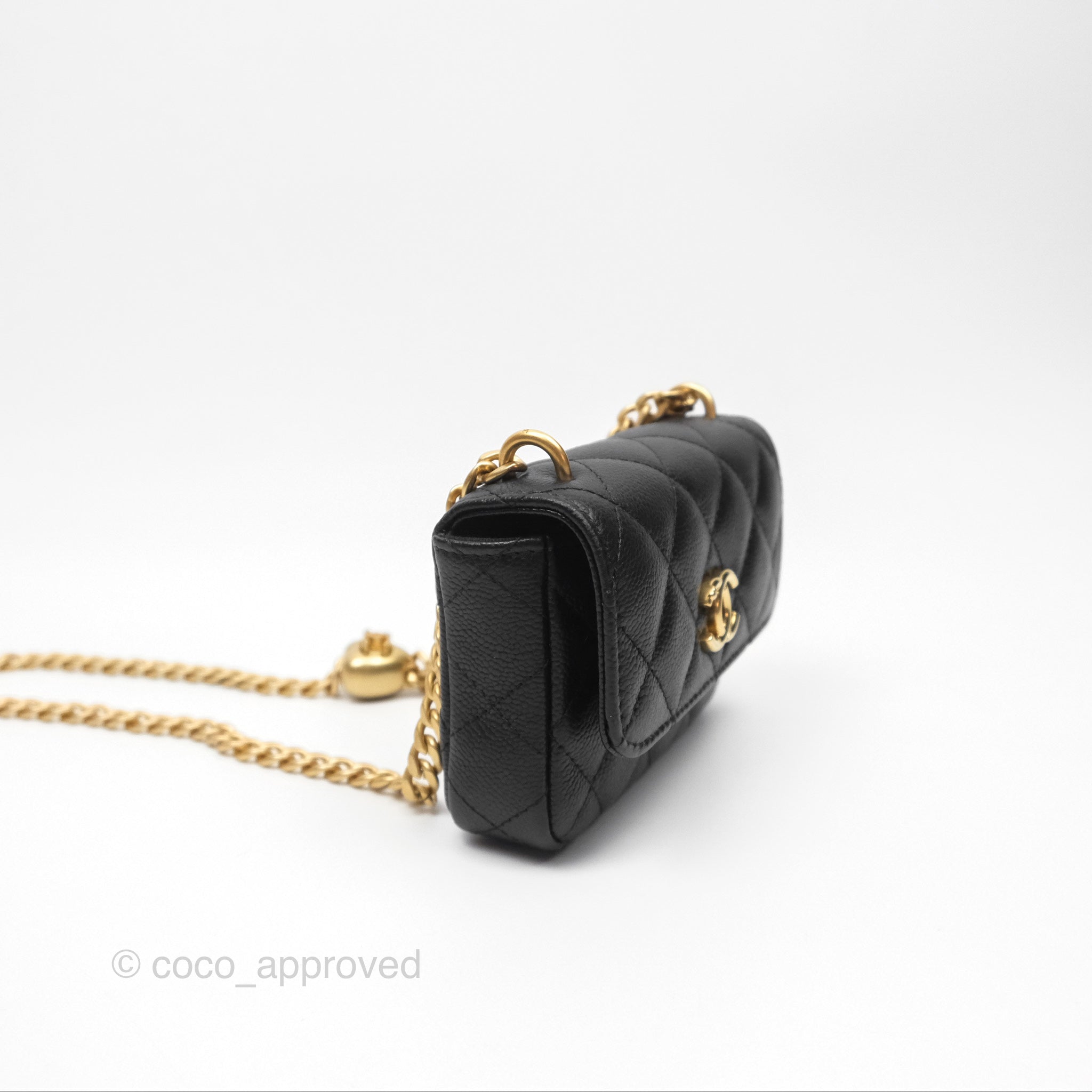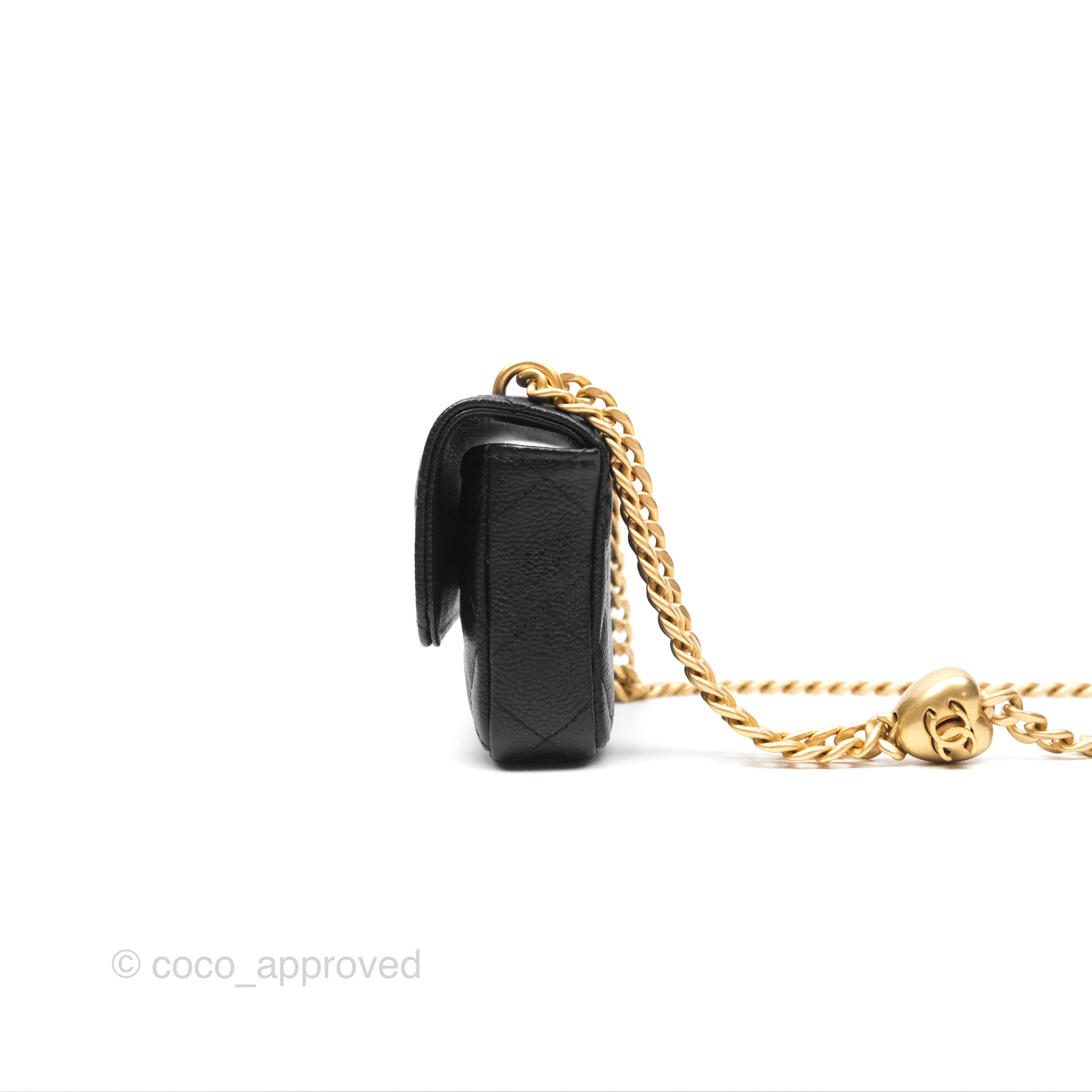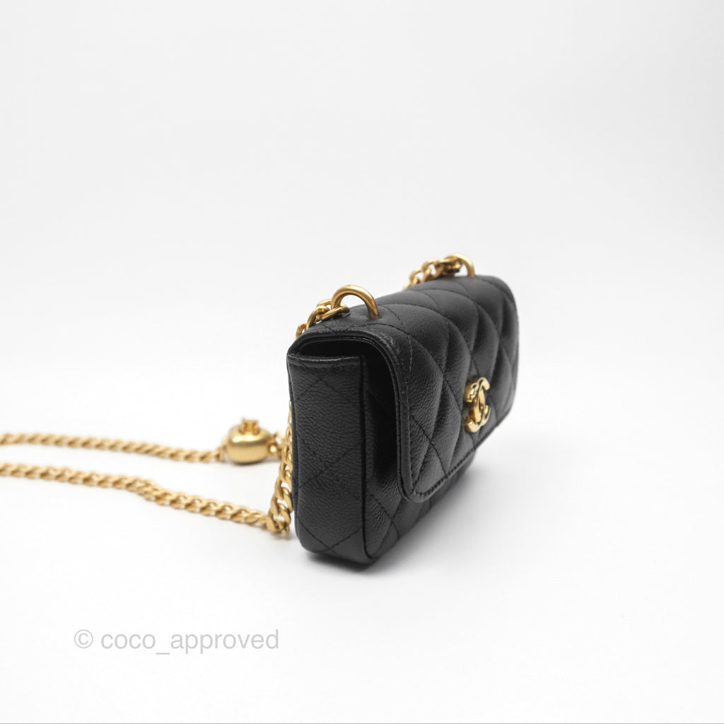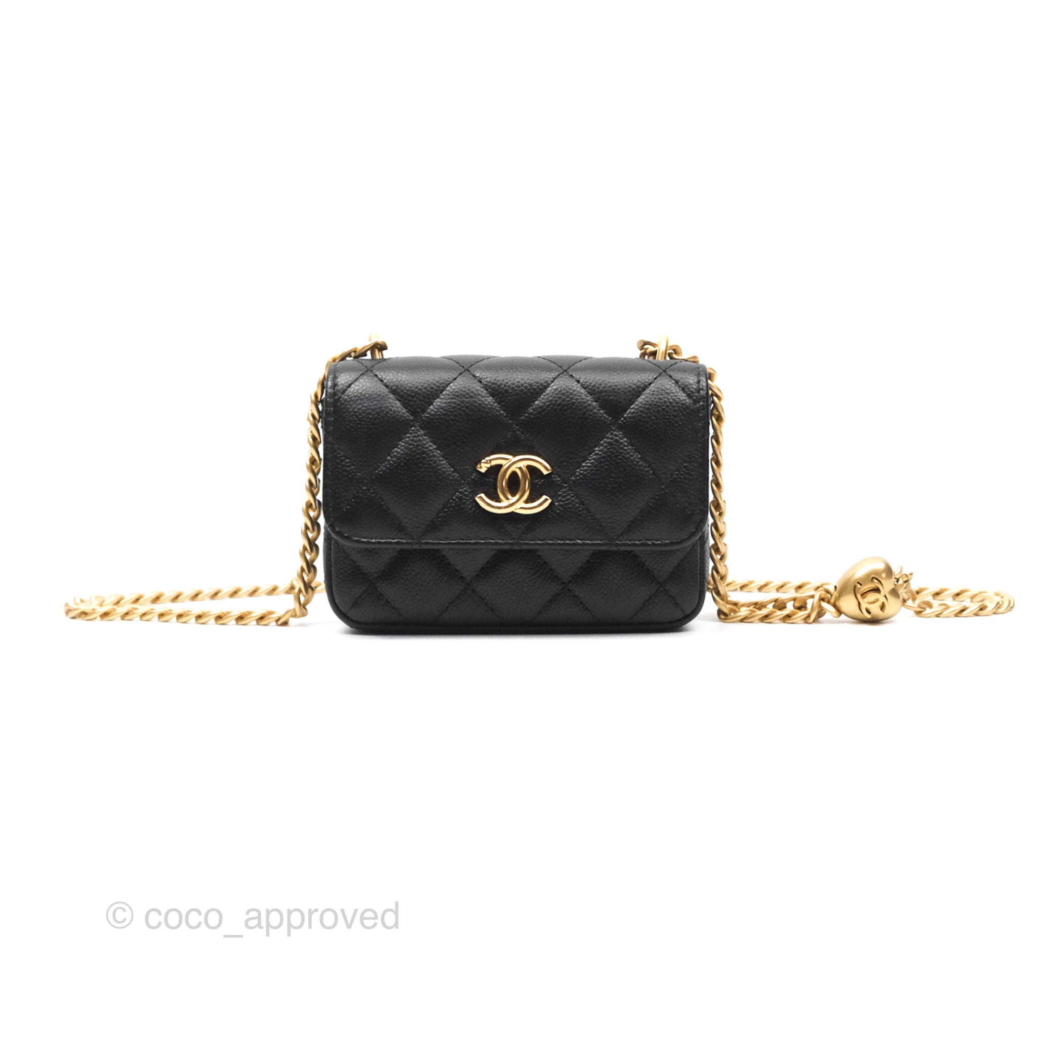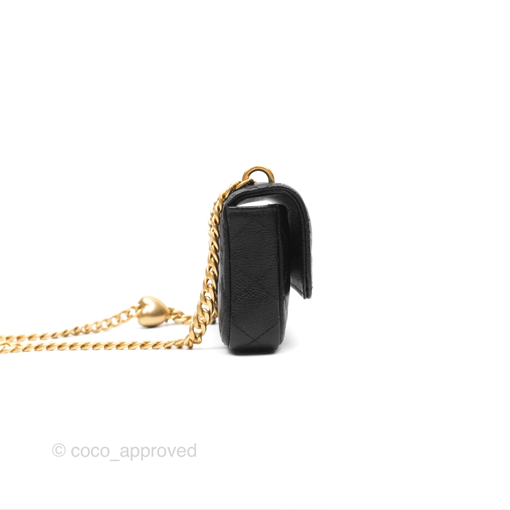 Chanel Mini Clutch With Heart Adjustable Chain Black Caviar Aged Gold Hardware