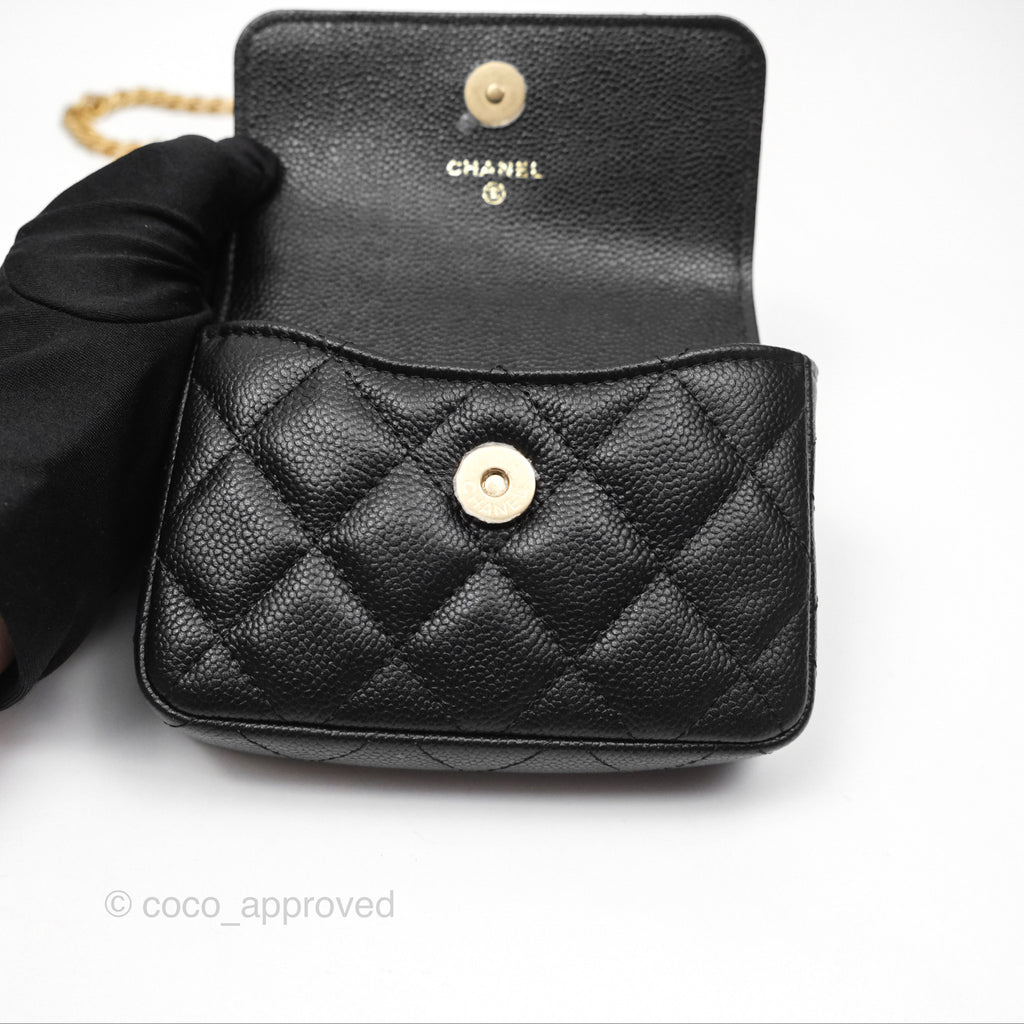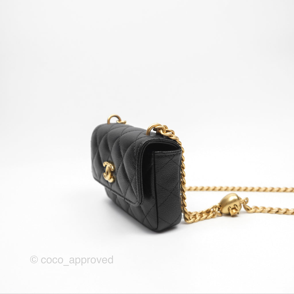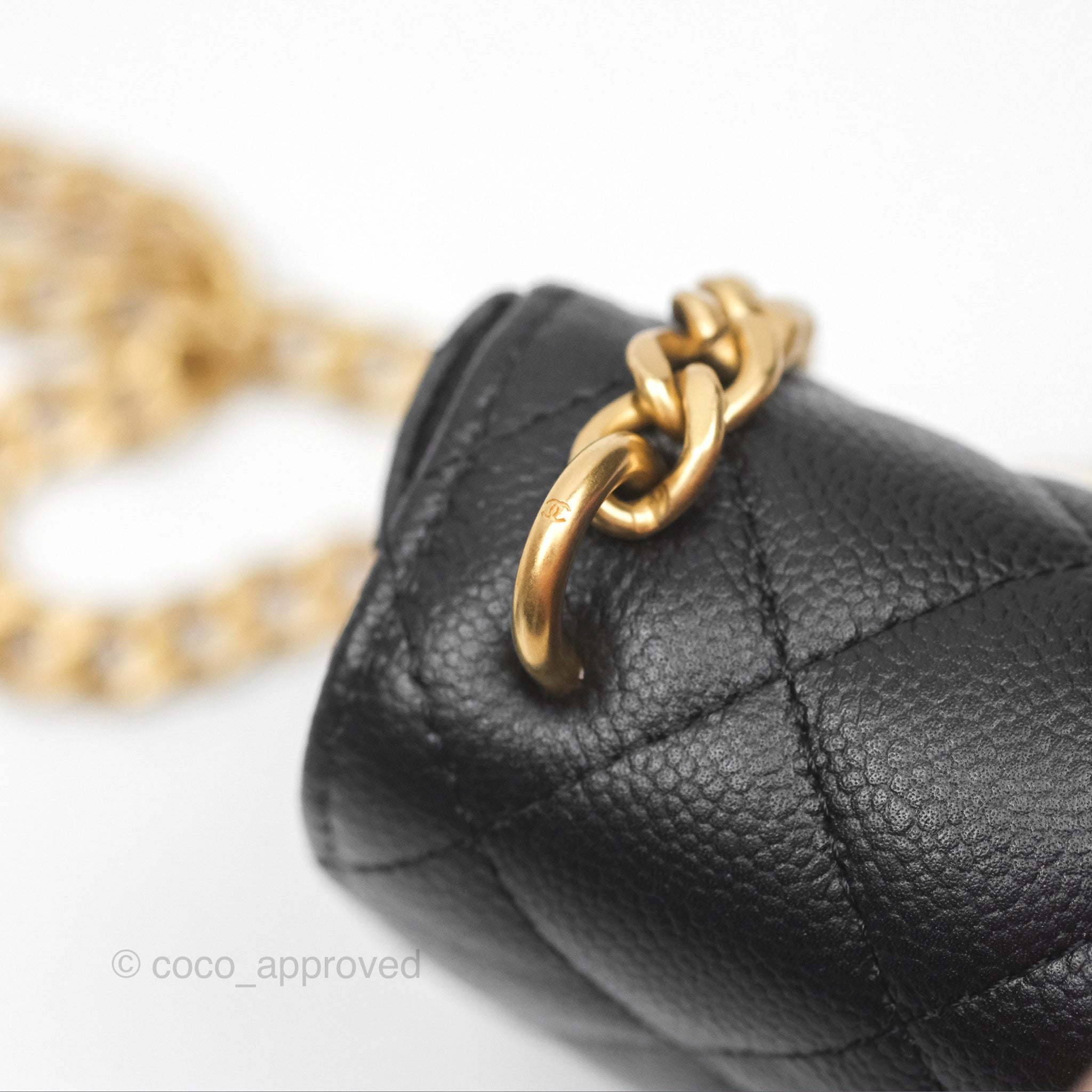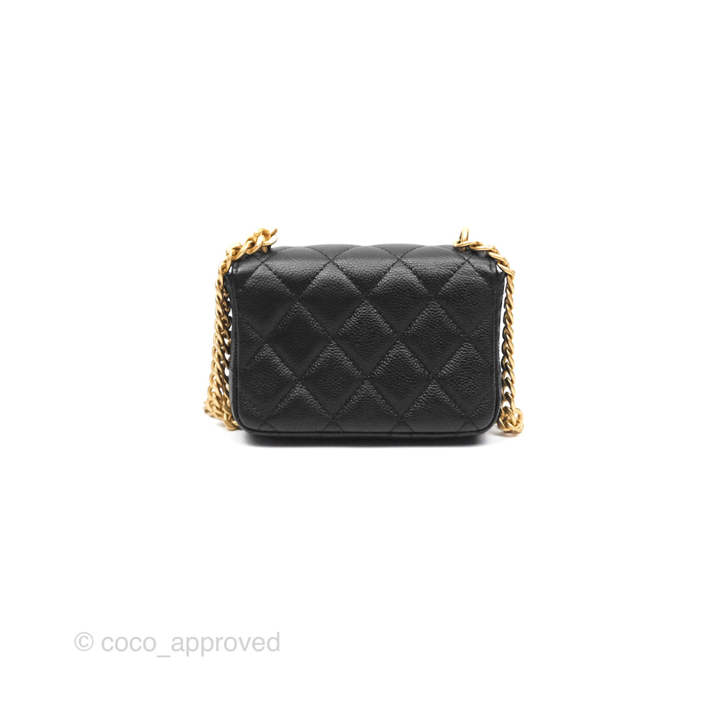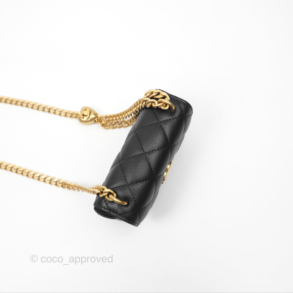 Chanel Mini Clutch With Heart Adjustable Chain Black Caviar Aged Gold Hardware