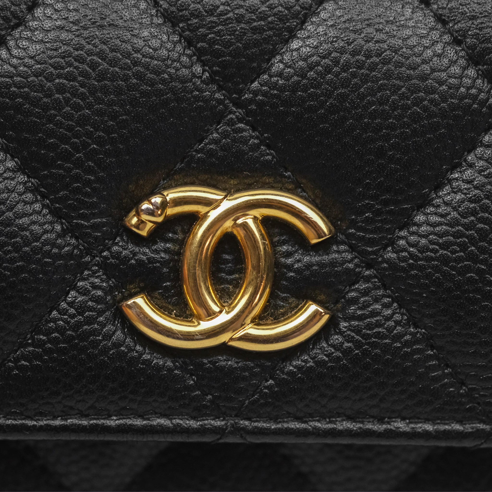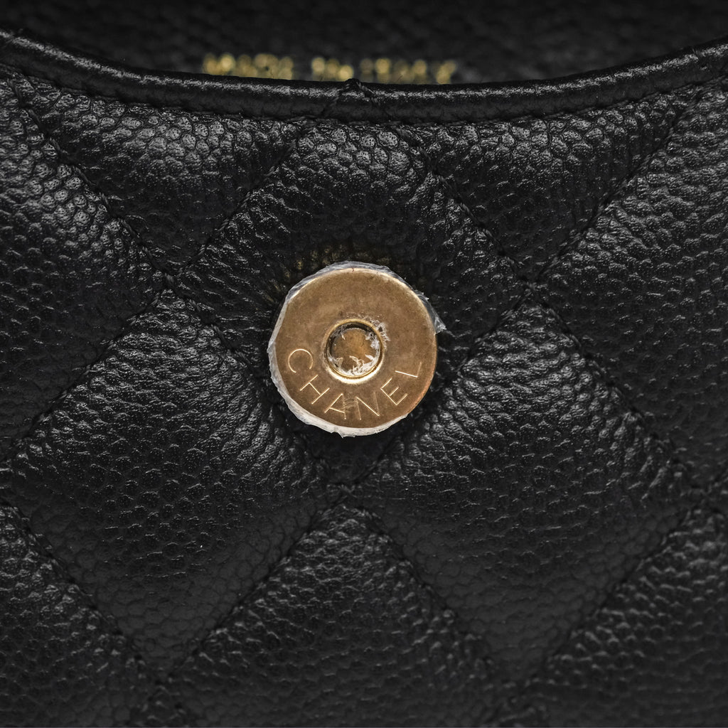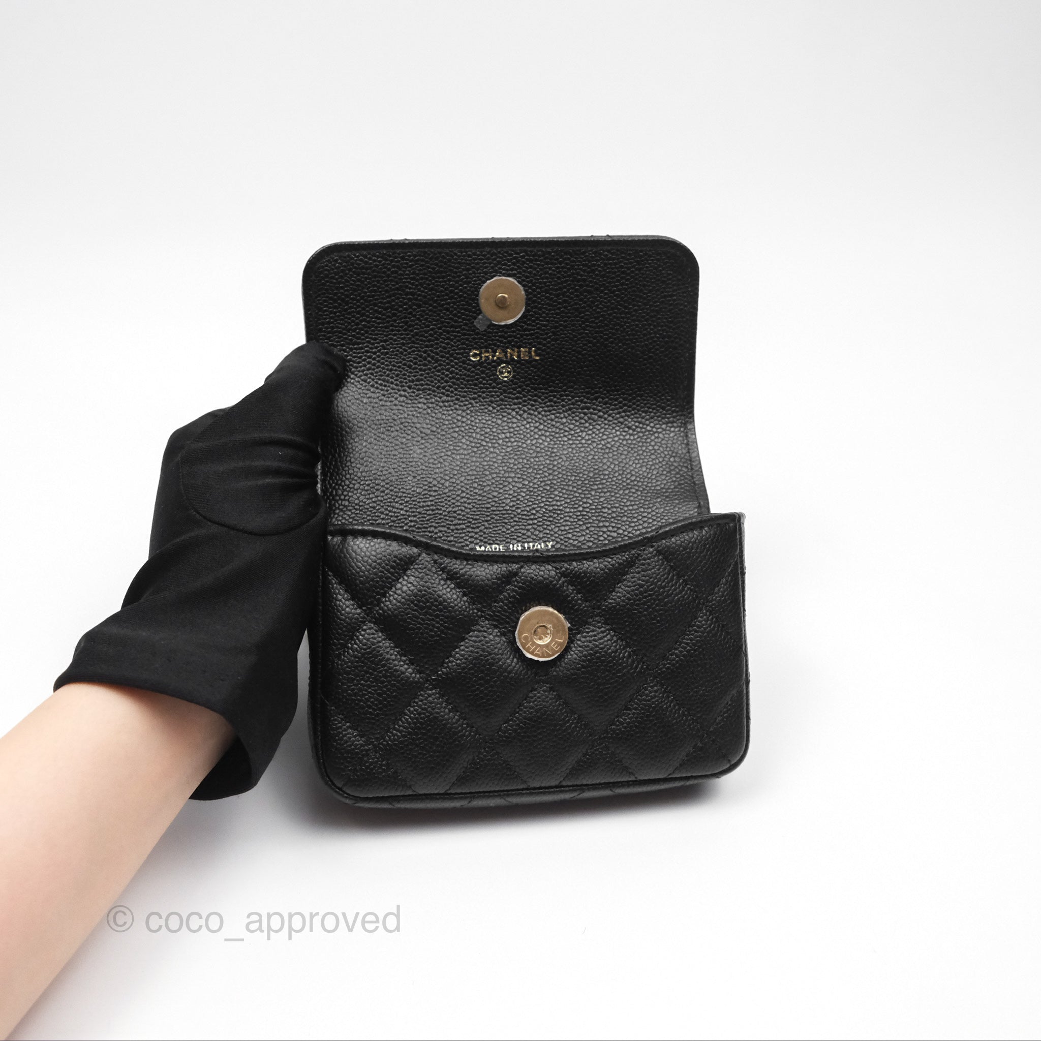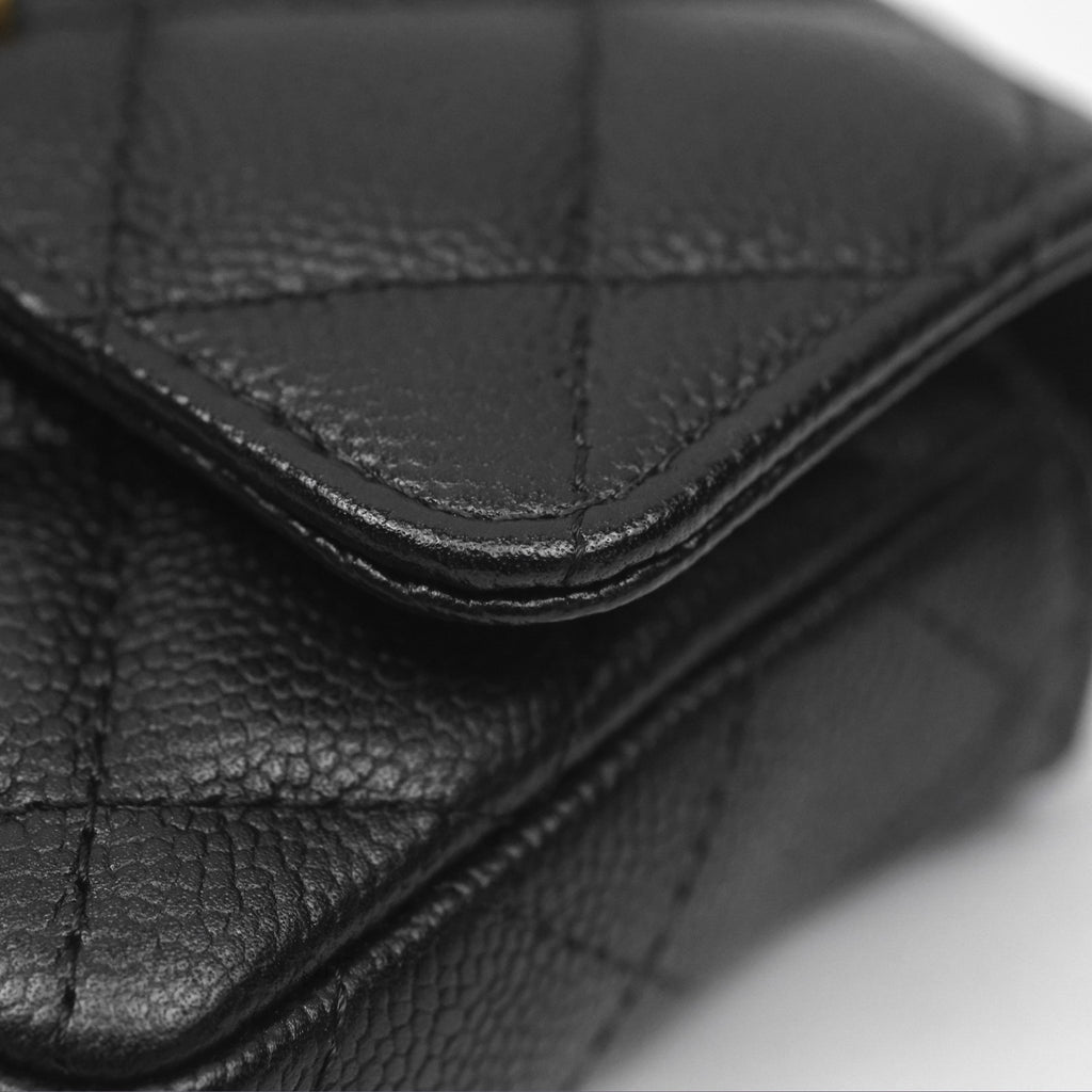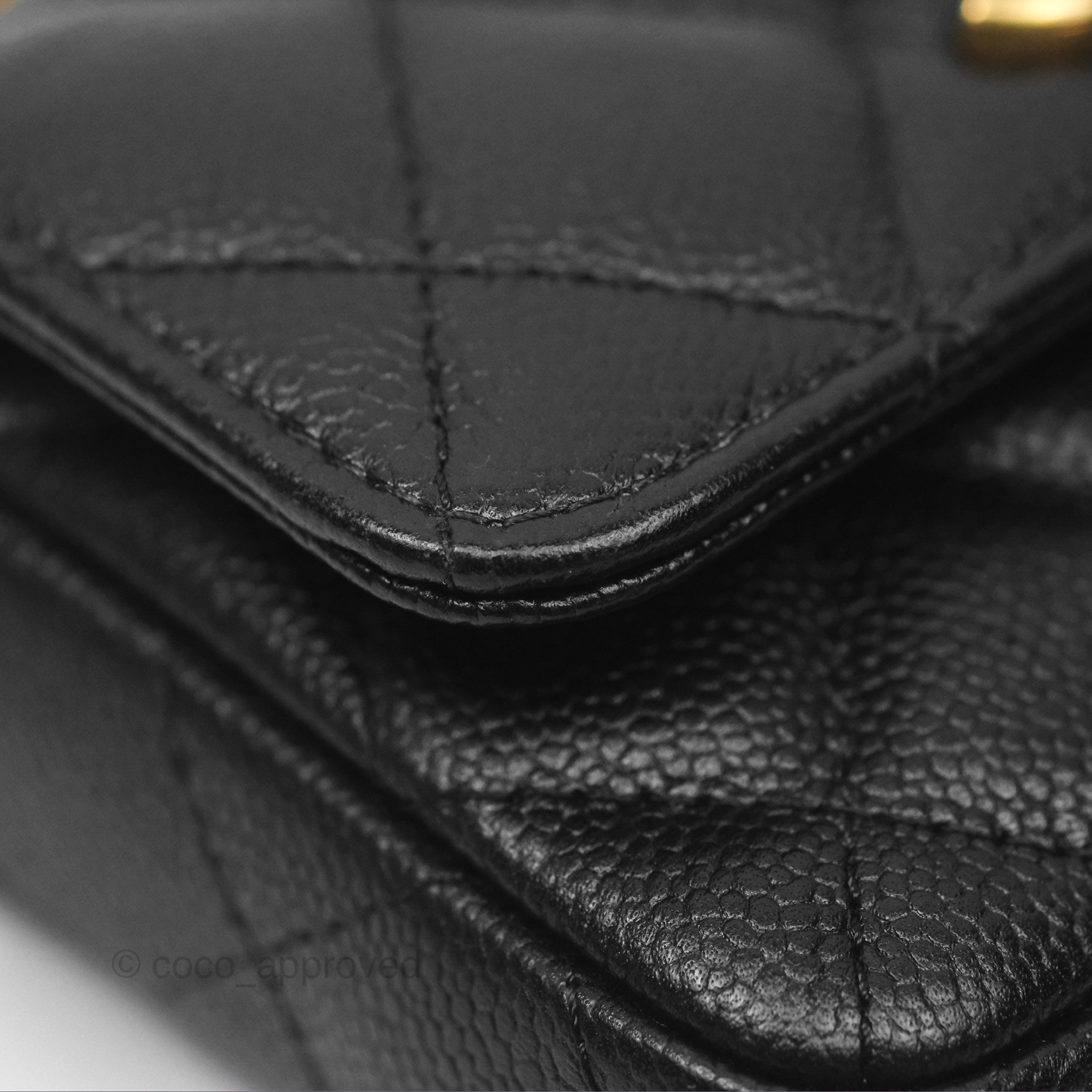 Chanel Mini Clutch With Heart Adjustable Chain Black Caviar Aged Gold Hardware