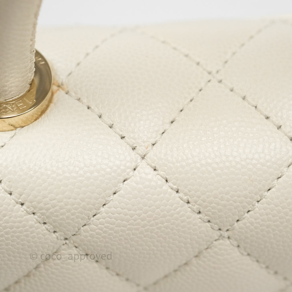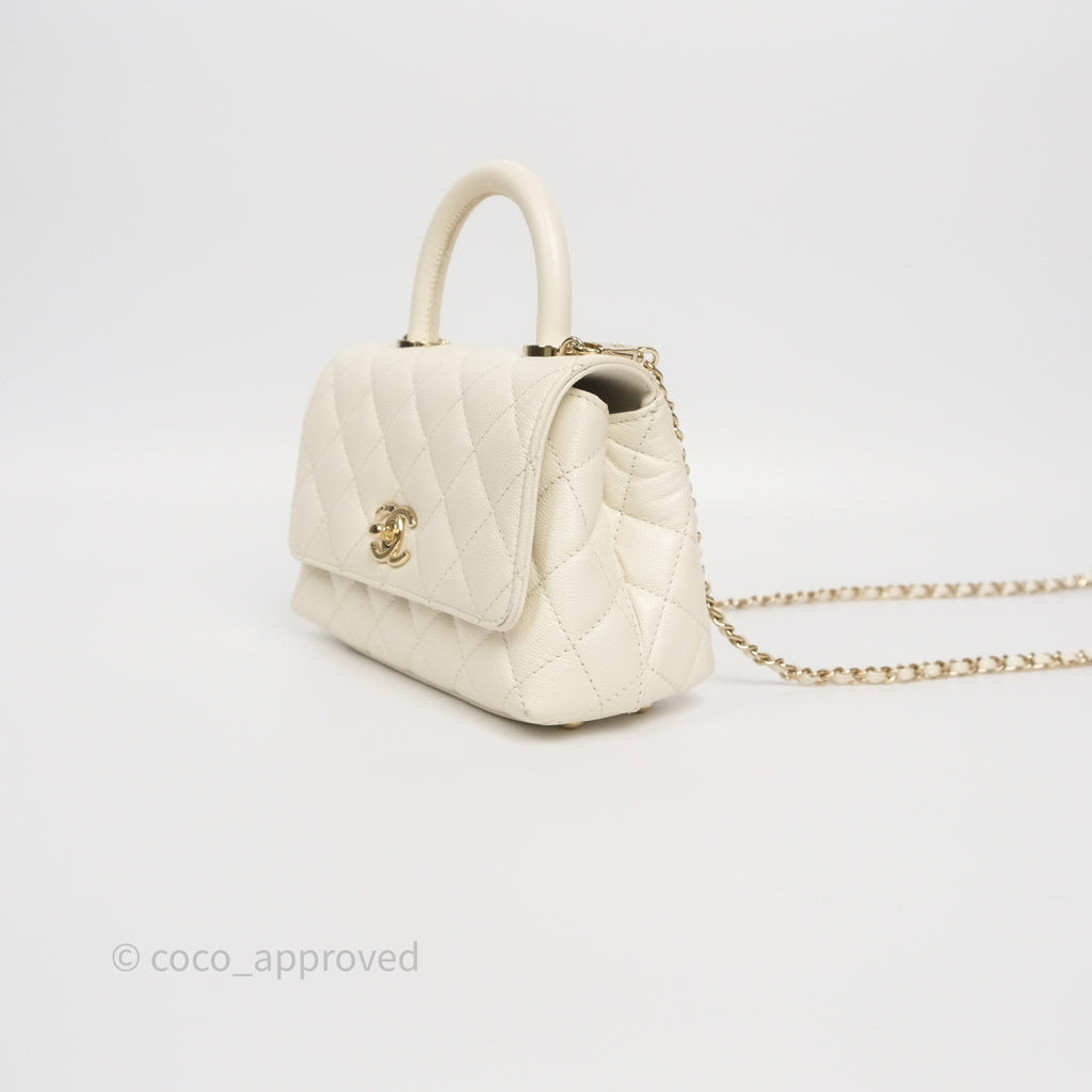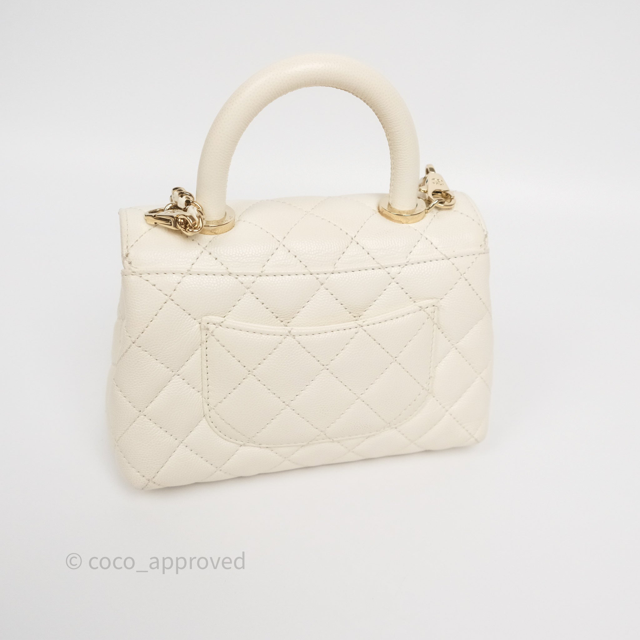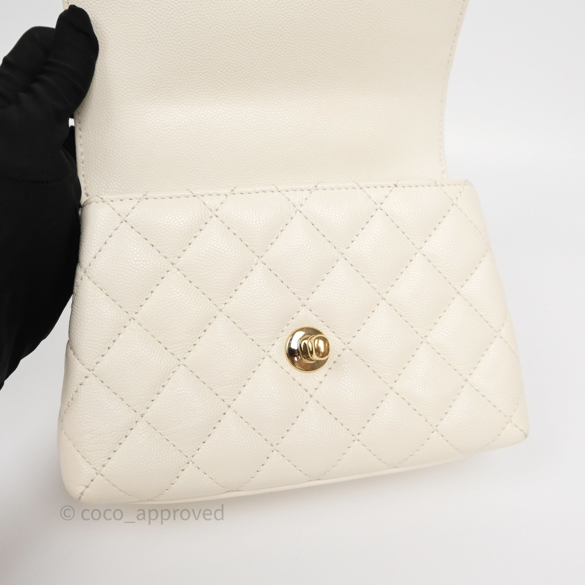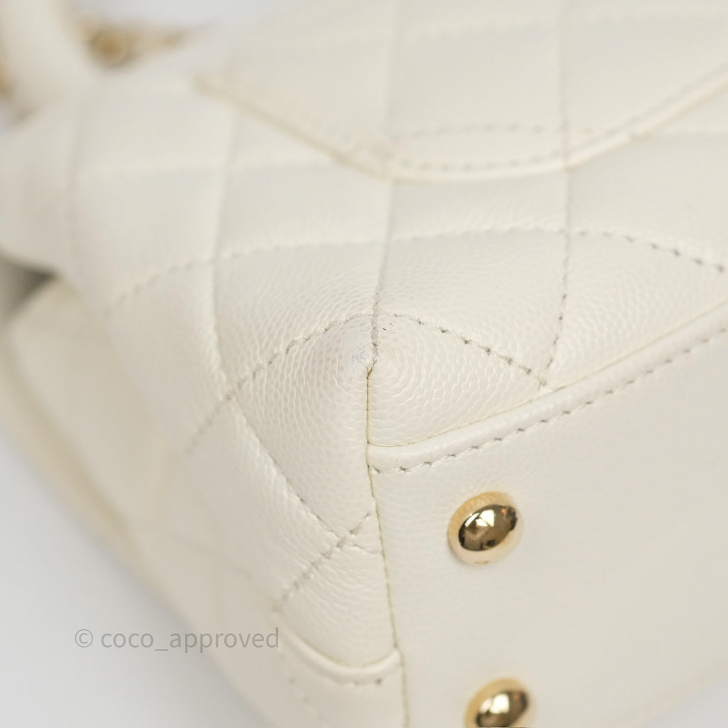 Chanel Mini Coco Handle Quilted Ivory White Caviar Gold Hardware