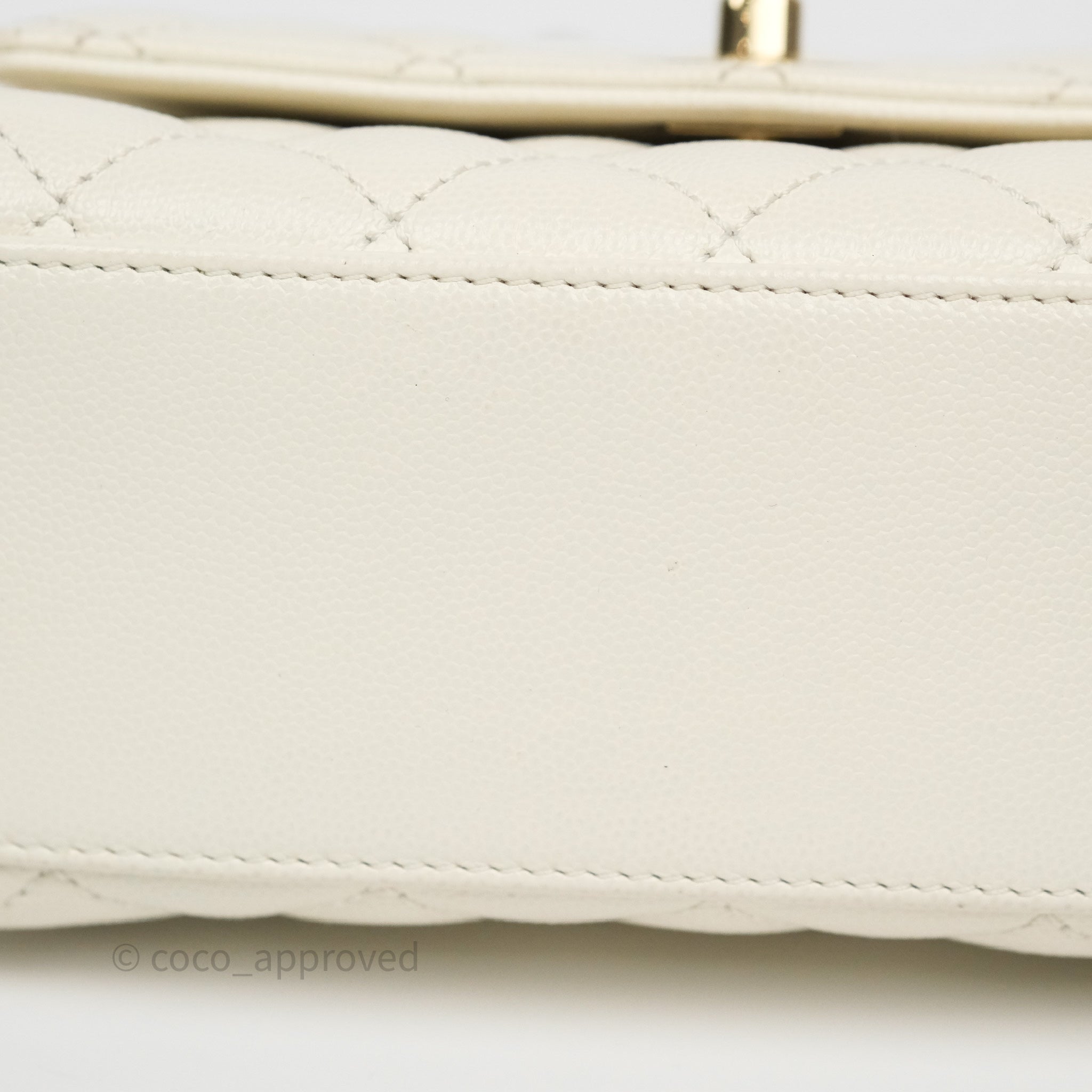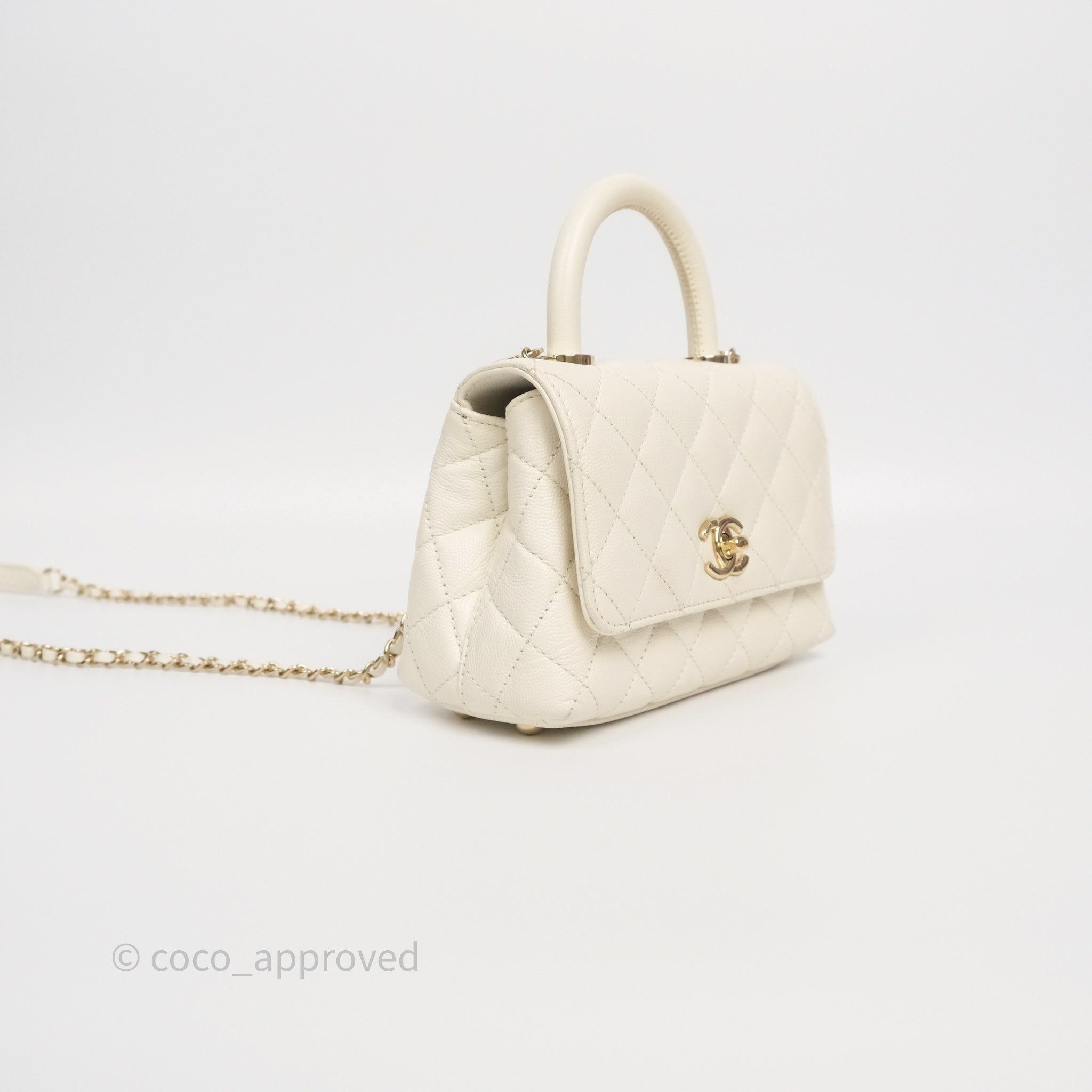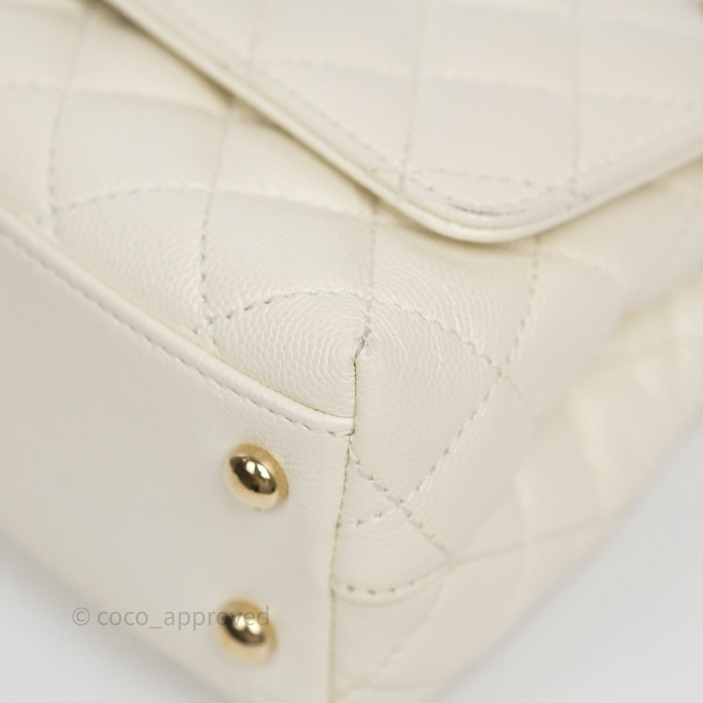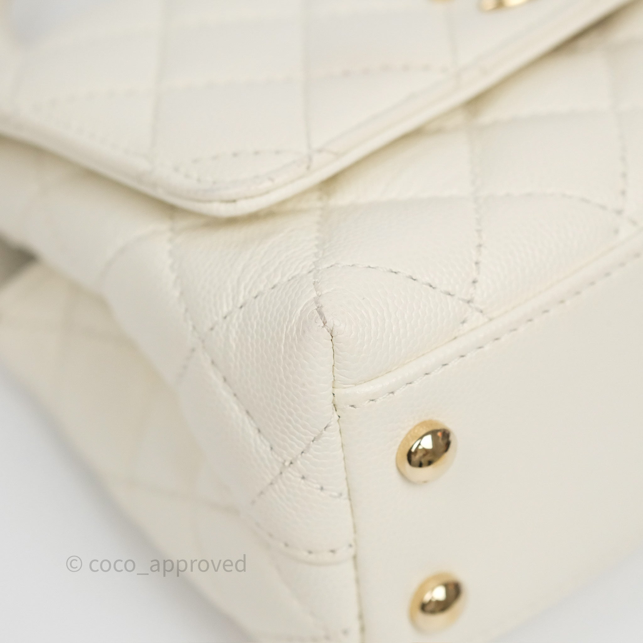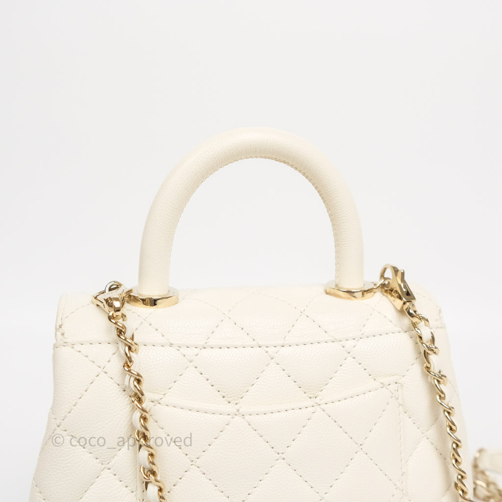 Chanel Mini Coco Handle Quilted Ivory White Caviar Gold Hardware