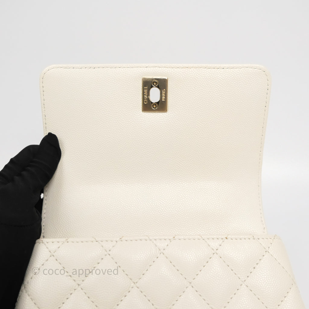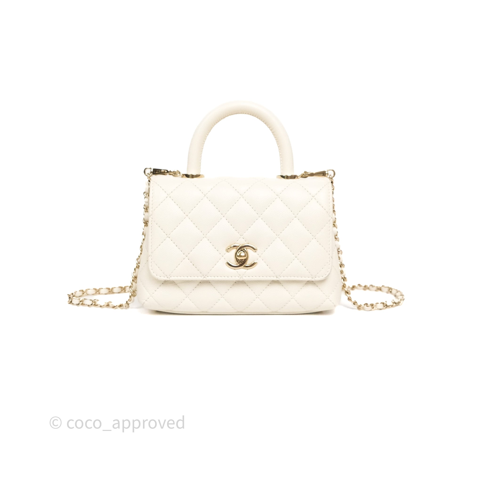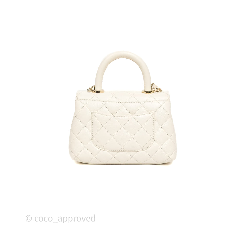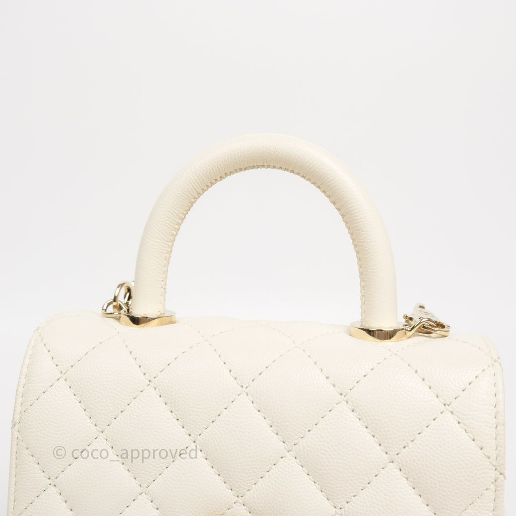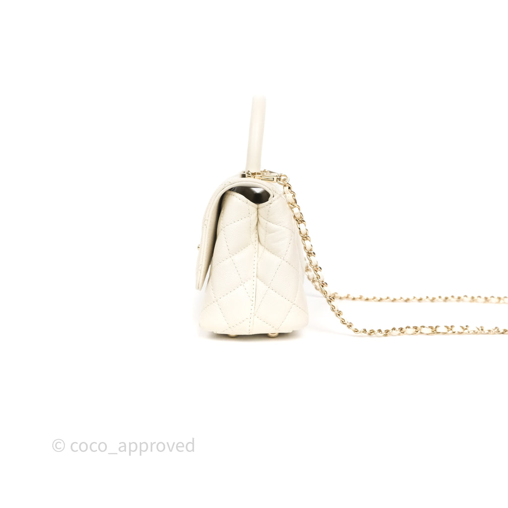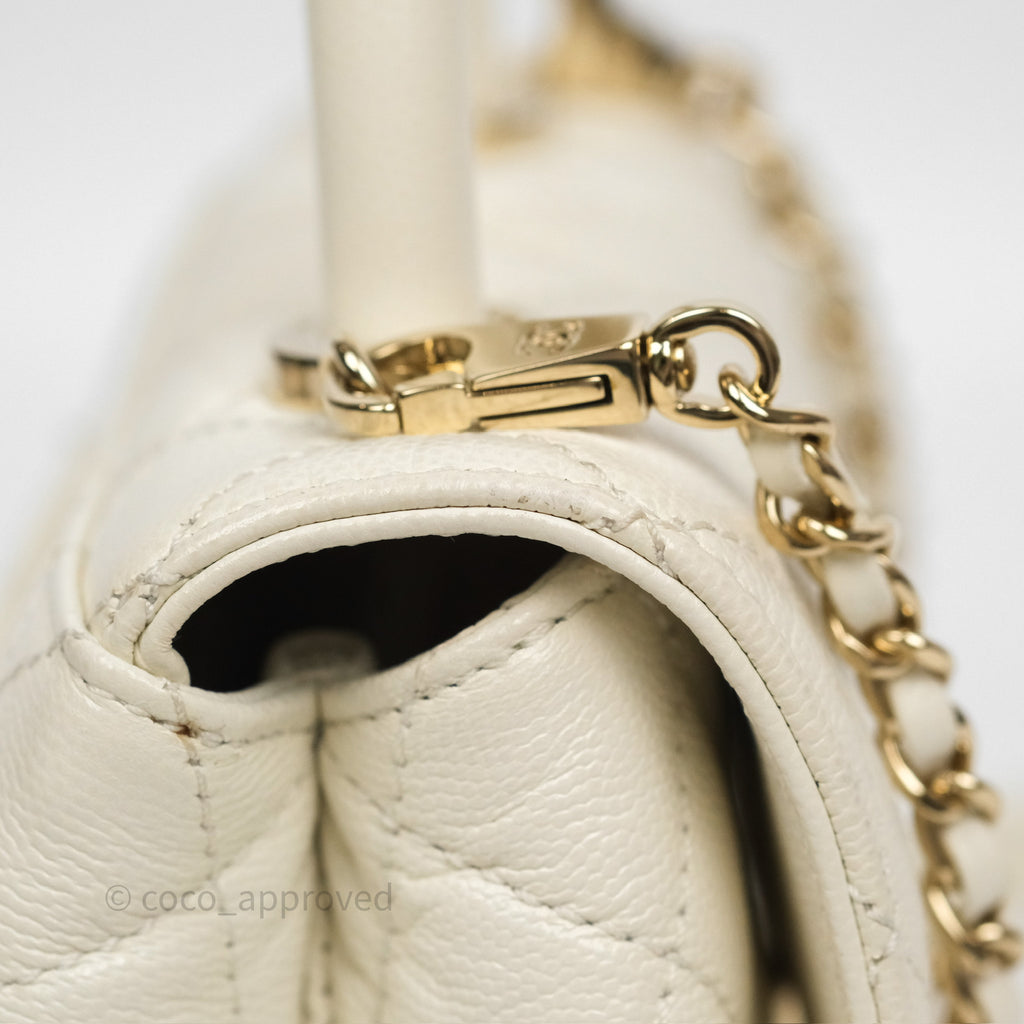 Chanel Mini Coco Handle Quilted Ivory White Caviar Gold Hardware