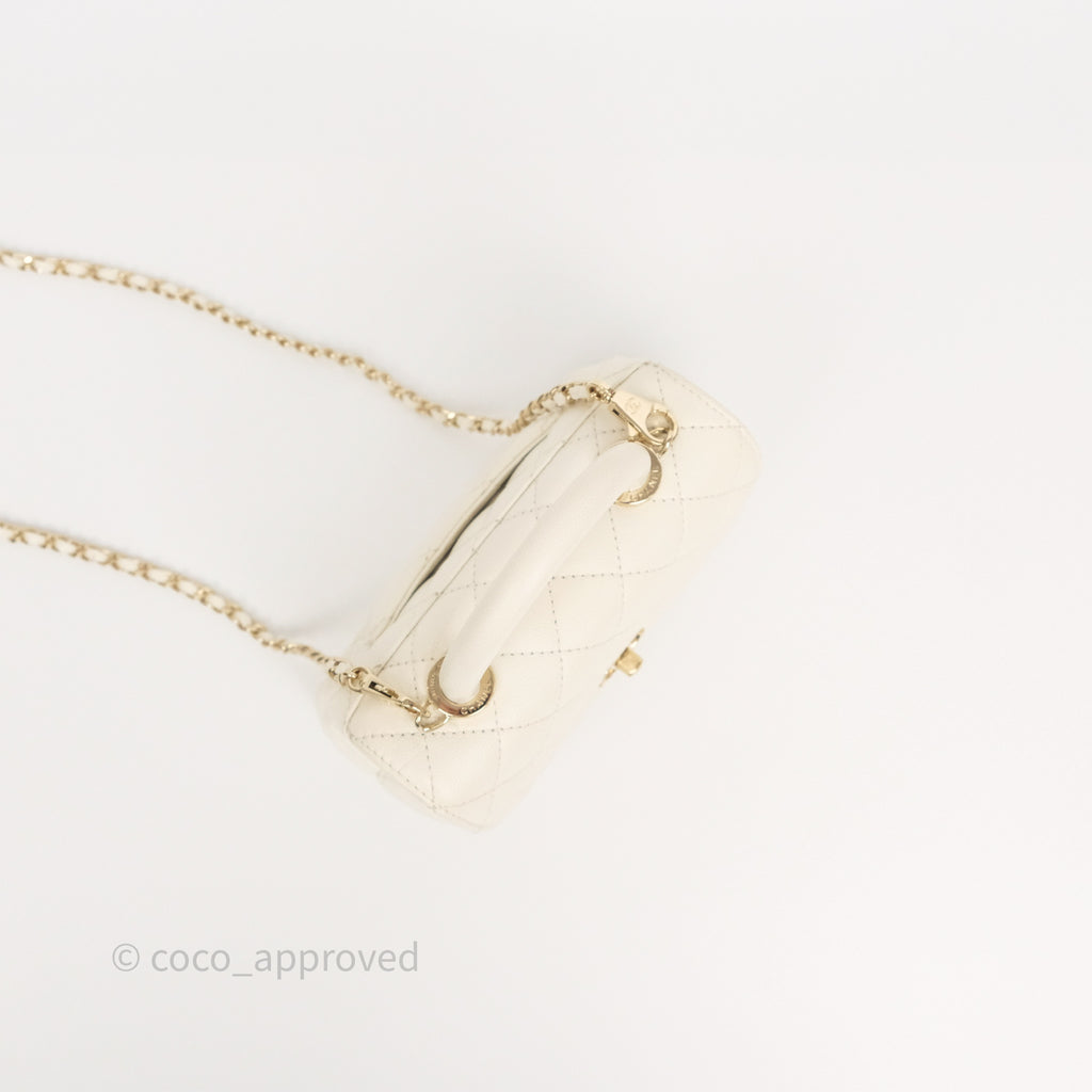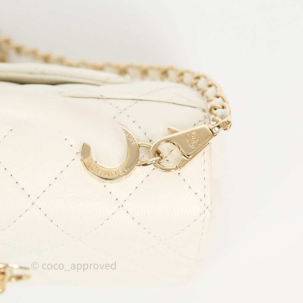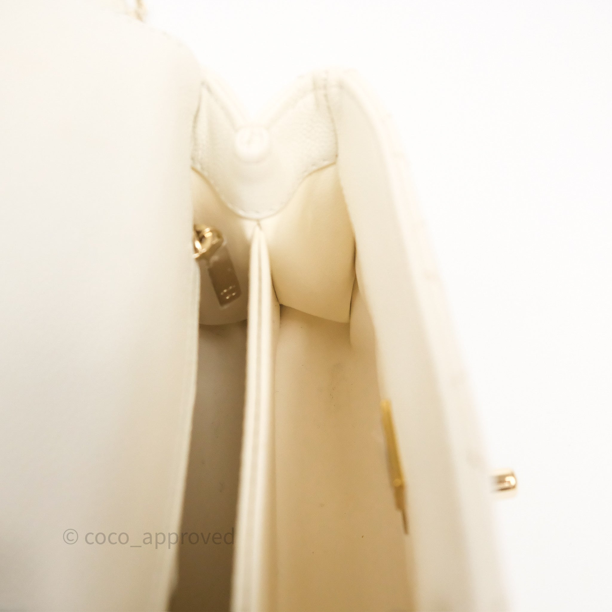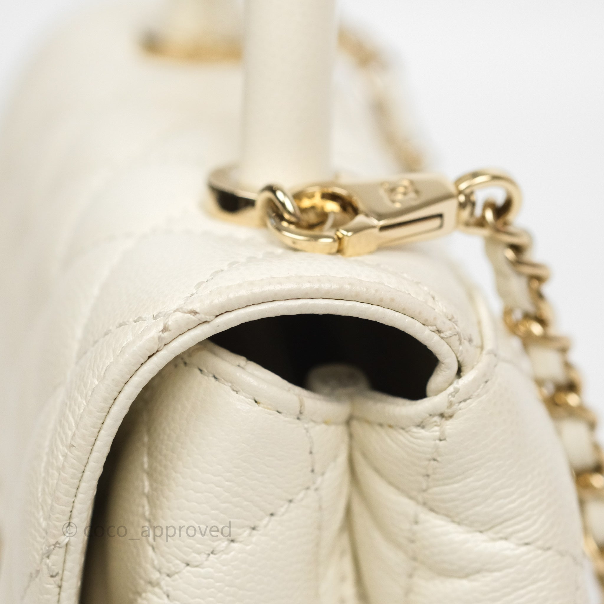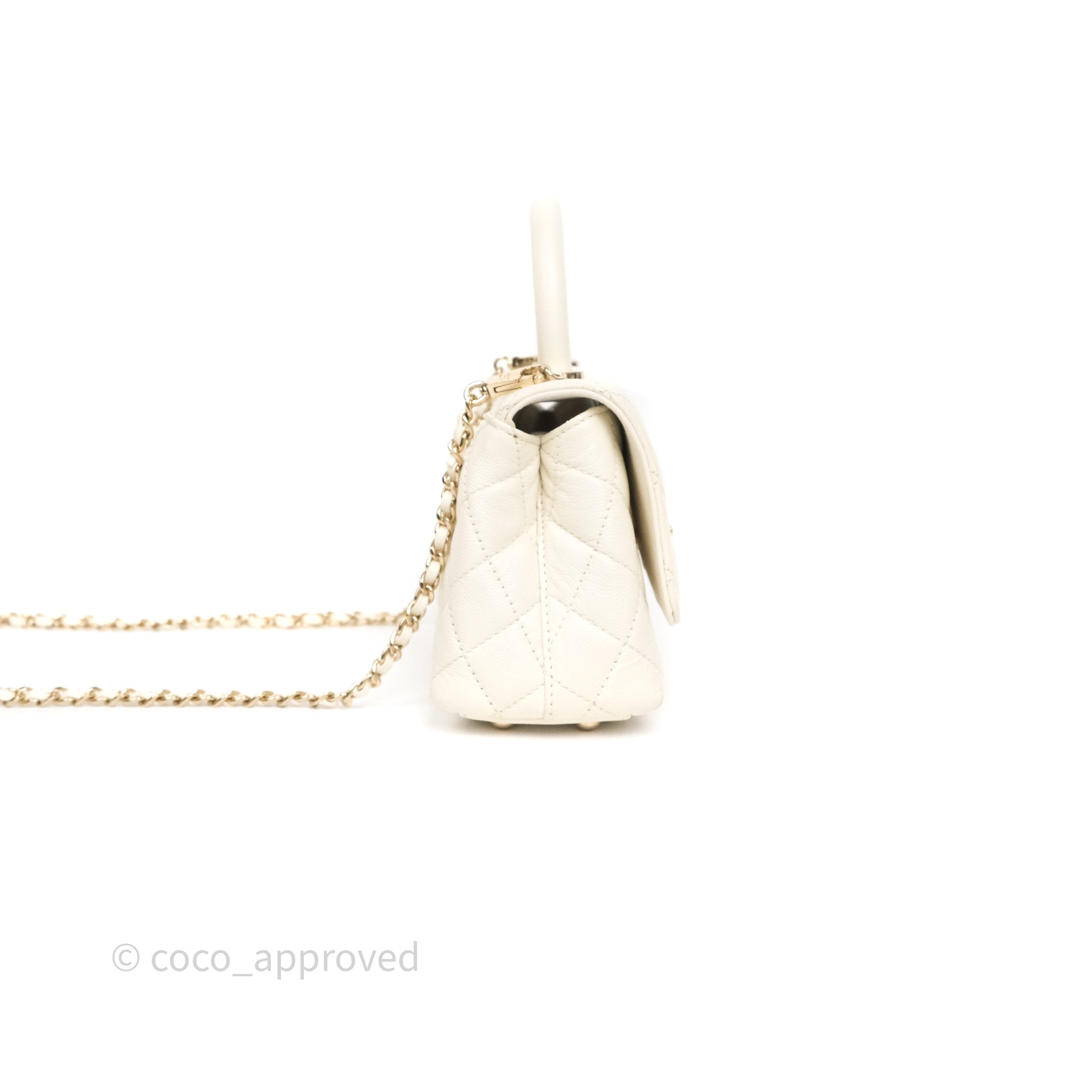 Chanel Mini Coco Handle Quilted Ivory White Caviar Gold Hardware