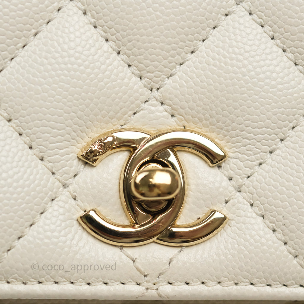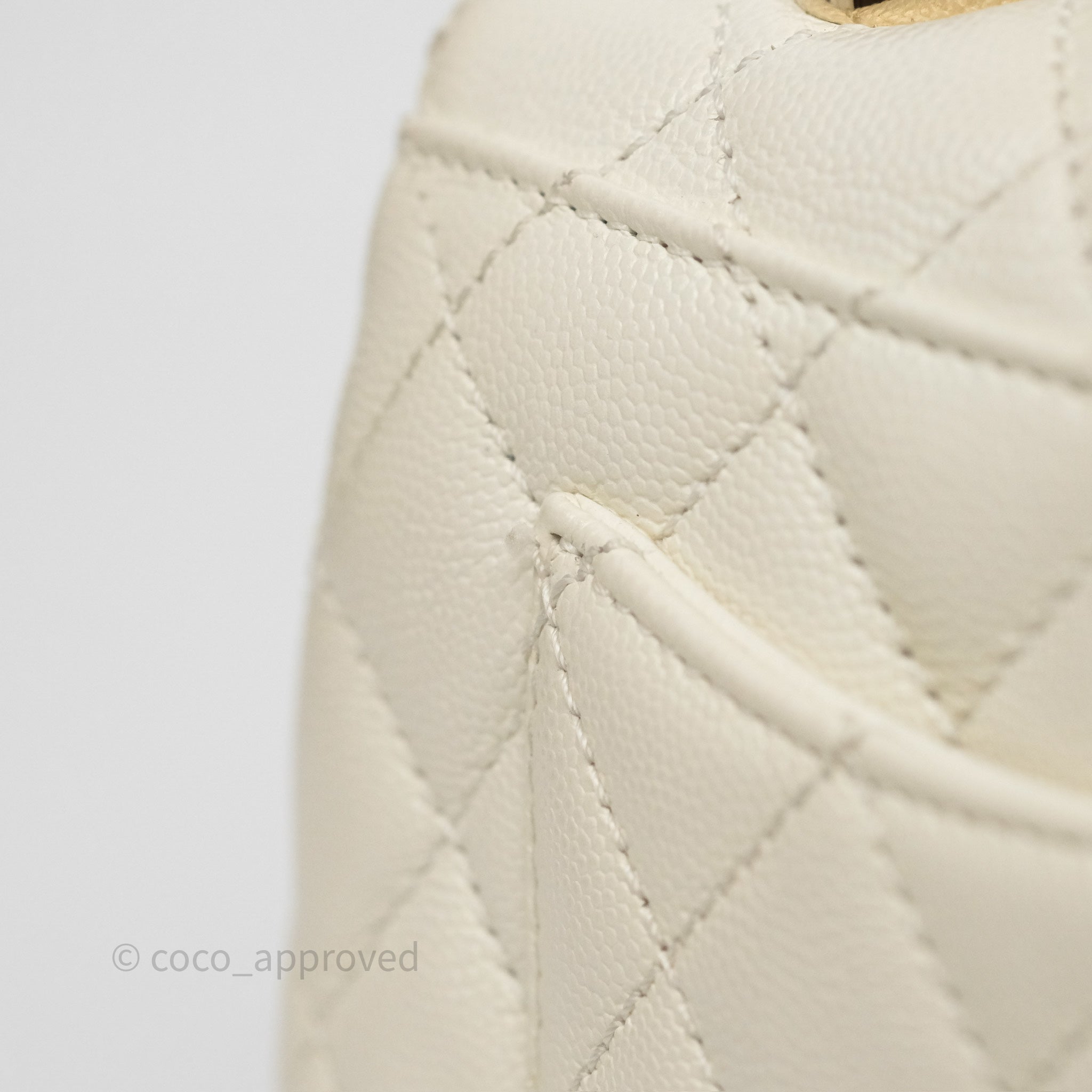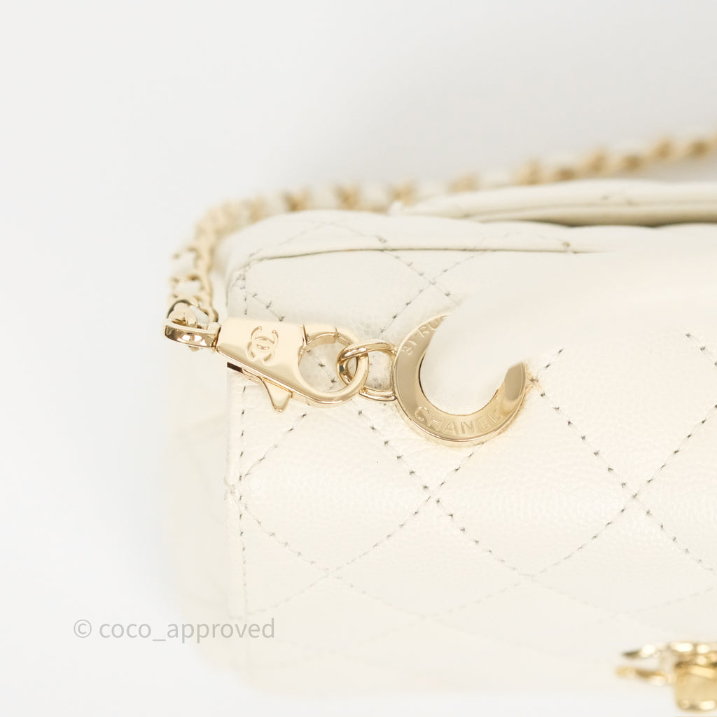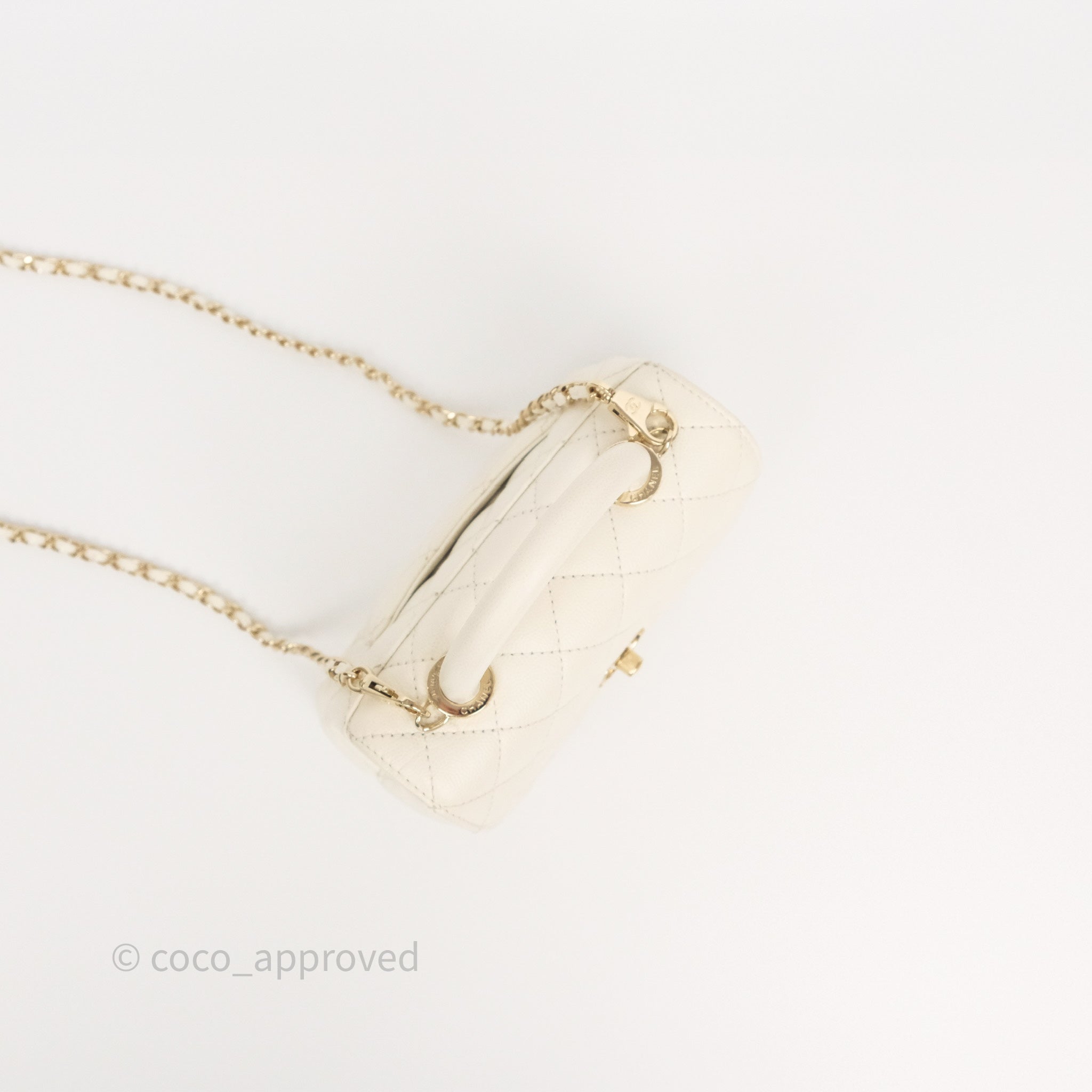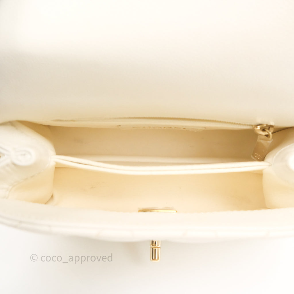 Chanel Mini Coco Handle Quilted Ivory White Caviar Gold Hardware