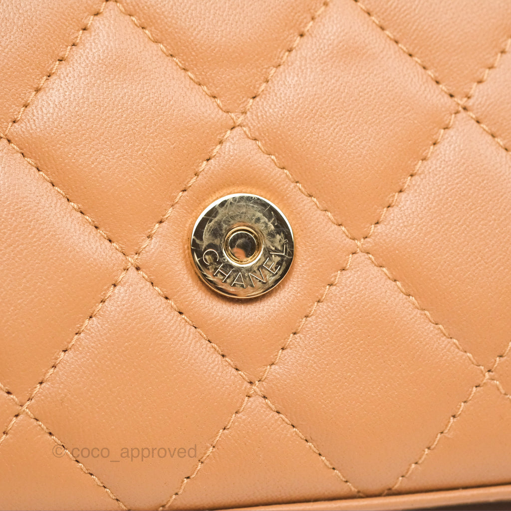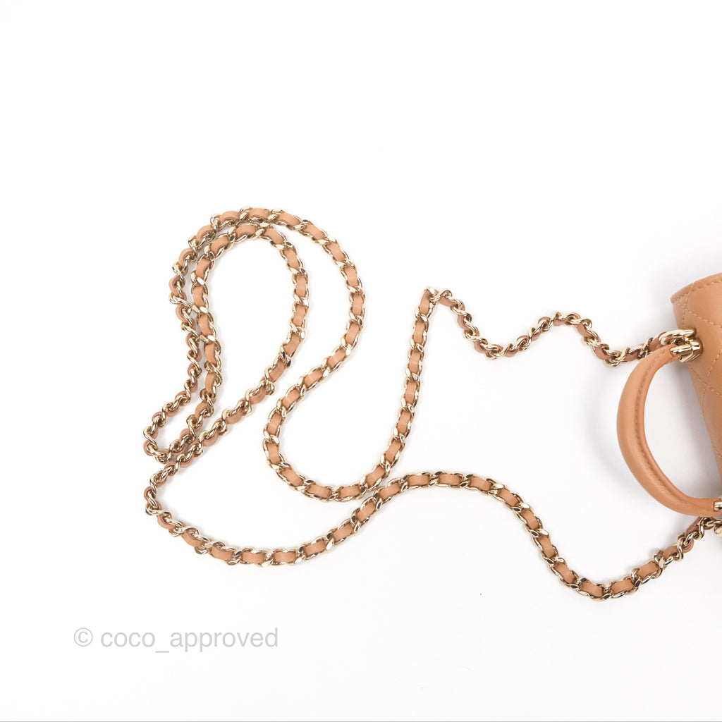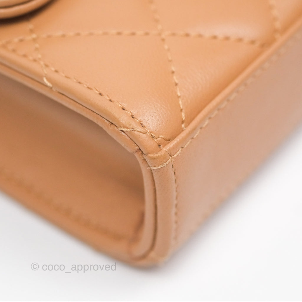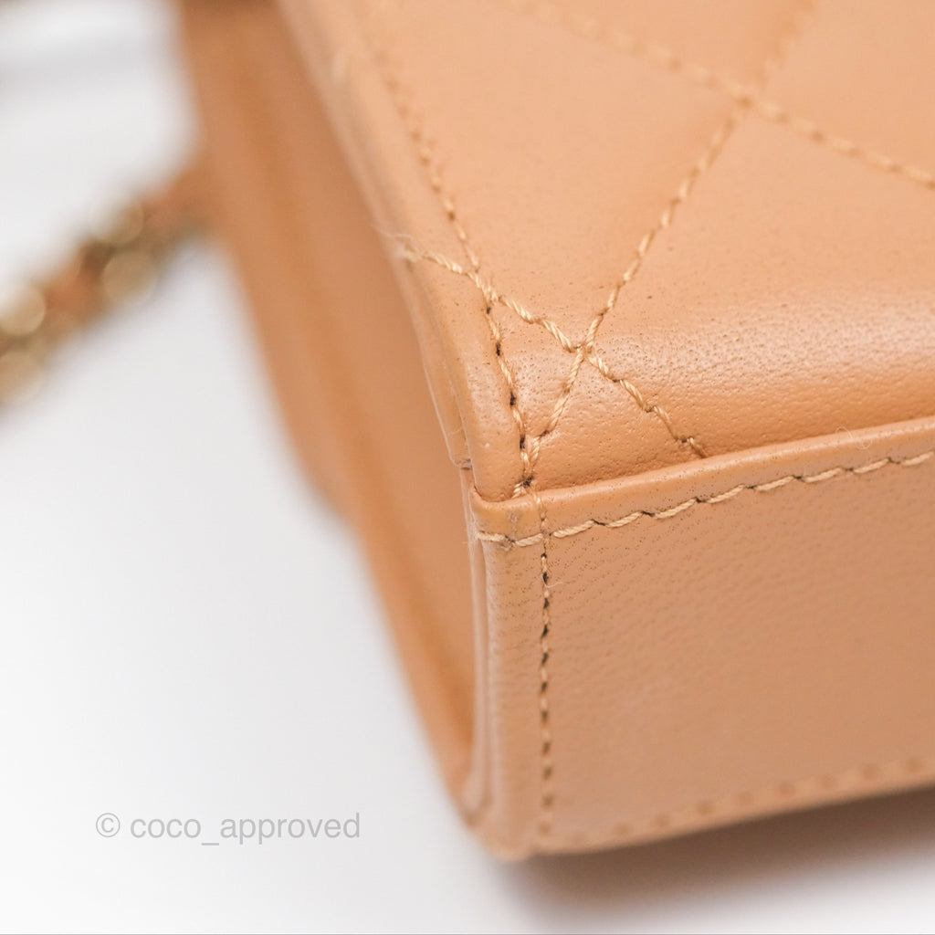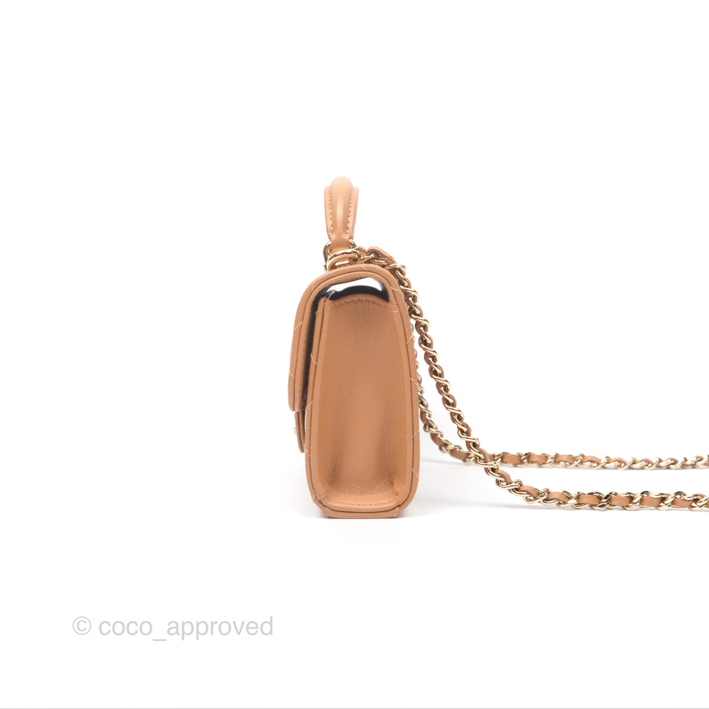 Chanel Mini Handle Clutch With Chain Caramel Lambskin Gold Hardware