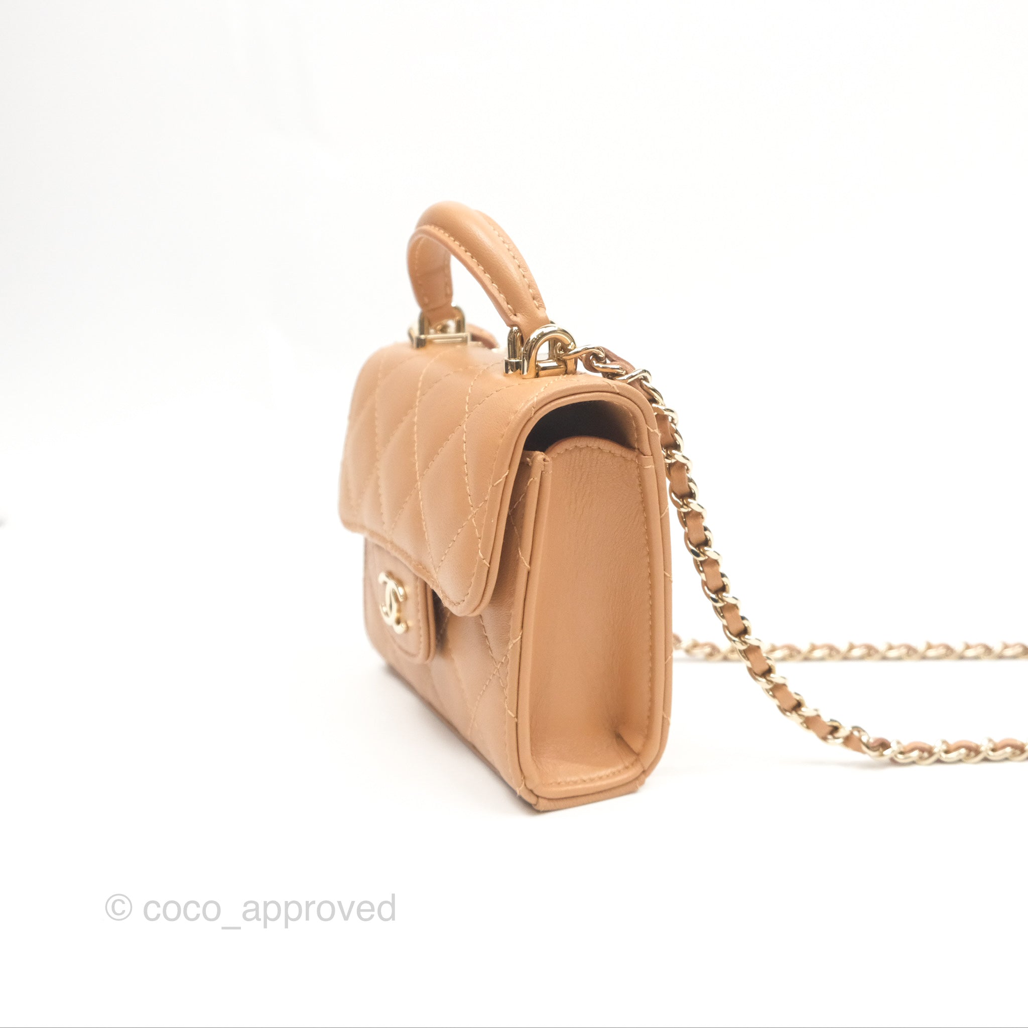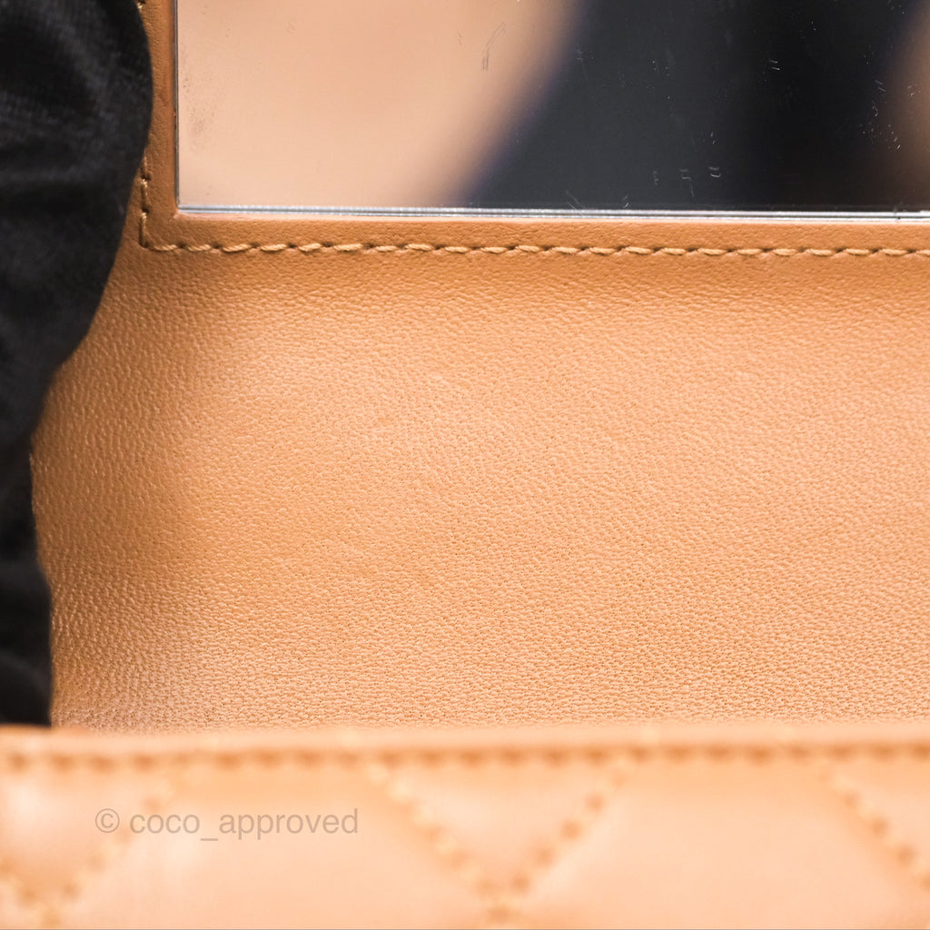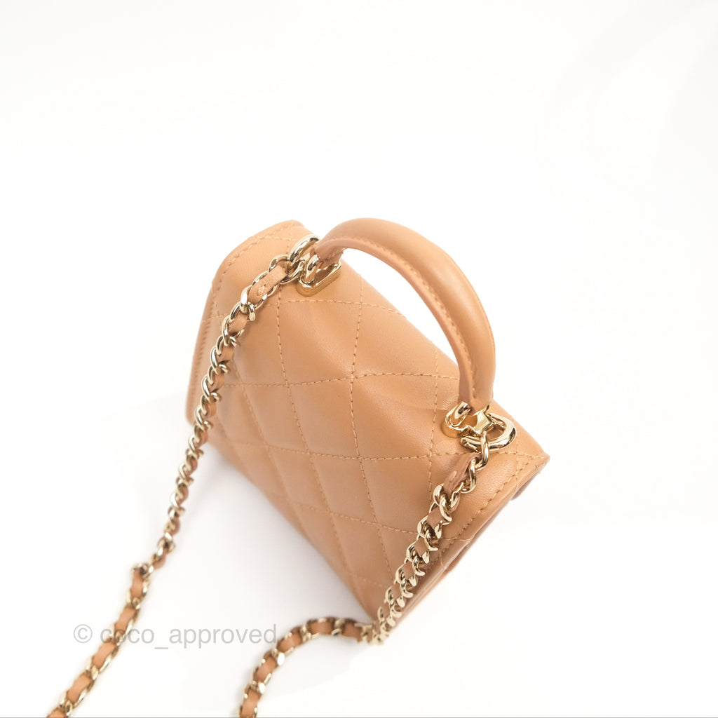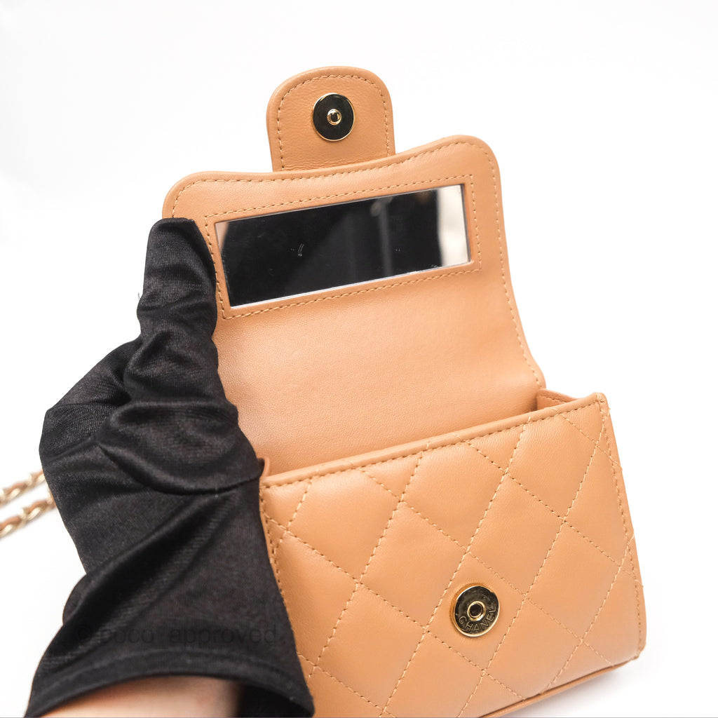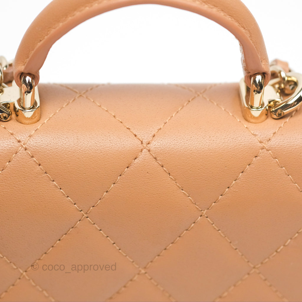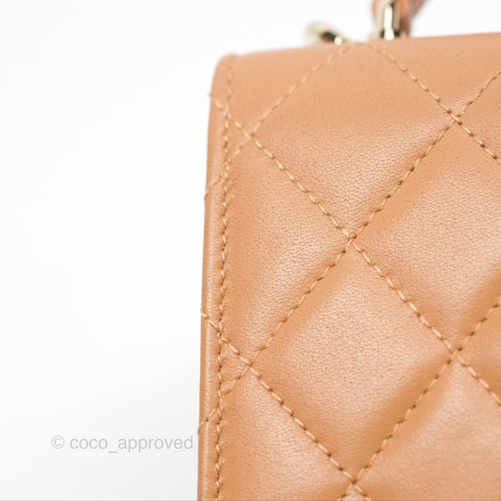 Chanel Mini Handle Clutch With Chain Caramel Lambskin Gold Hardware