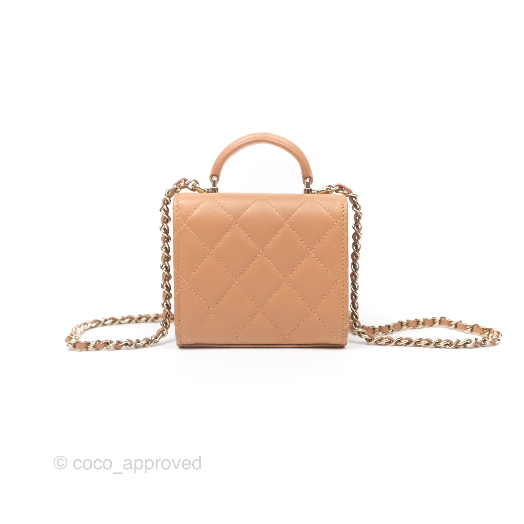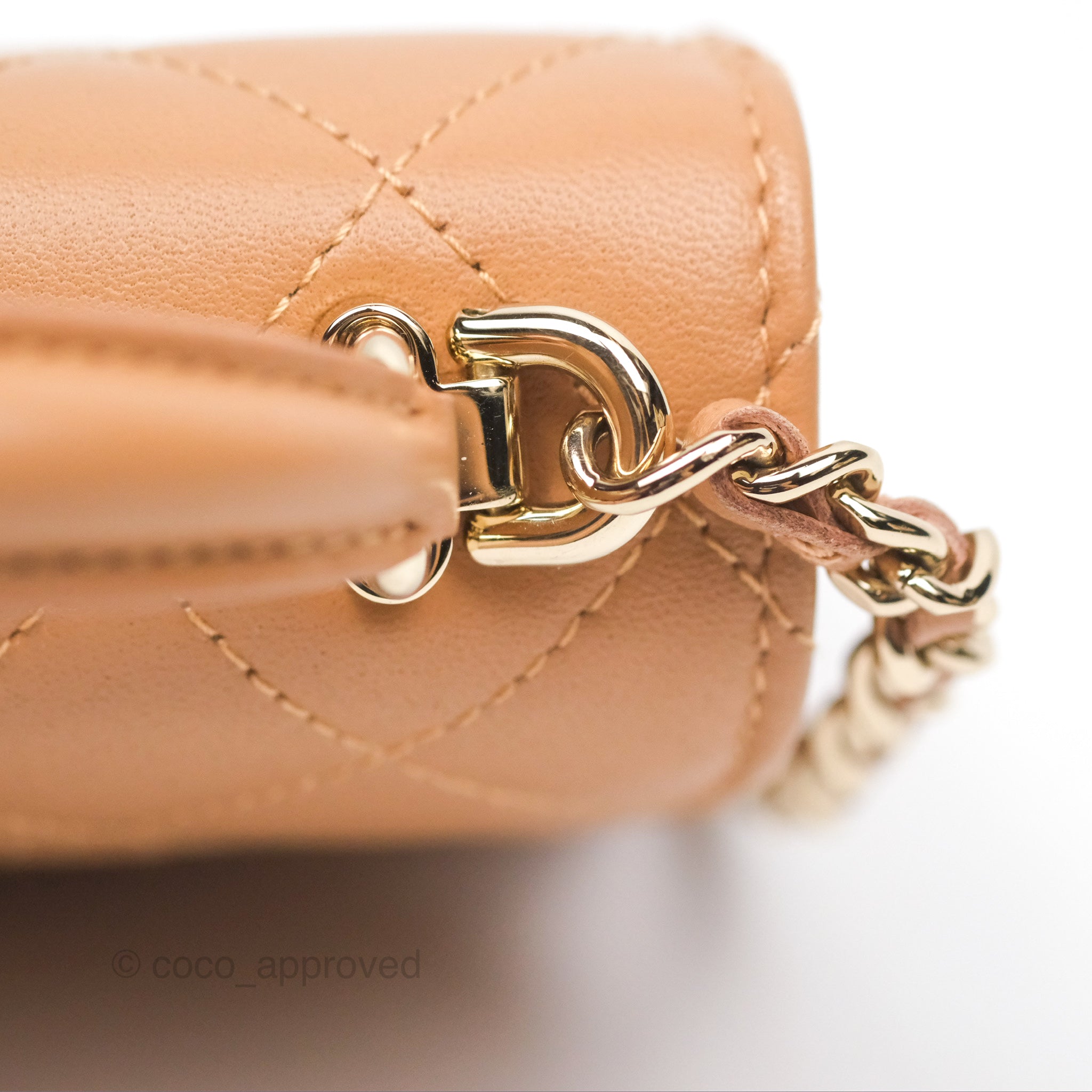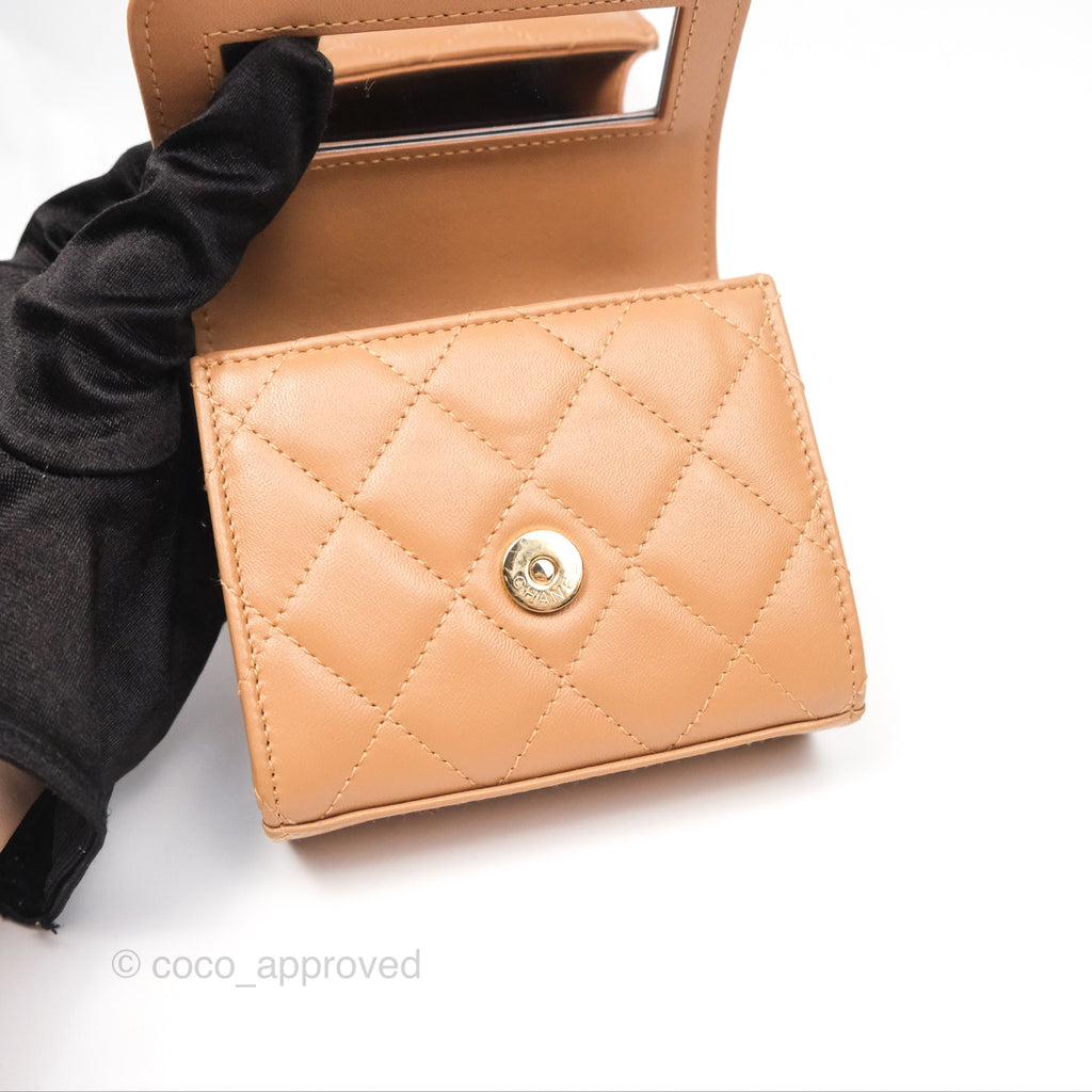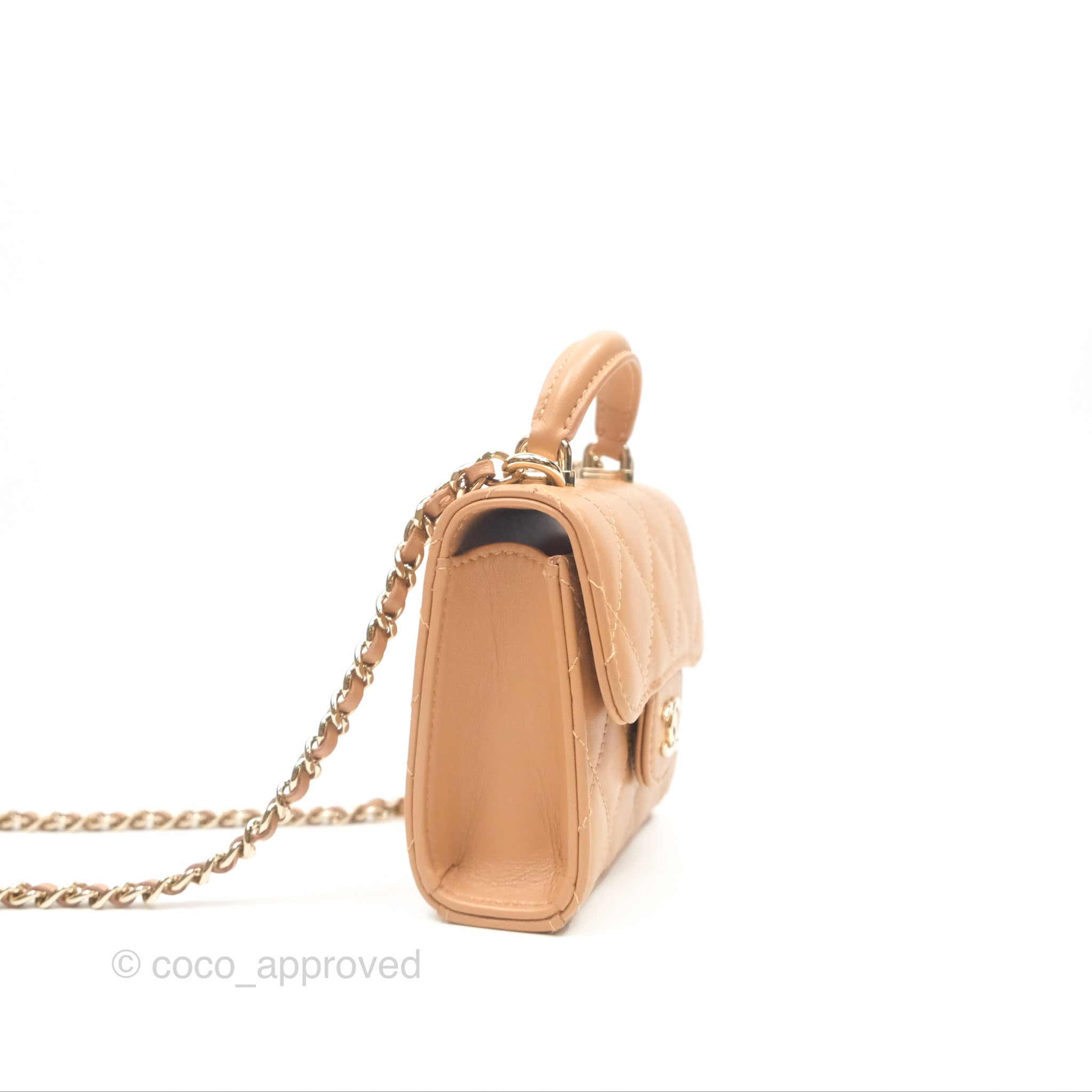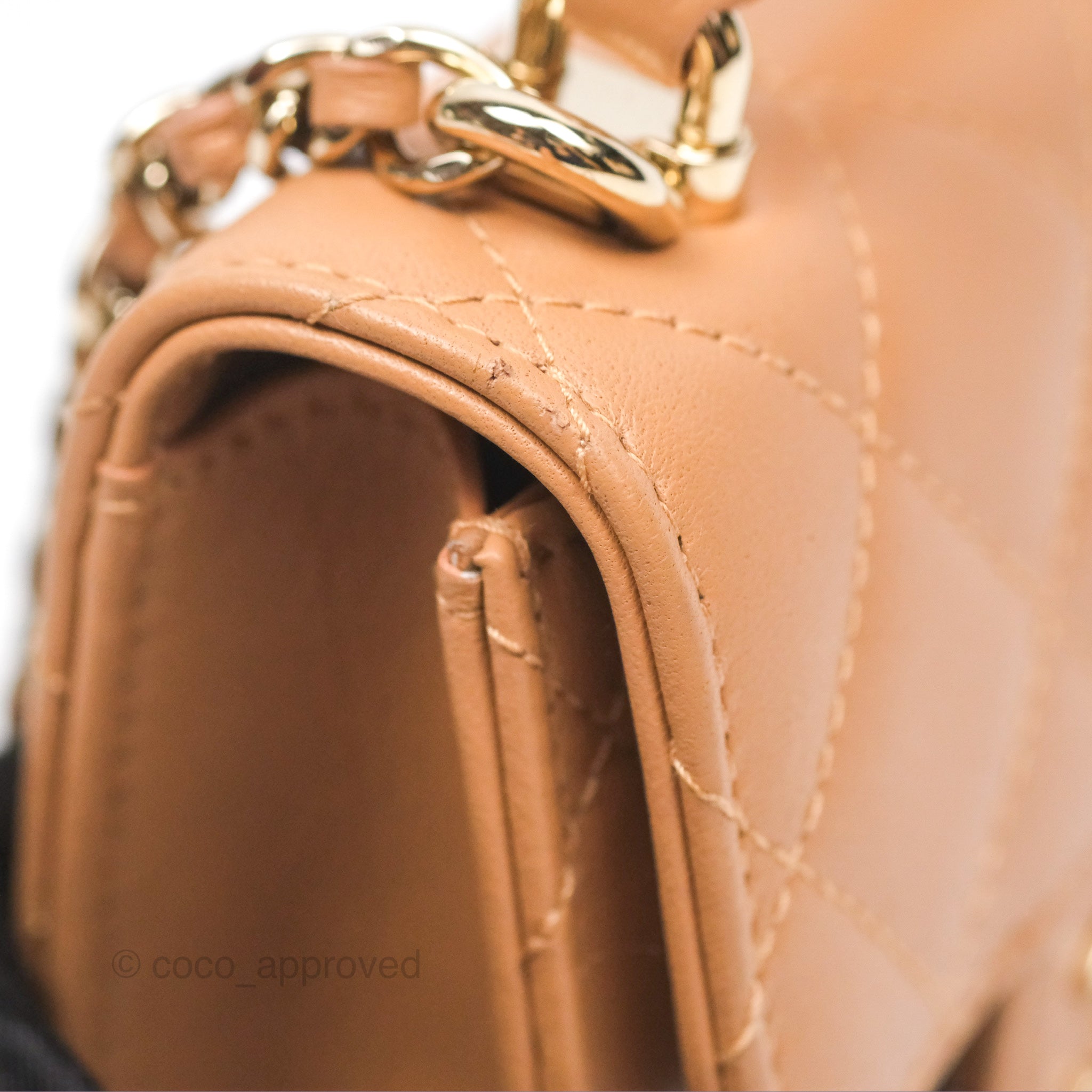Chanel Mini Handle Clutch With Chain Caramel Lambskin Gold Hardware