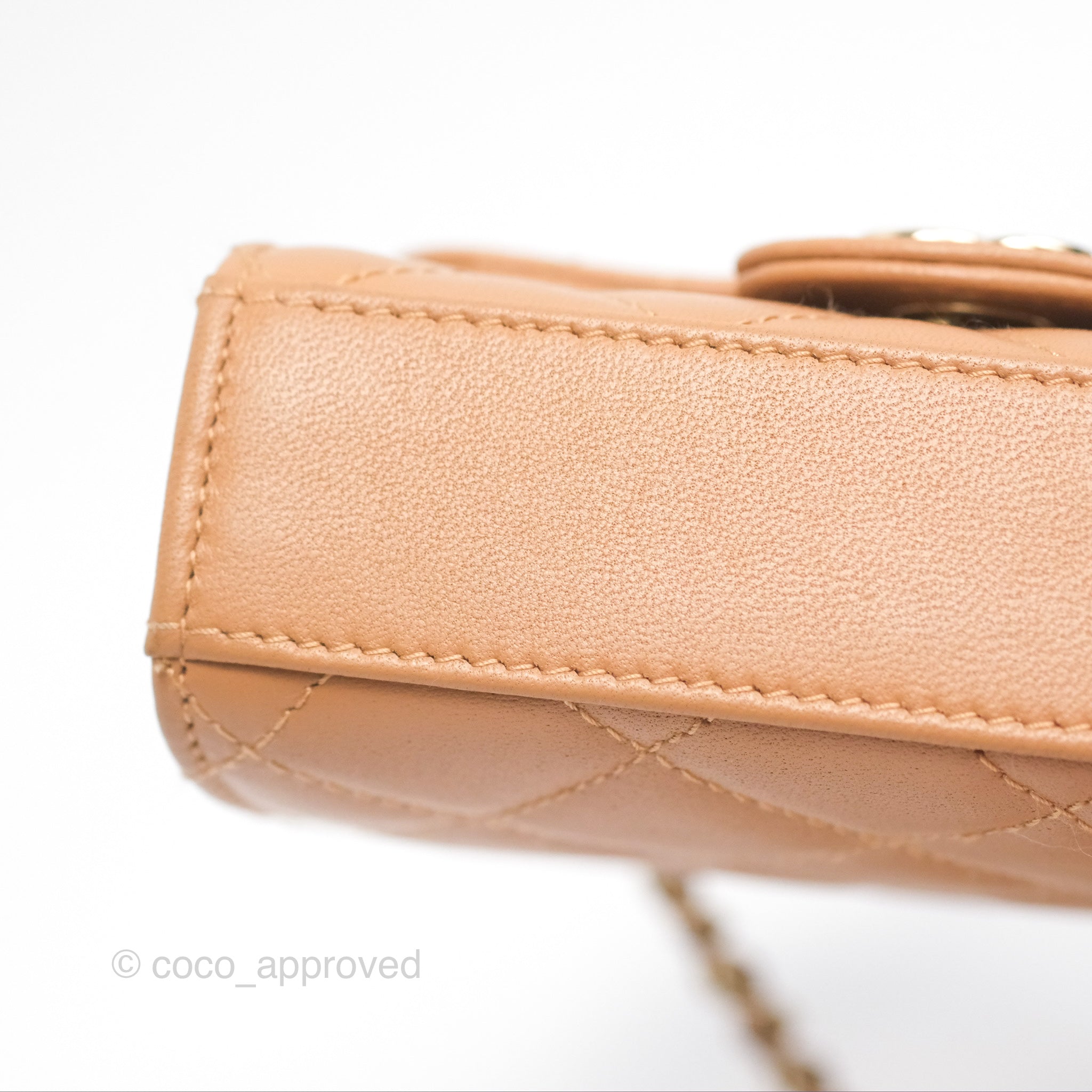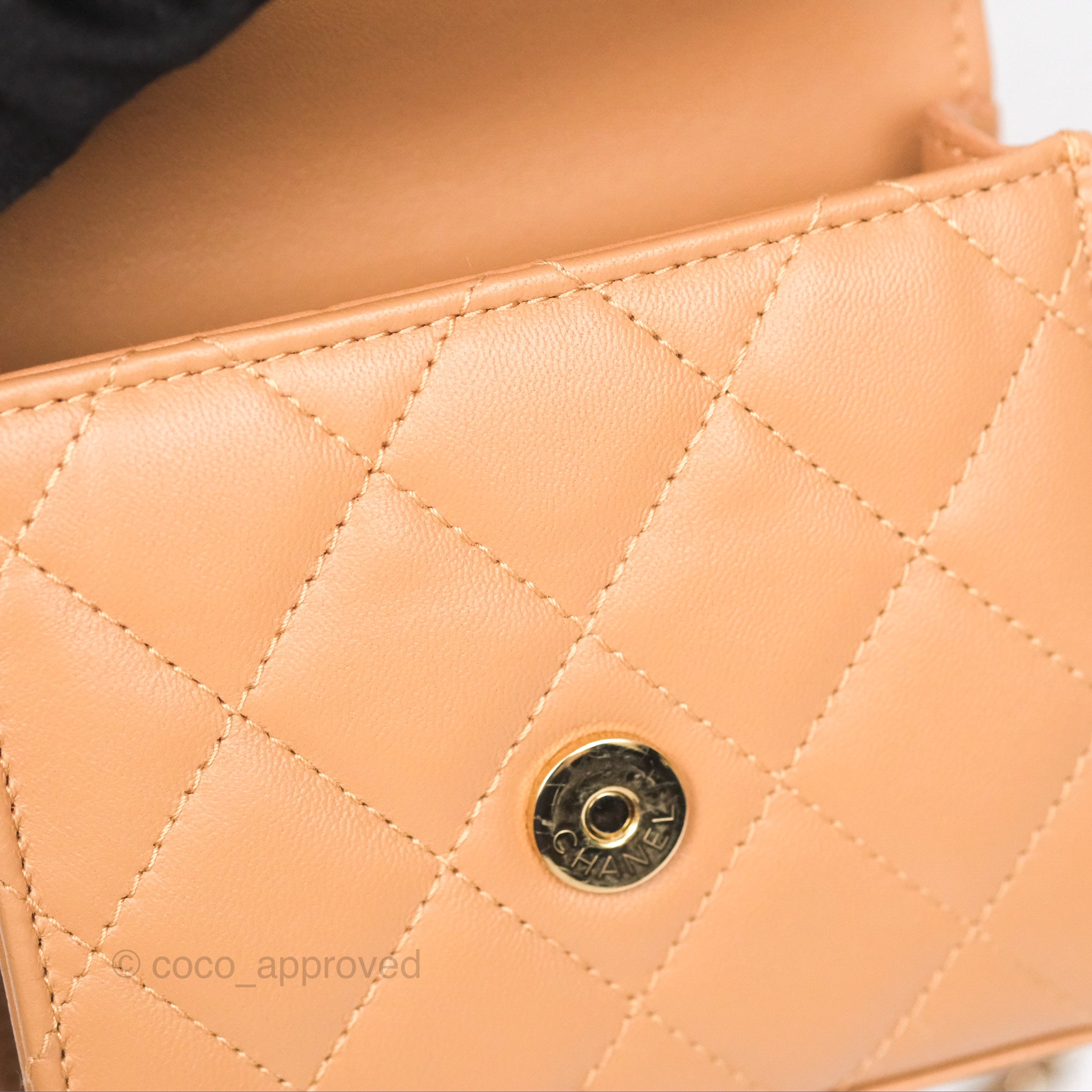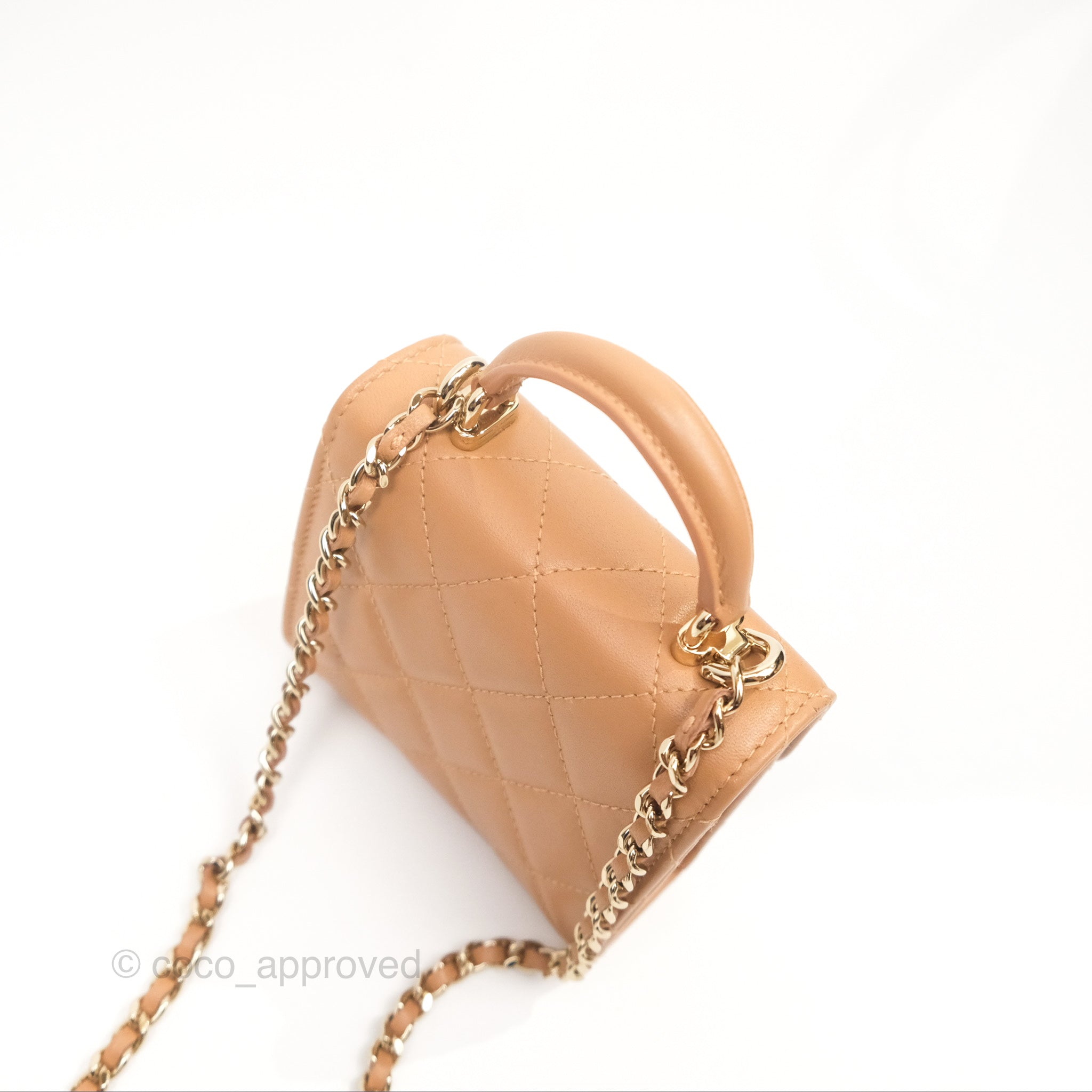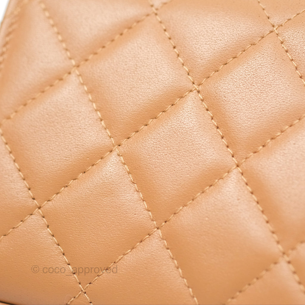 Chanel Mini Handle Clutch With Chain Caramel Lambskin Gold Hardware