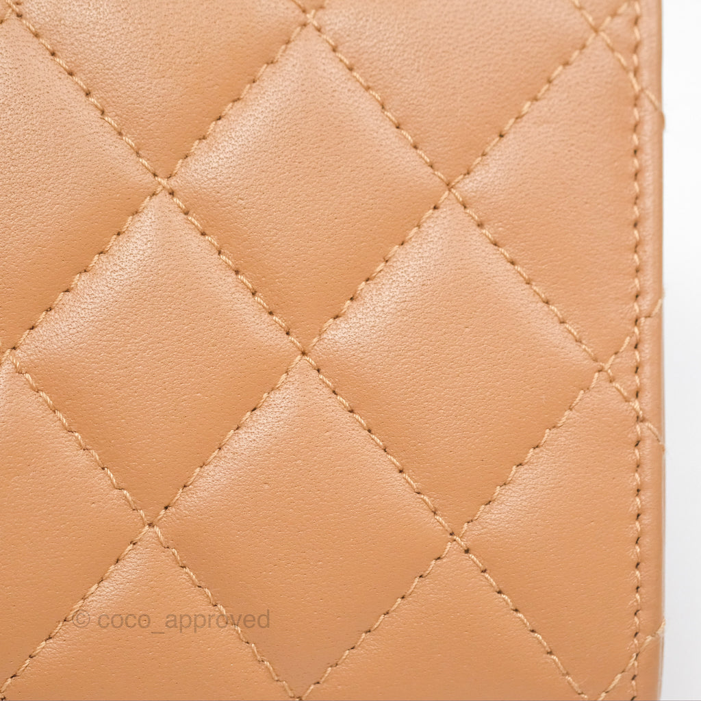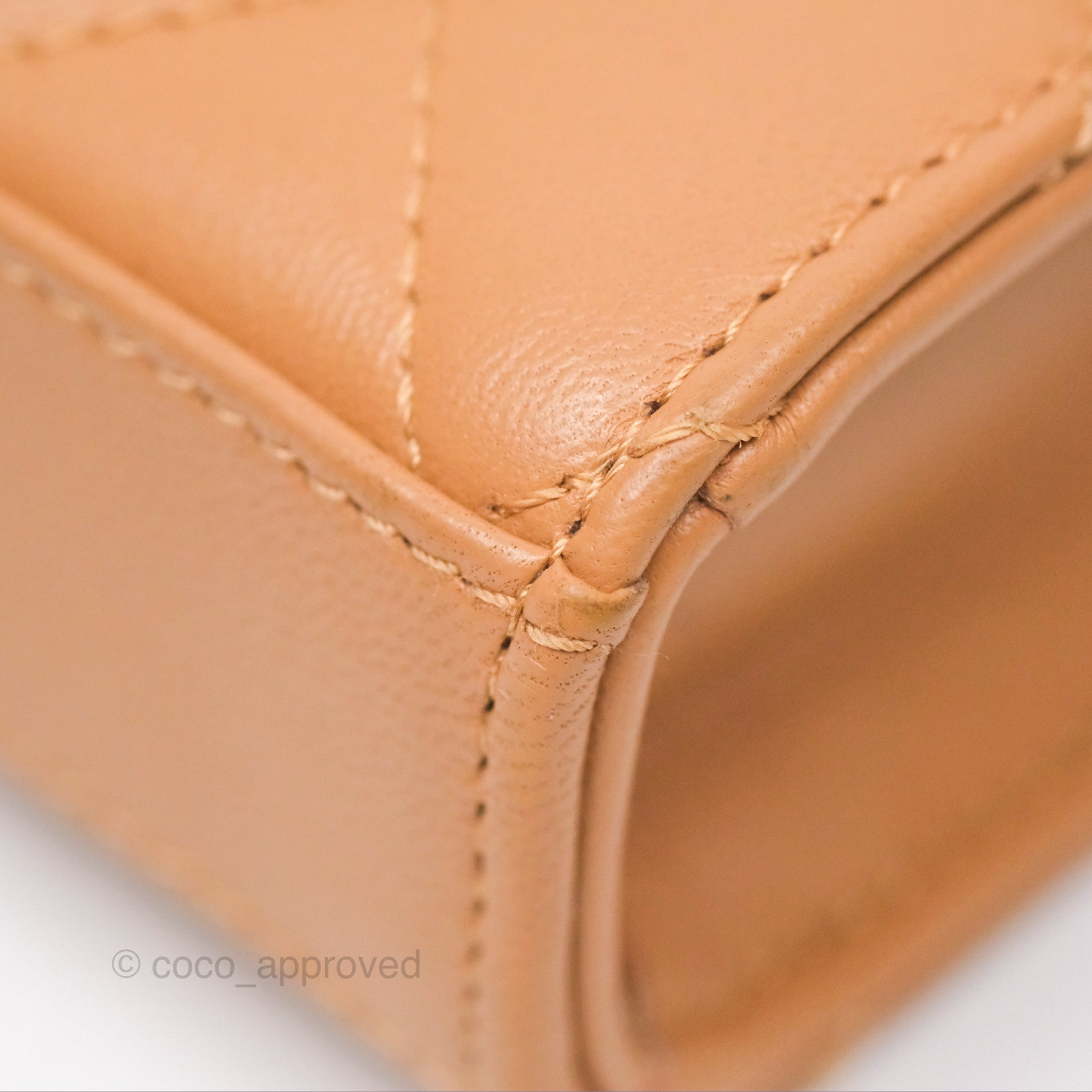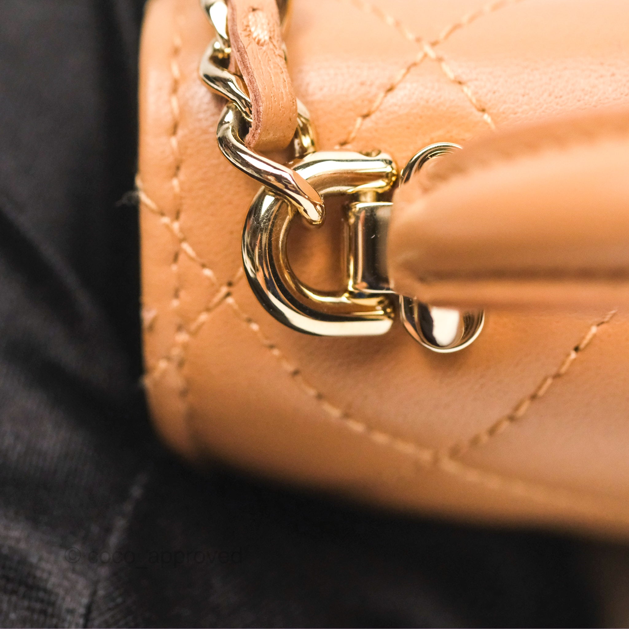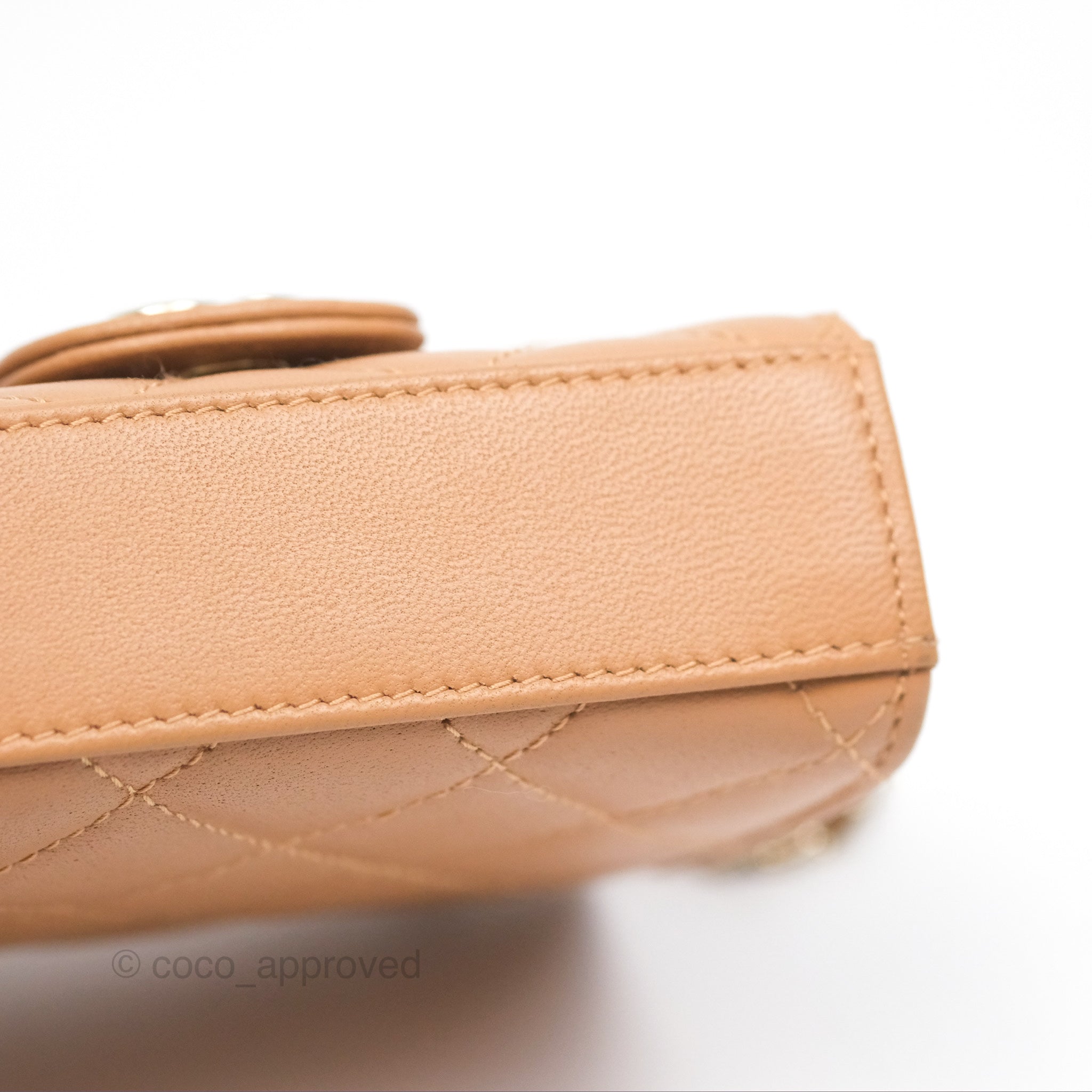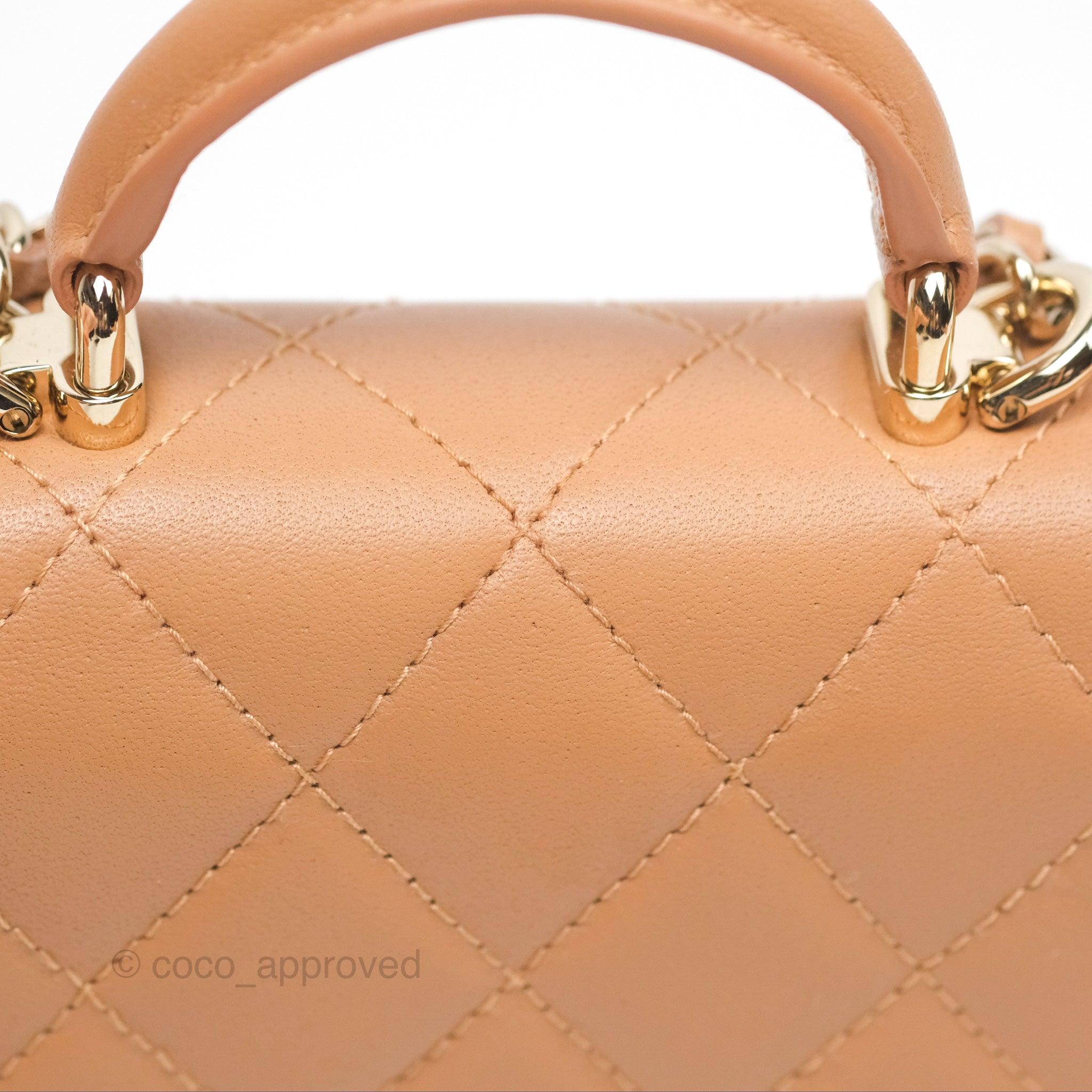 Chanel Mini Handle Clutch With Chain Caramel Lambskin Gold Hardware