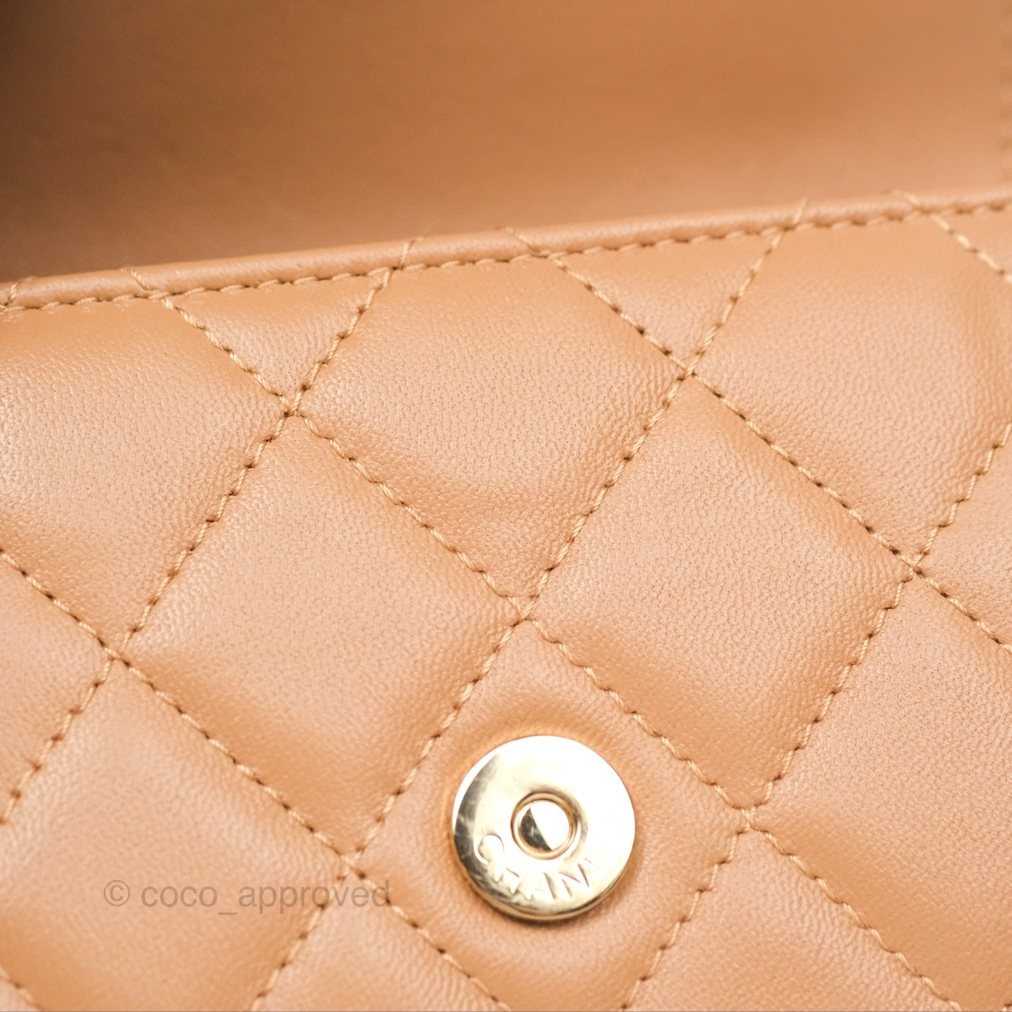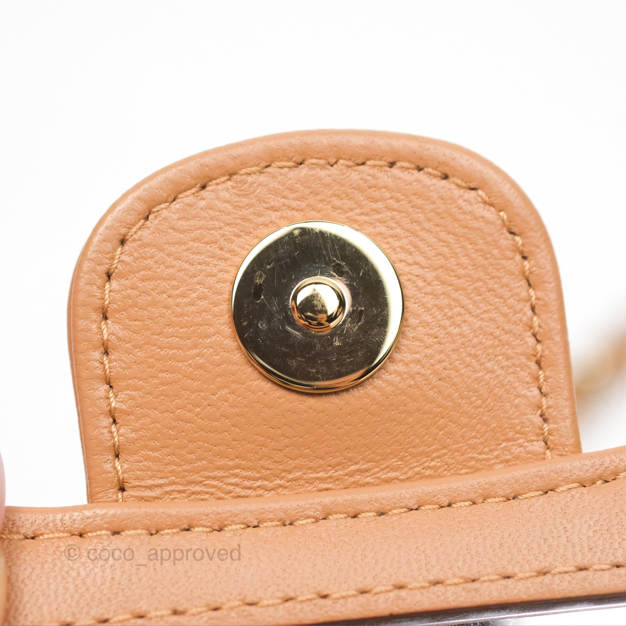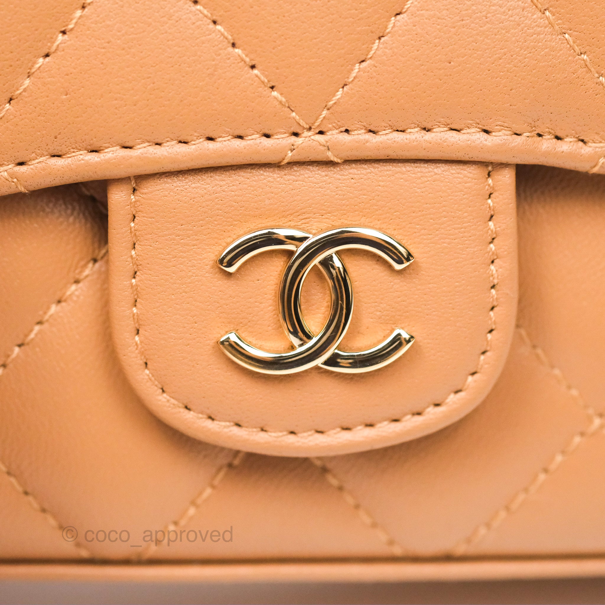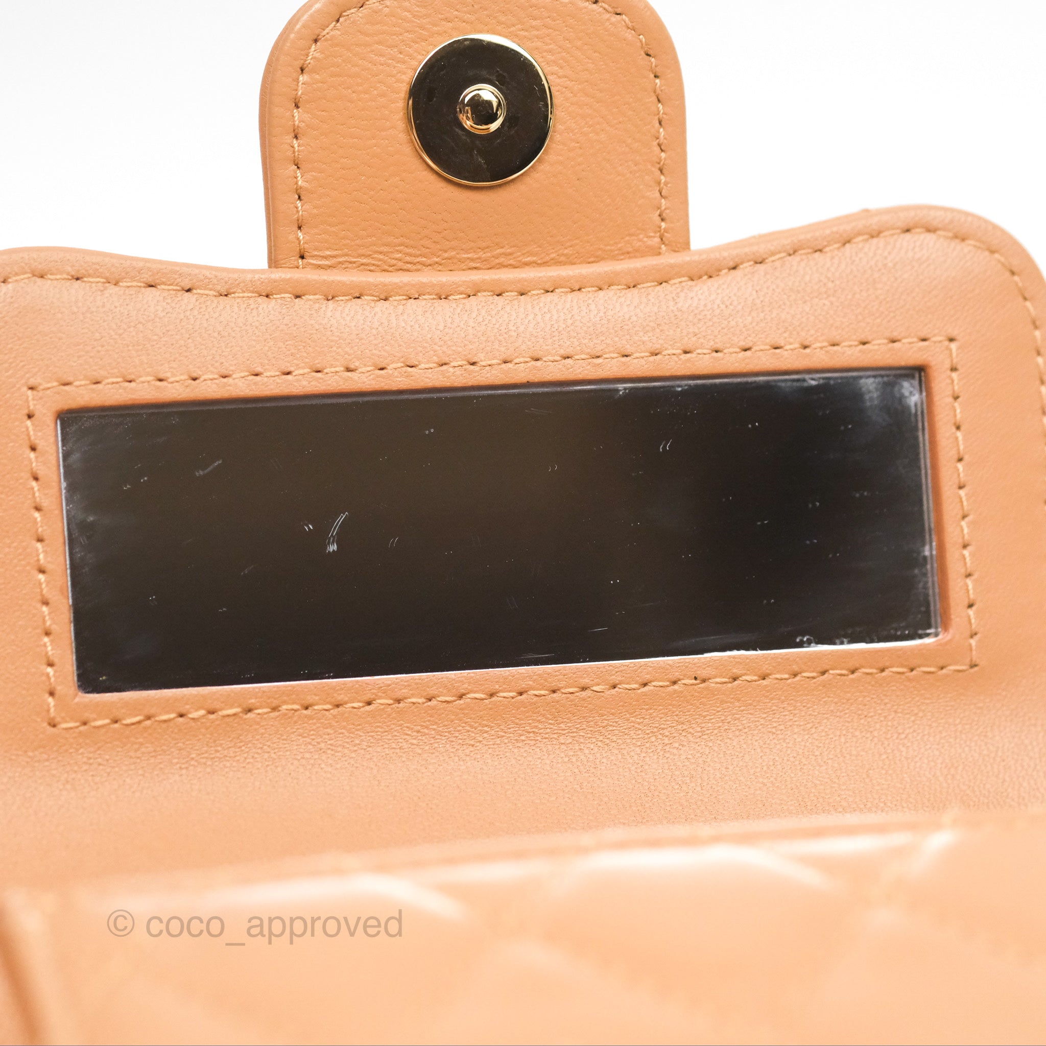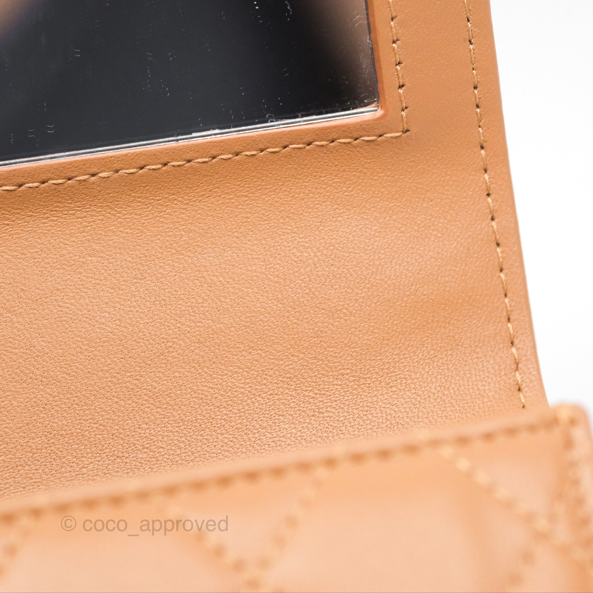 Chanel Mini Handle Clutch With Chain Caramel Lambskin Gold Hardware