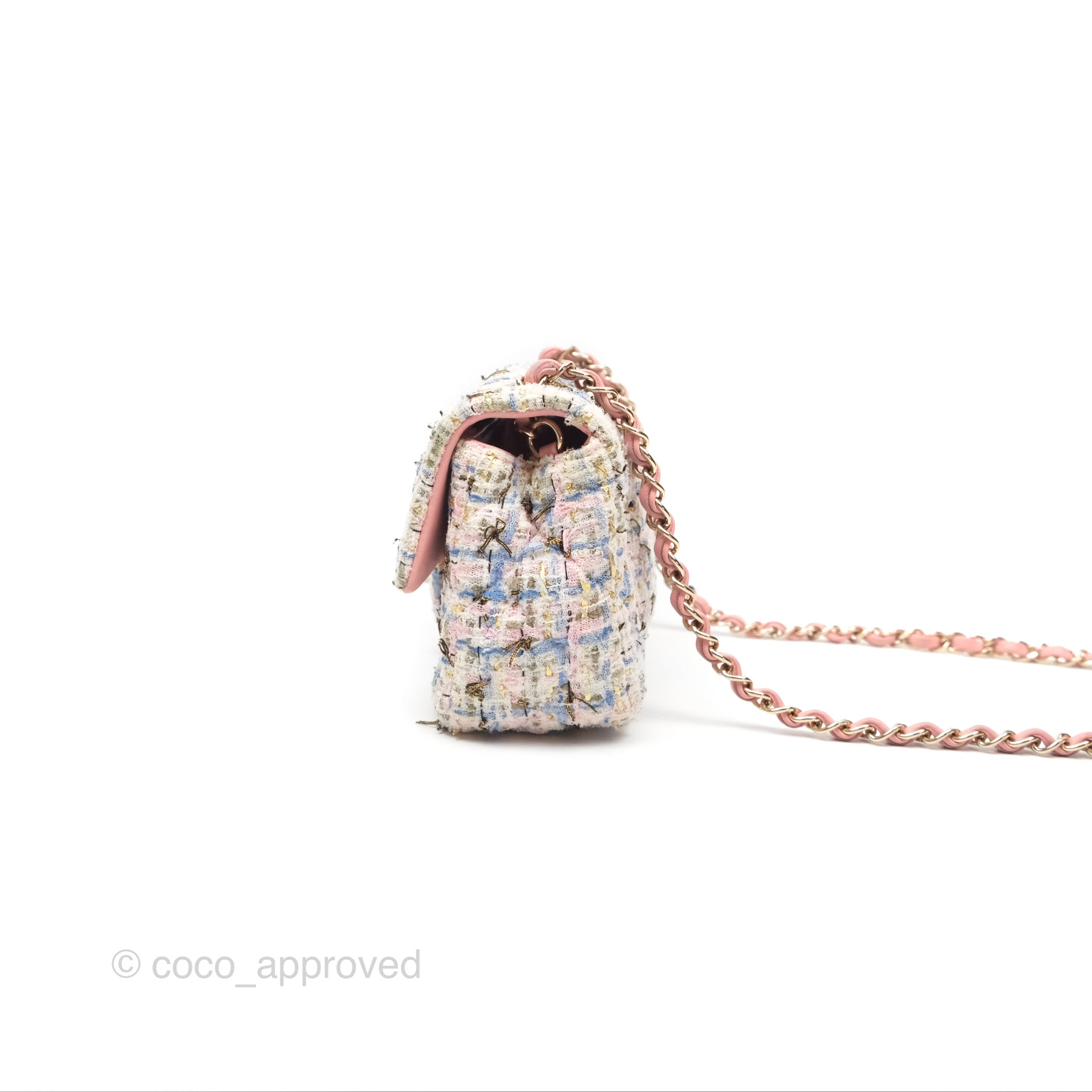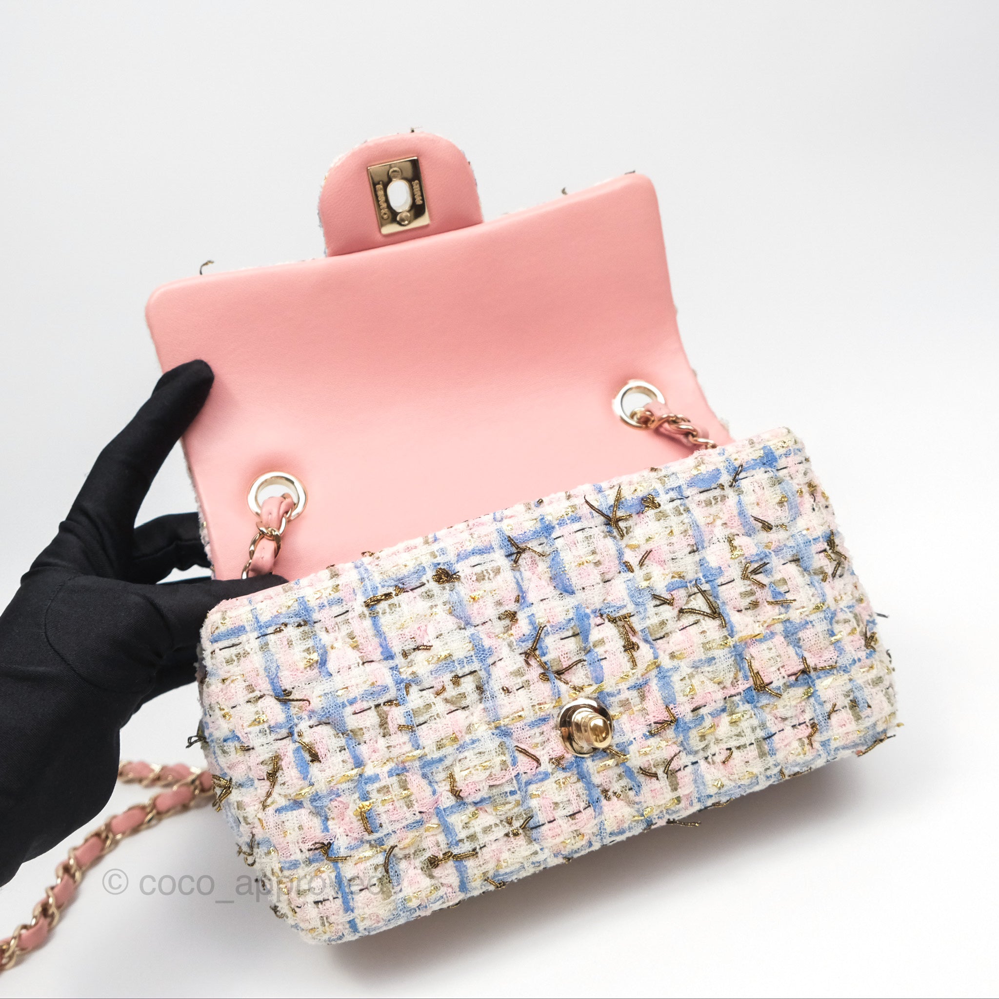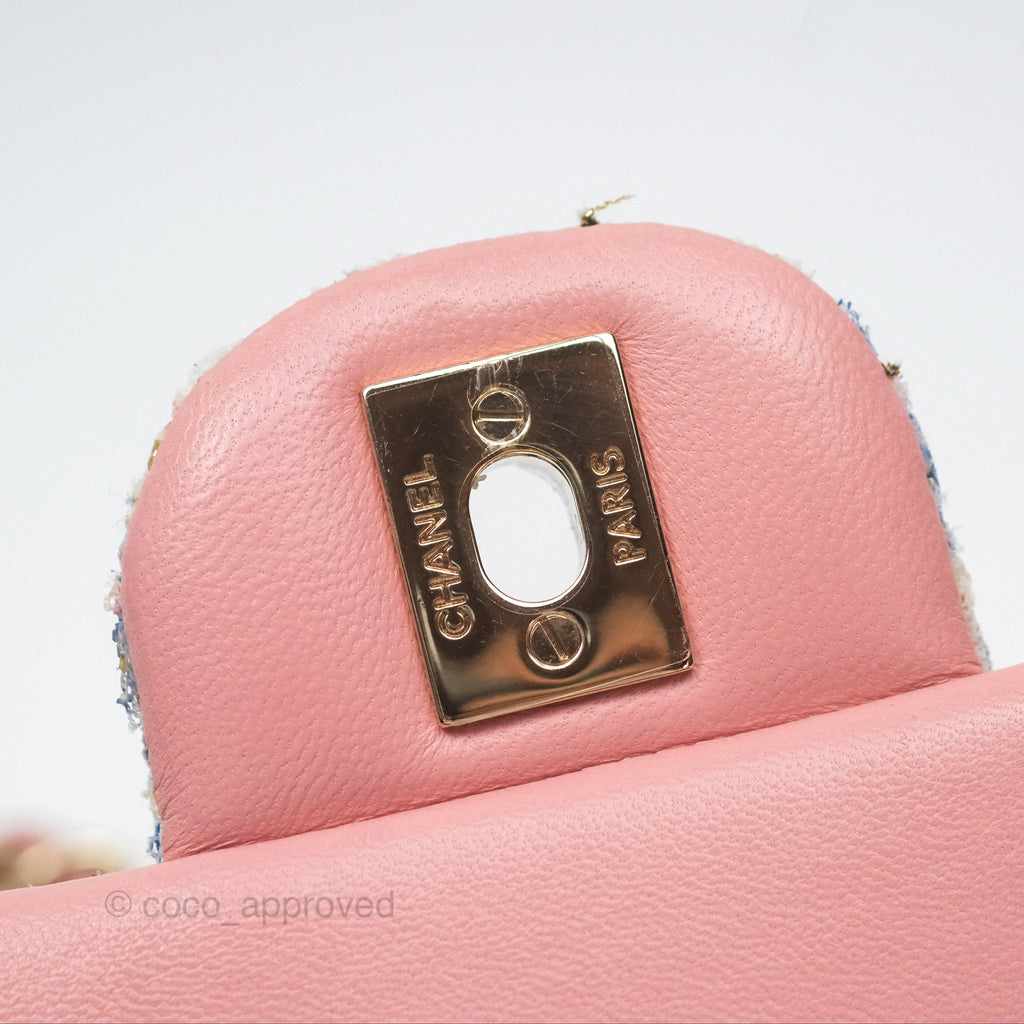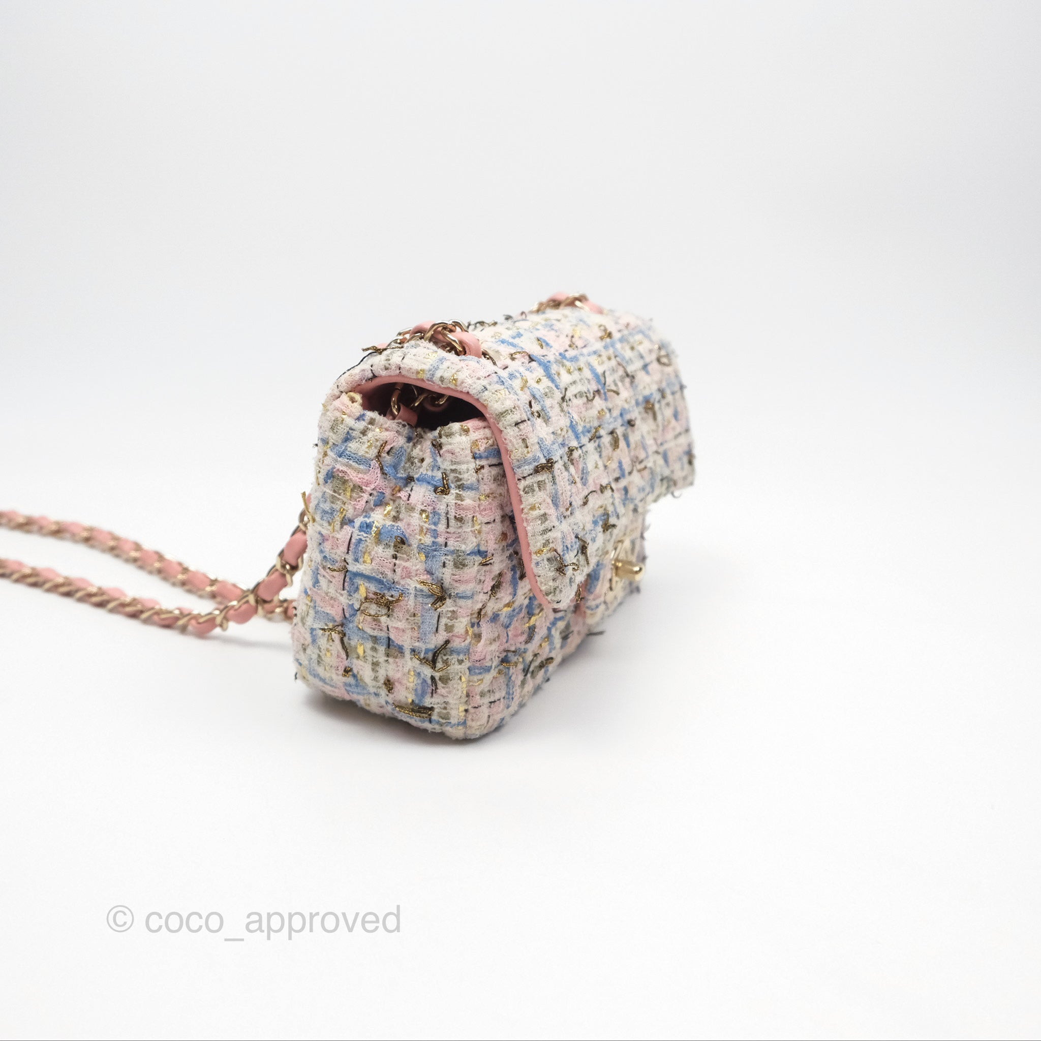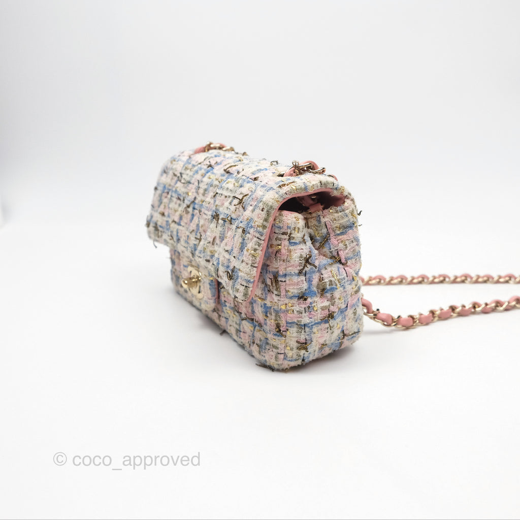 Chanel Mini Rectangular Flap Pink/ Blue/ Gold Tweed Gold Hardware