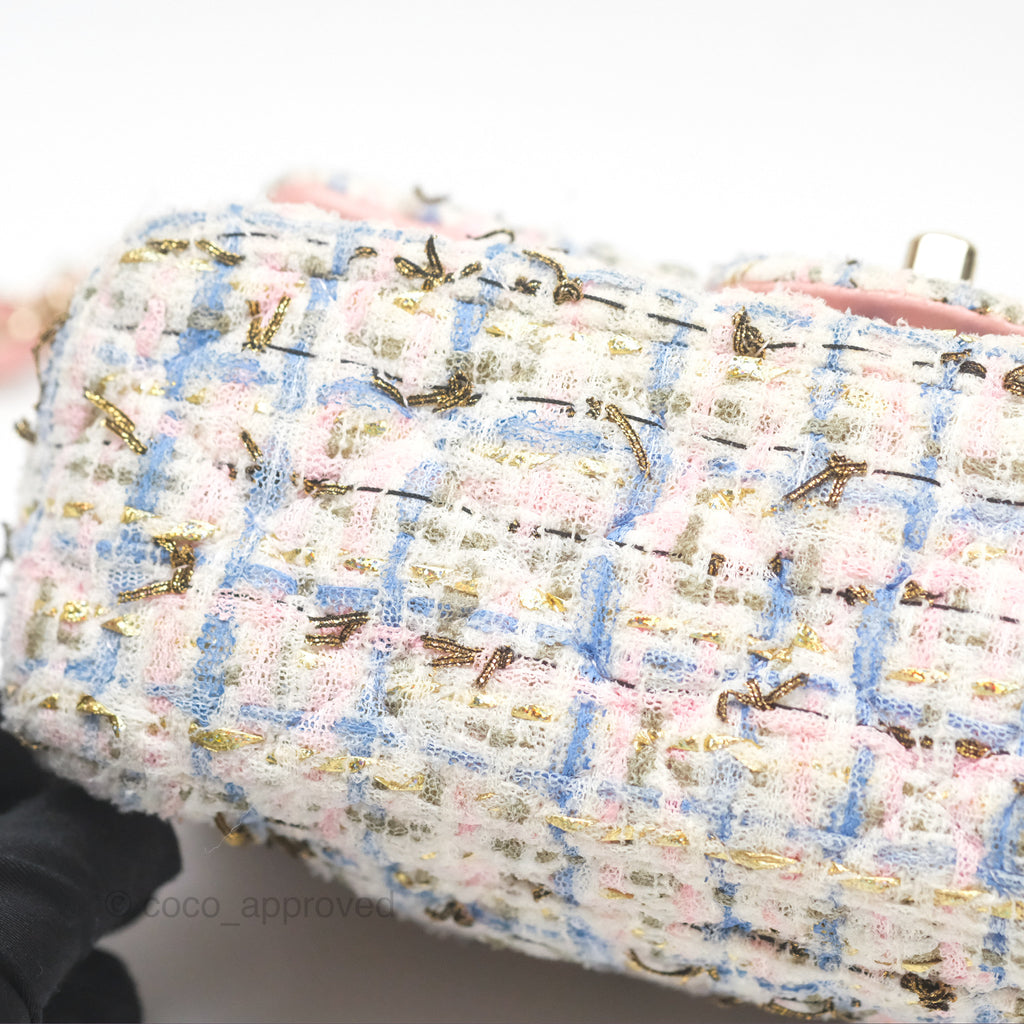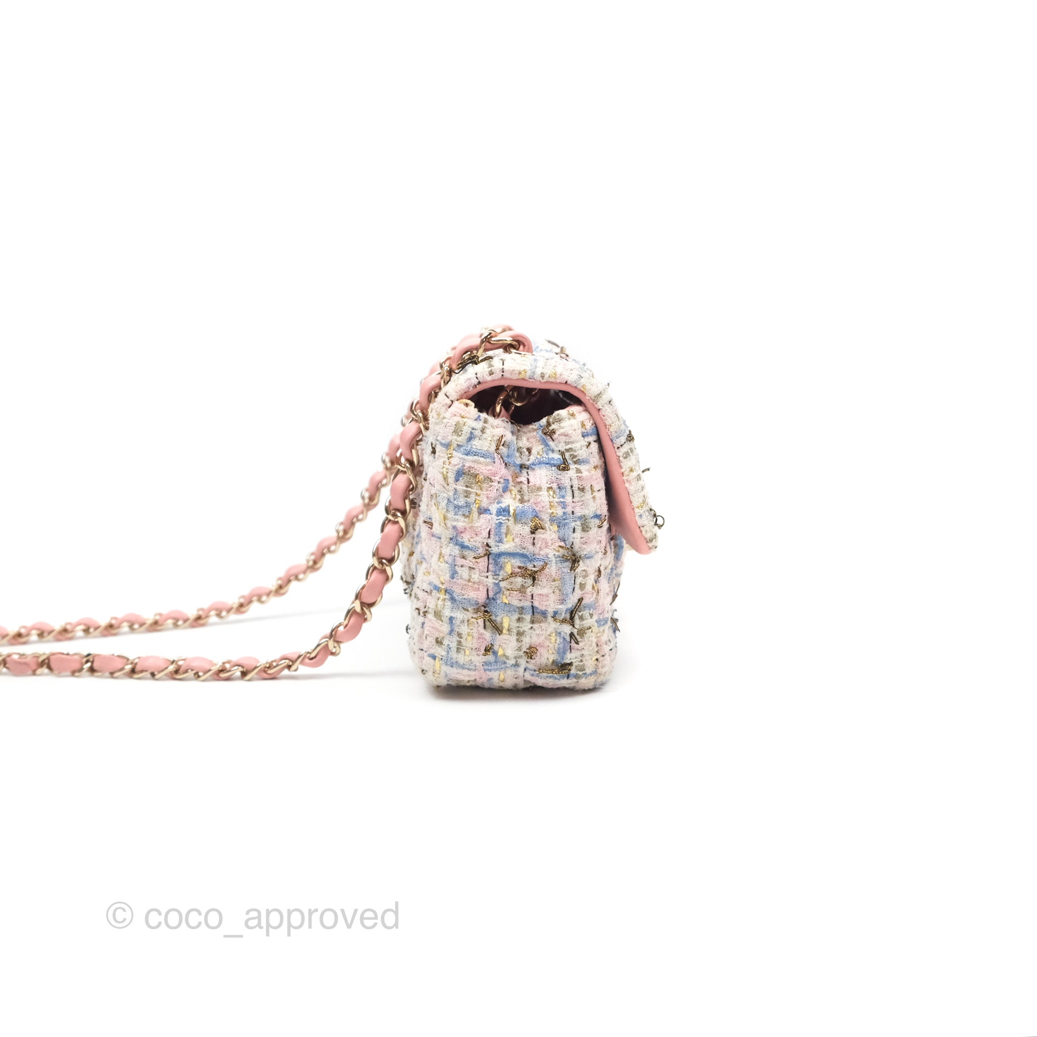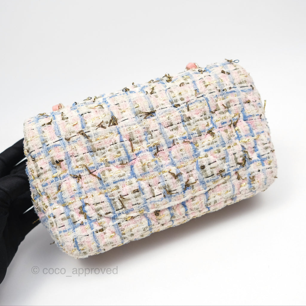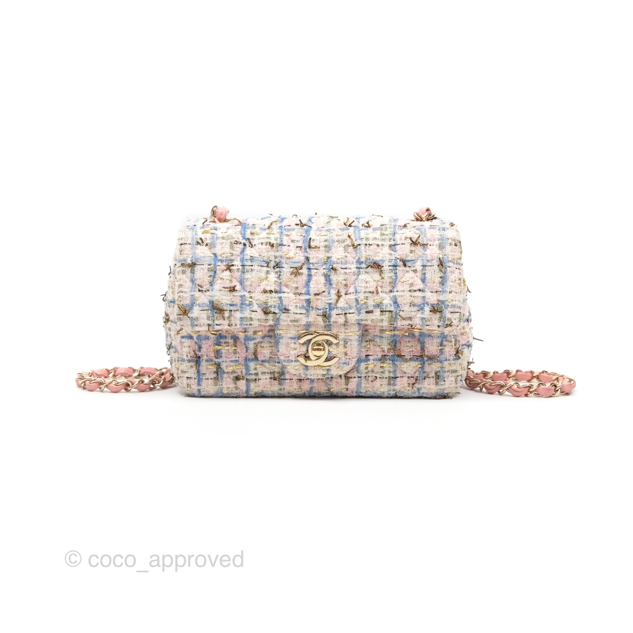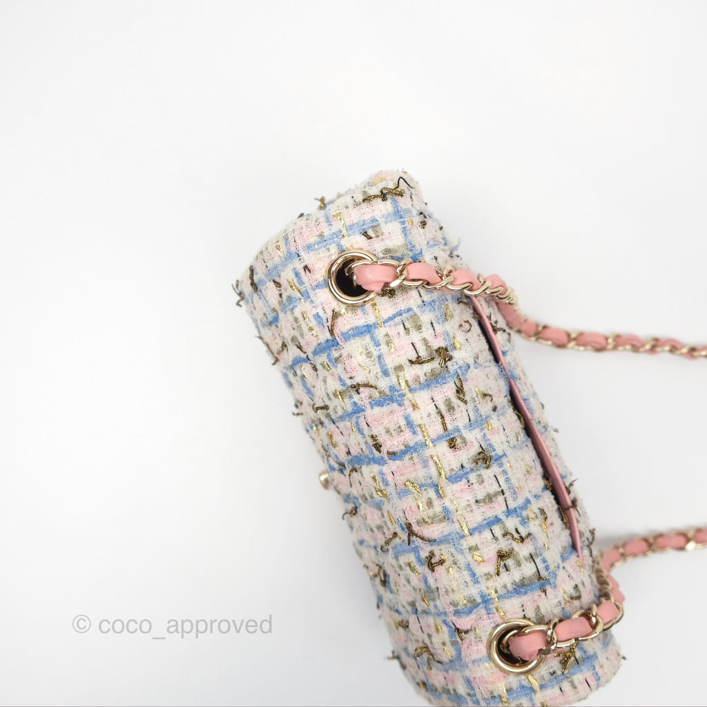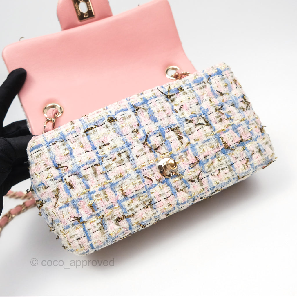 Chanel Mini Rectangular Flap Pink/ Blue/ Gold Tweed Gold Hardware