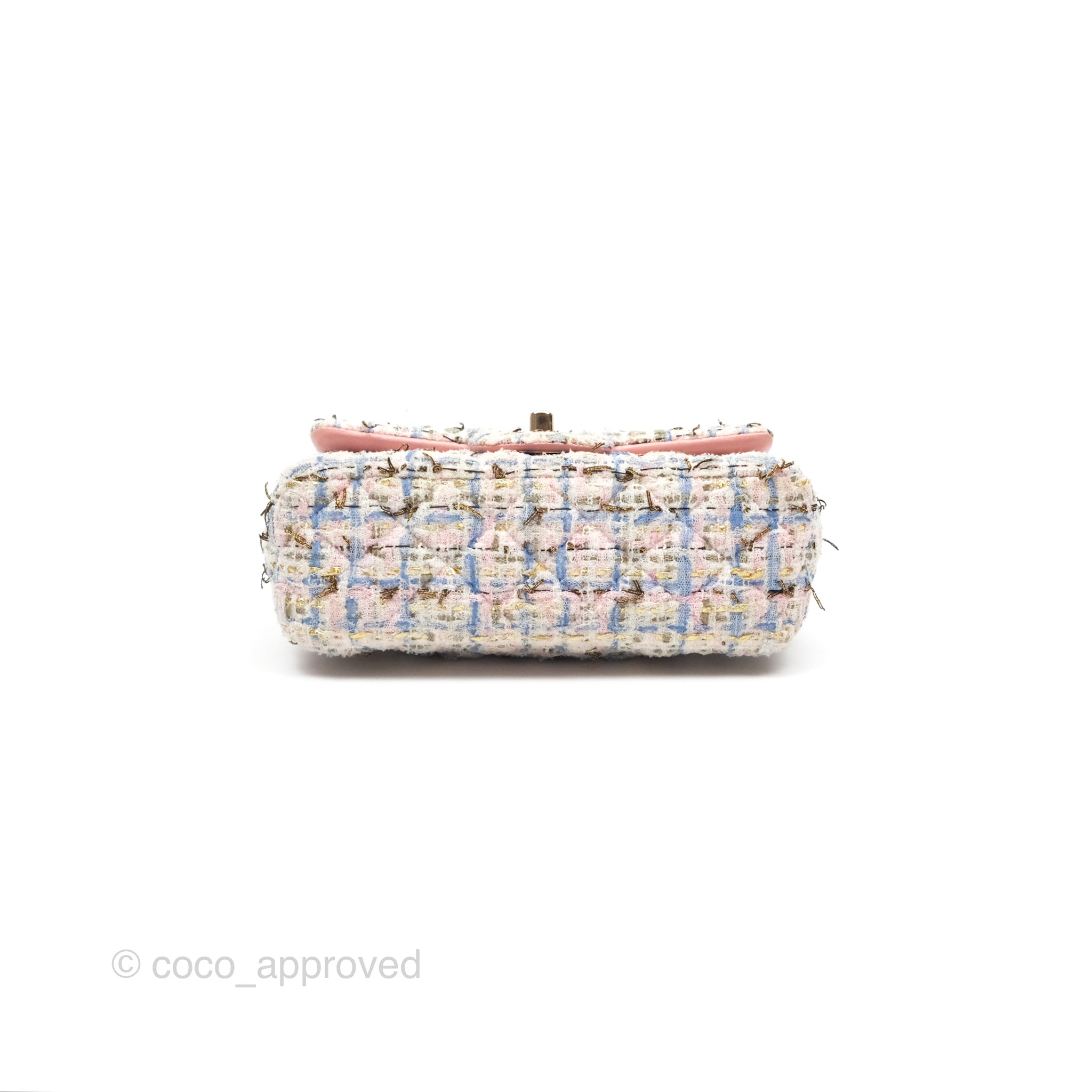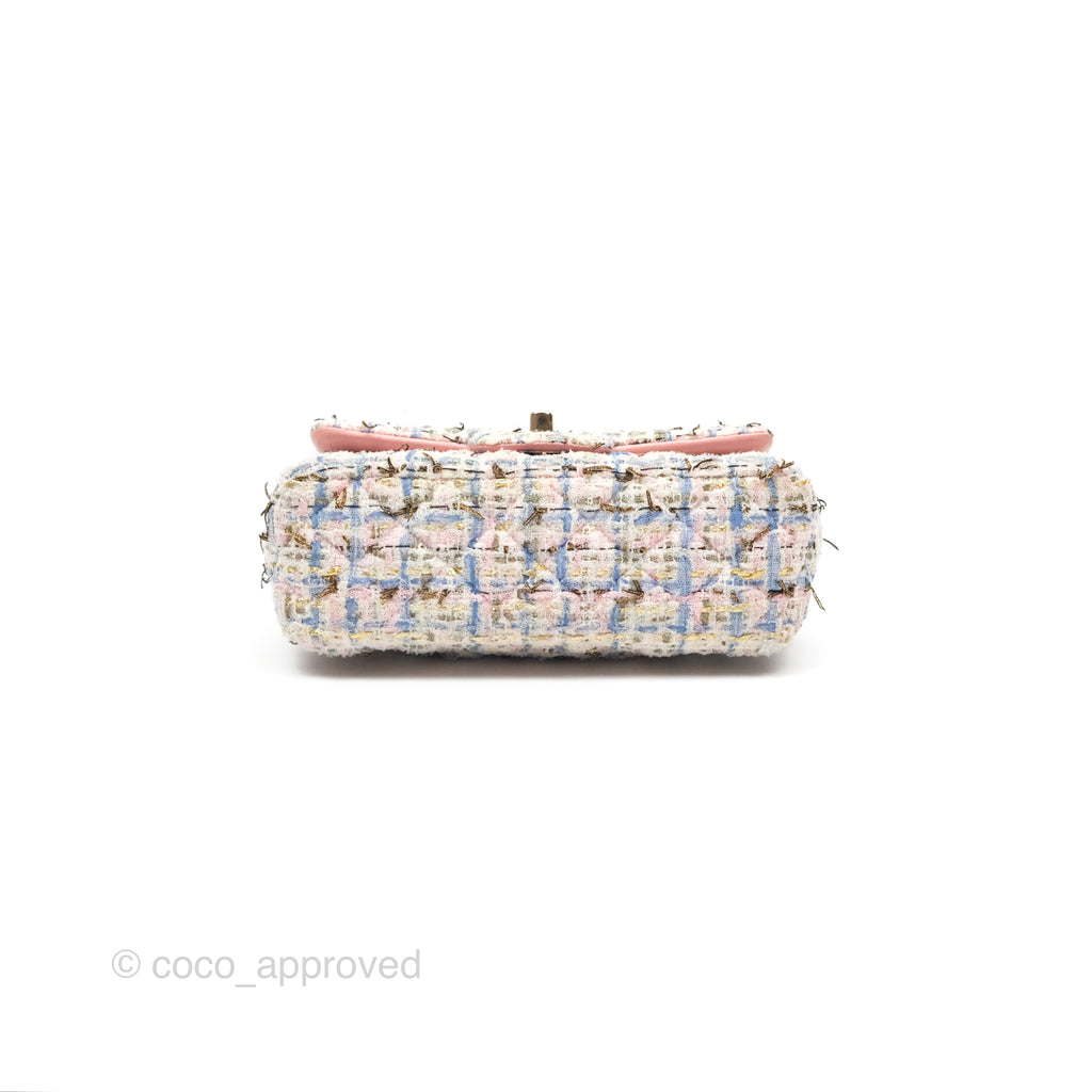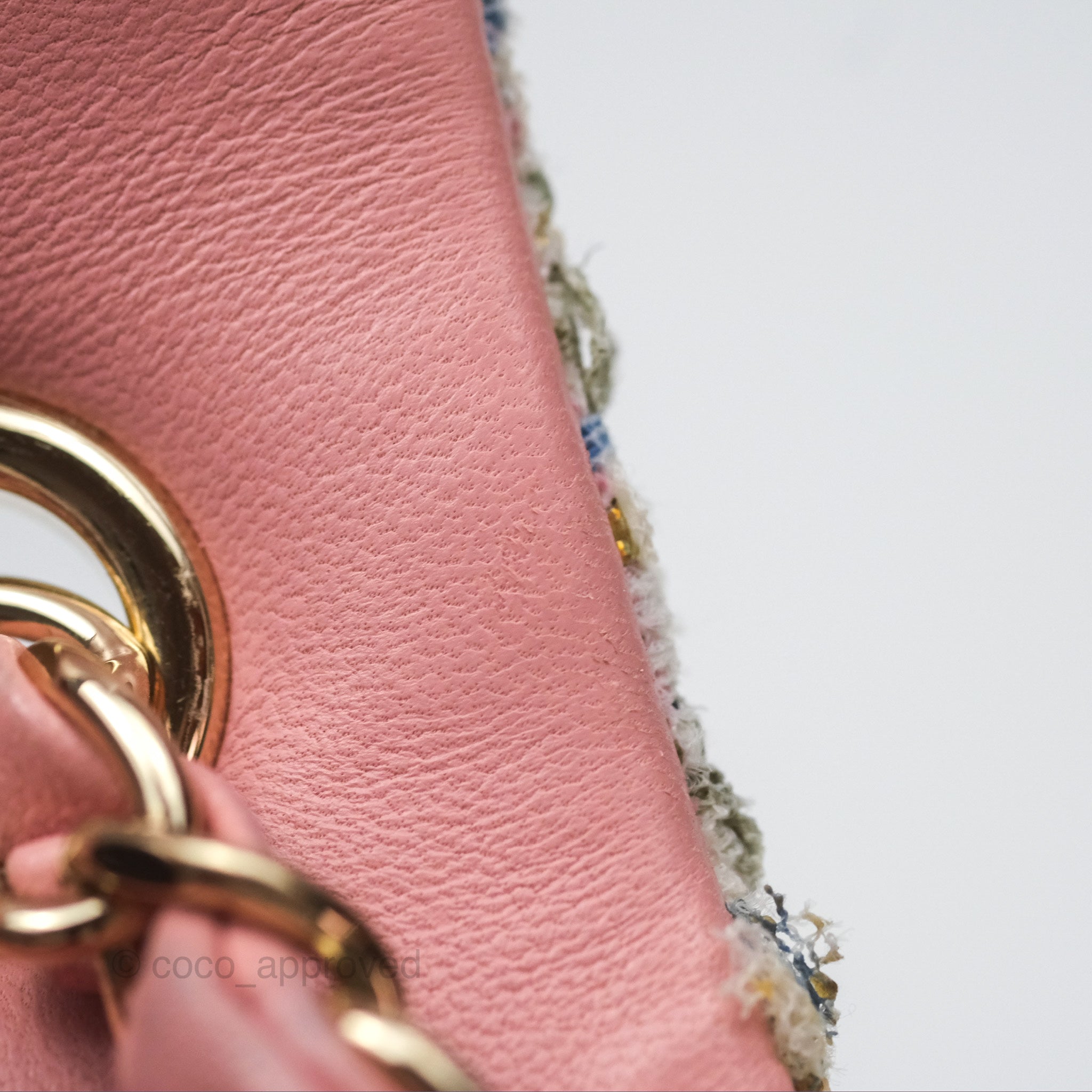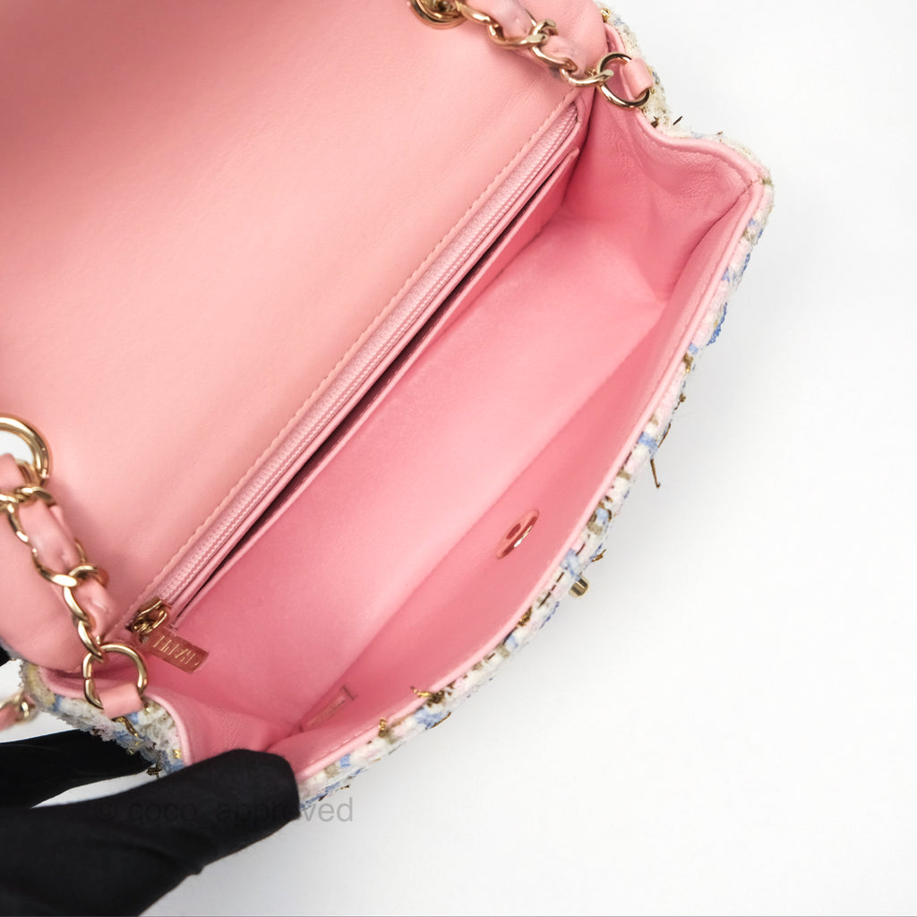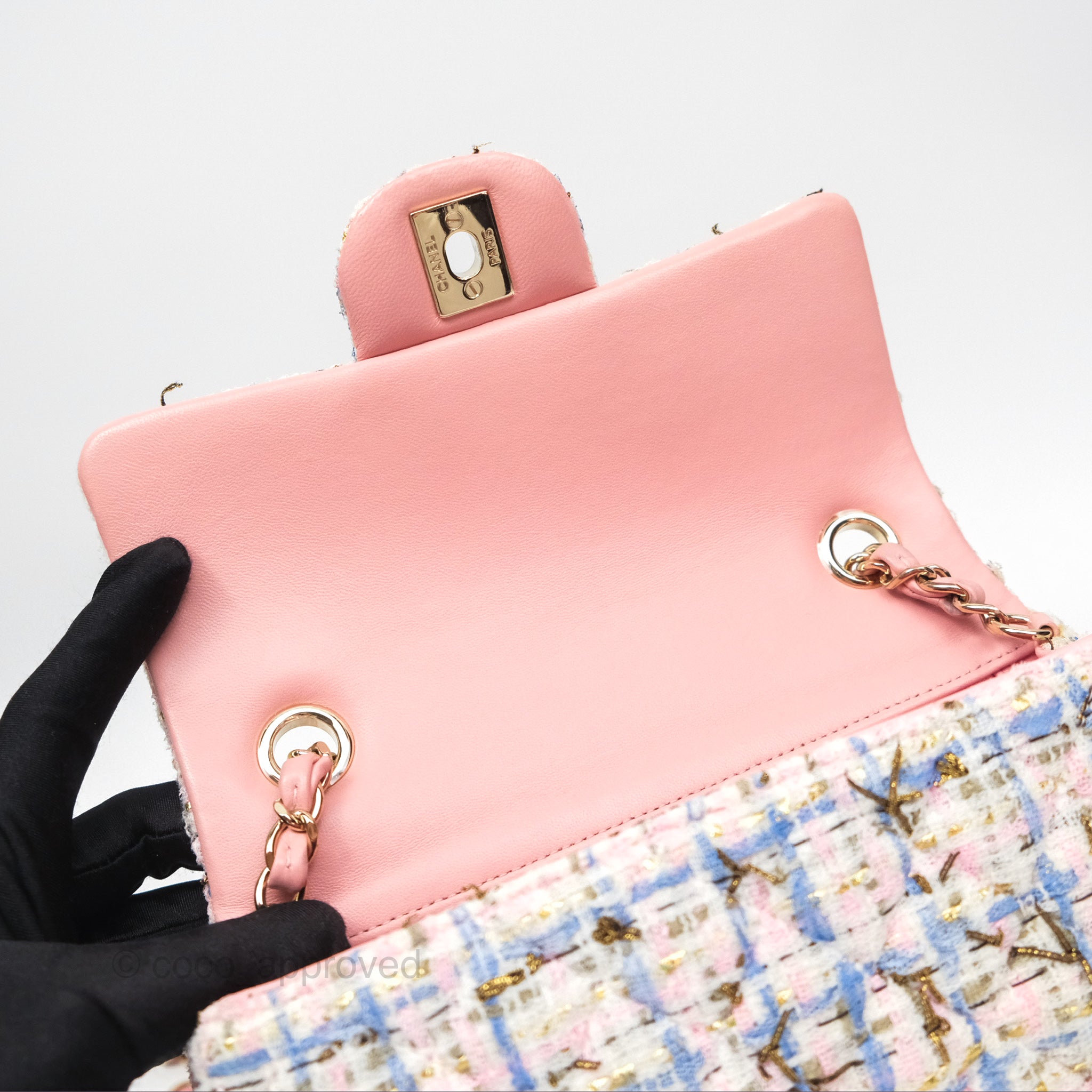 Chanel Mini Rectangular Flap Pink/ Blue/ Gold Tweed Gold Hardware
