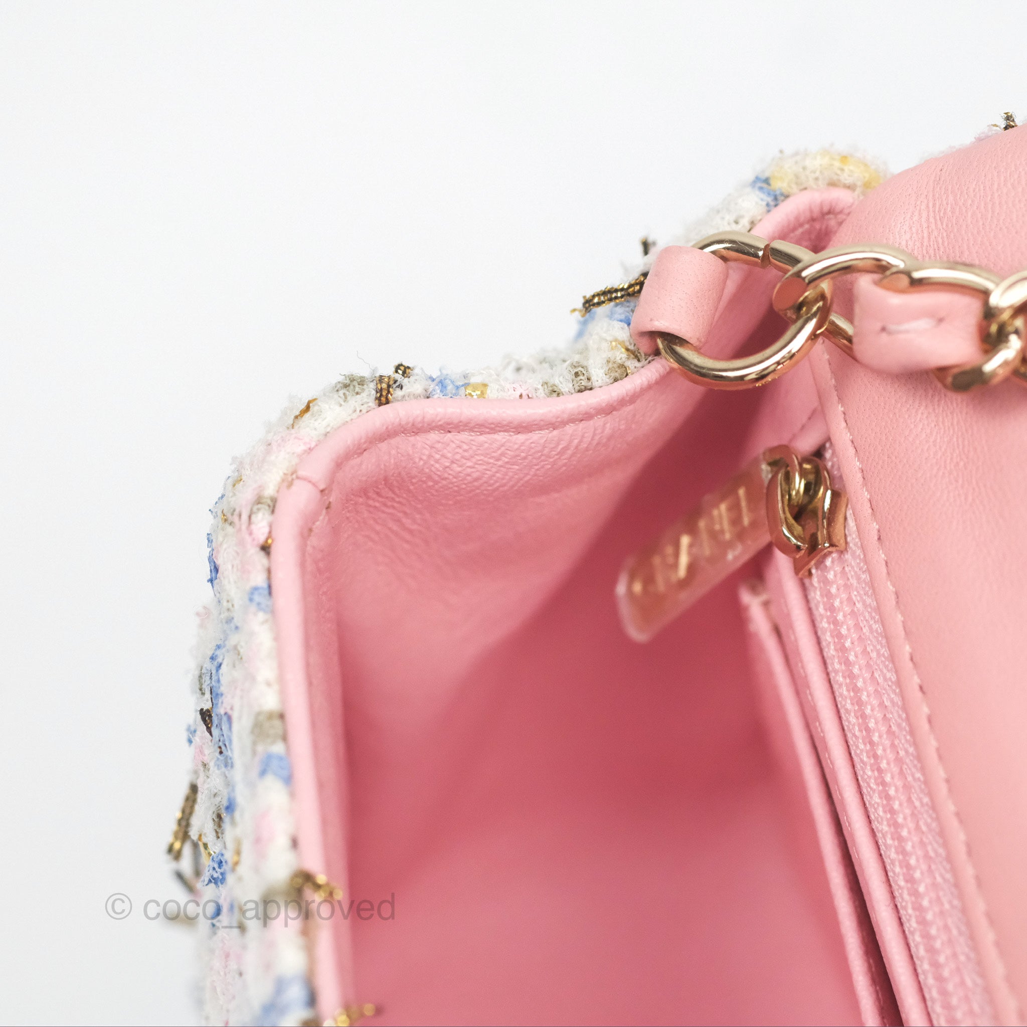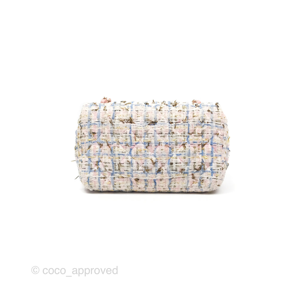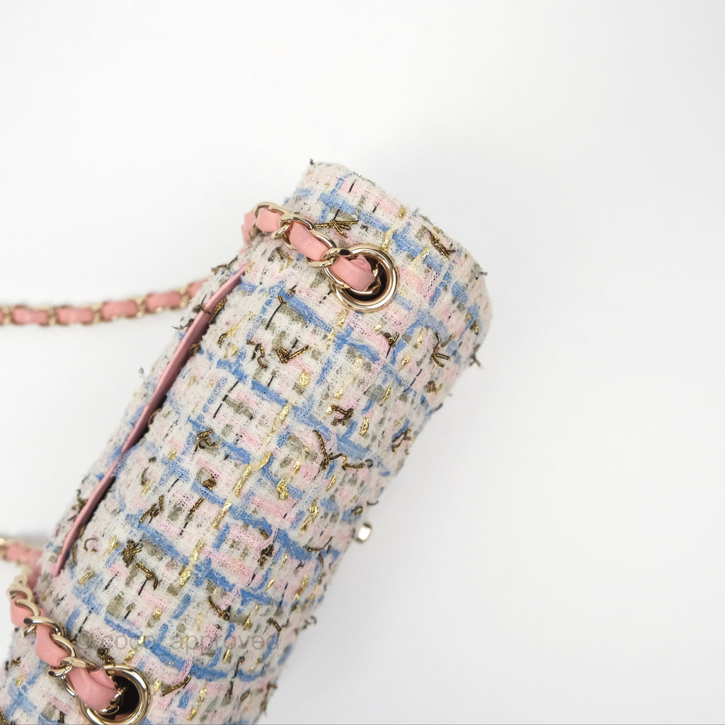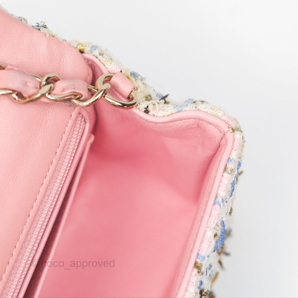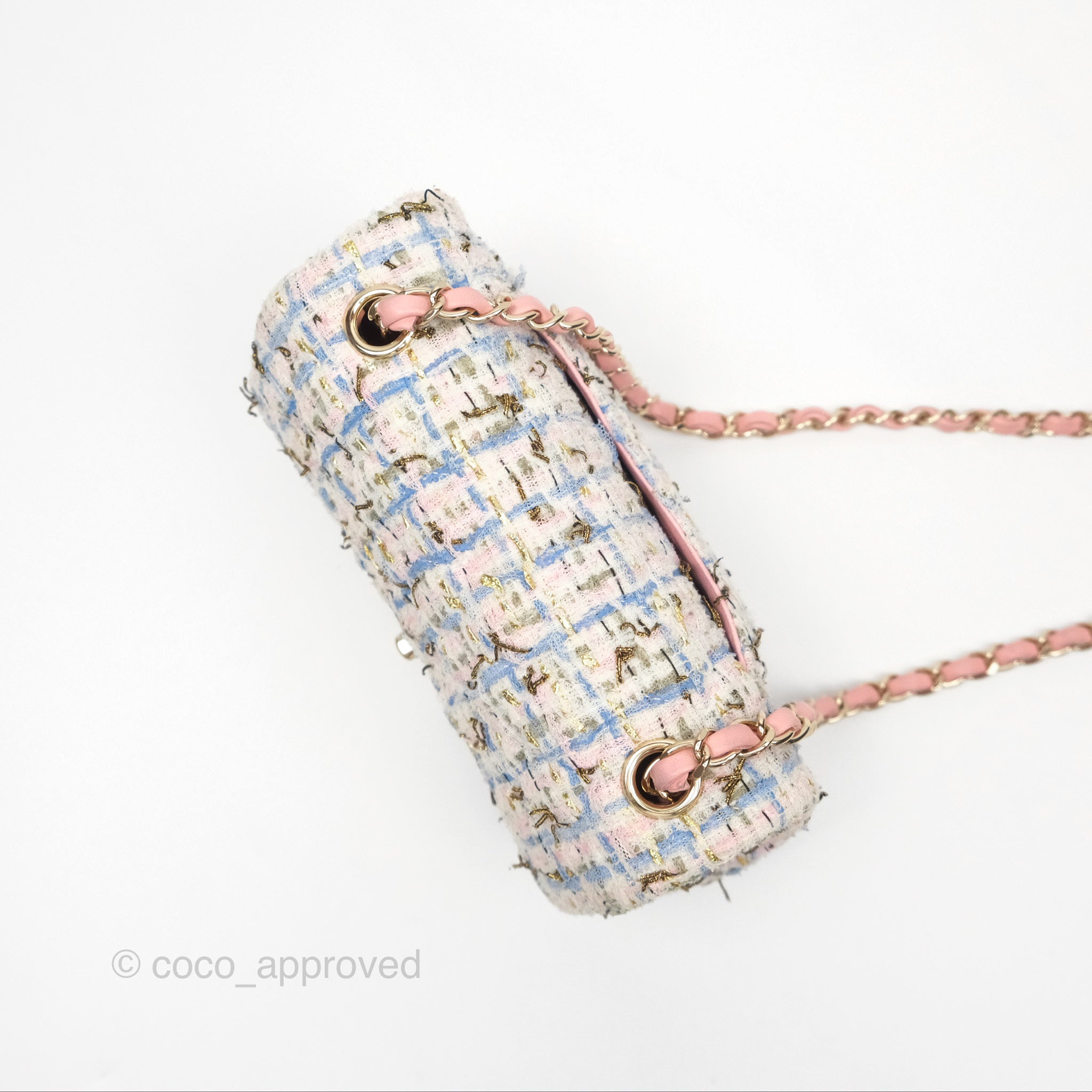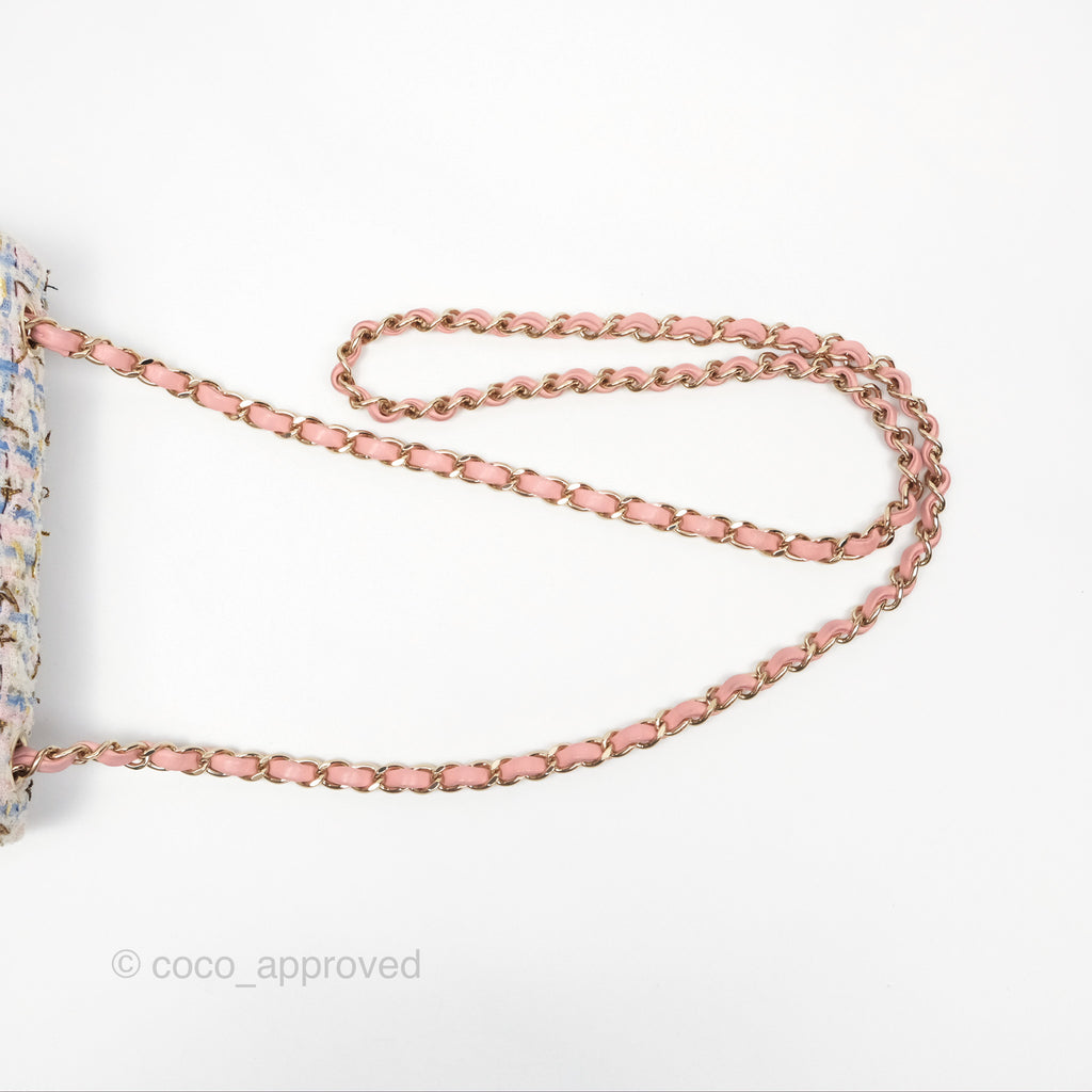 Chanel Mini Rectangular Flap Pink/ Blue/ Gold Tweed Gold Hardware