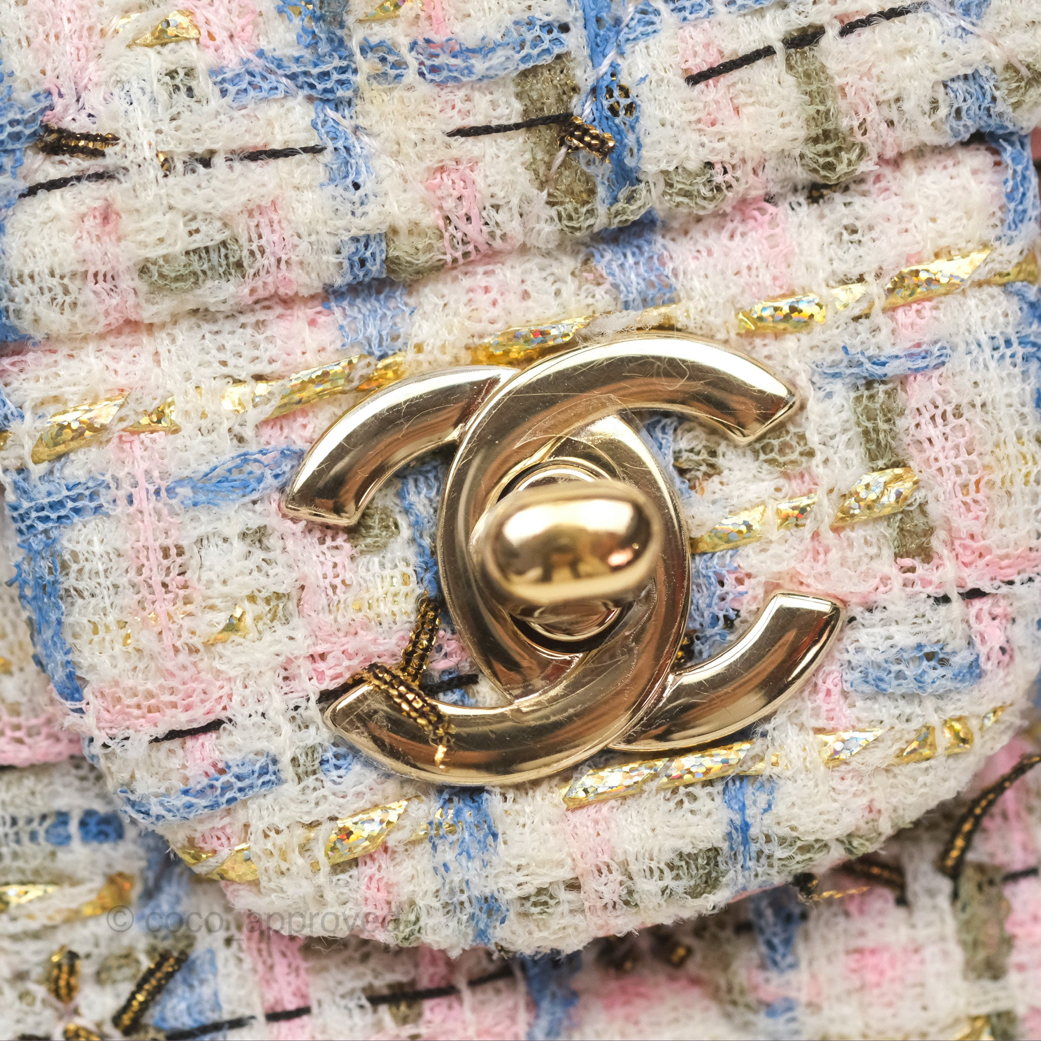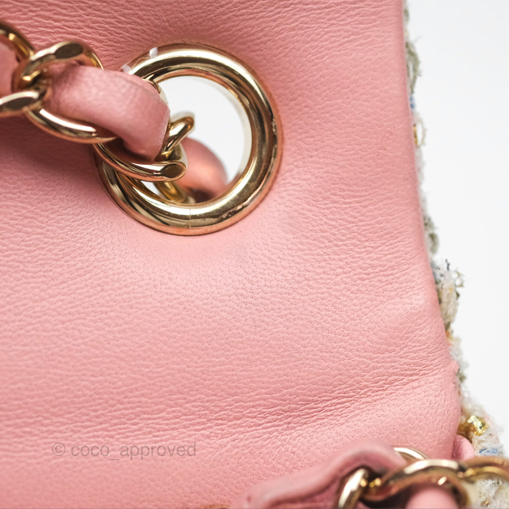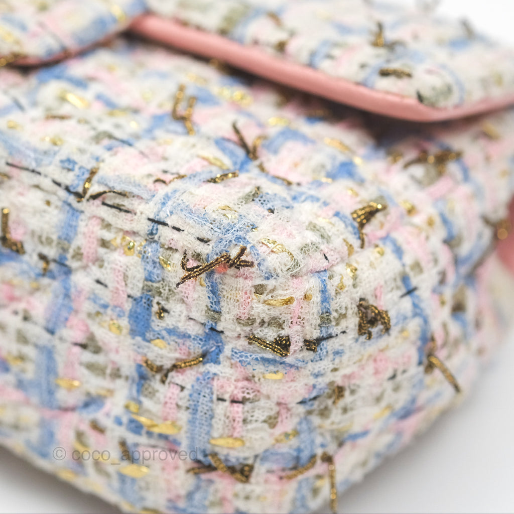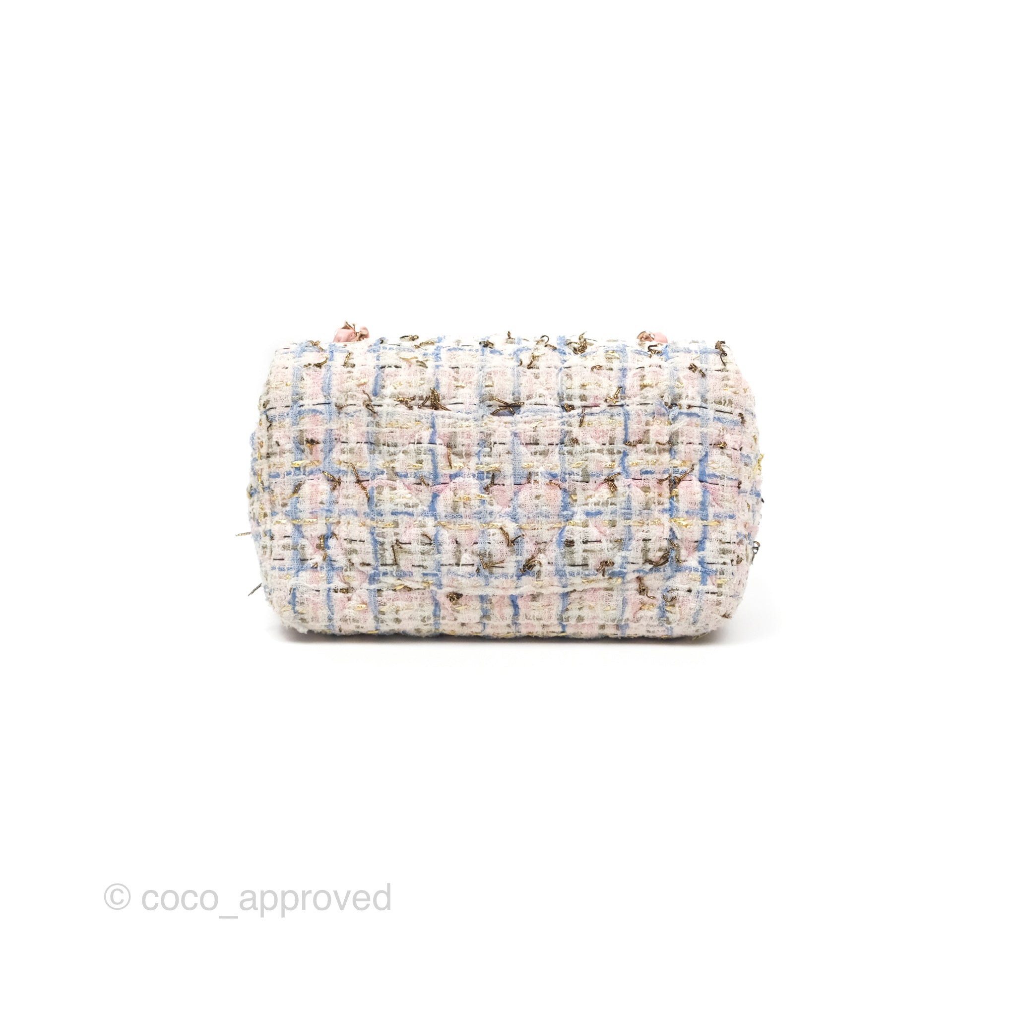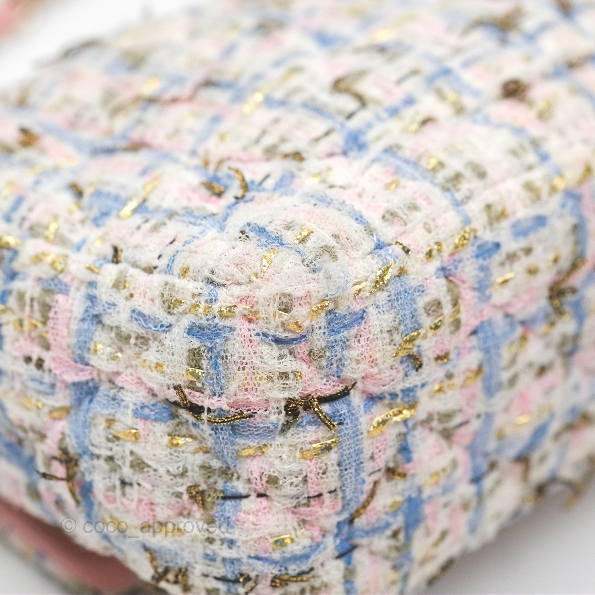Chanel Mini Rectangular Flap Pink/ Blue/ Gold Tweed Gold Hardware