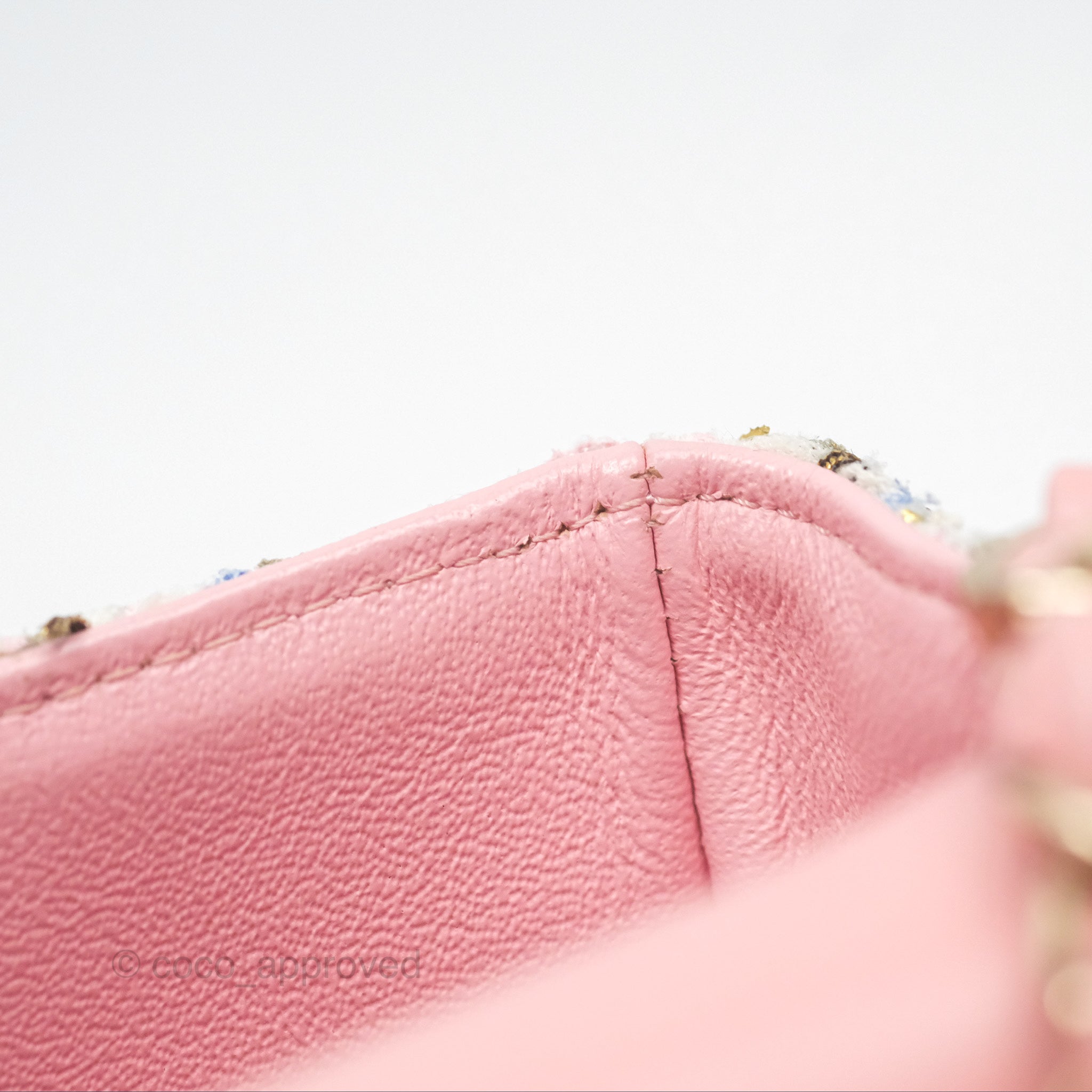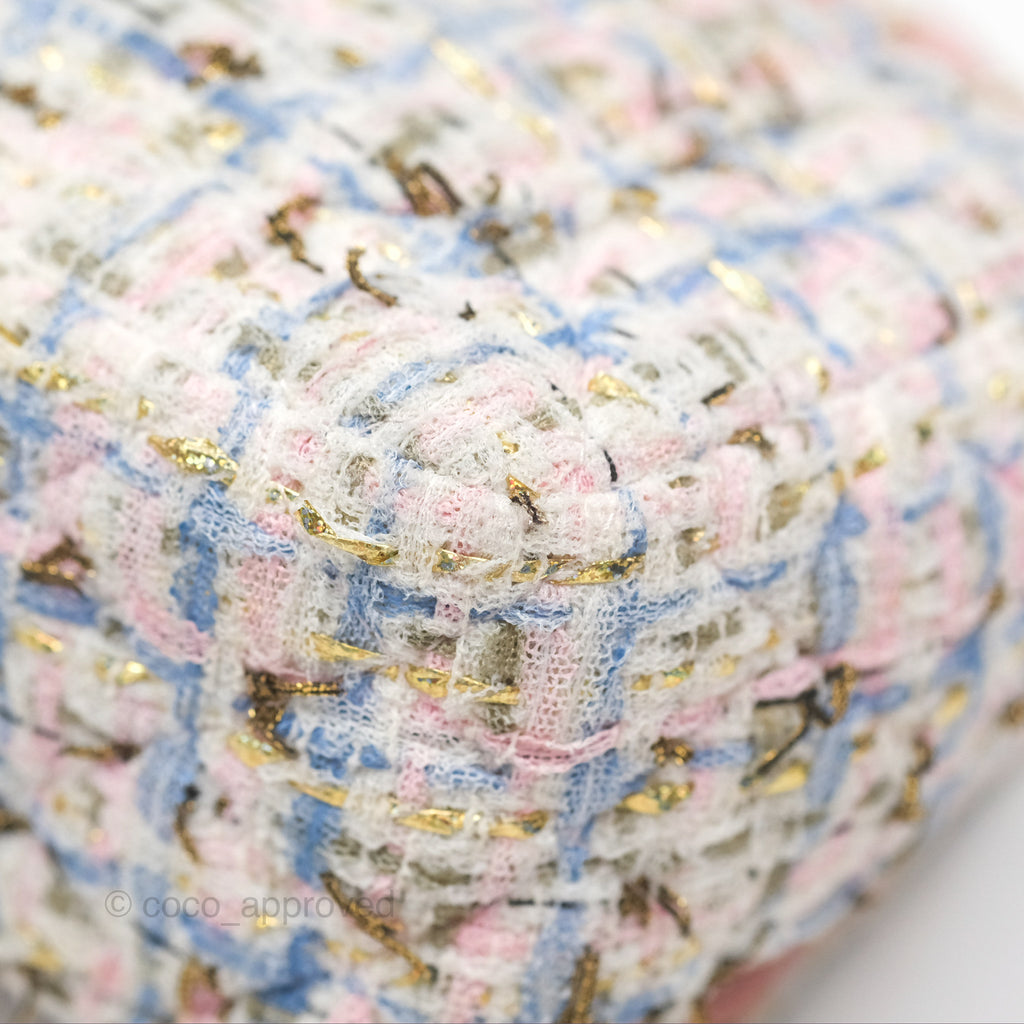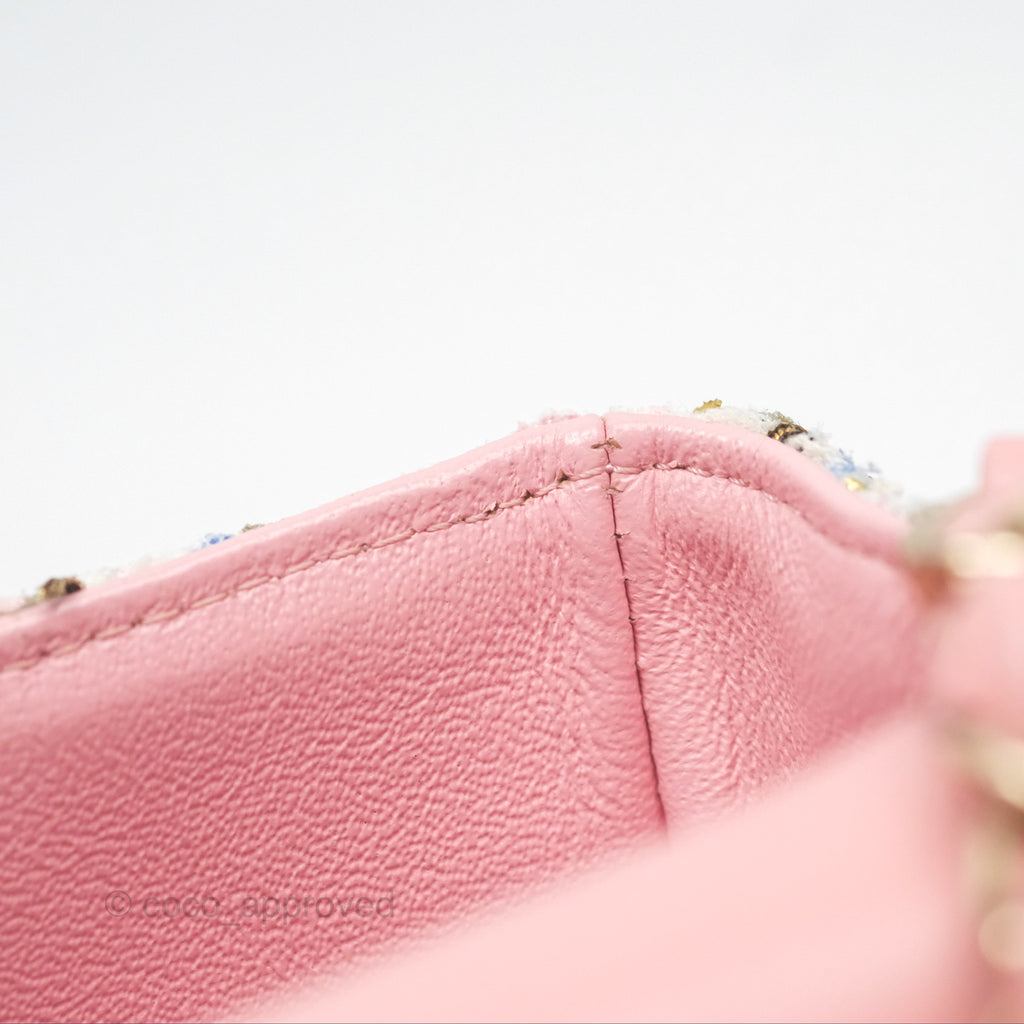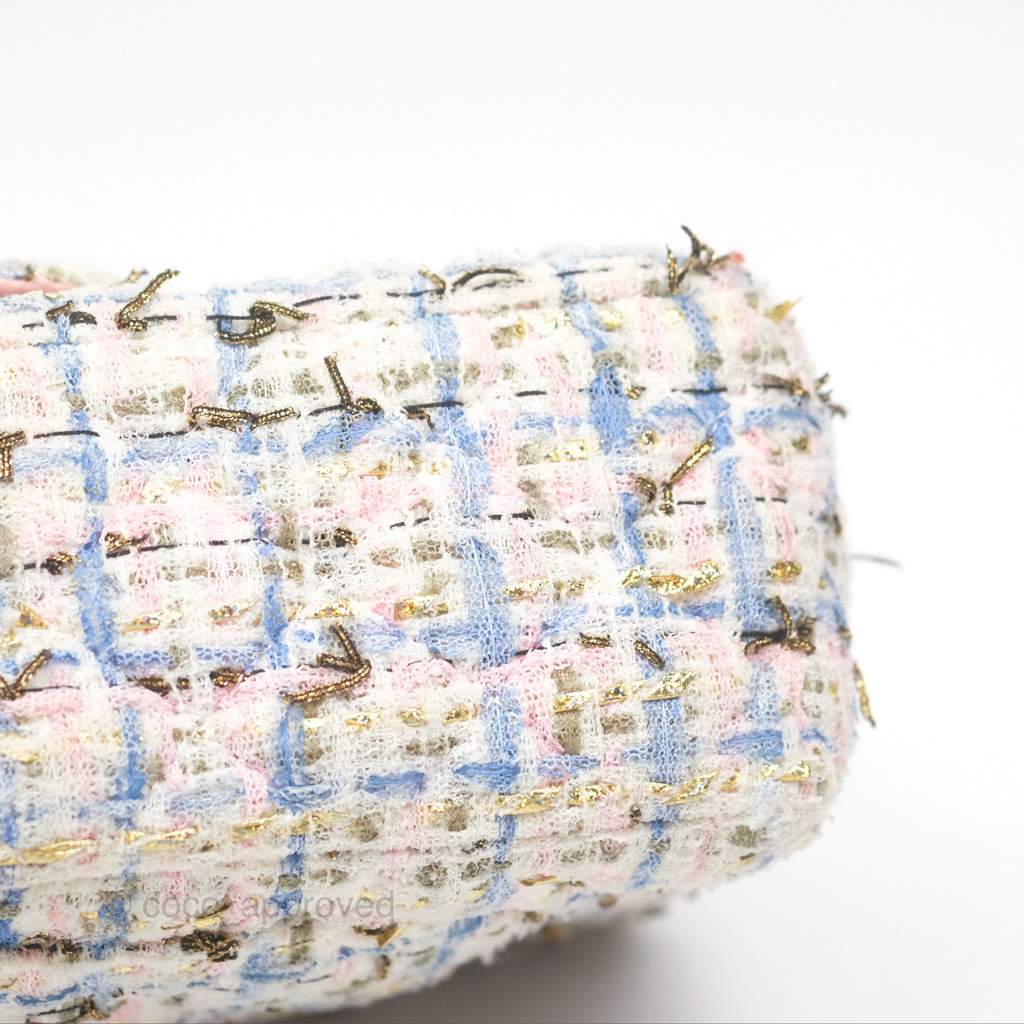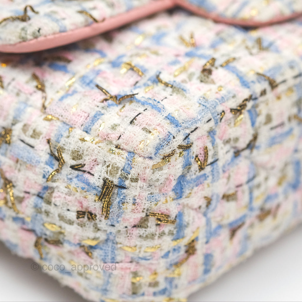 Chanel Mini Rectangular Flap Pink/ Blue/ Gold Tweed Gold Hardware
