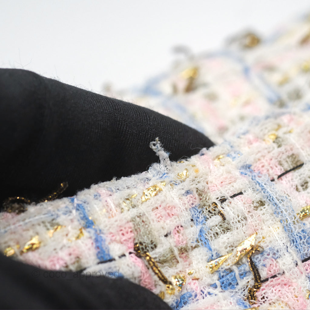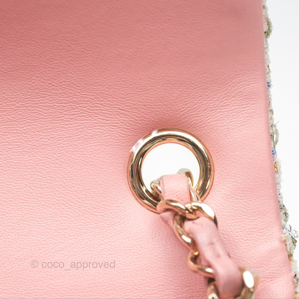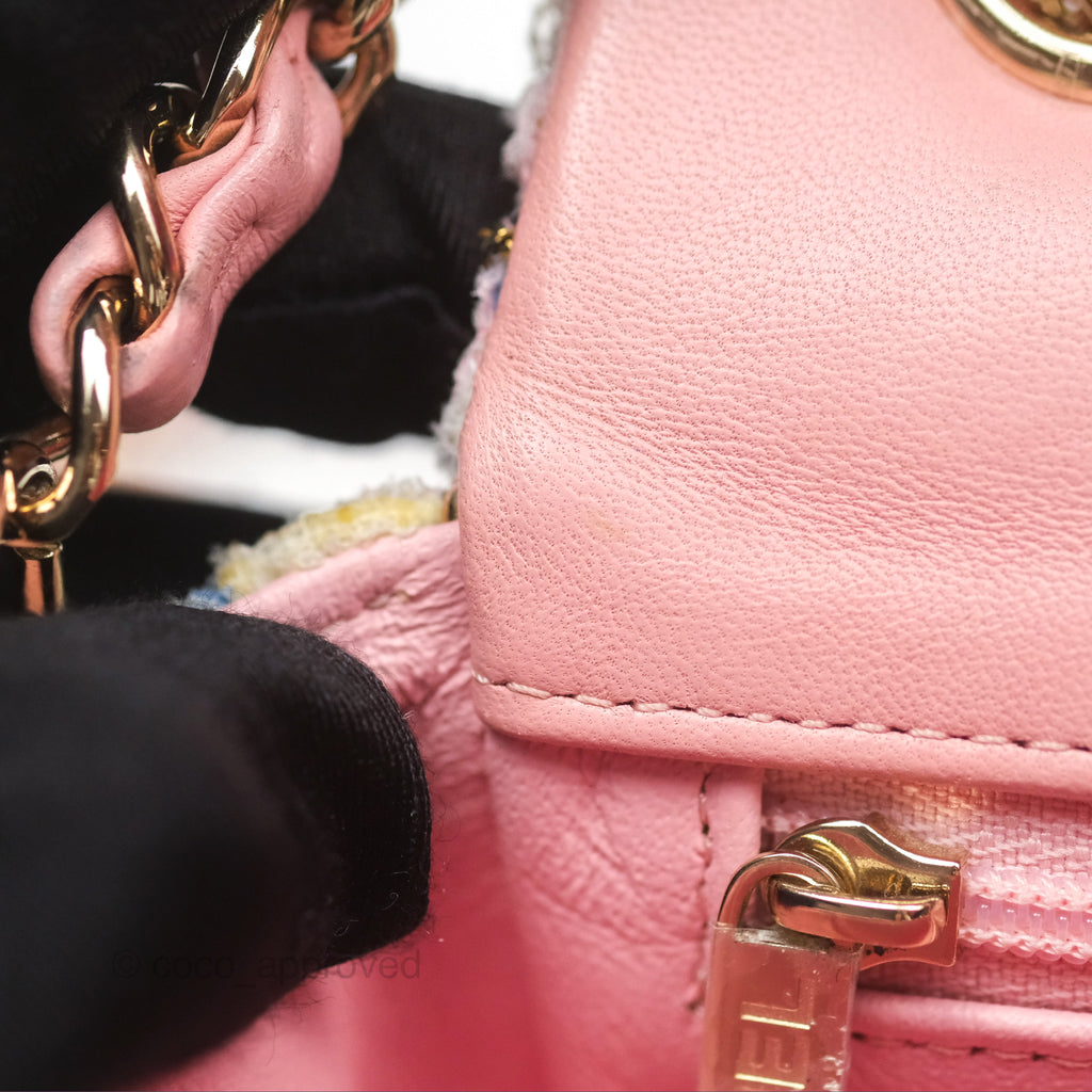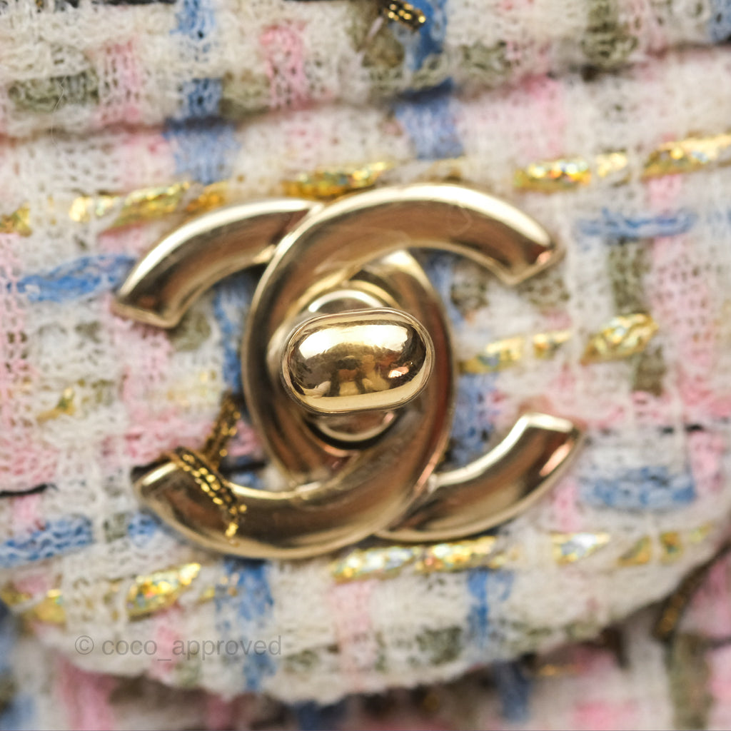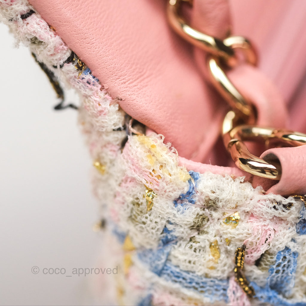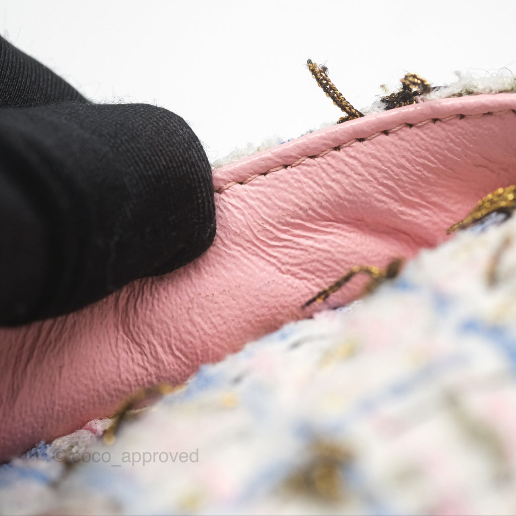 Chanel Mini Rectangular Flap Pink/ Blue/ Gold Tweed Gold Hardware