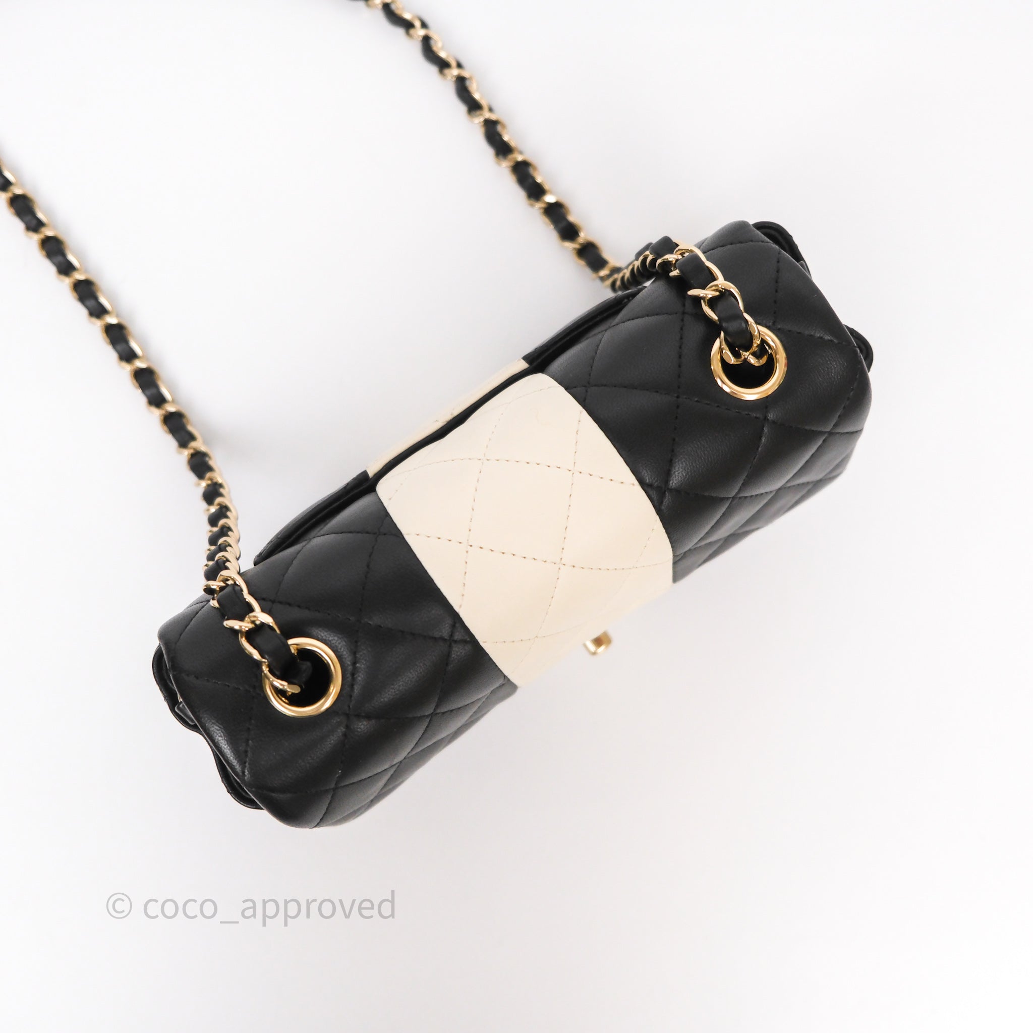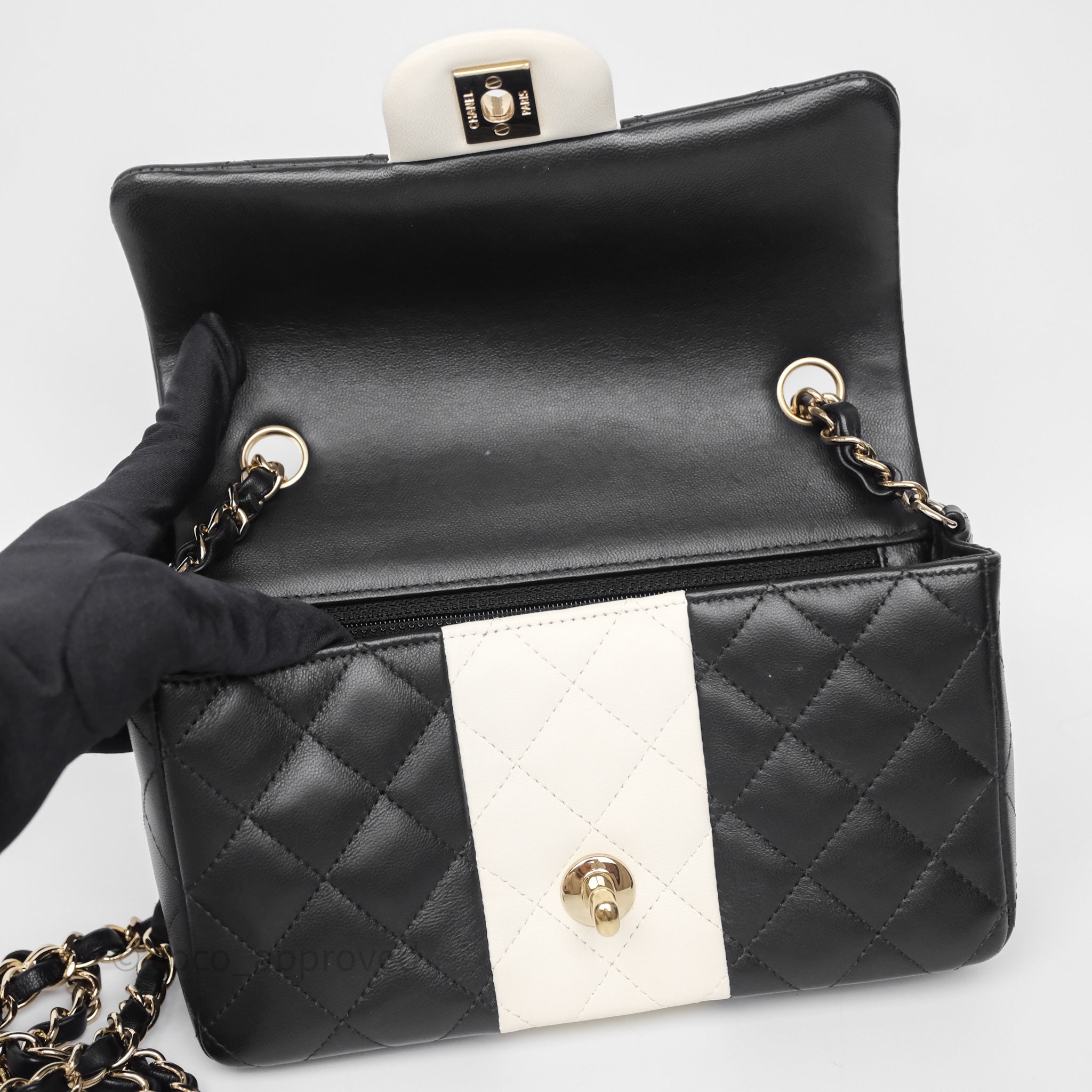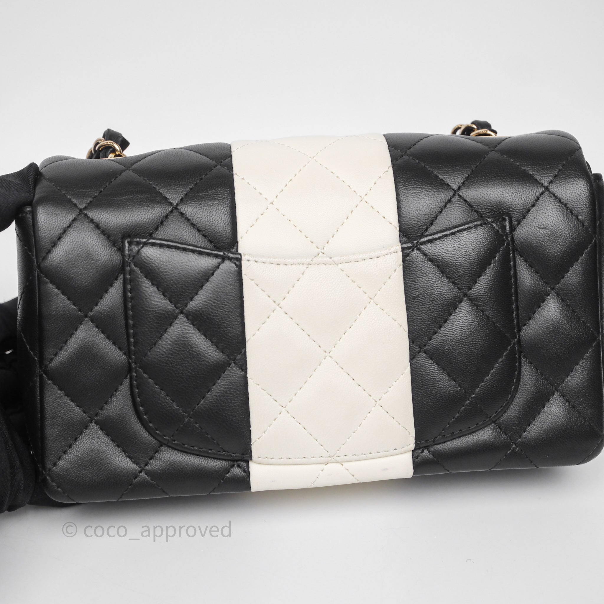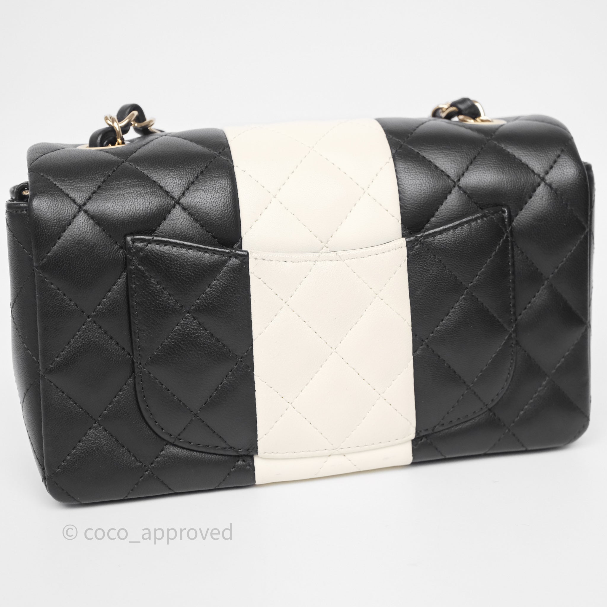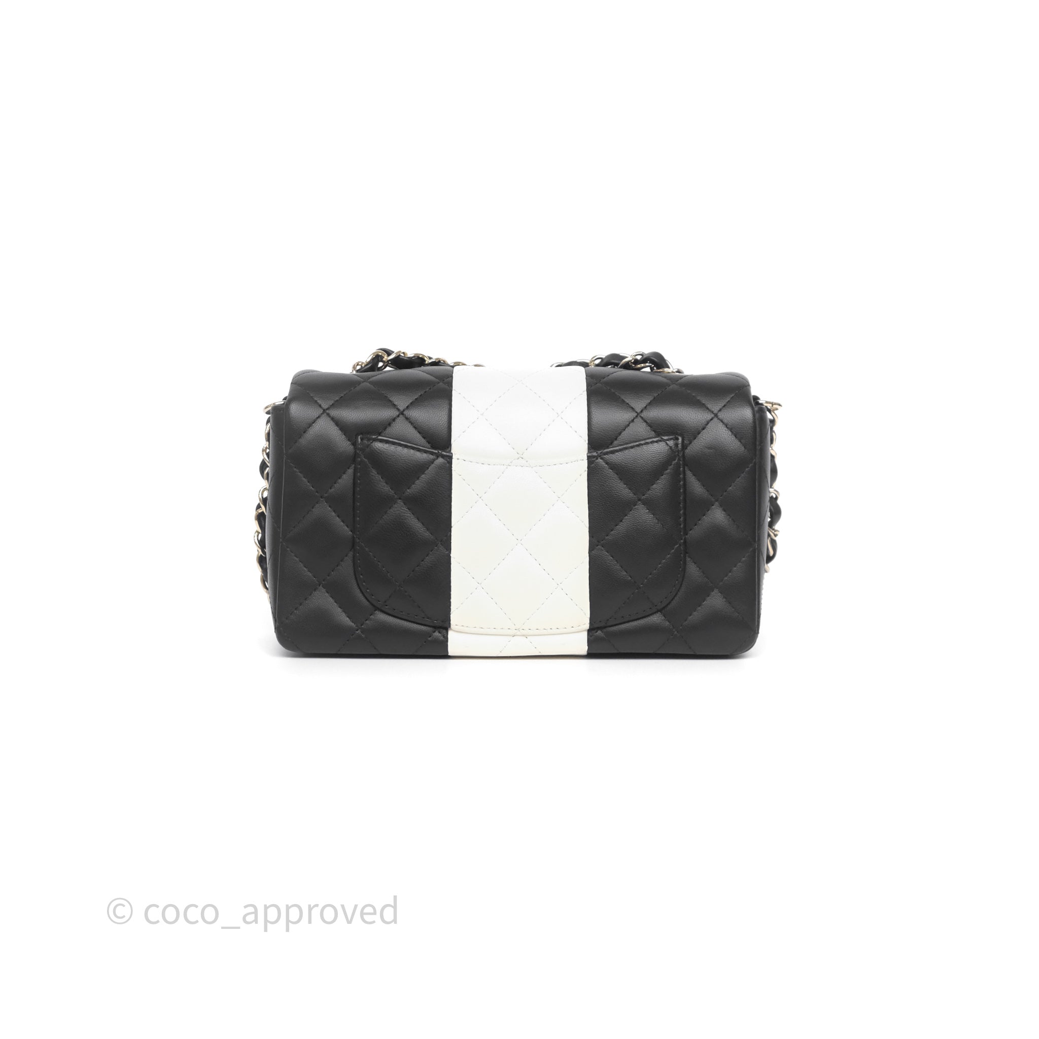 Chanel Mini Rectangular Flap Quilted Black White Lambskin Gold Hardware