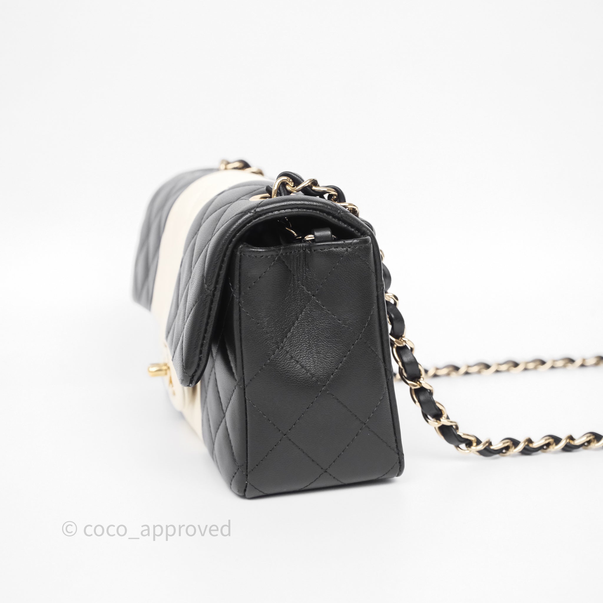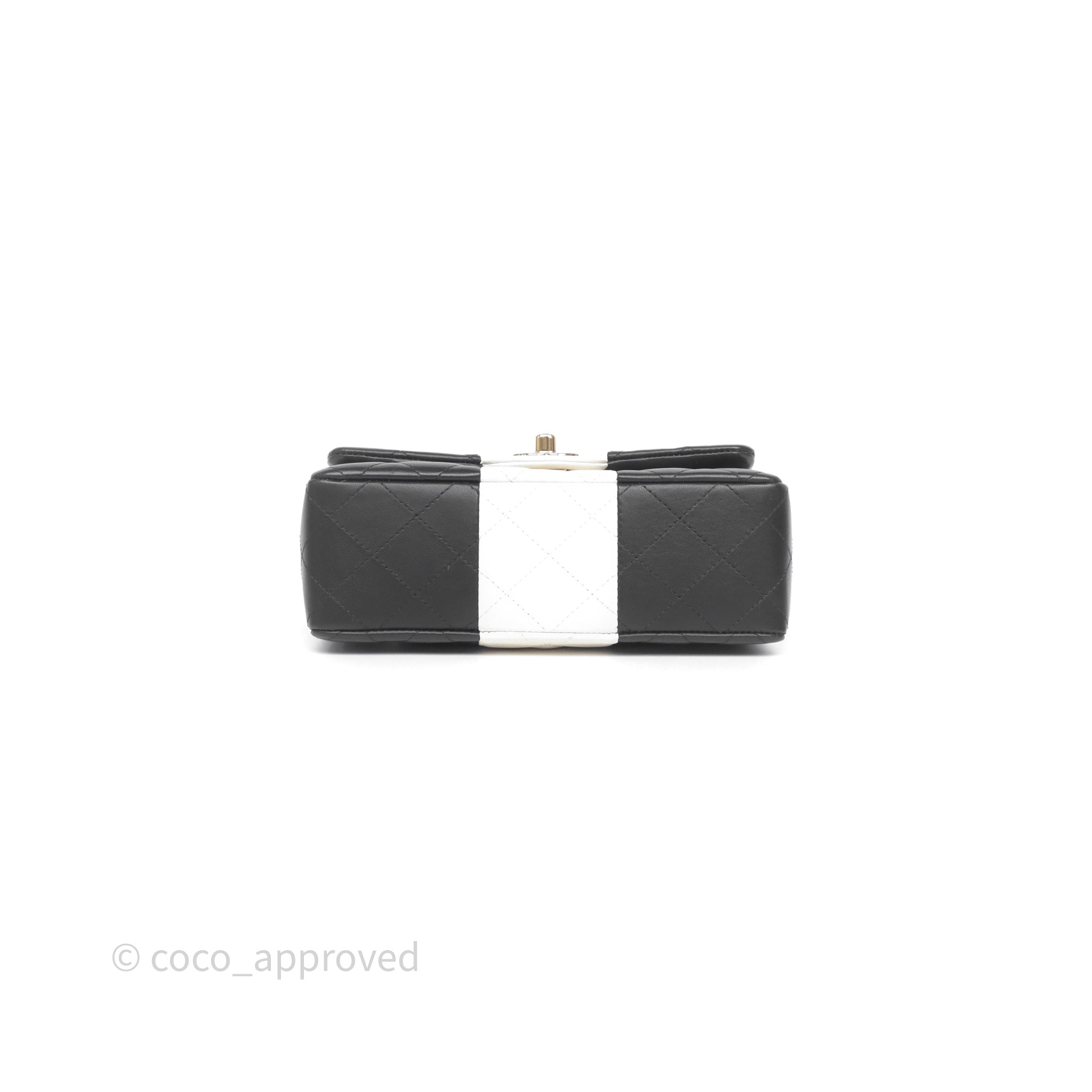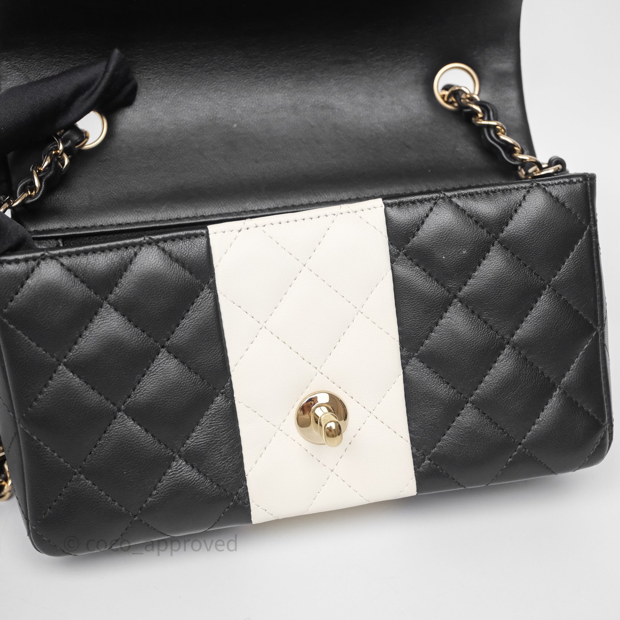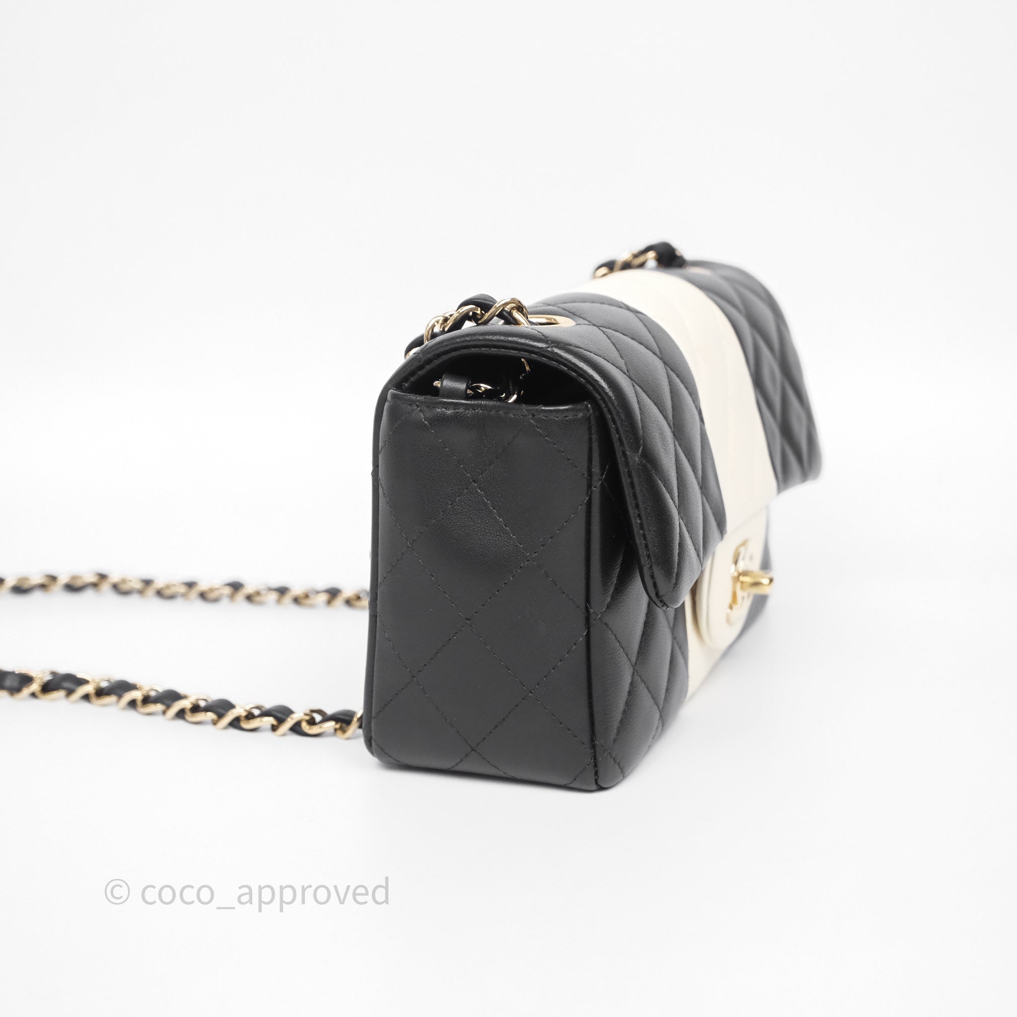 Chanel Mini Rectangular Flap Quilted Black White Lambskin Gold Hardware