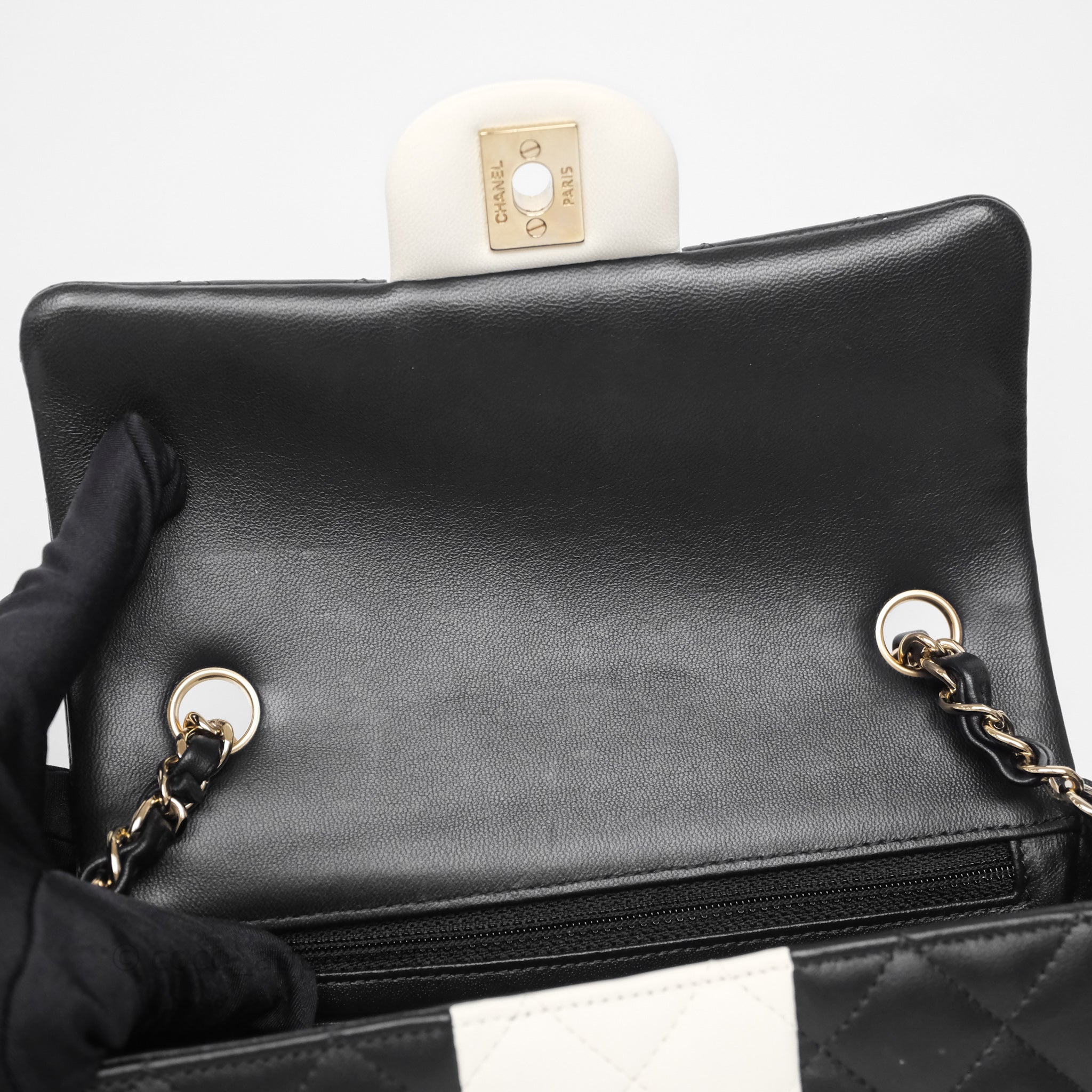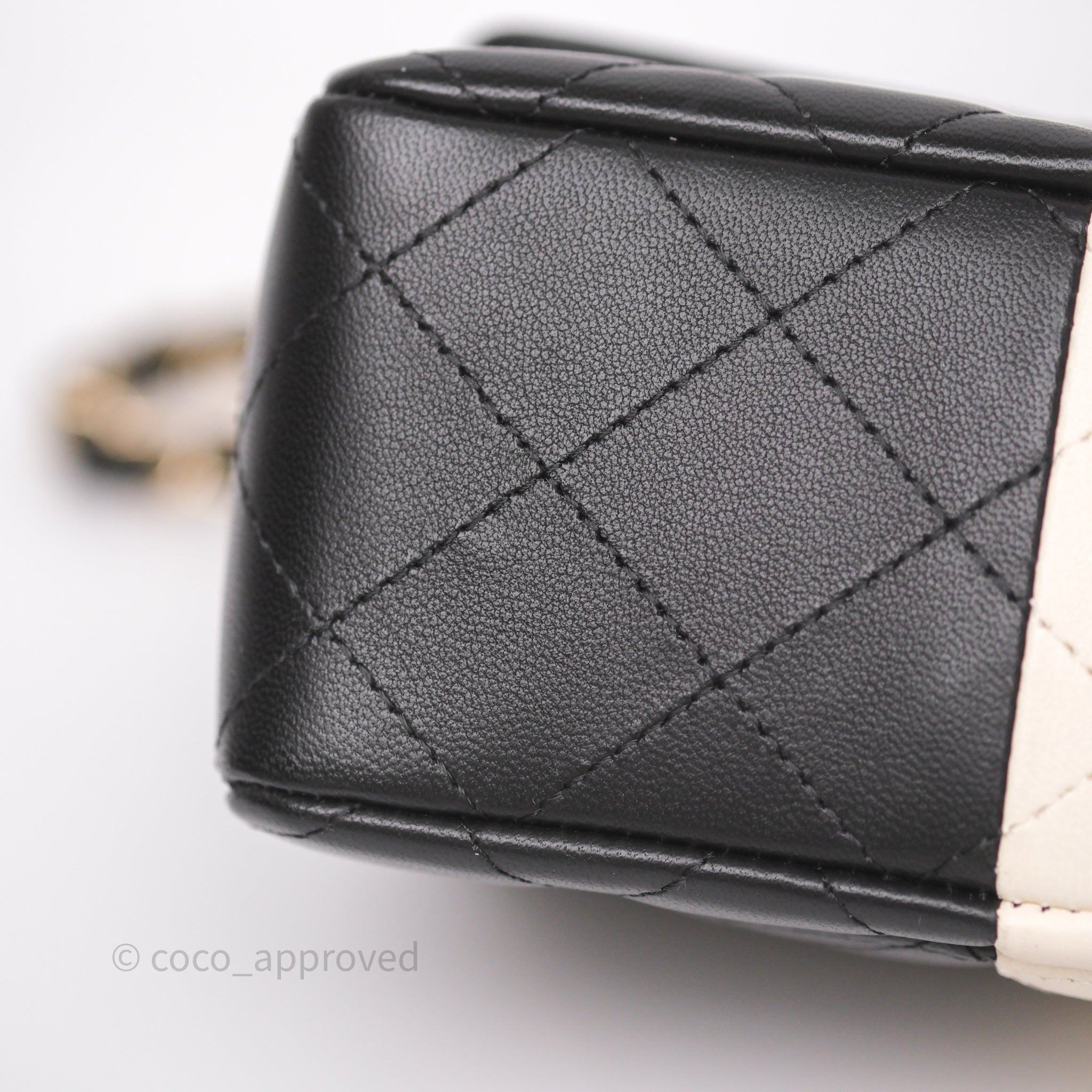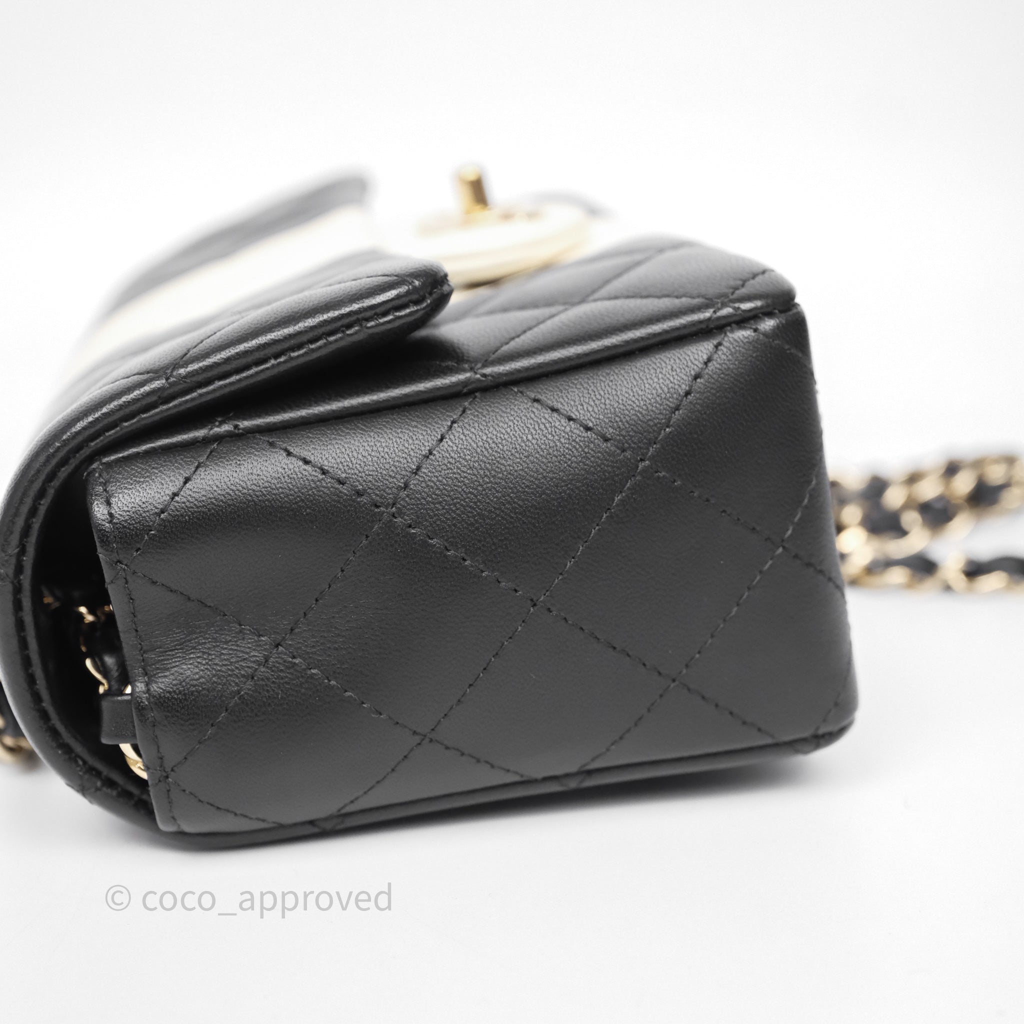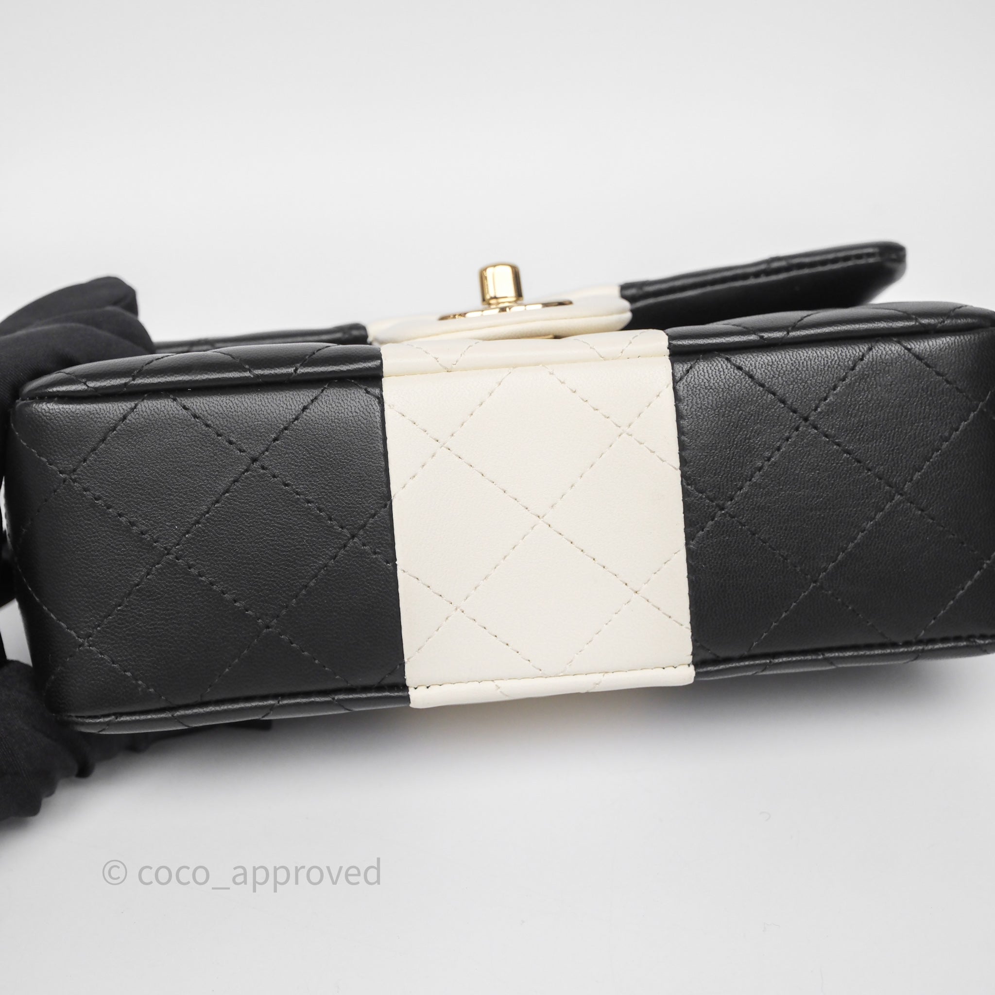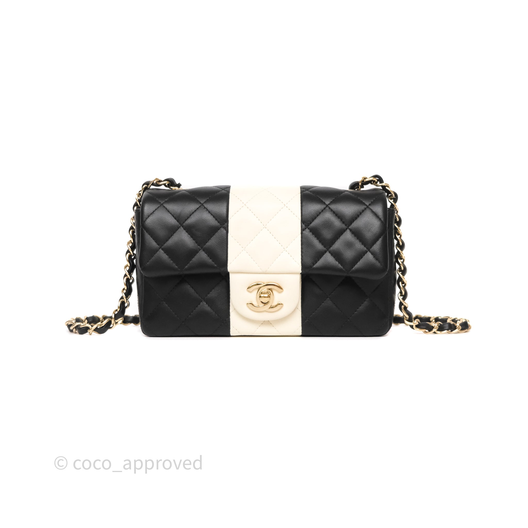 Chanel Mini Rectangular Flap Quilted Black White Lambskin Gold Hardware
