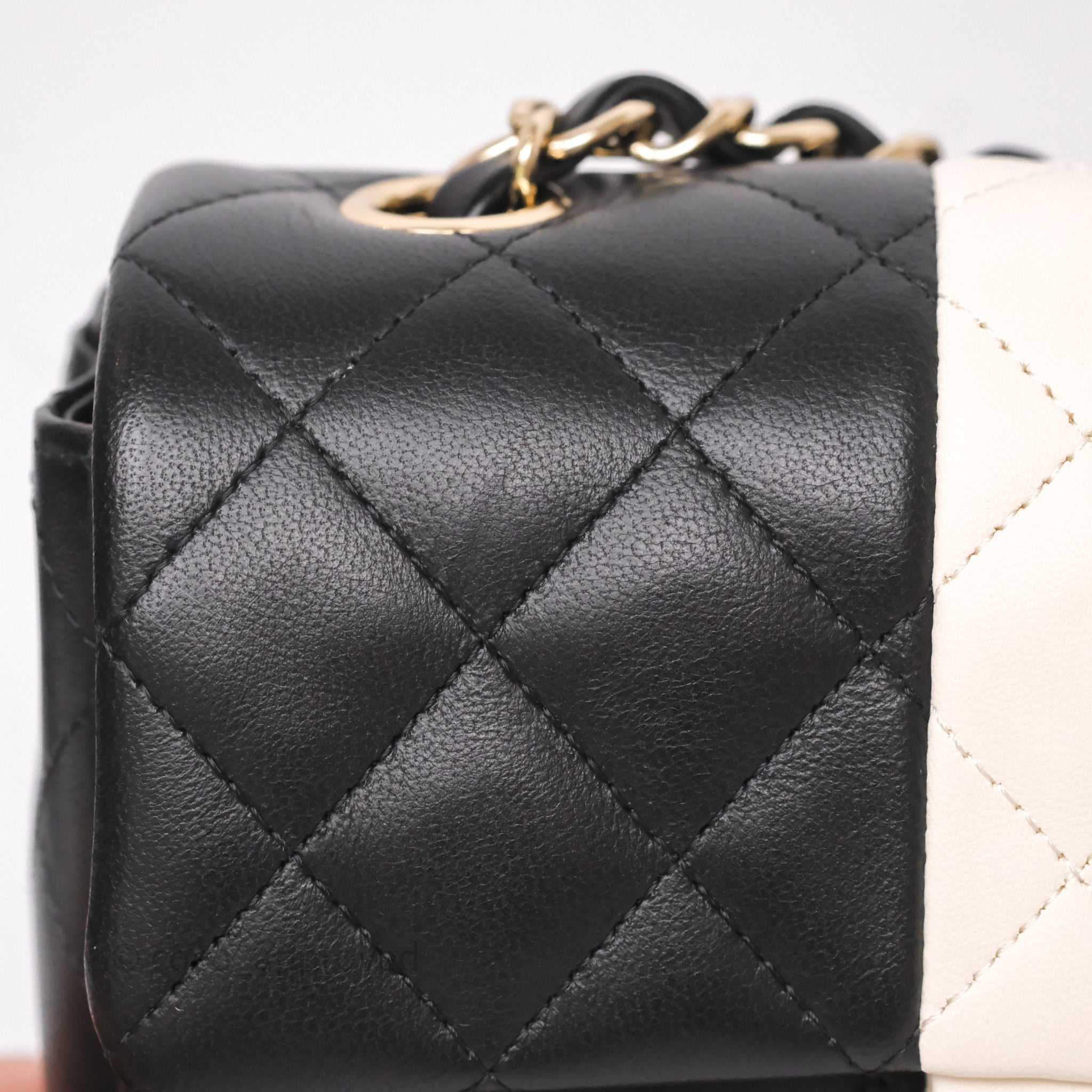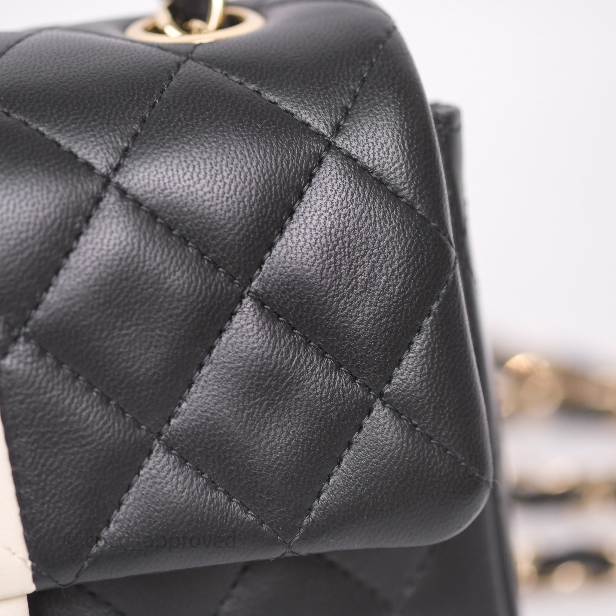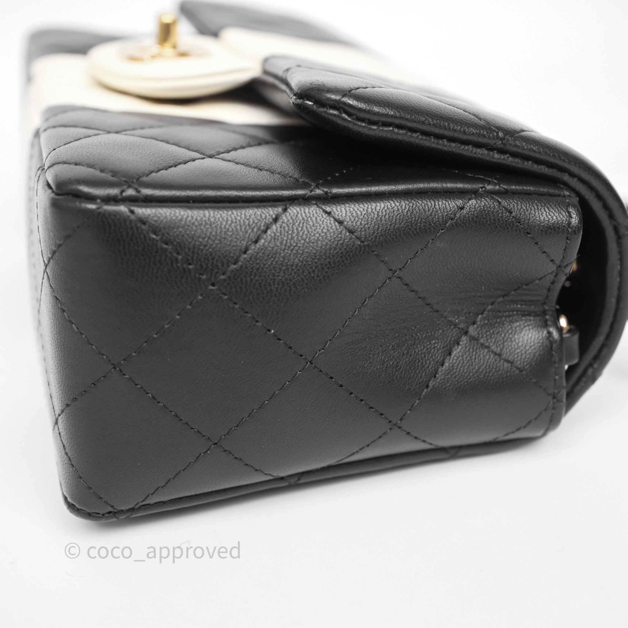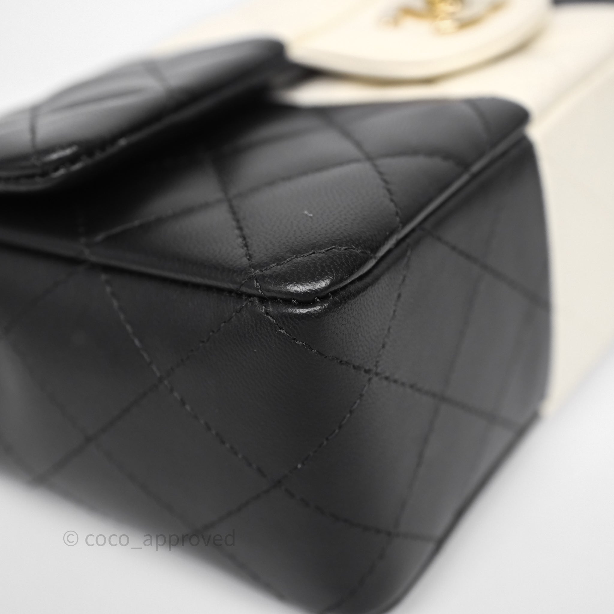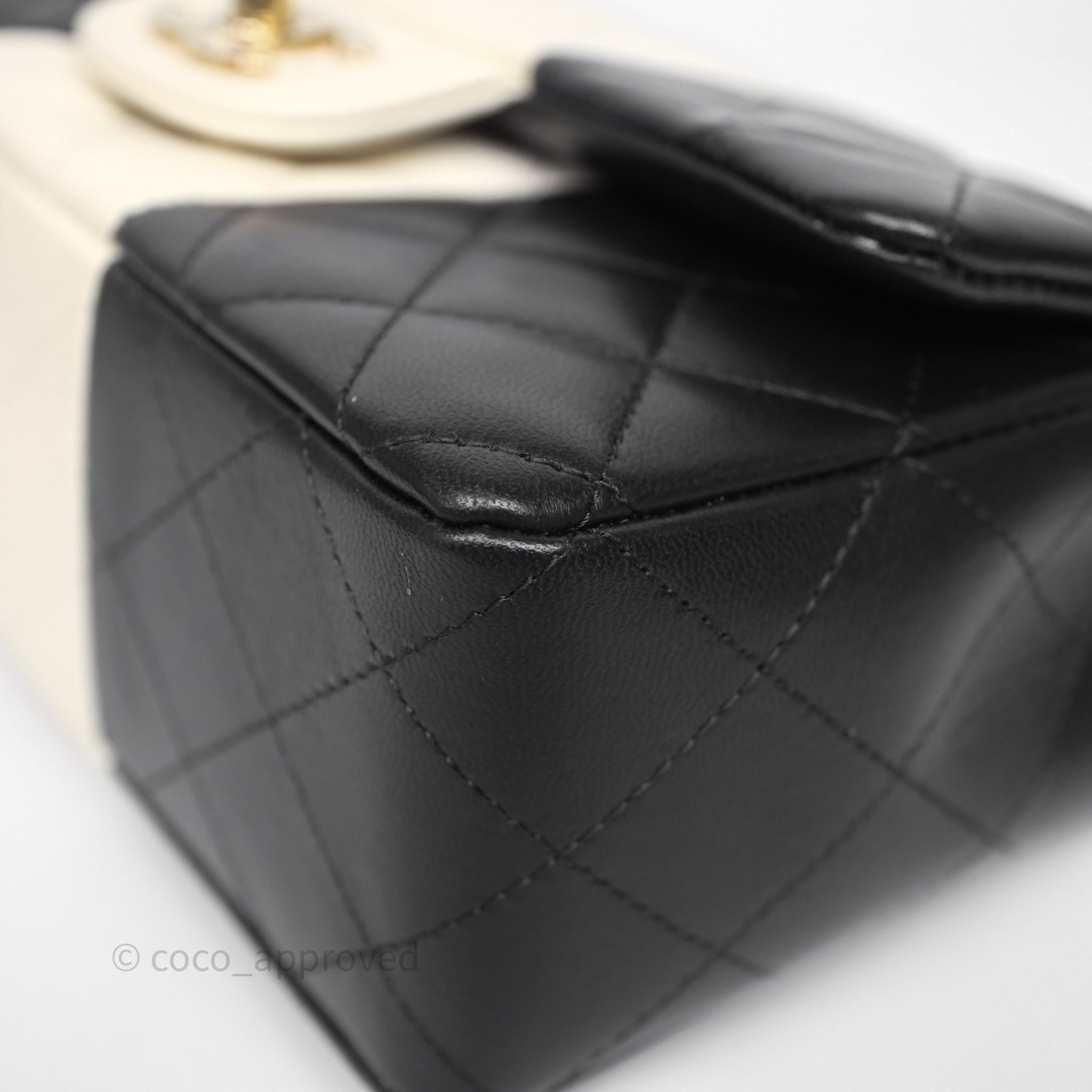 Chanel Mini Rectangular Flap Quilted Black White Lambskin Gold Hardware