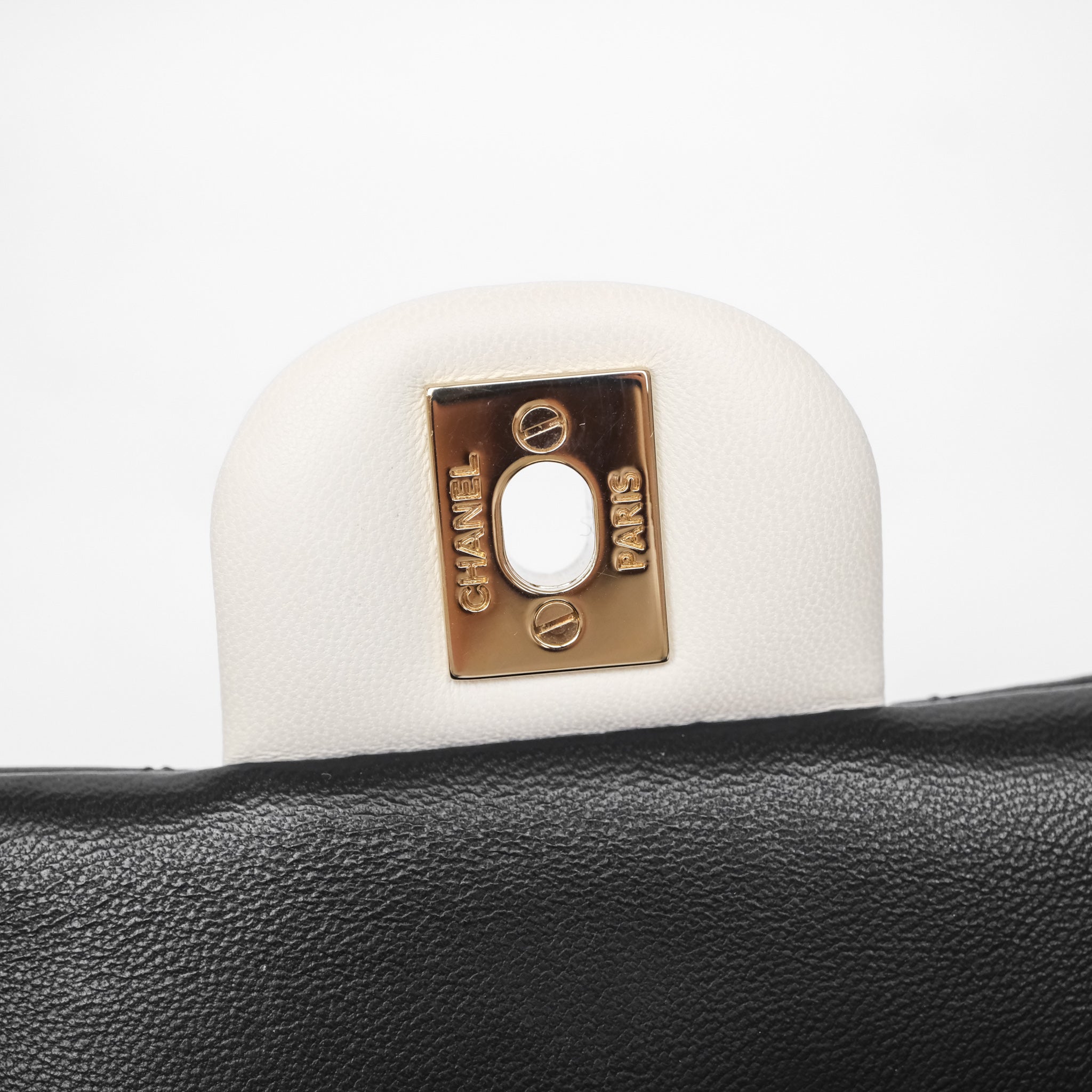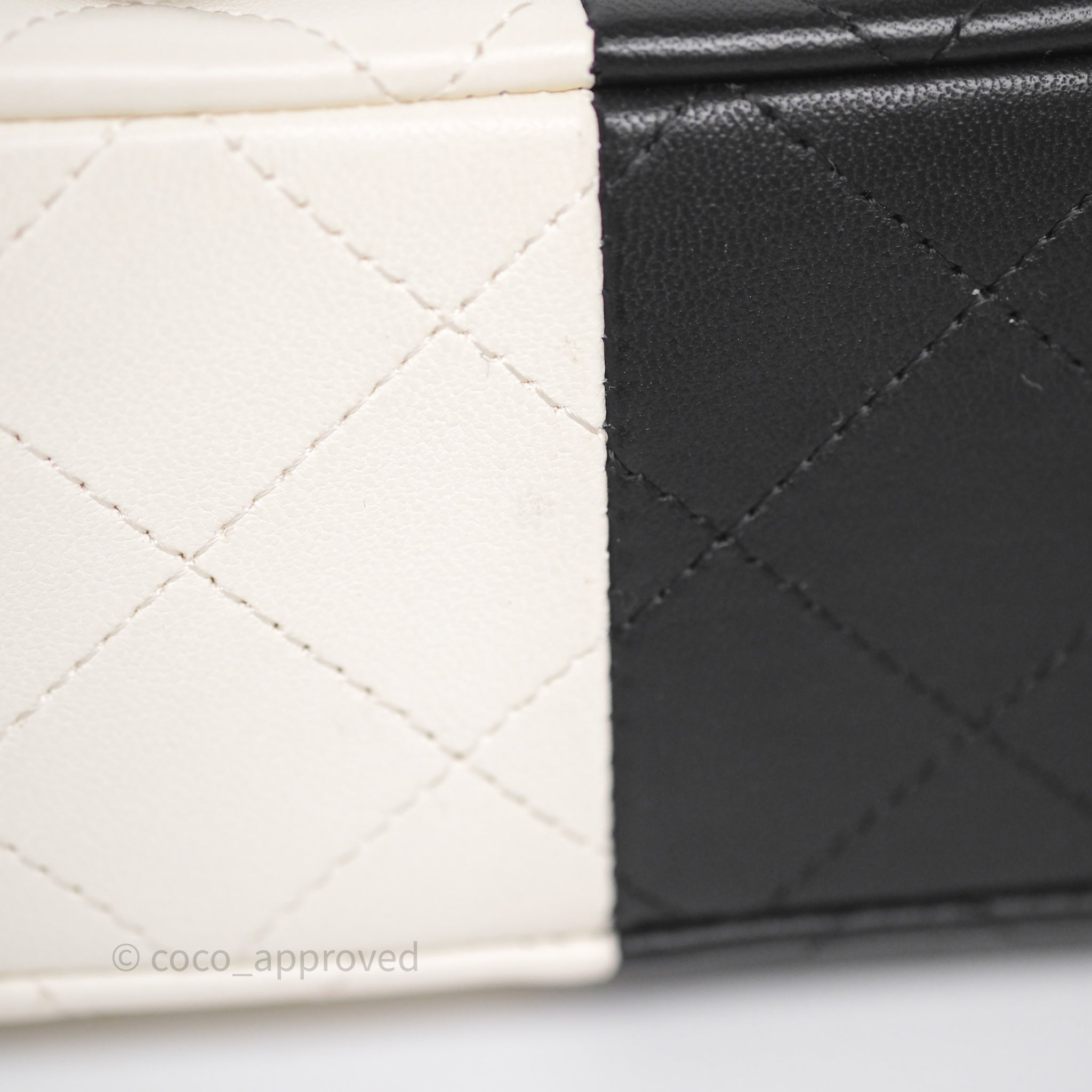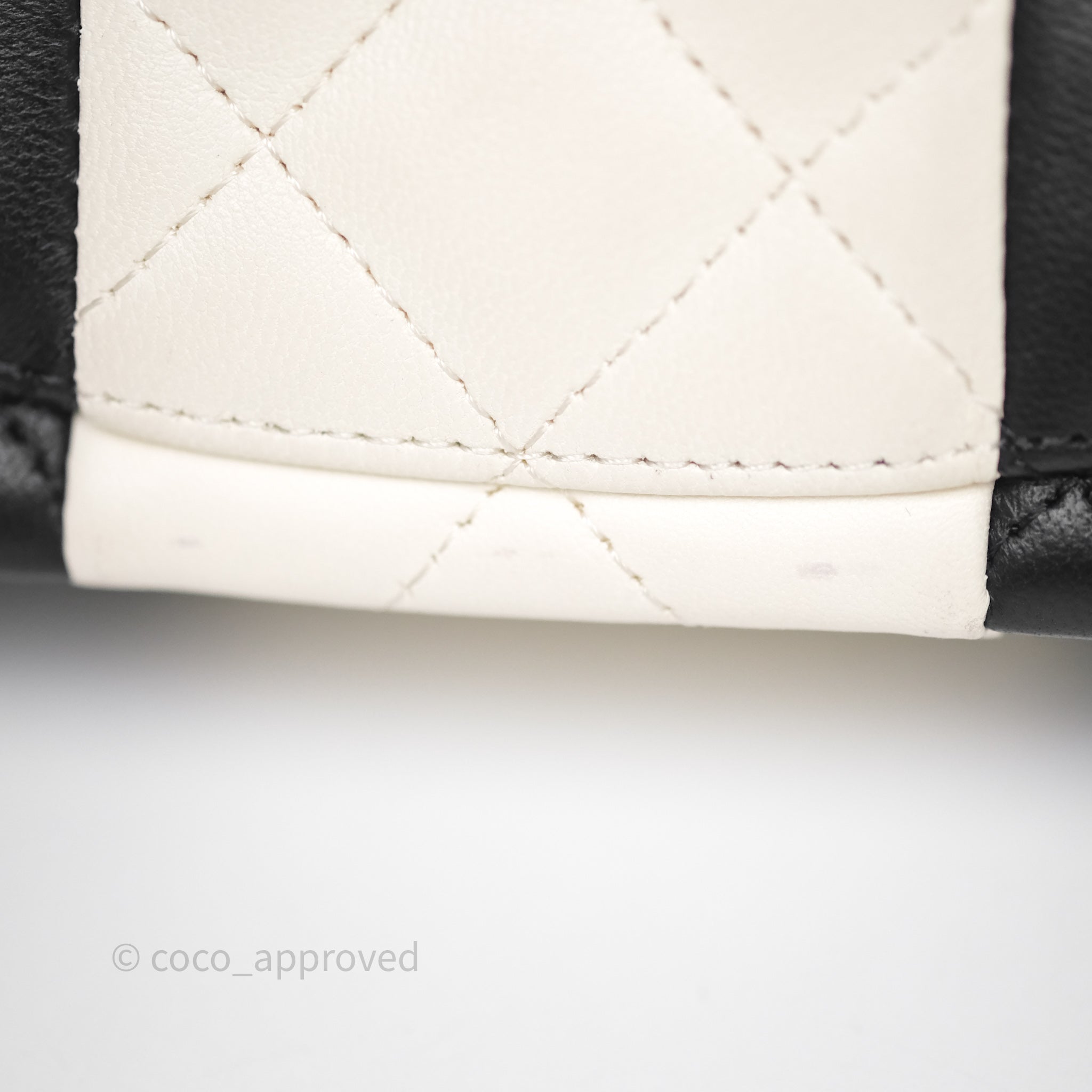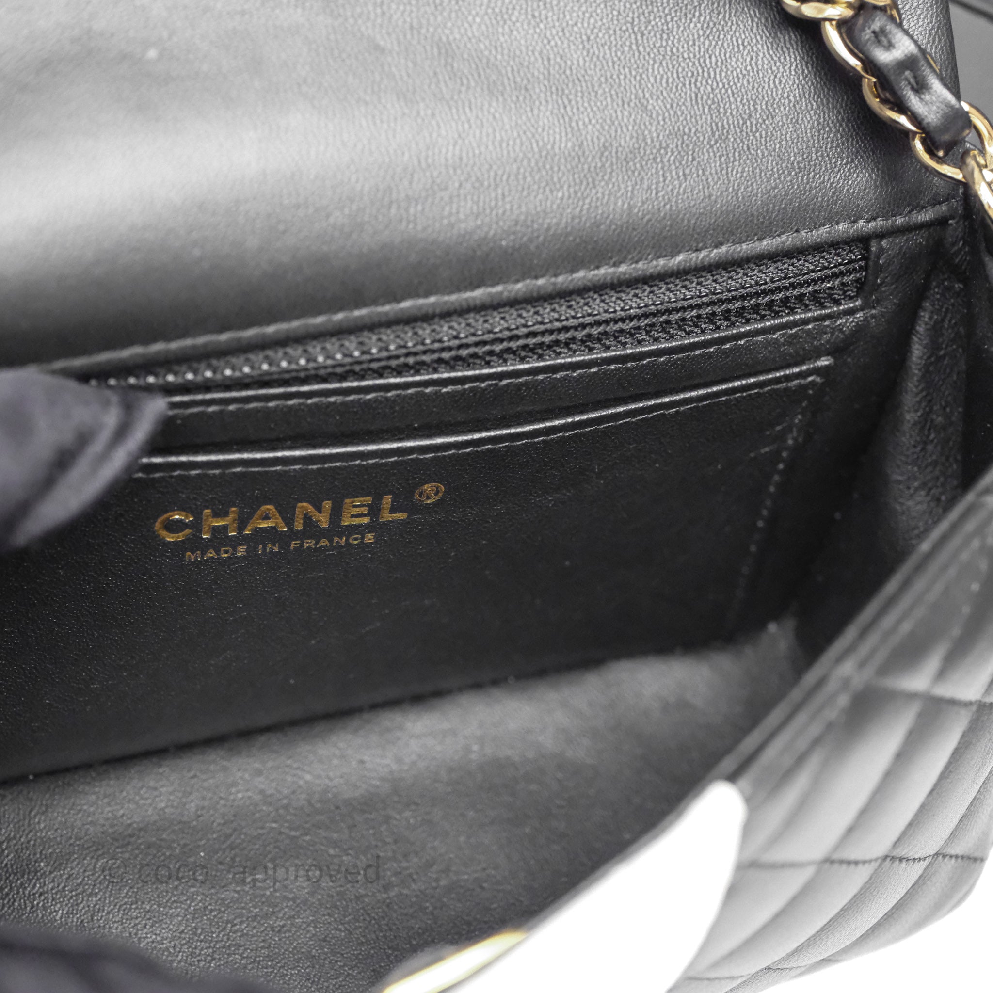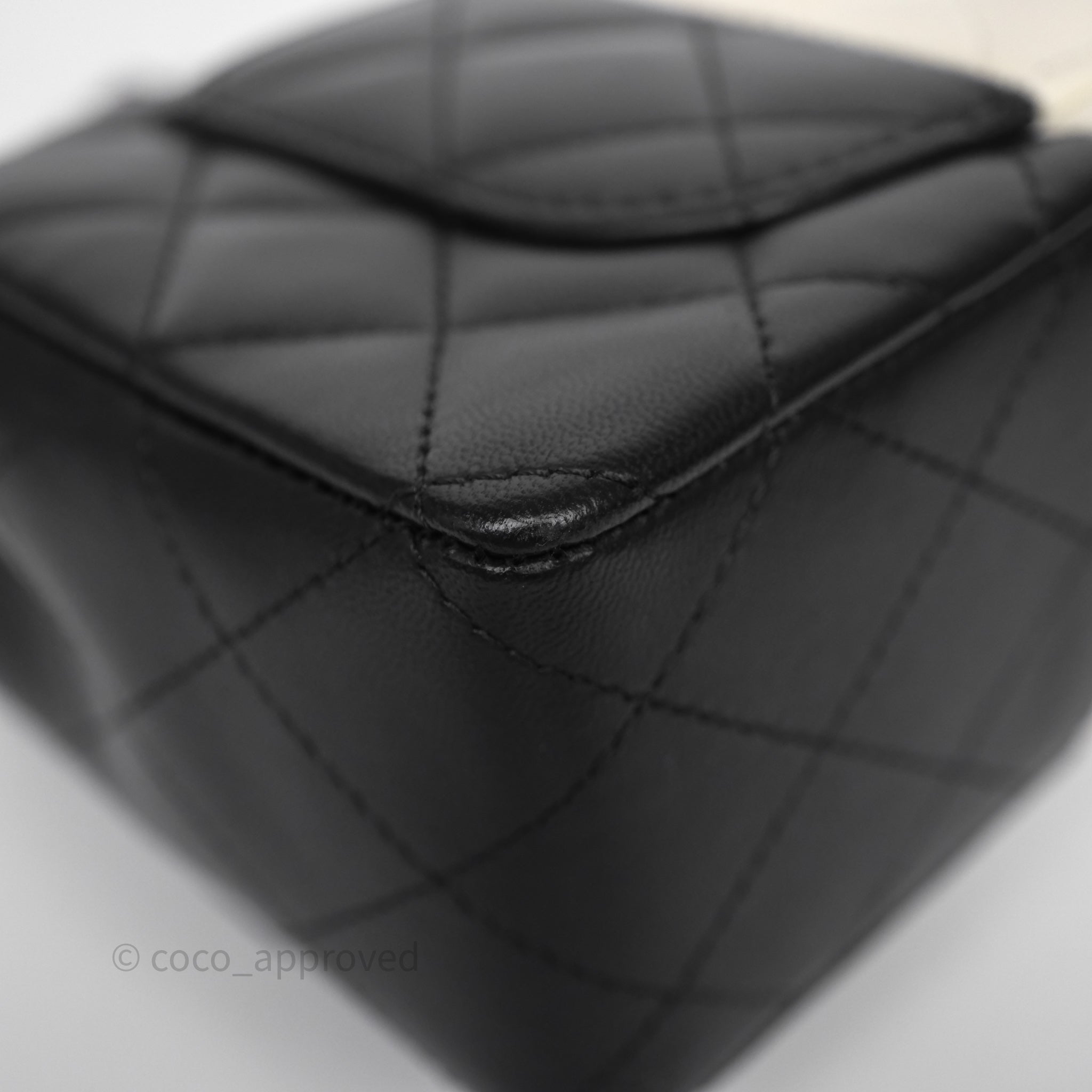 Chanel Mini Rectangular Flap Quilted Black White Lambskin Gold Hardware