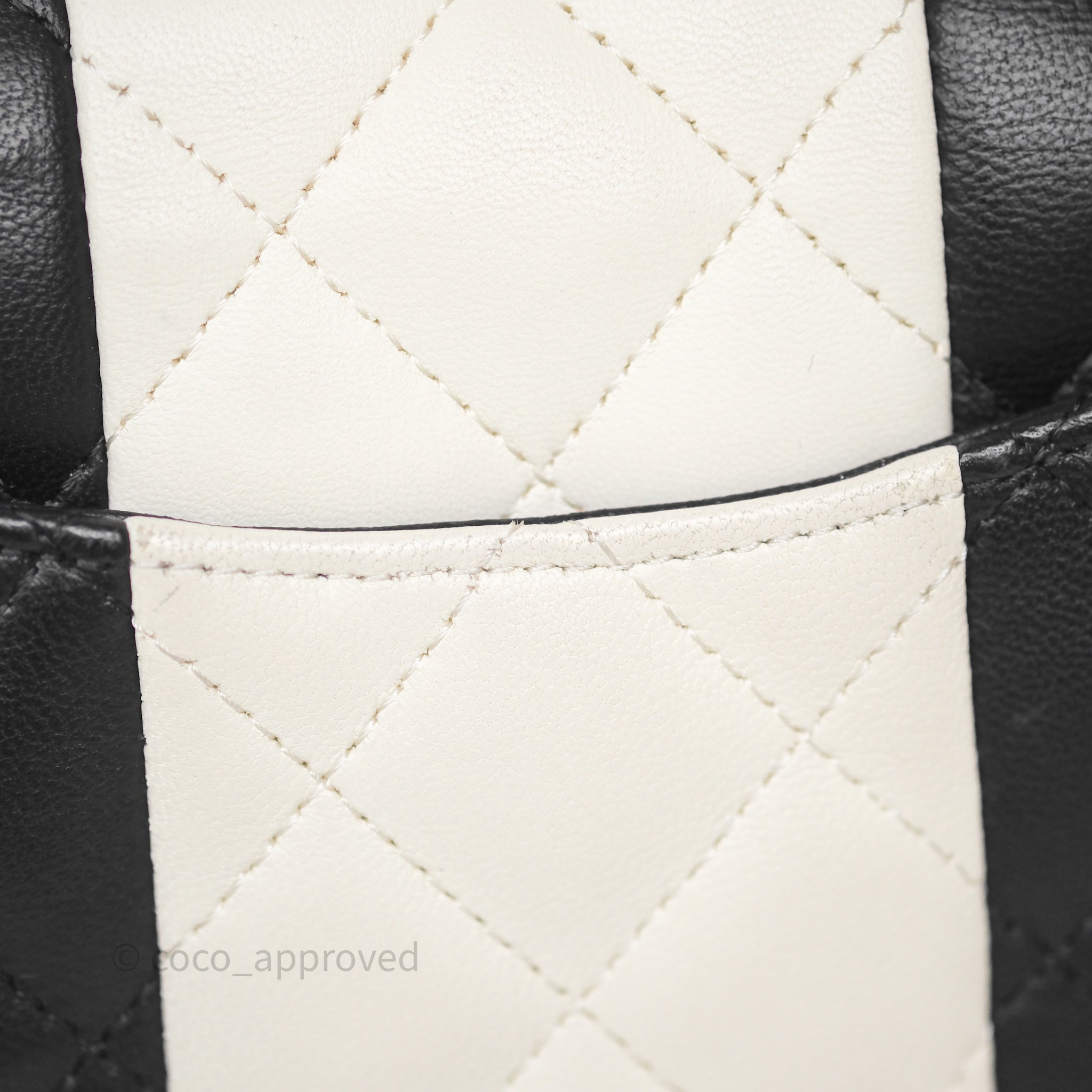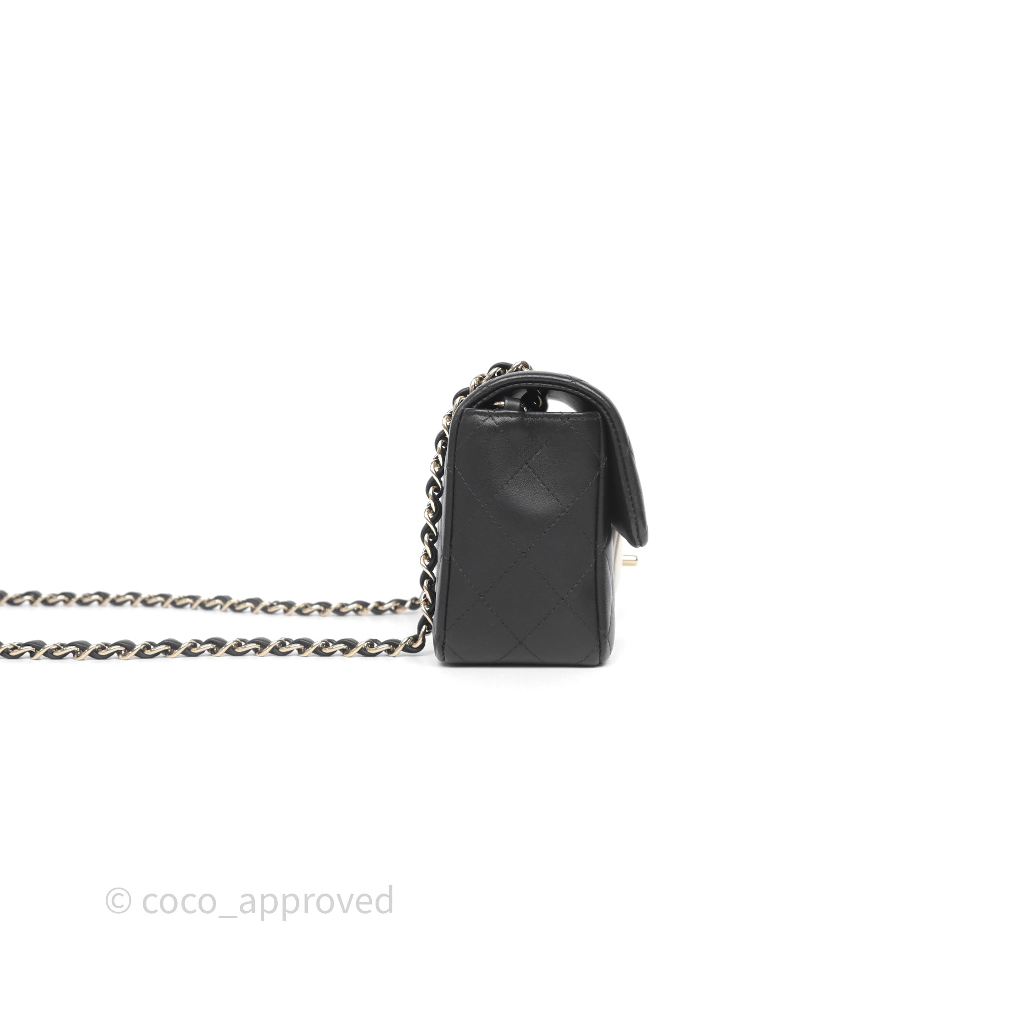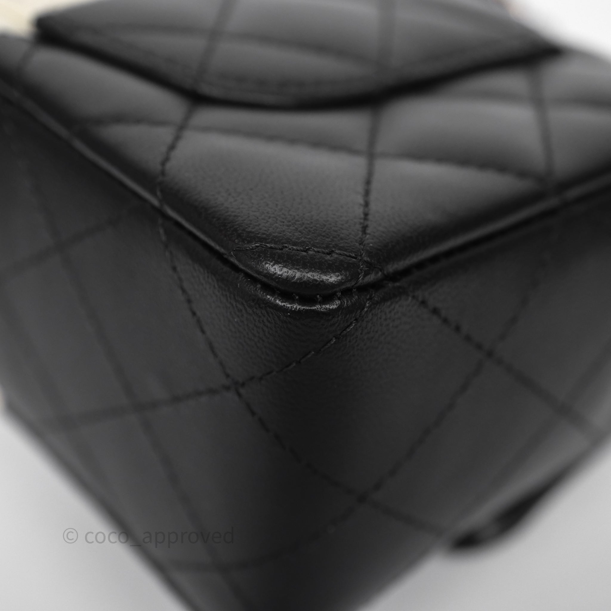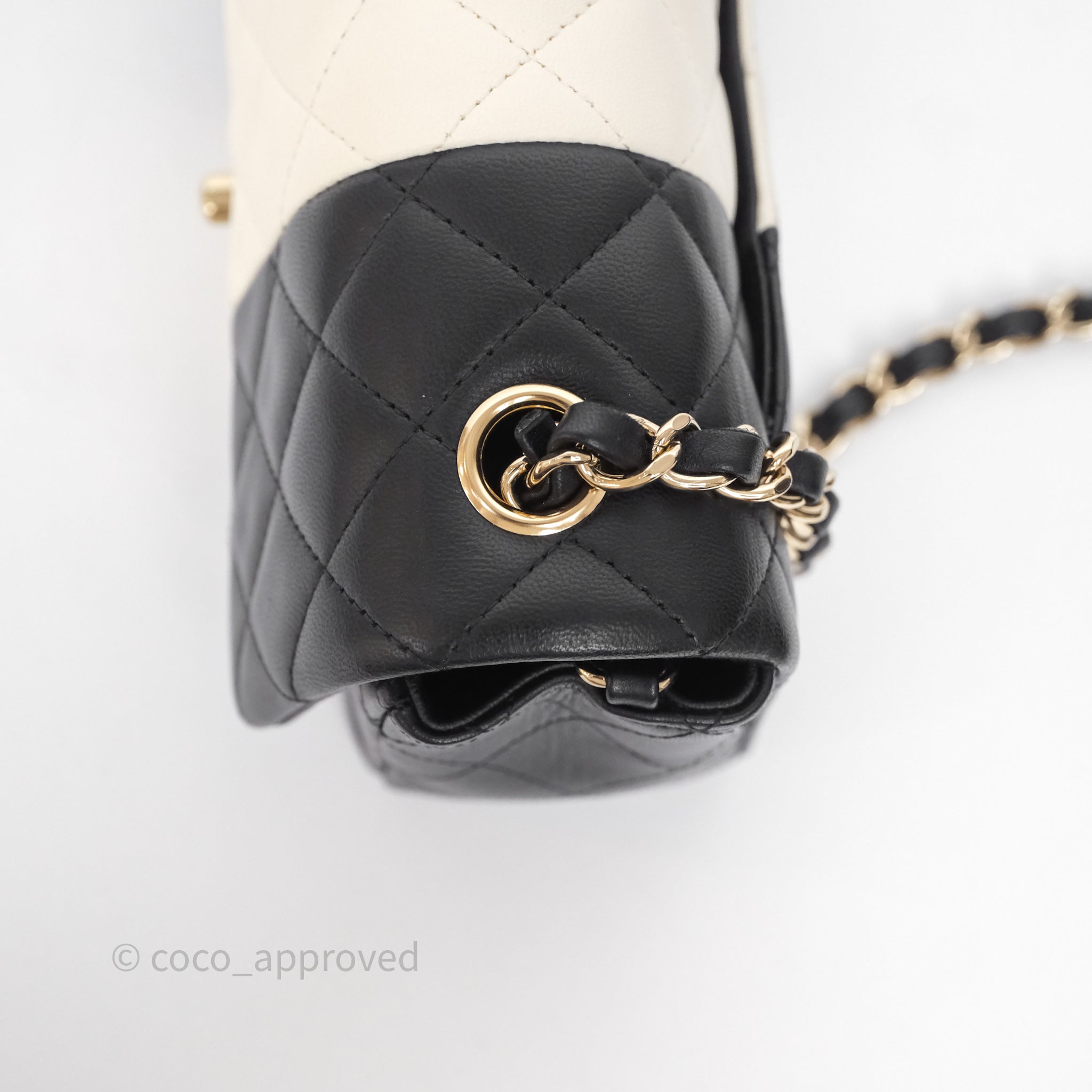 Chanel Mini Rectangular Flap Quilted Black White Lambskin Gold Hardware