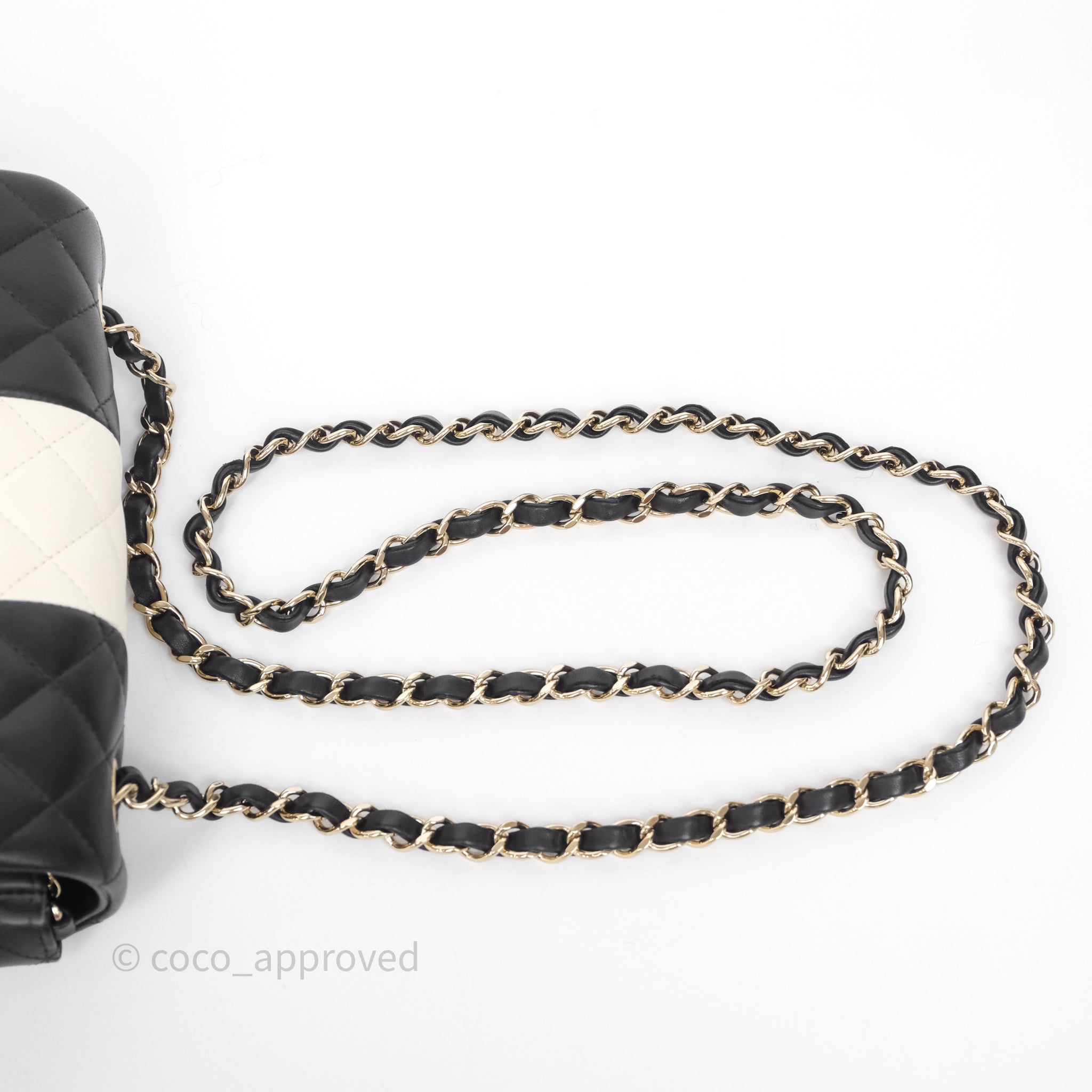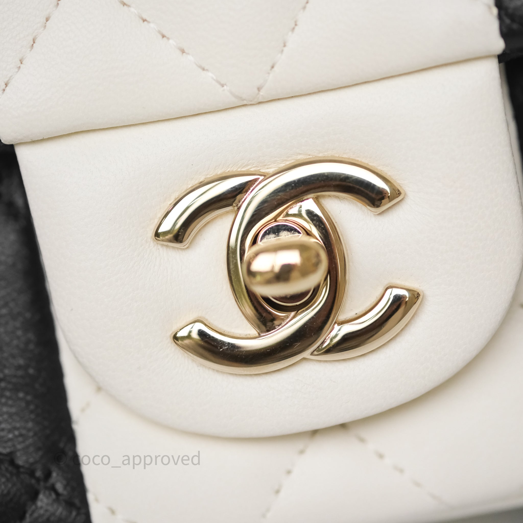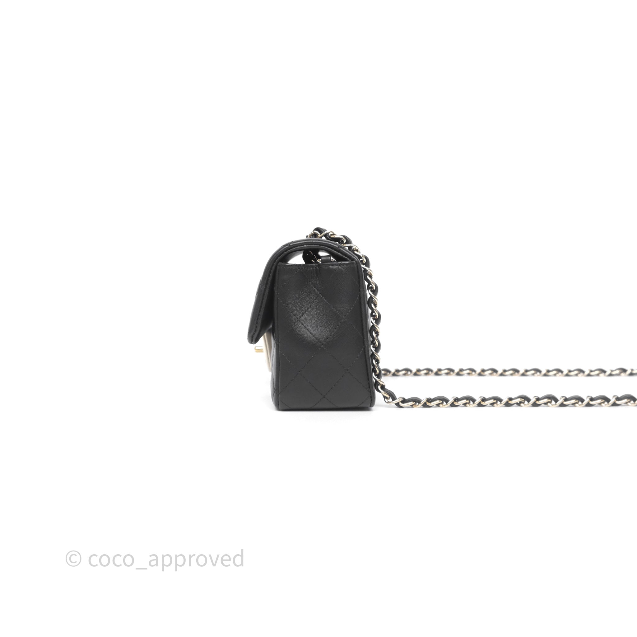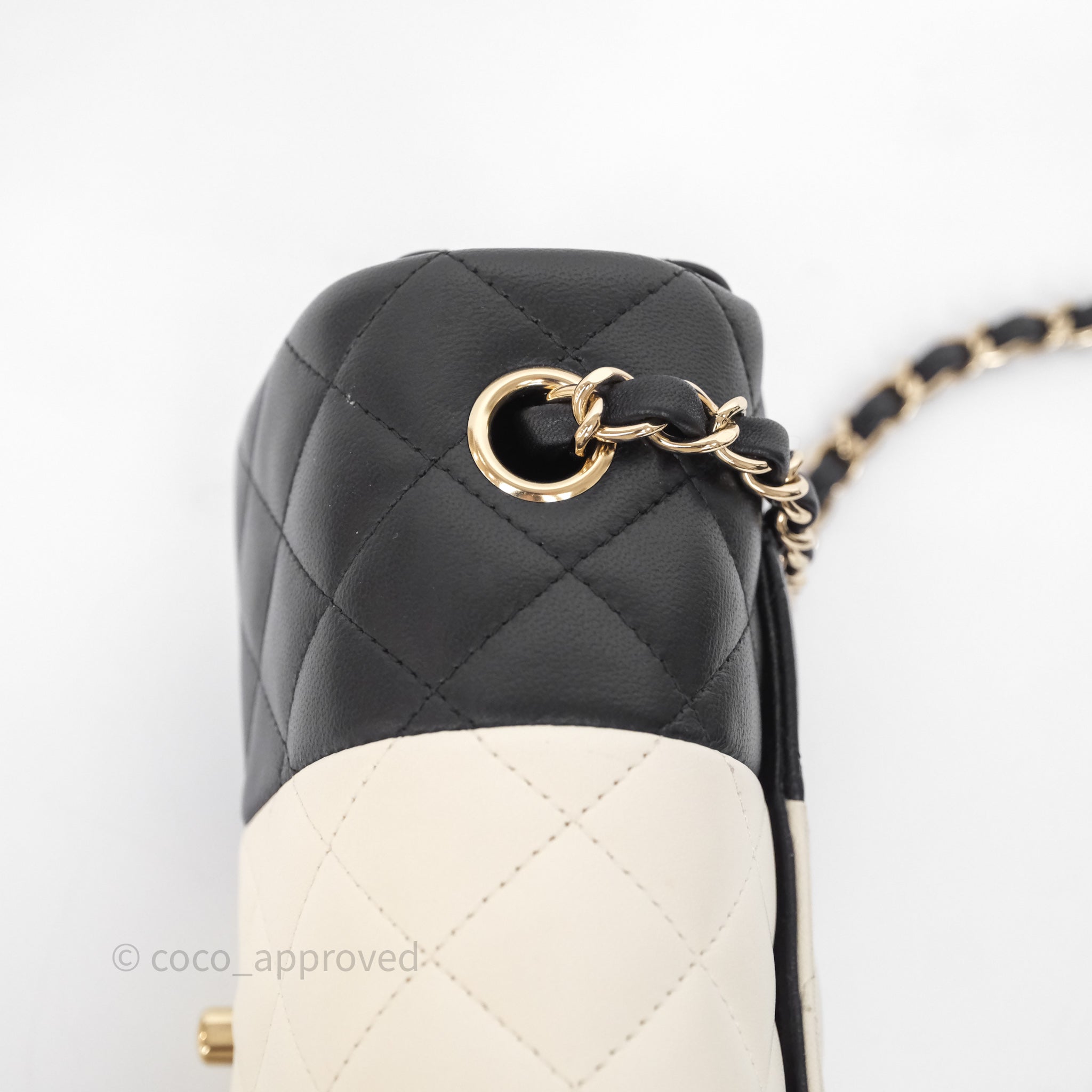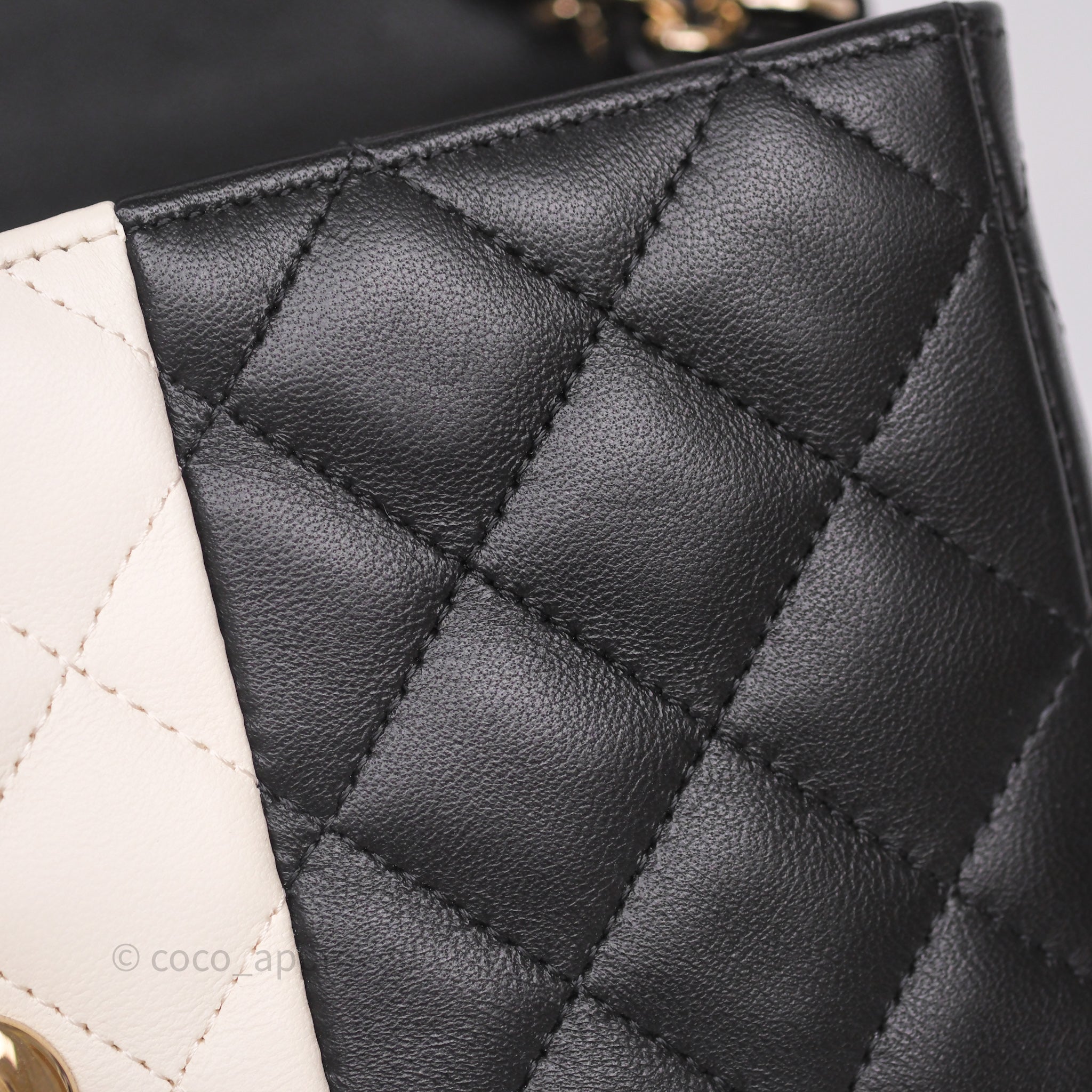Chanel Mini Rectangular Flap Quilted Black White Lambskin Gold Hardware