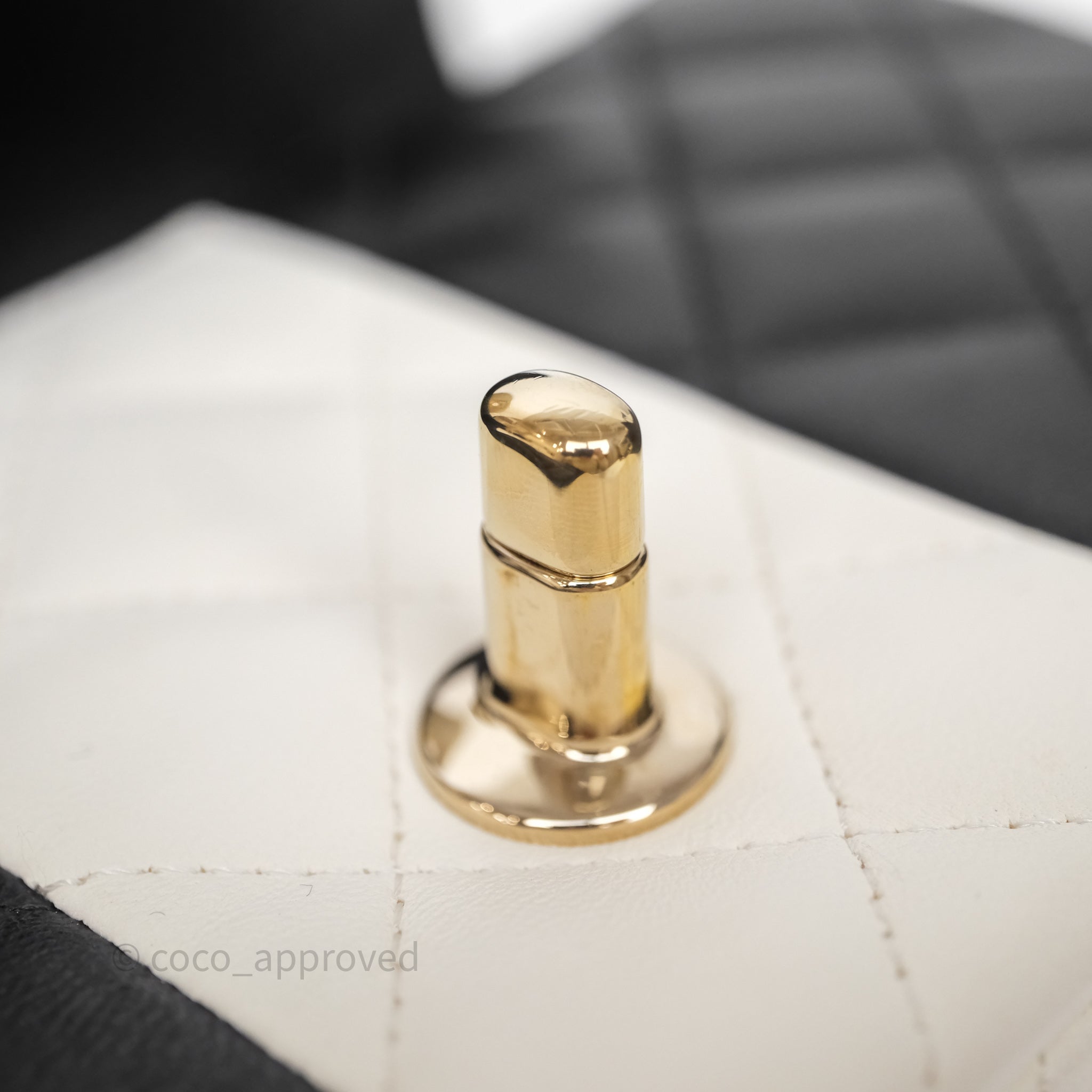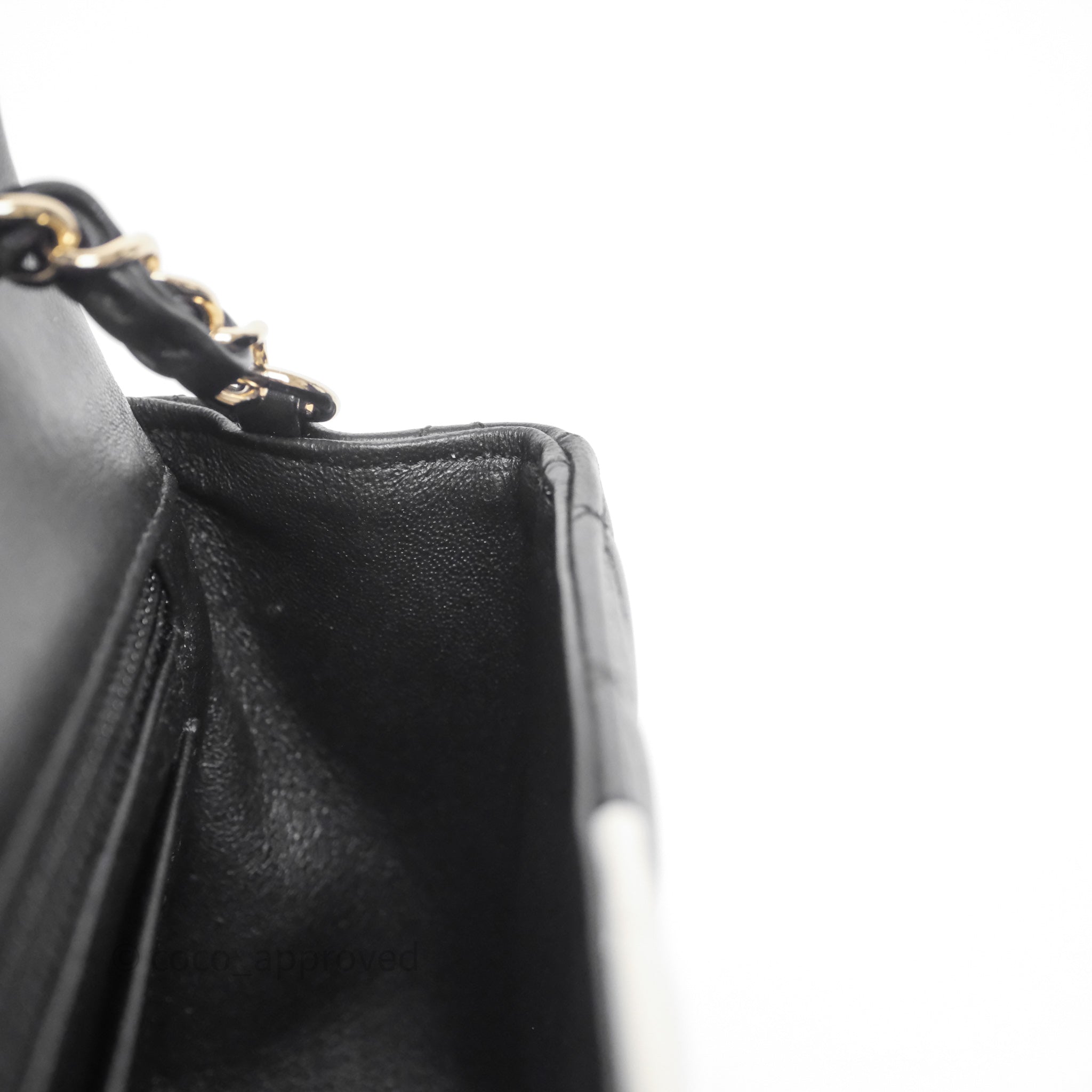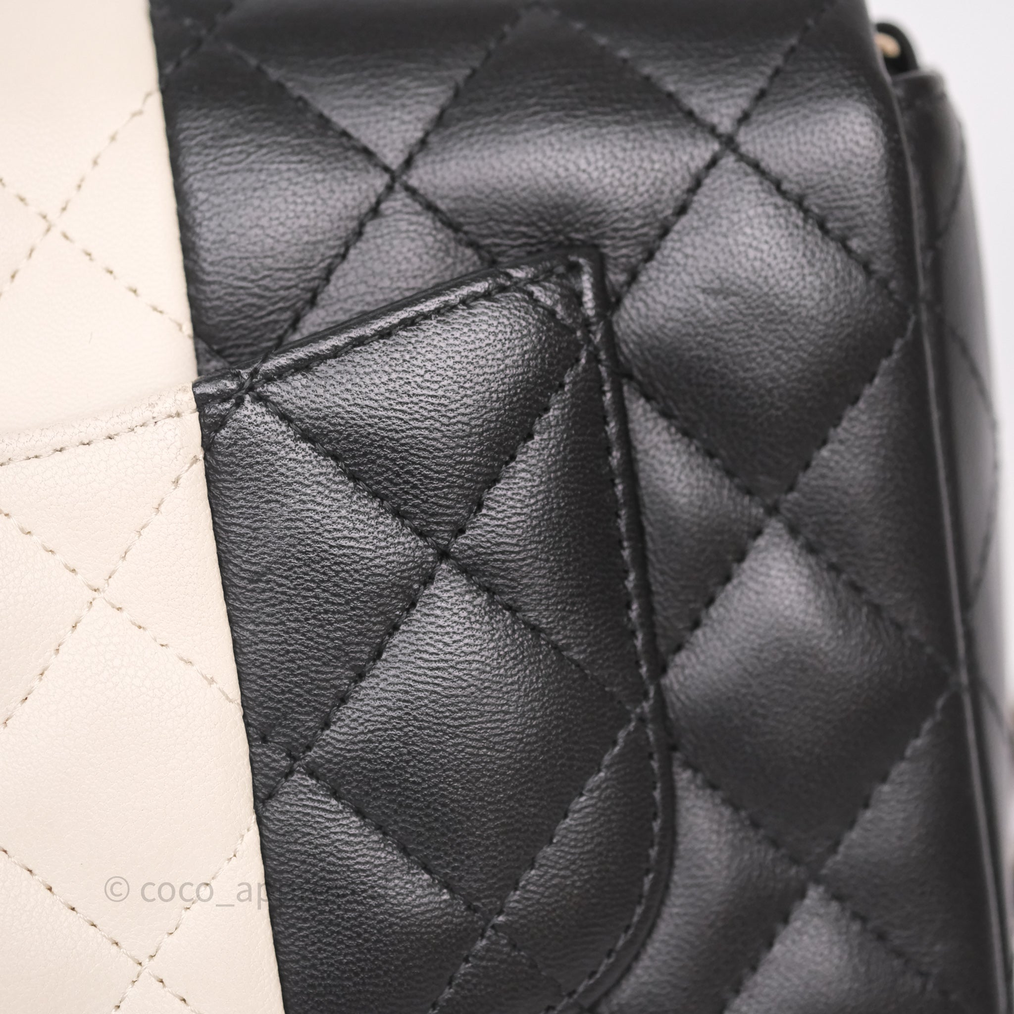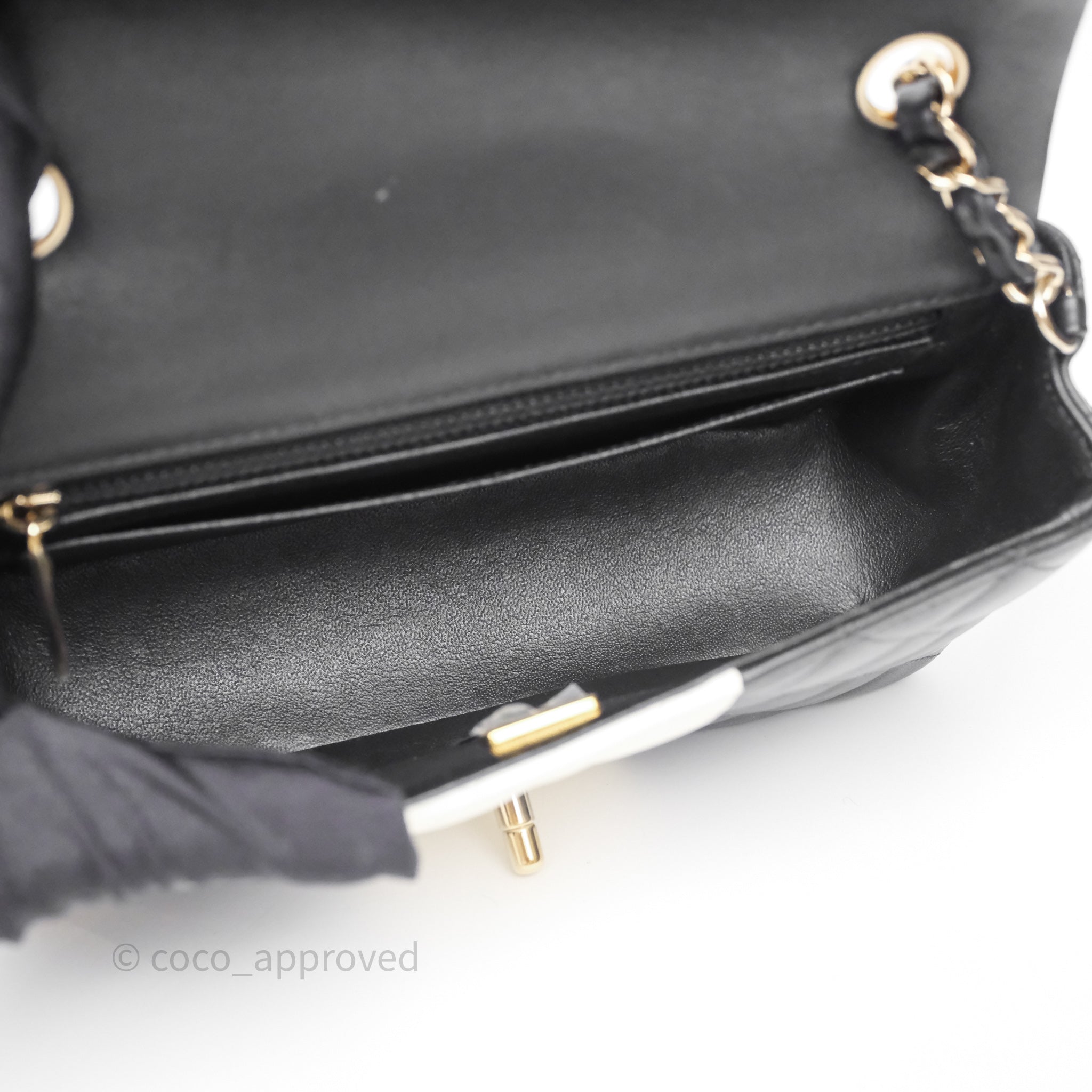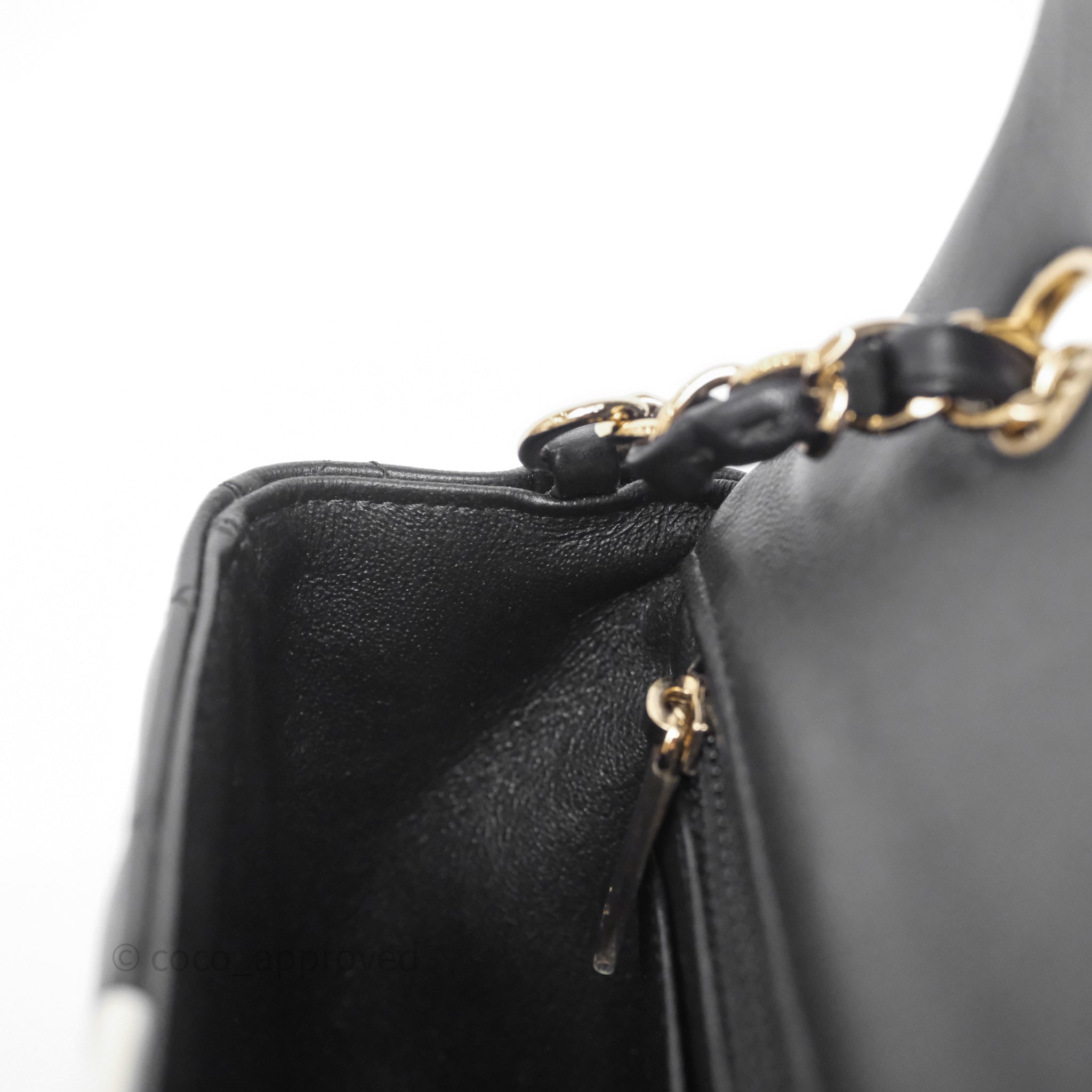 Chanel Mini Rectangular Flap Quilted Black White Lambskin Gold Hardware