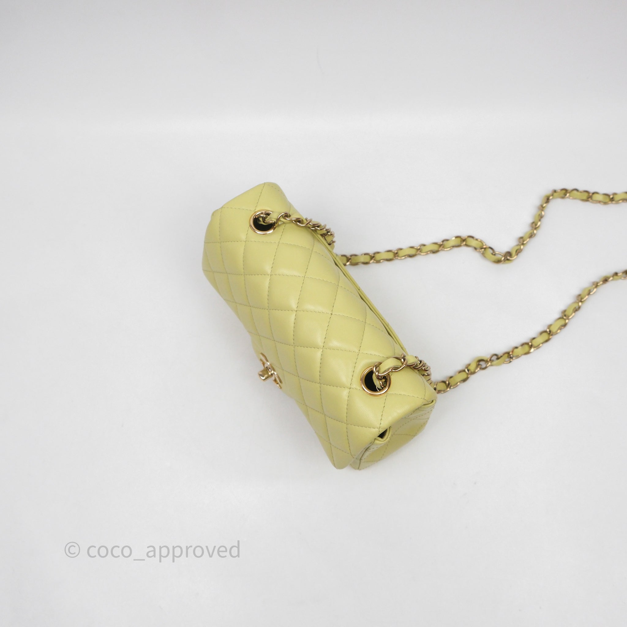 Chanel Mini Rectangular Flap Quilted Green Lambskin Gold Hardware