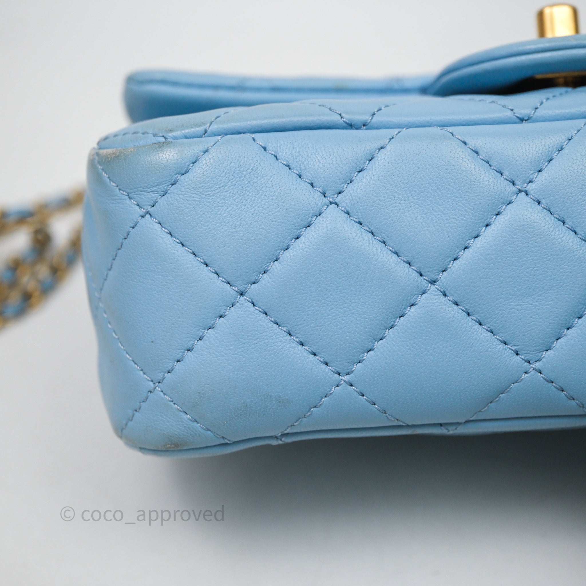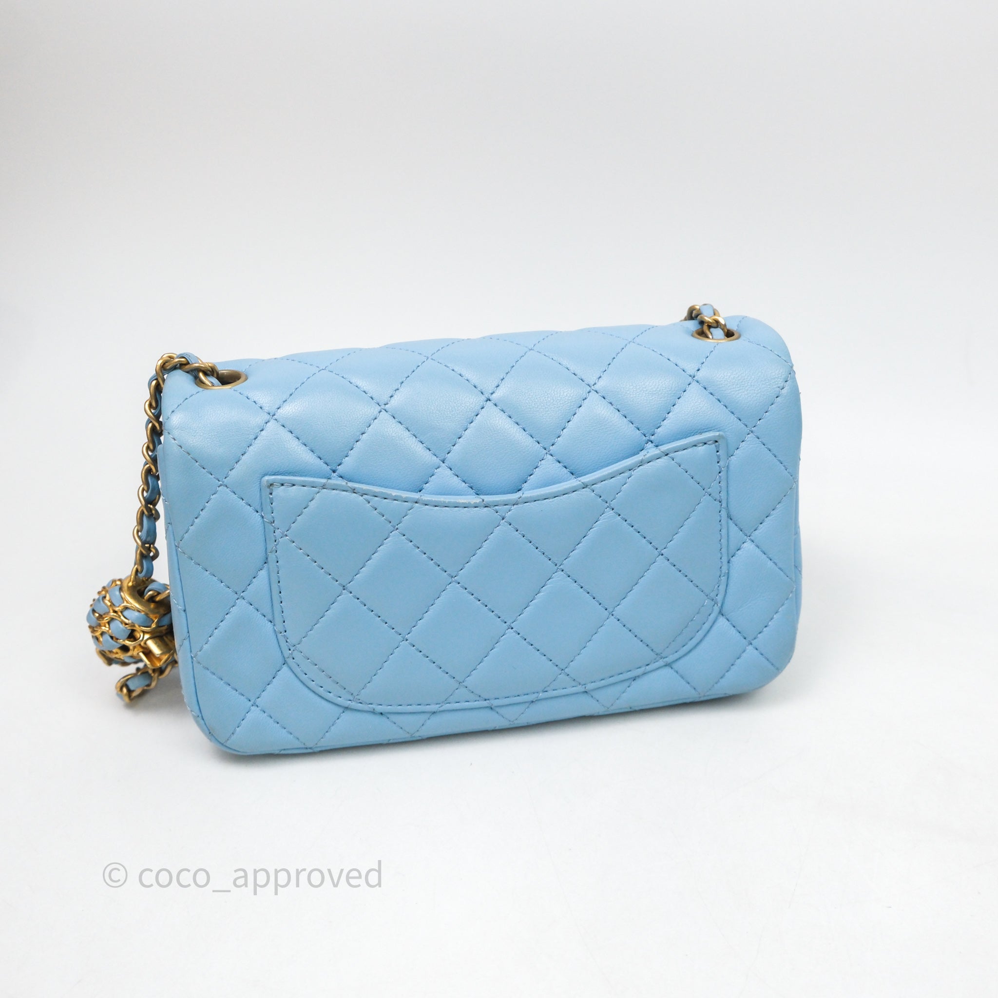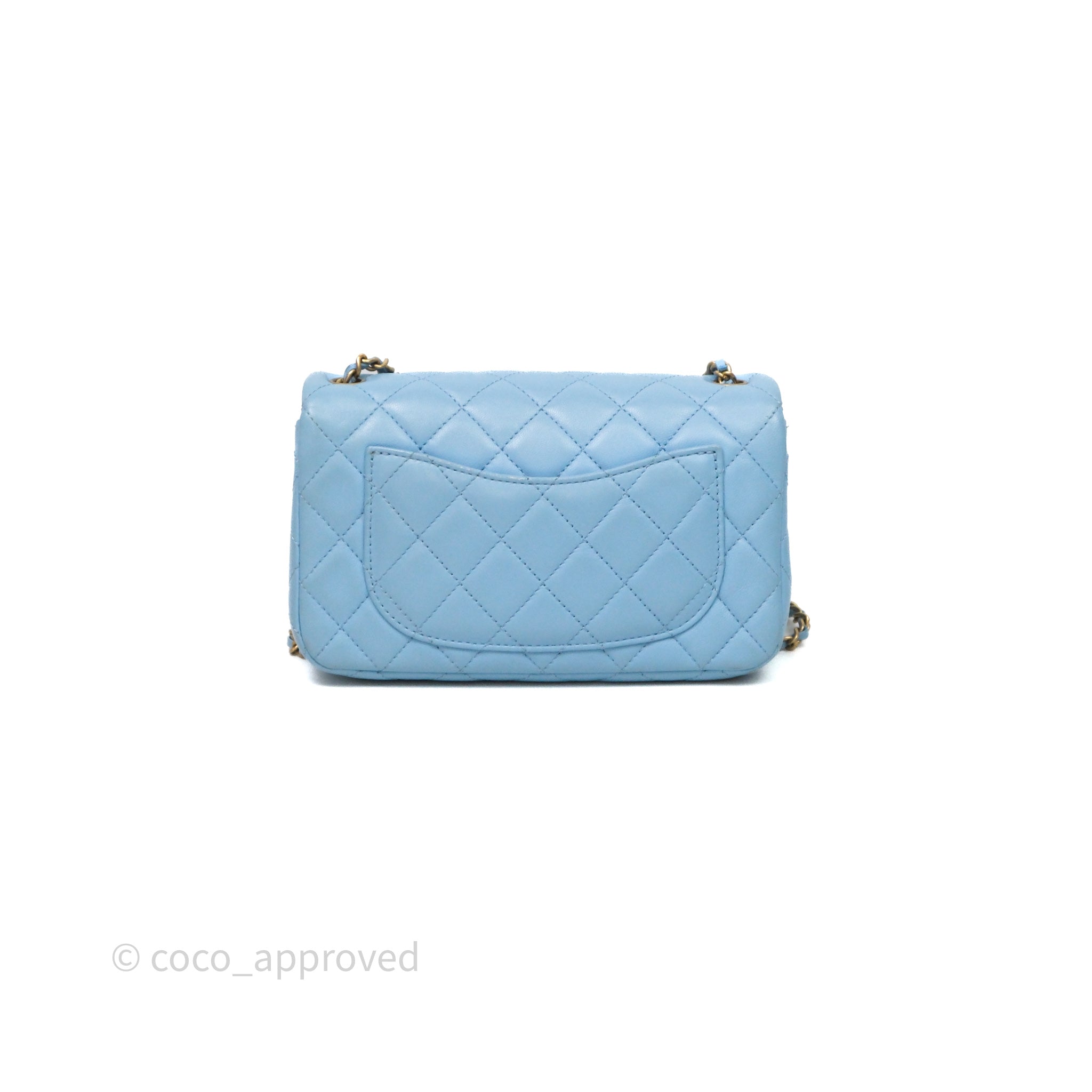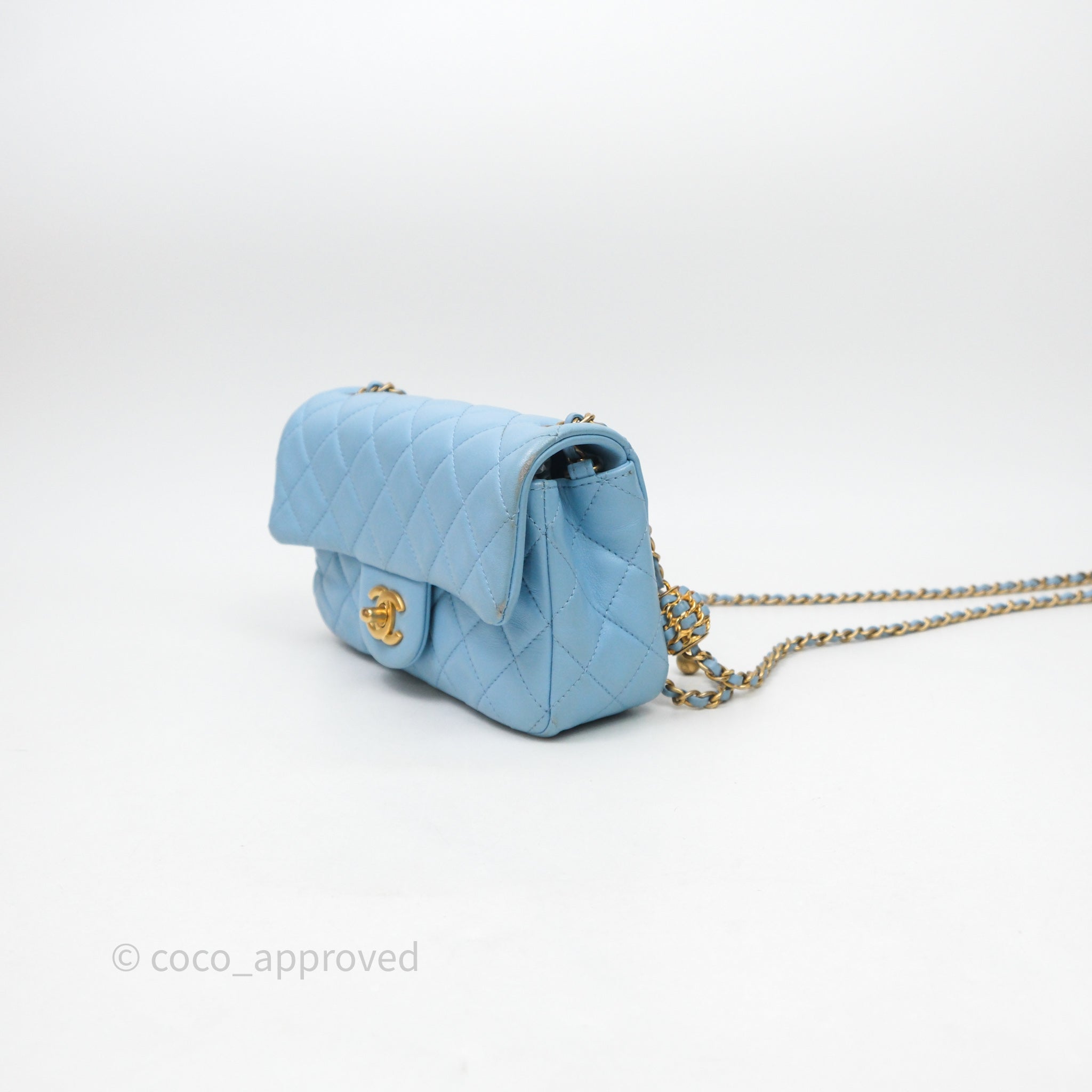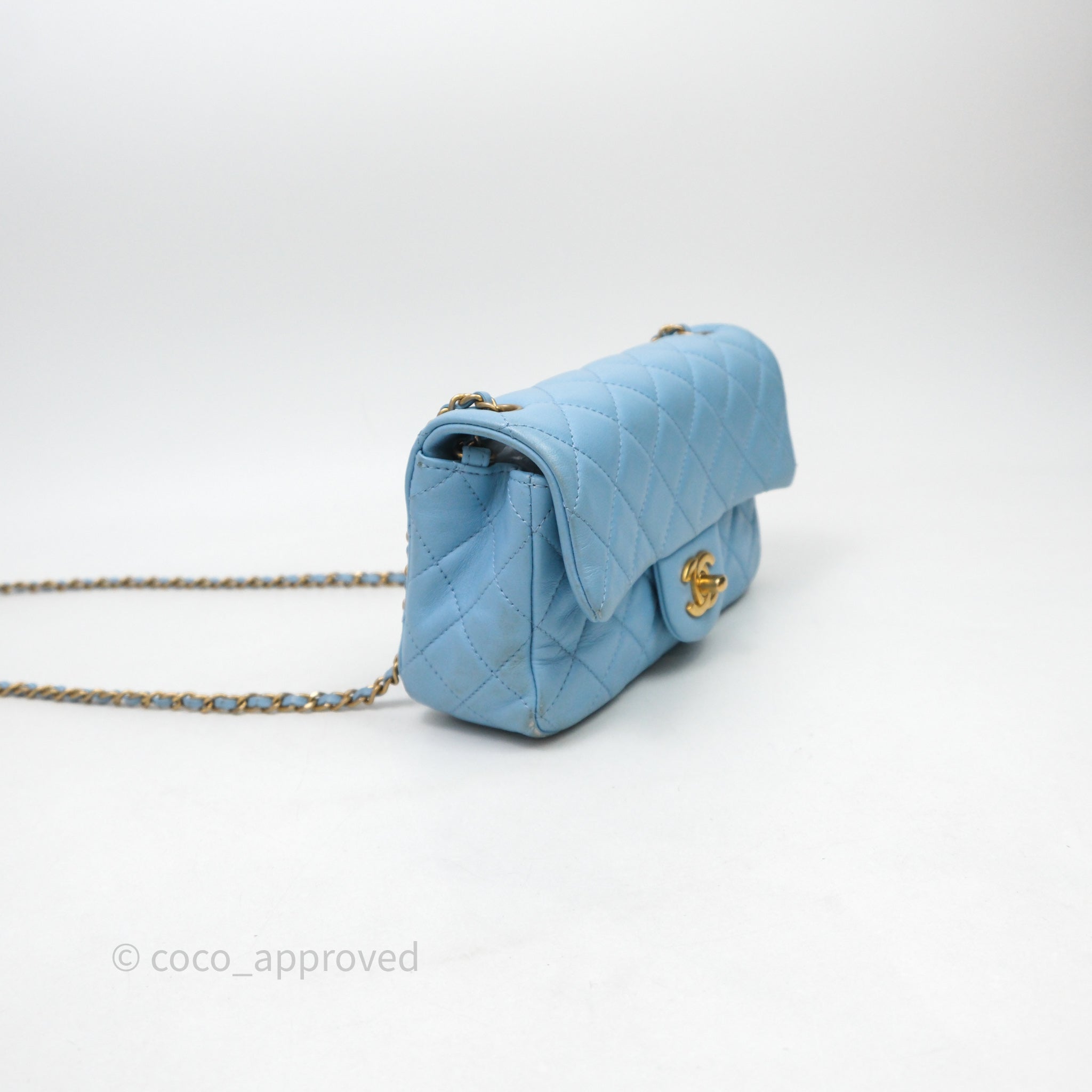 Chanel Mini Rectangular Pearl Crush Quilted Blue Lambskin Aged Gold Hardware
