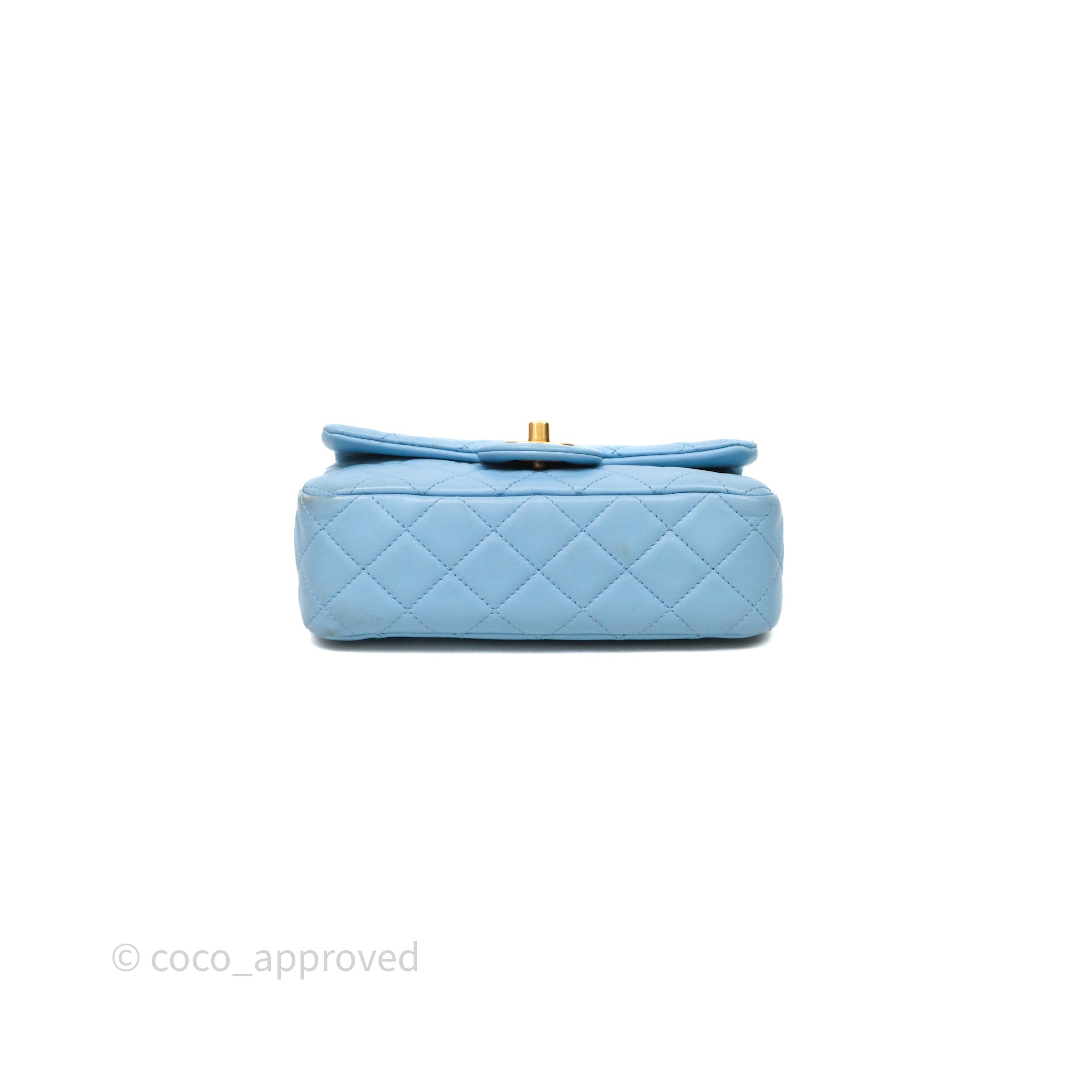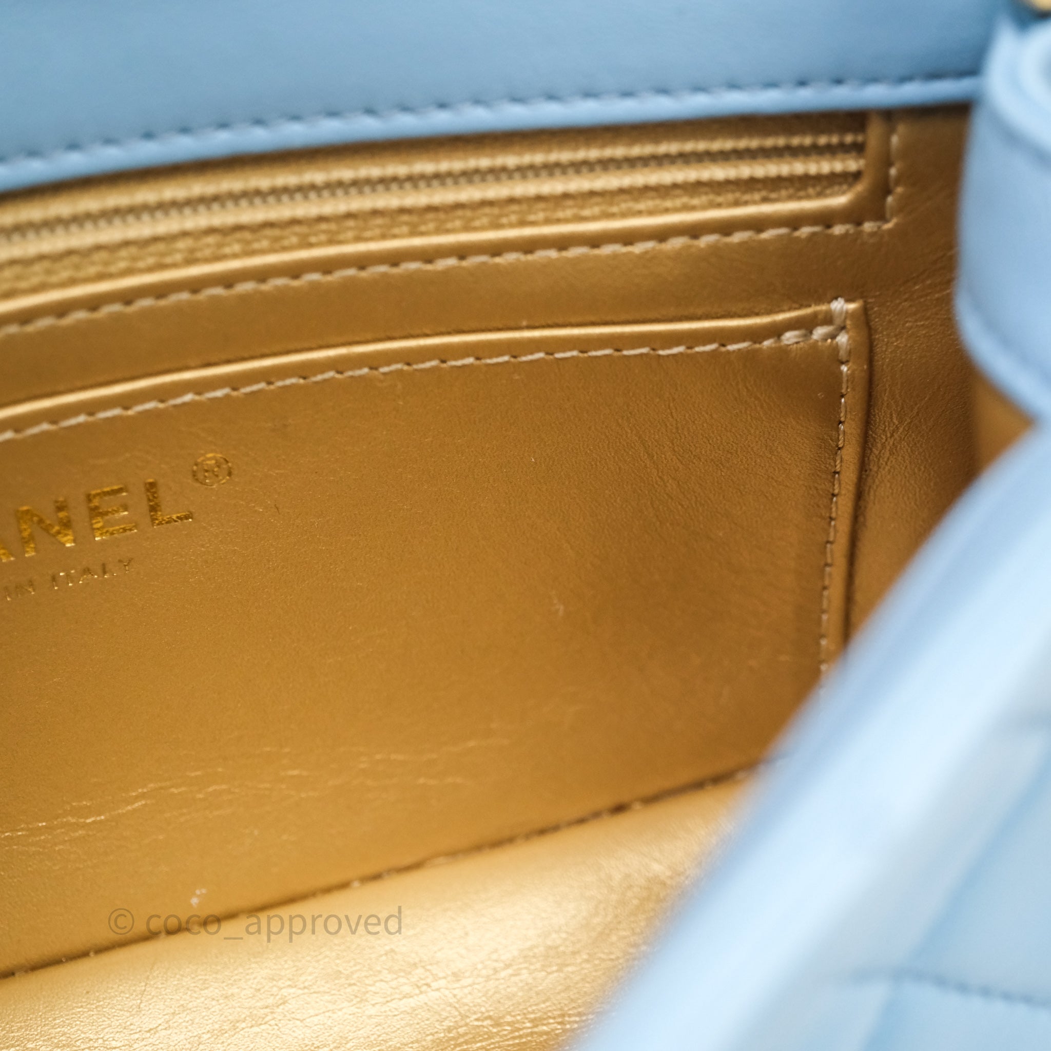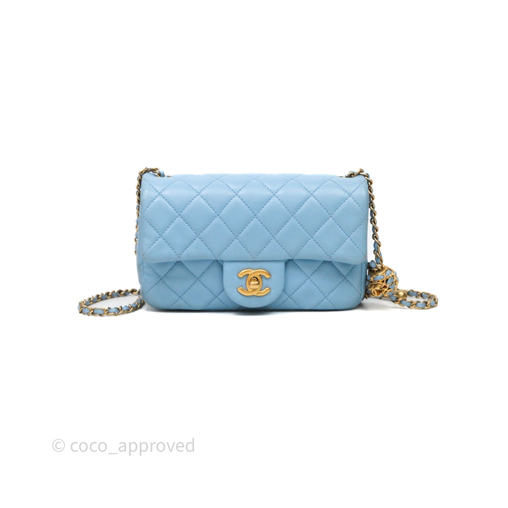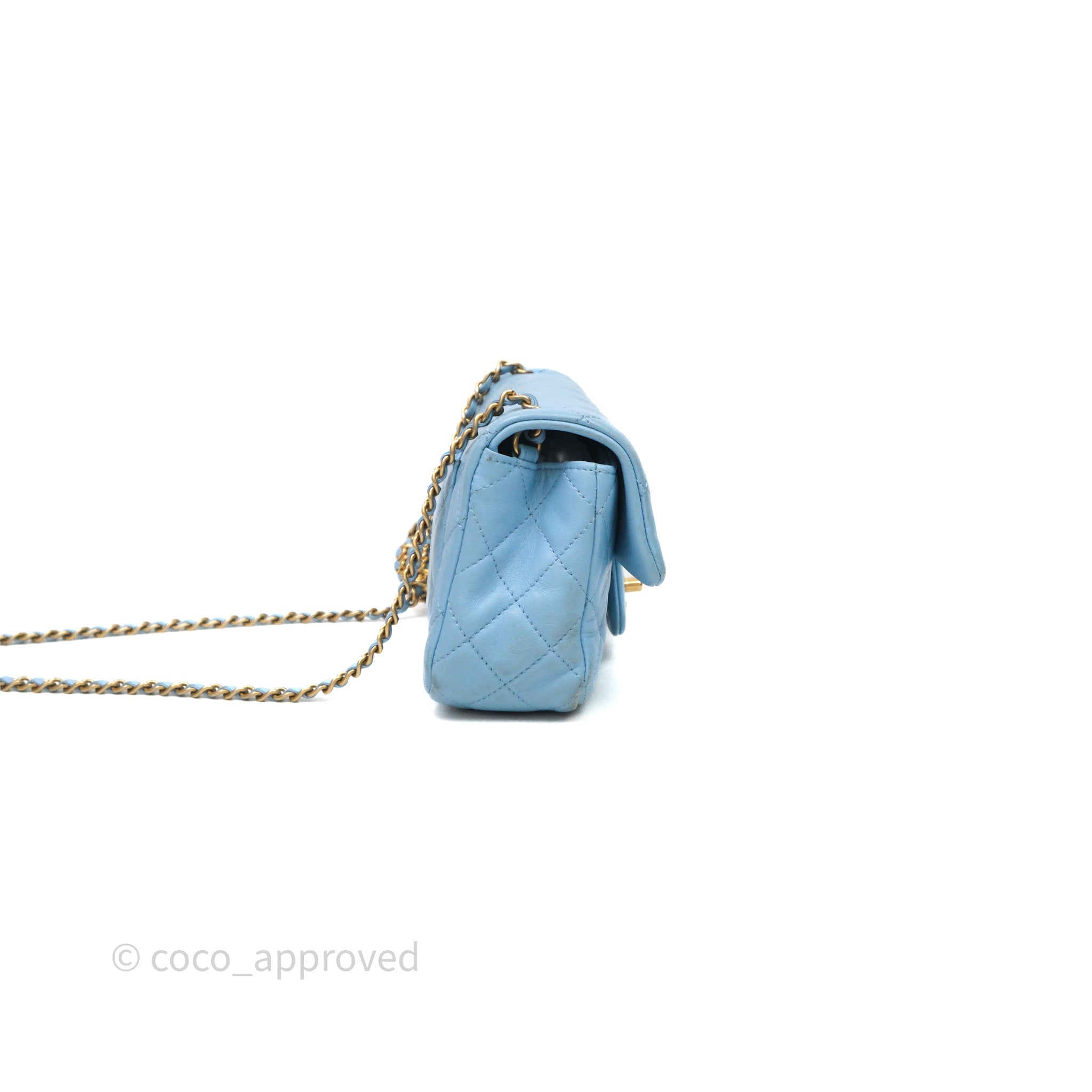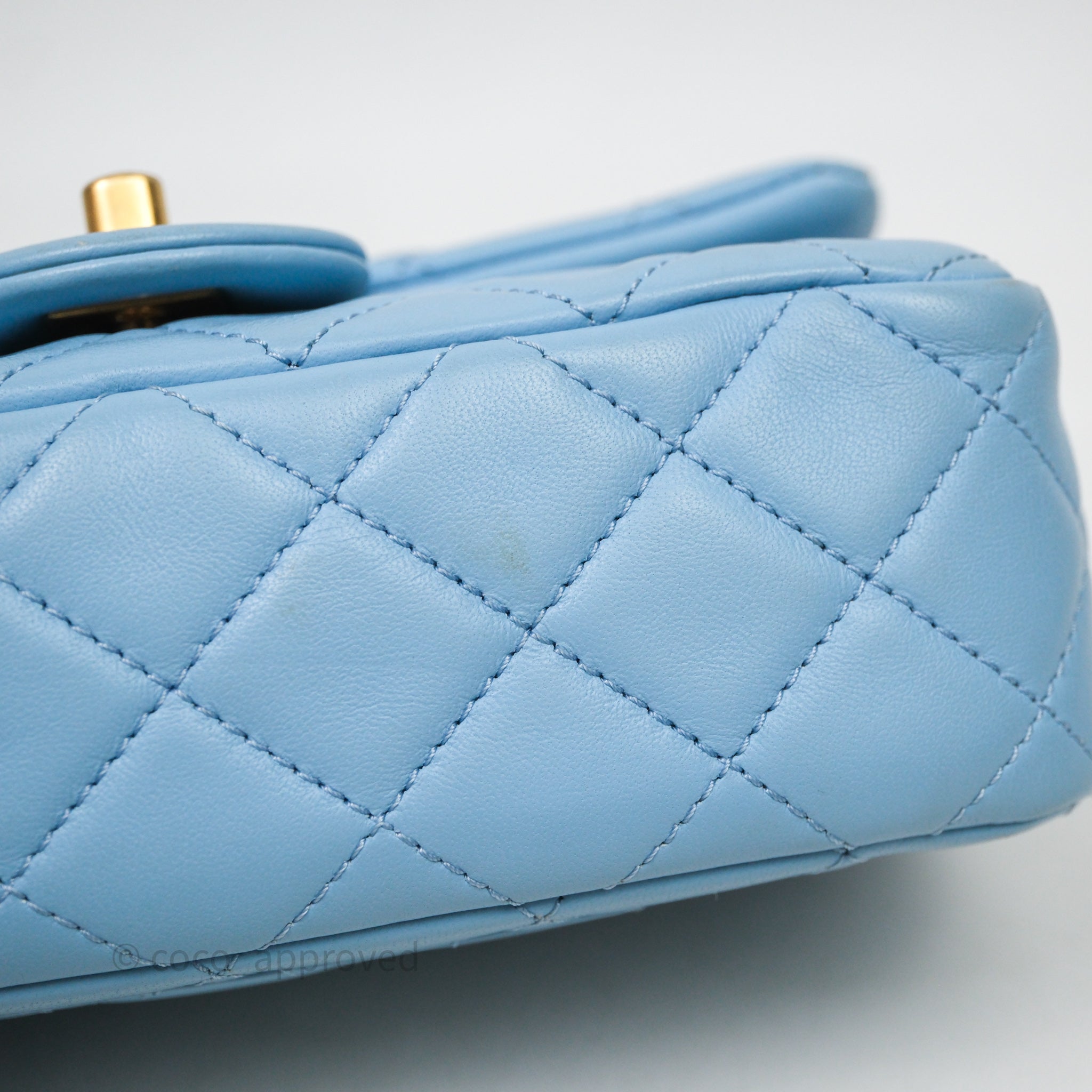 Chanel Mini Rectangular Pearl Crush Quilted Blue Lambskin Aged Gold Hardware