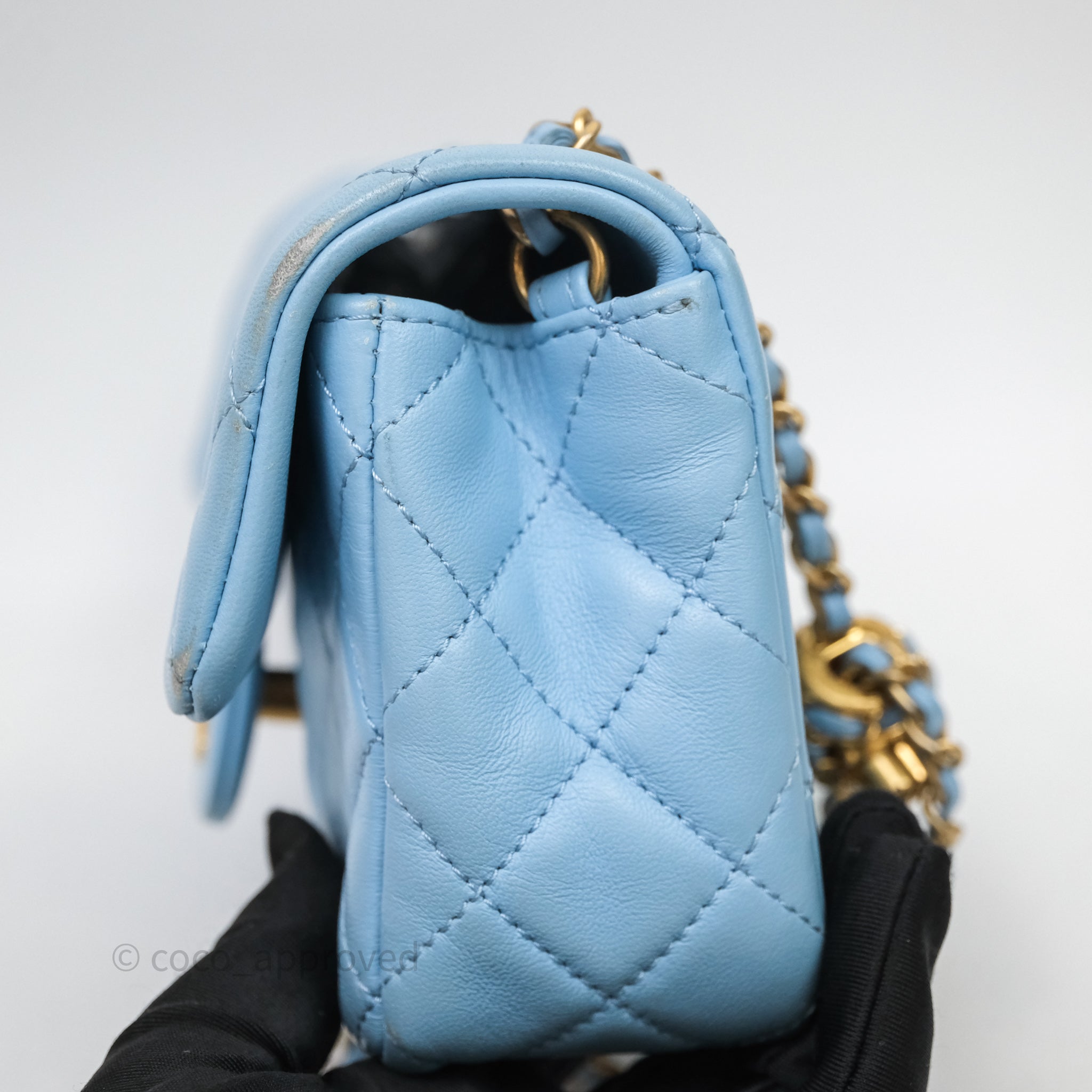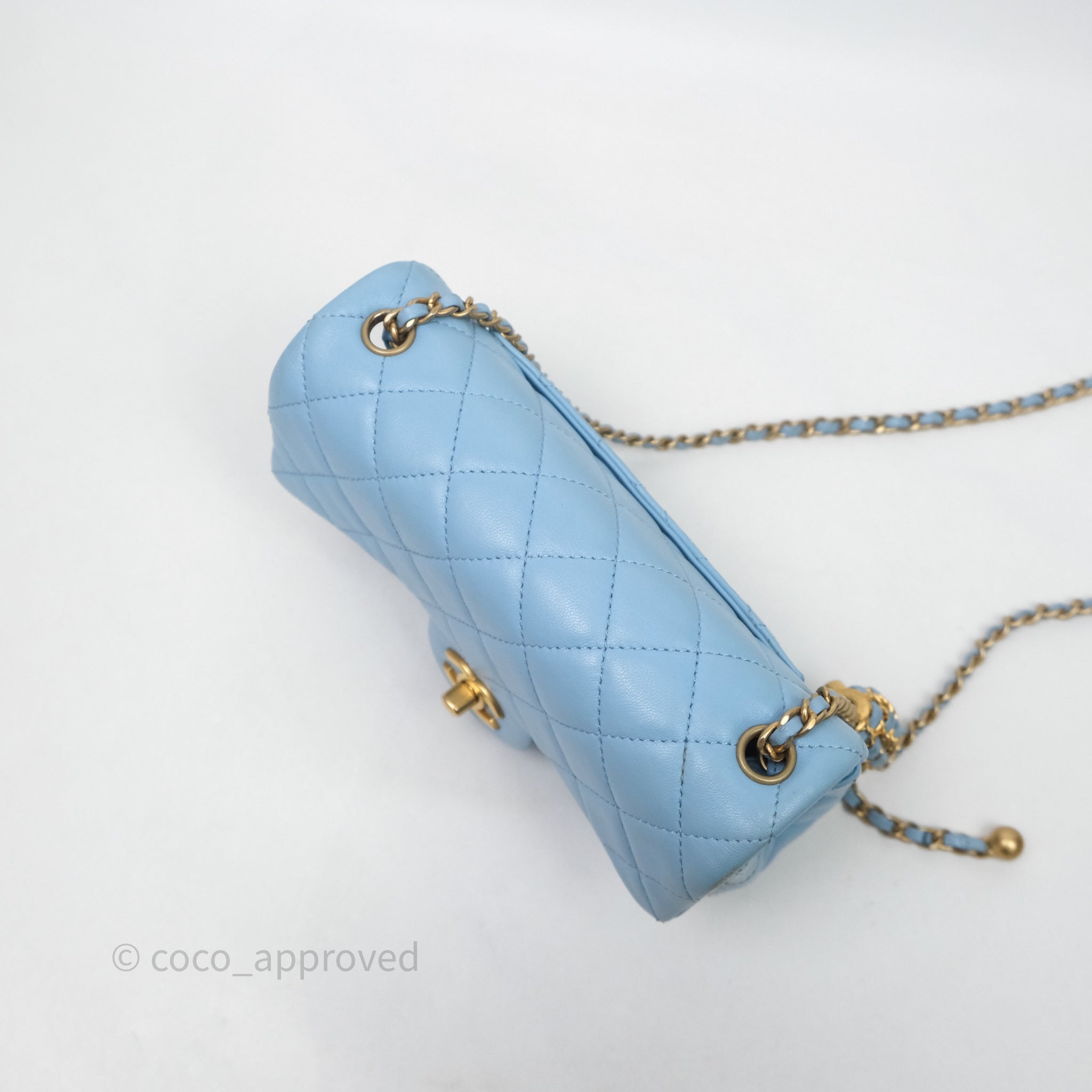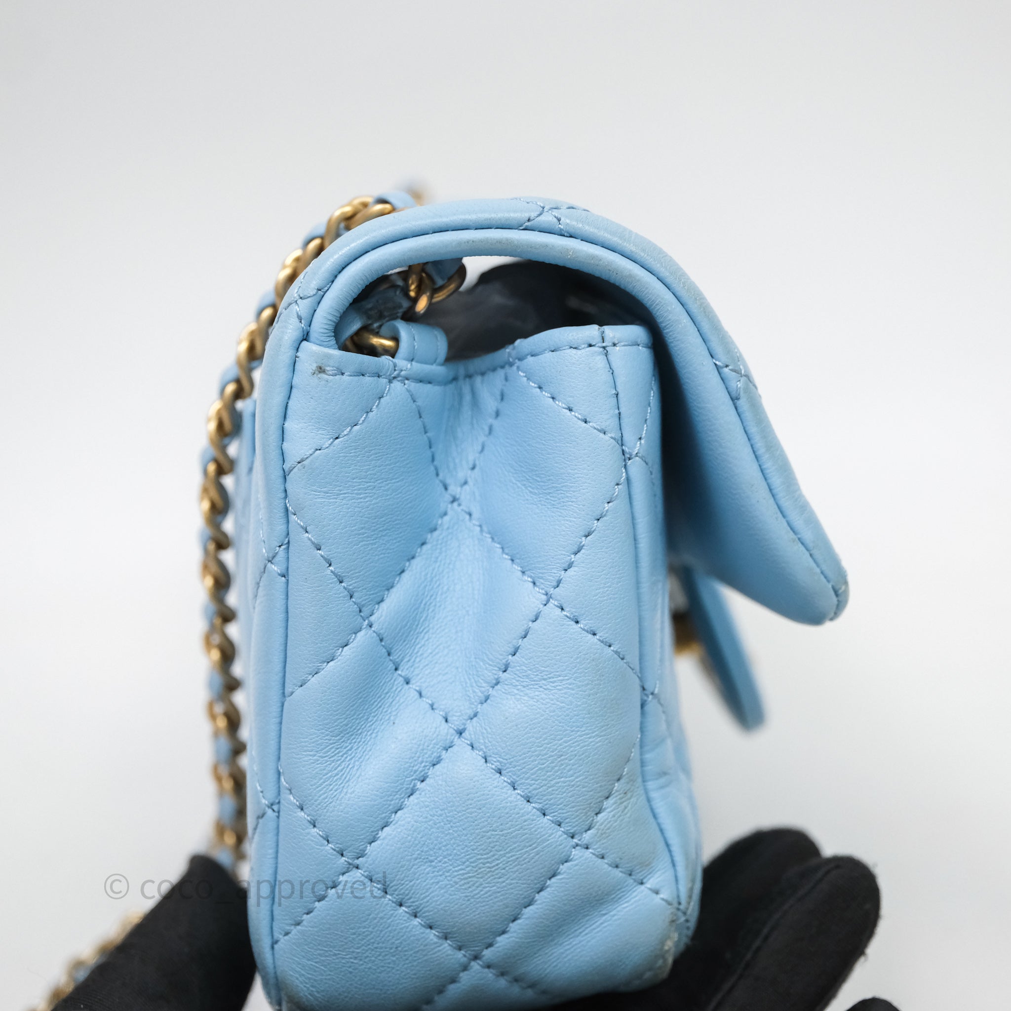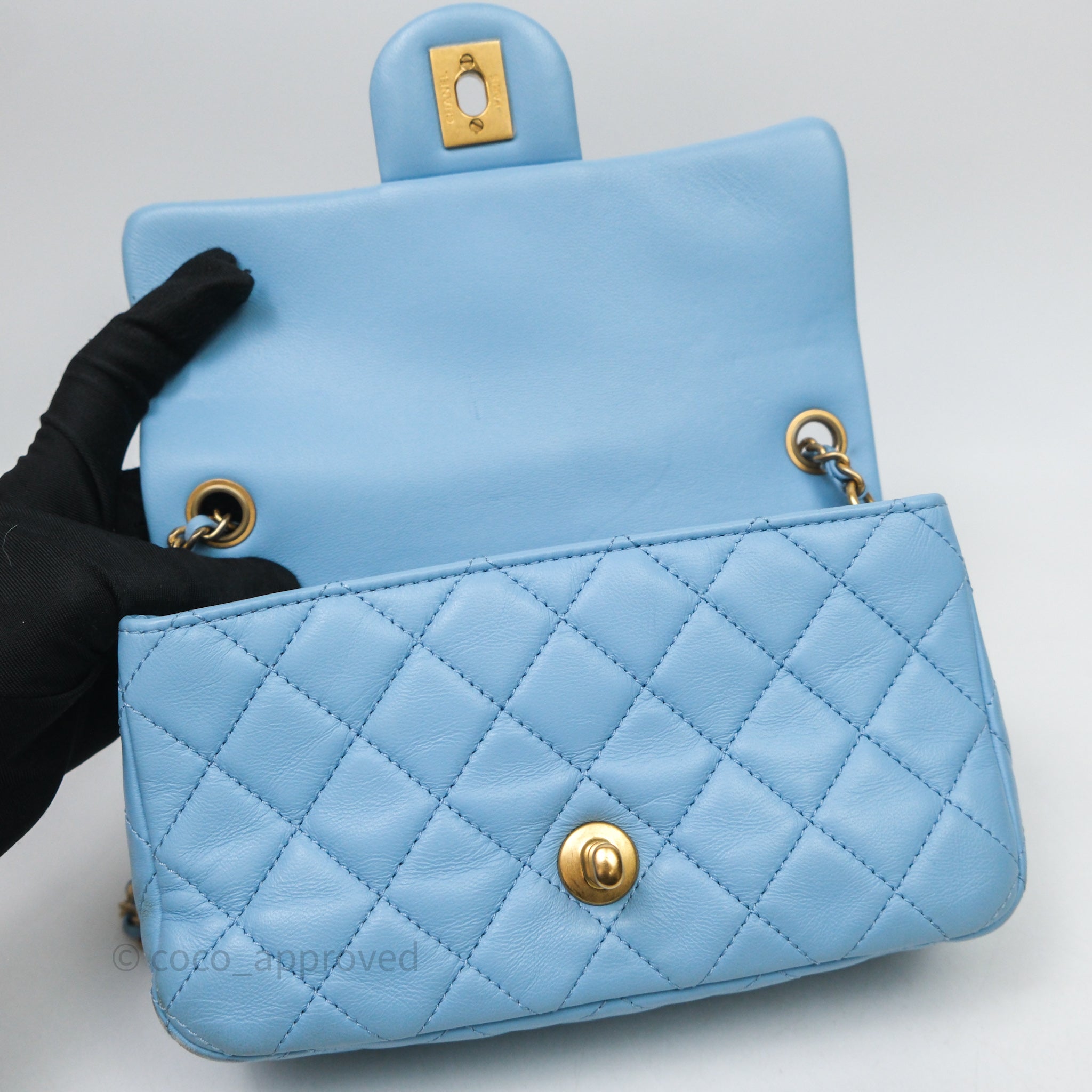 Chanel Mini Rectangular Pearl Crush Quilted Blue Lambskin Aged Gold Hardware