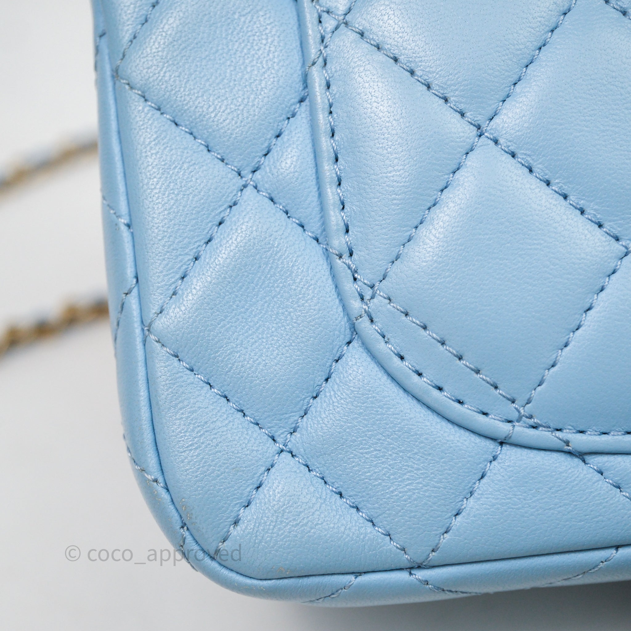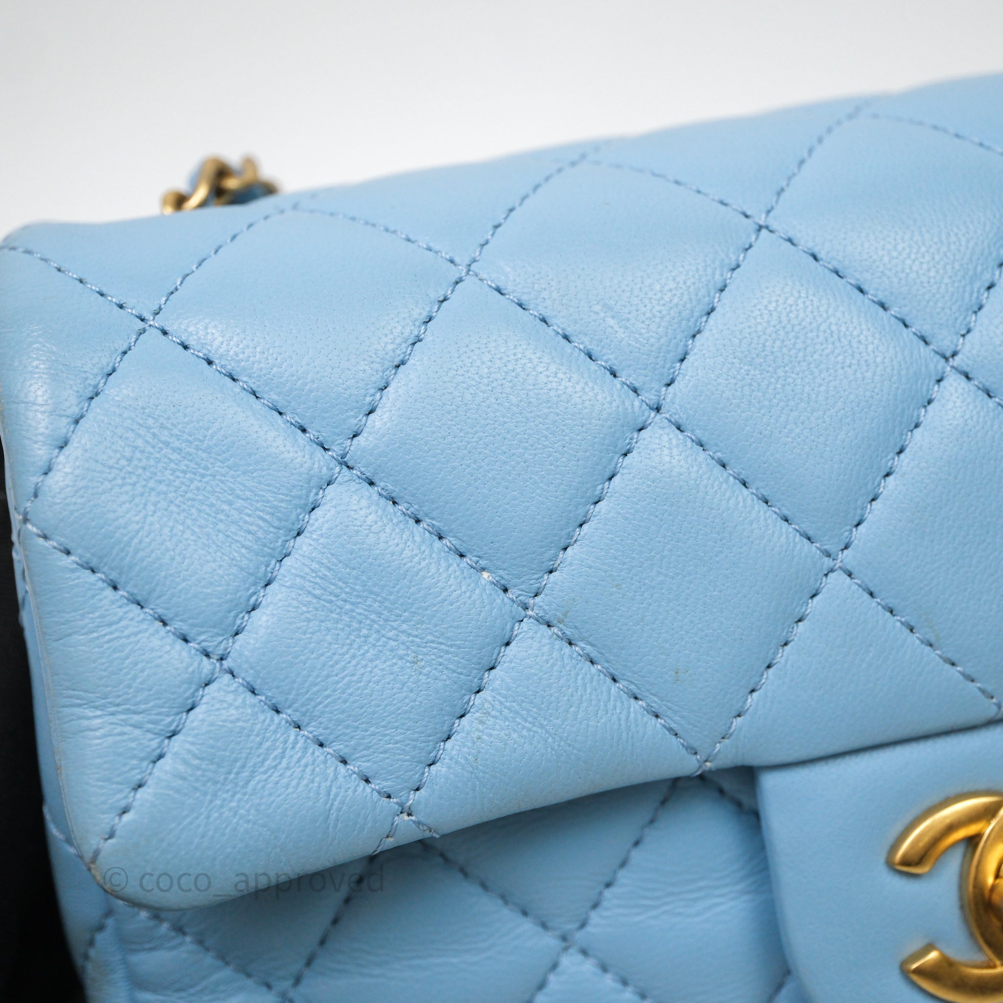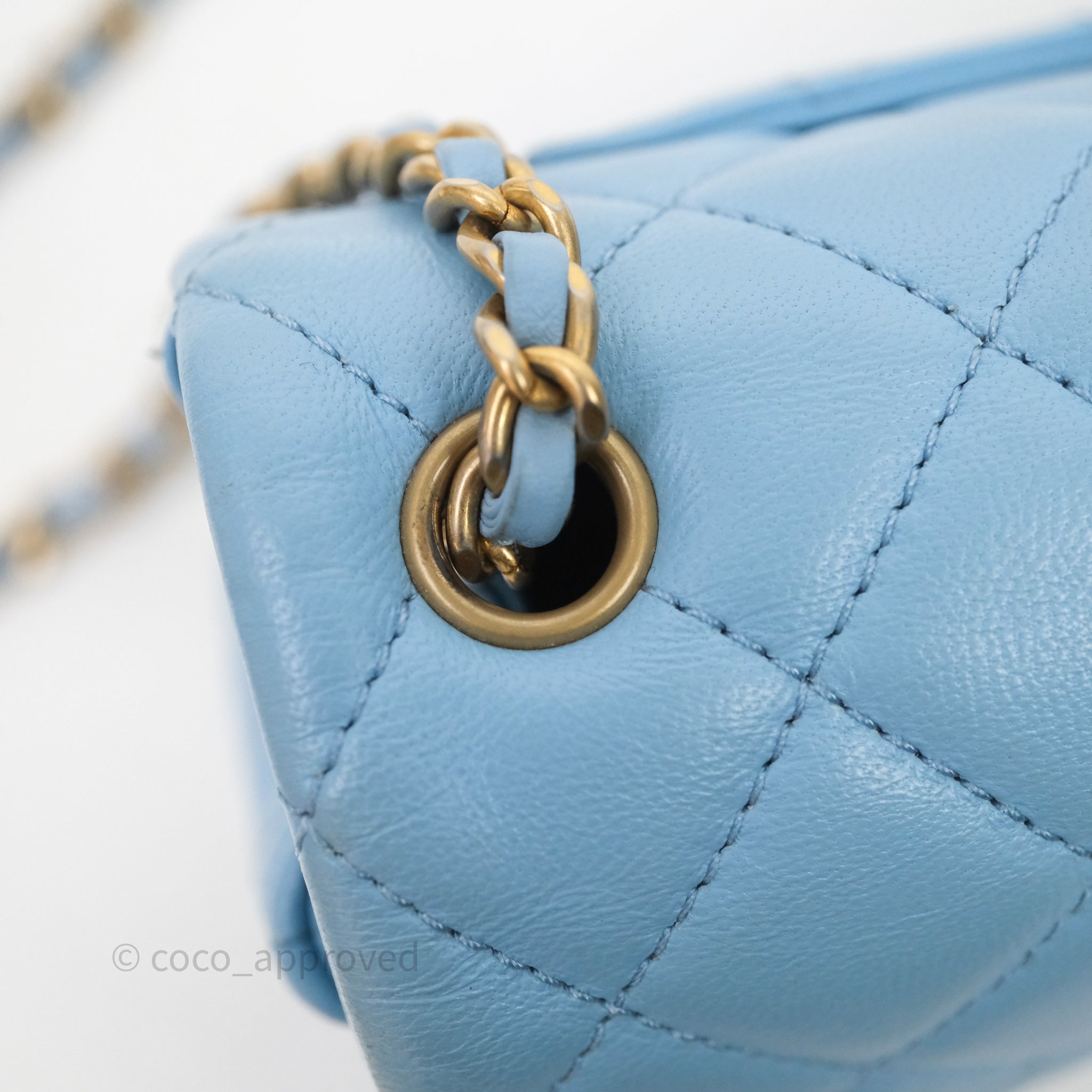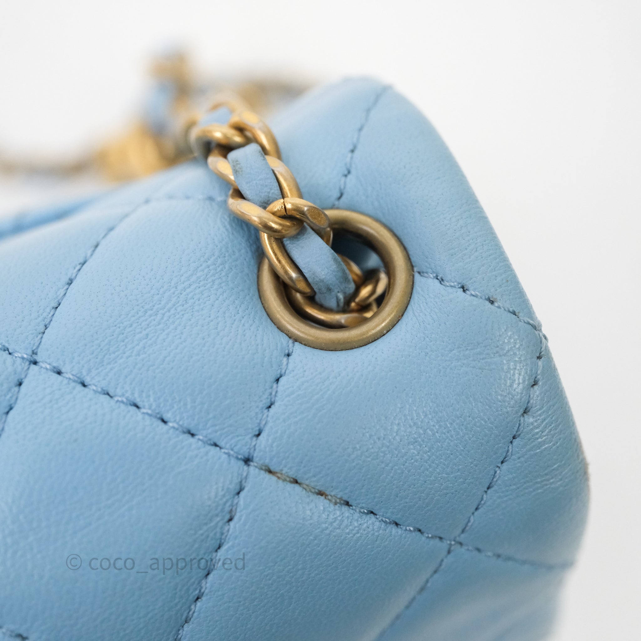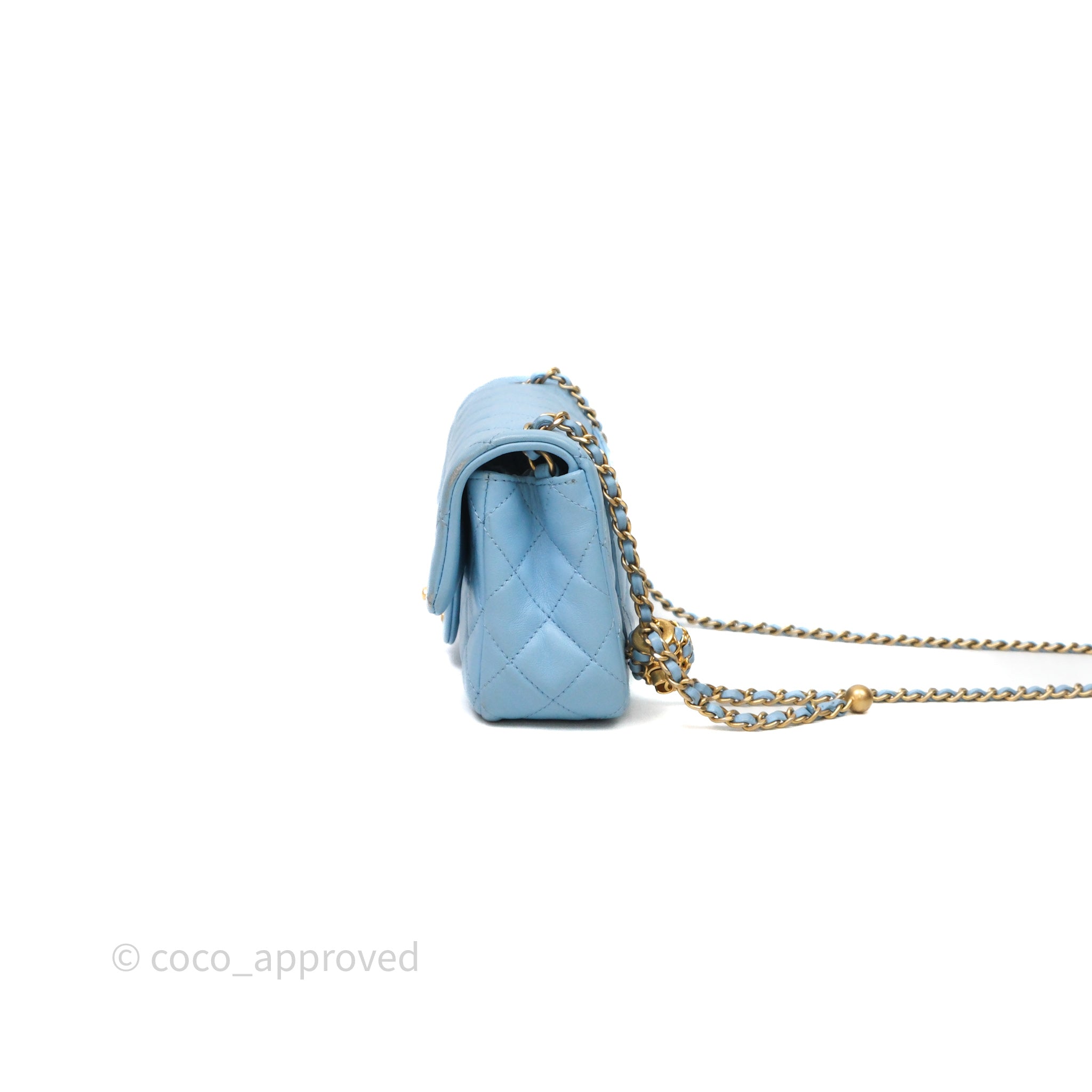 Chanel Mini Rectangular Pearl Crush Quilted Blue Lambskin Aged Gold Hardware