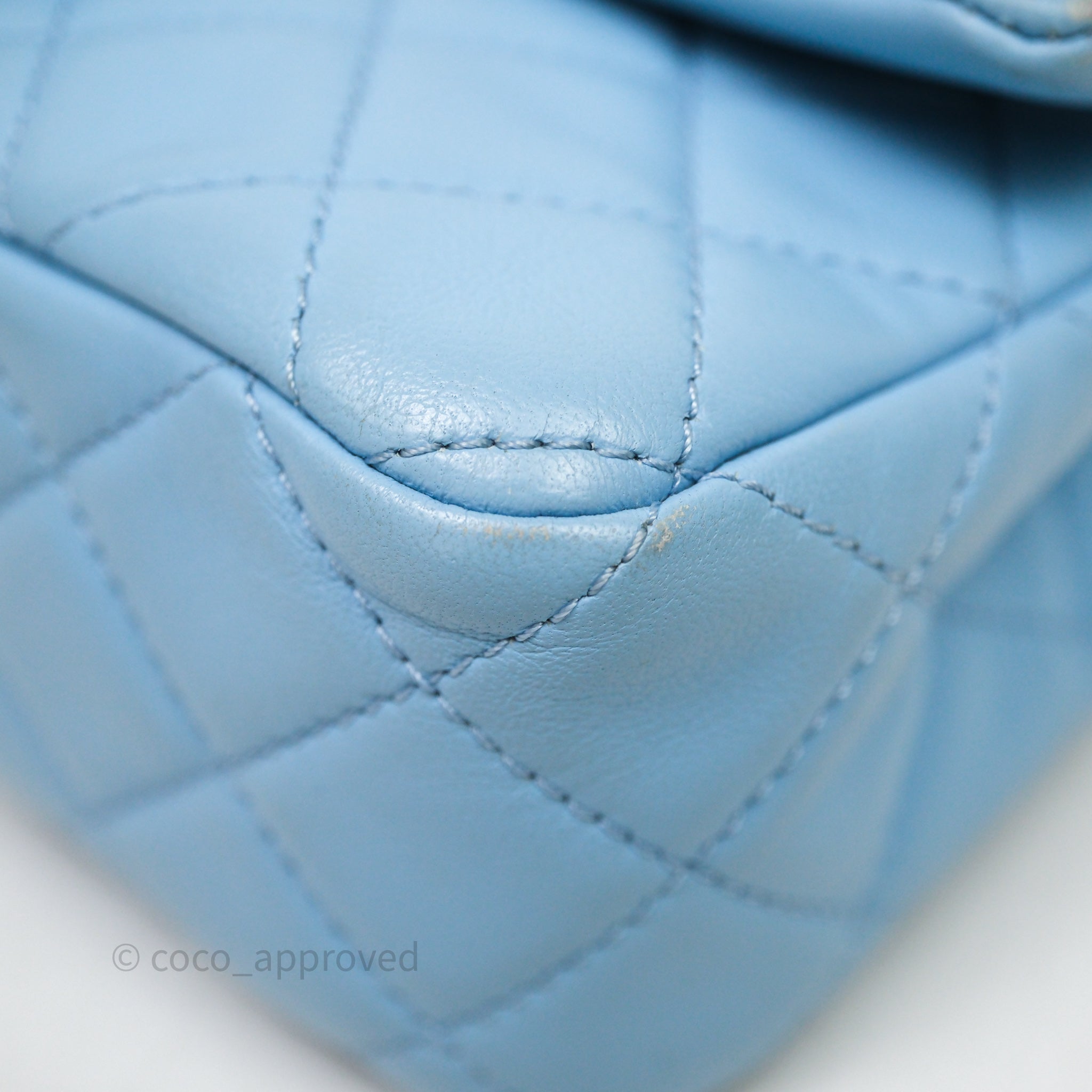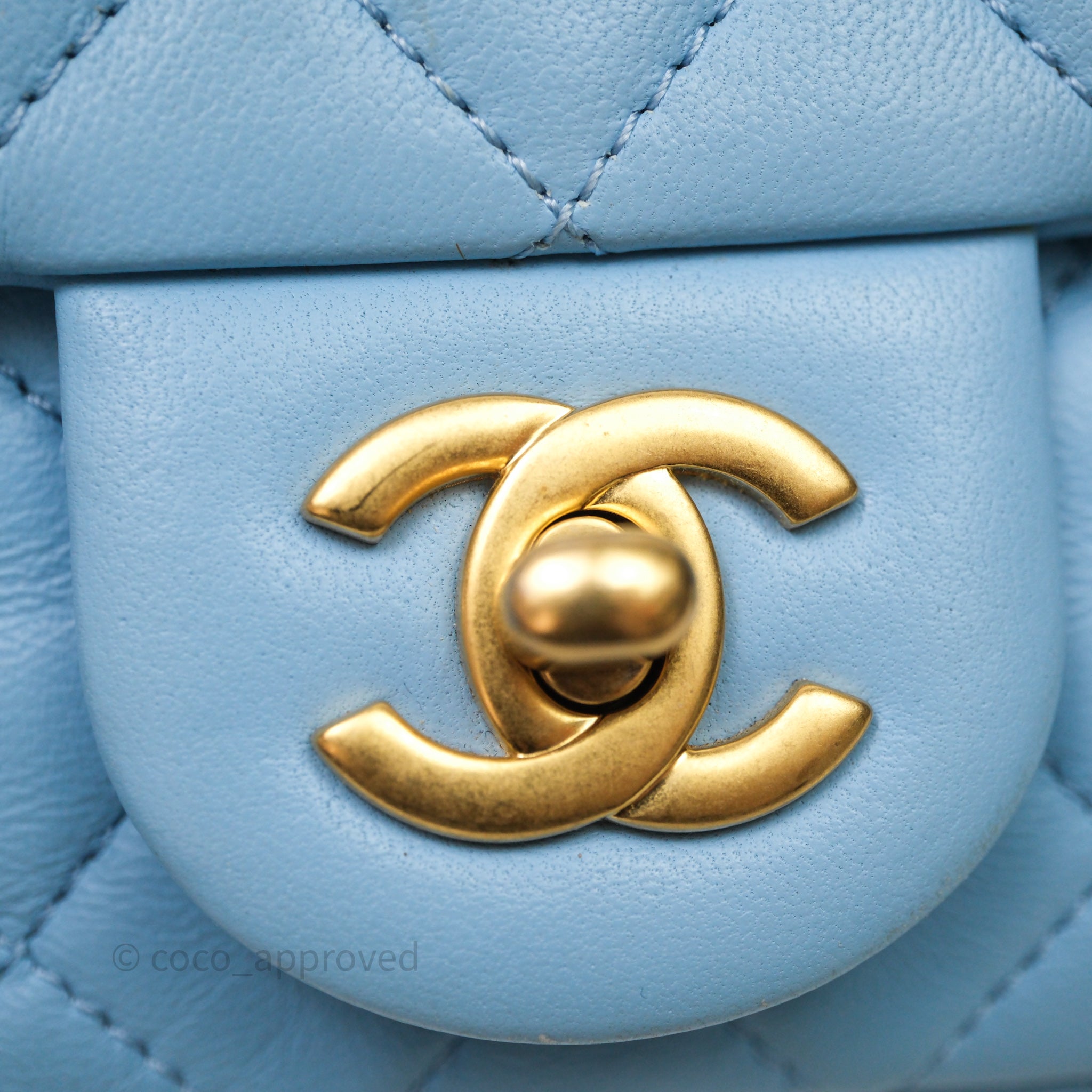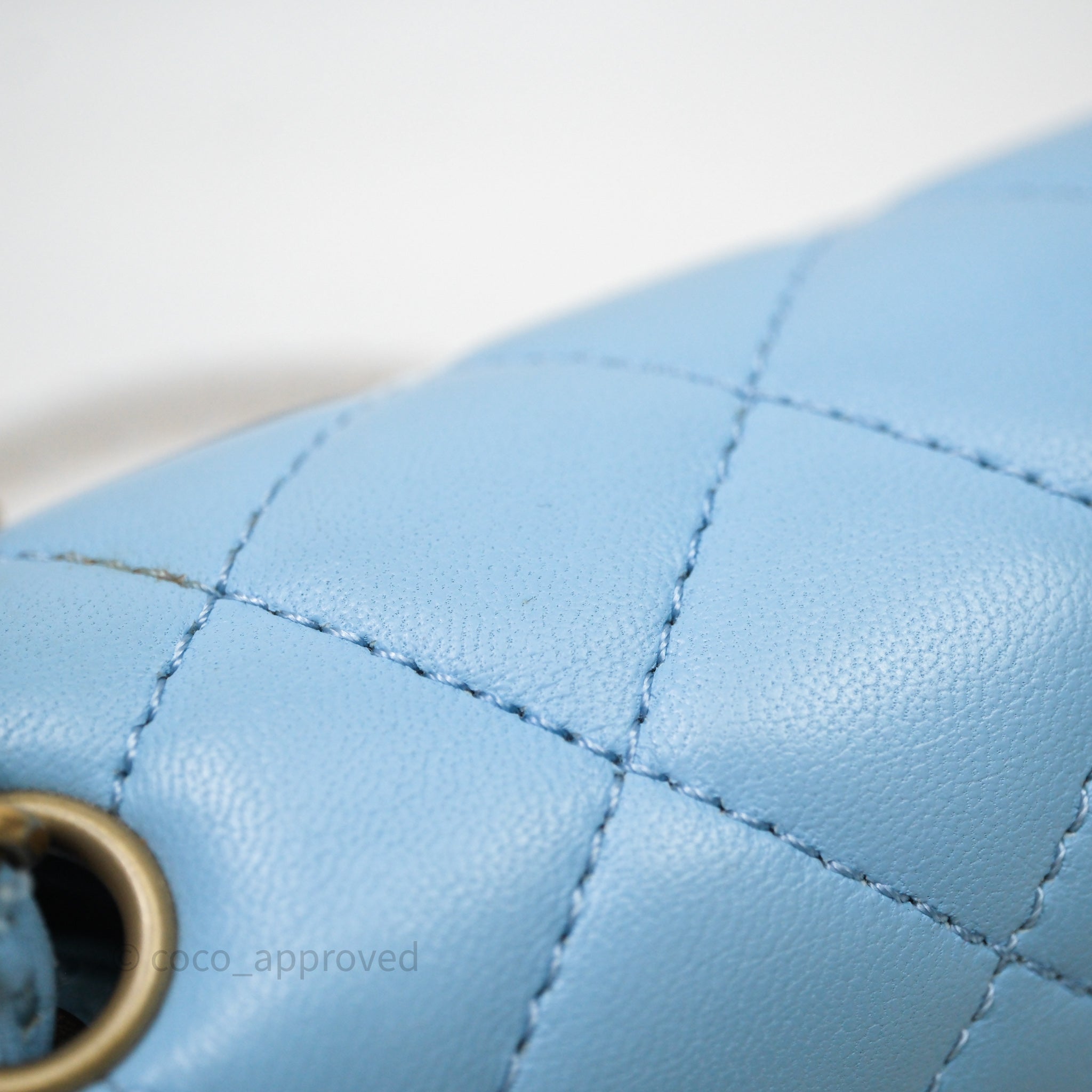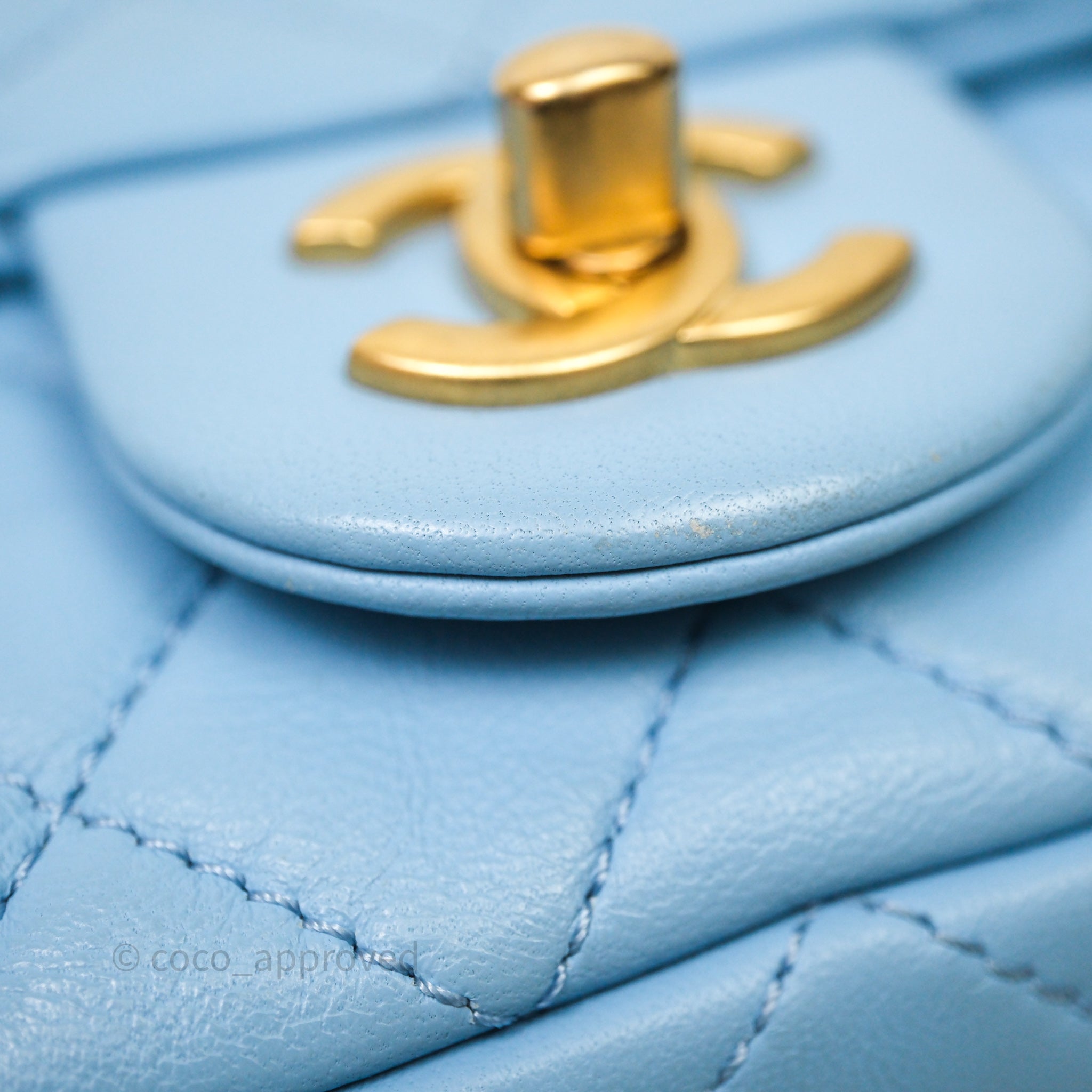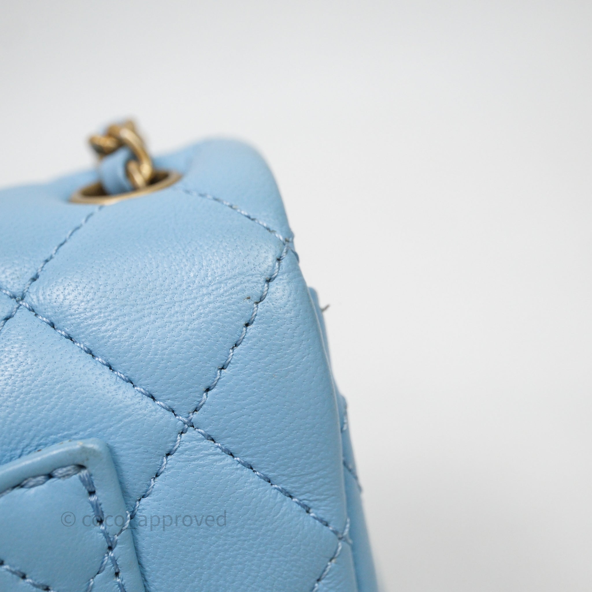 Chanel Mini Rectangular Pearl Crush Quilted Blue Lambskin Aged Gold Hardware