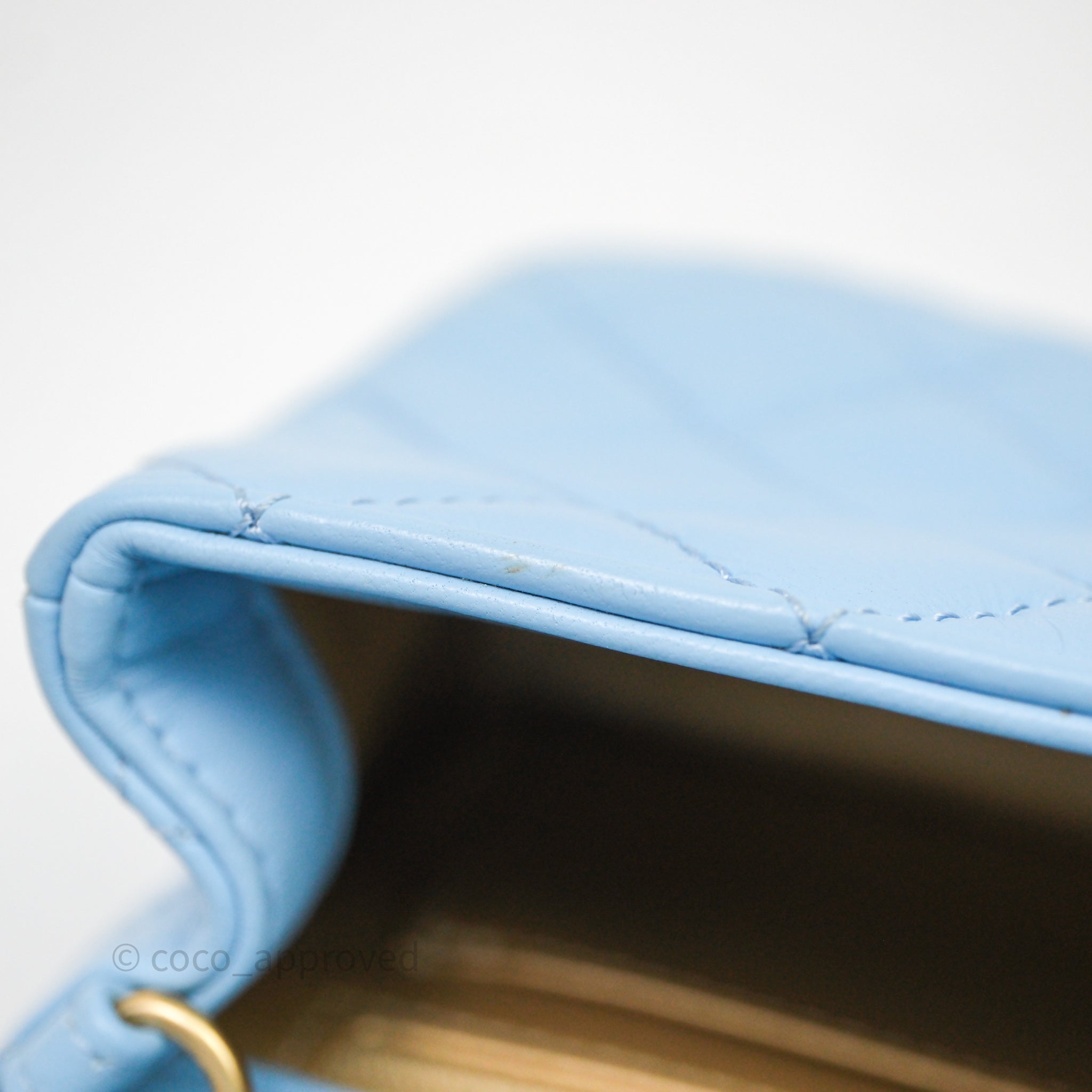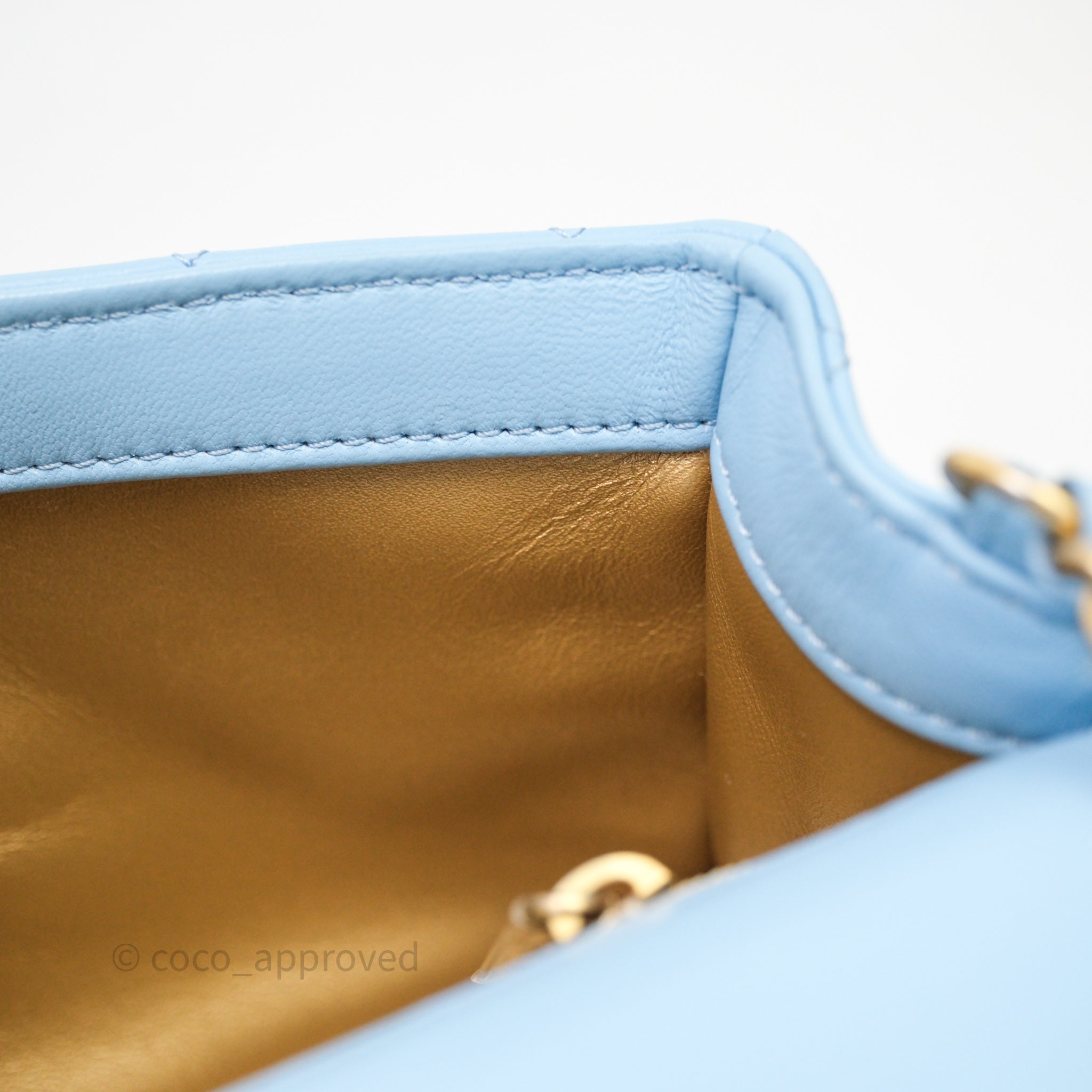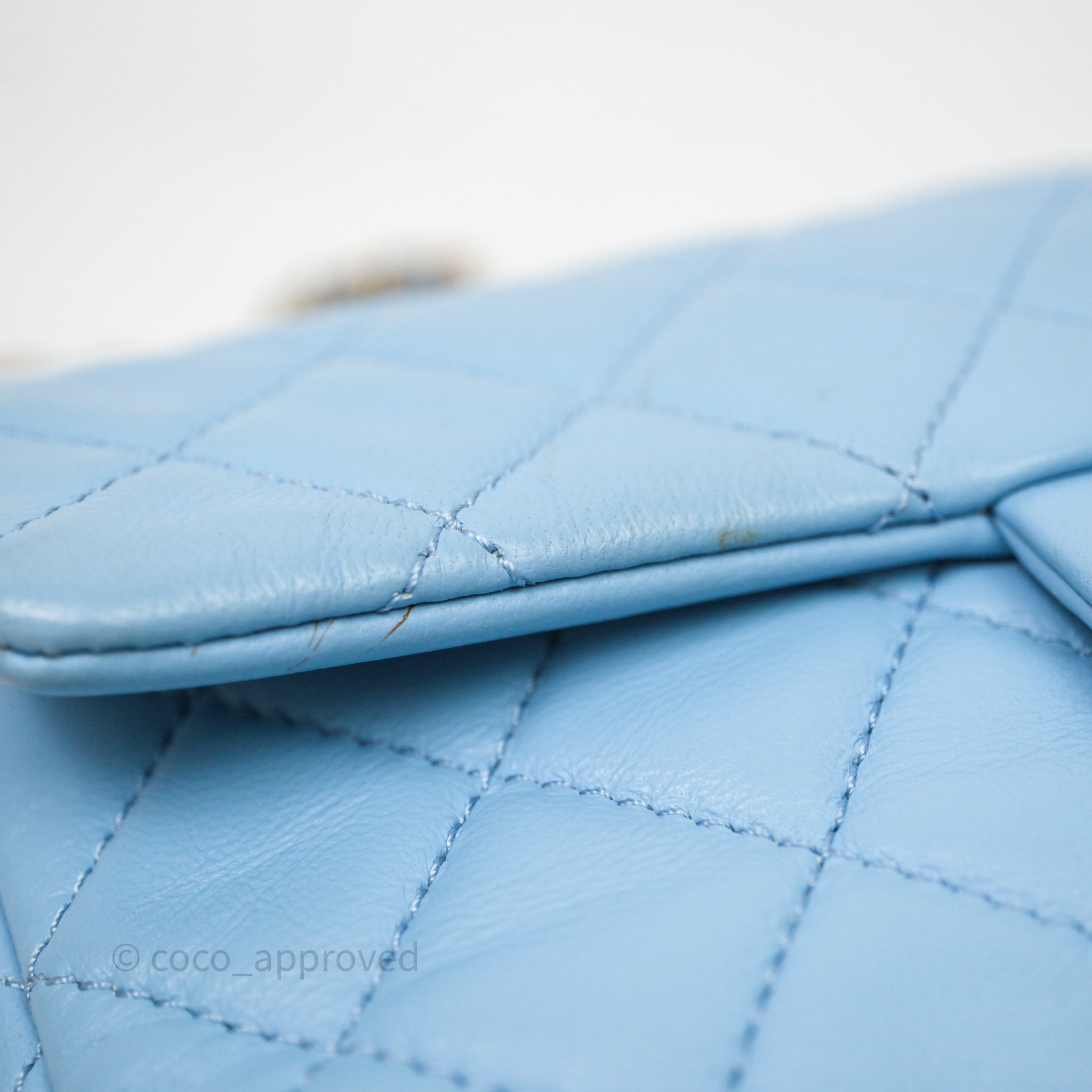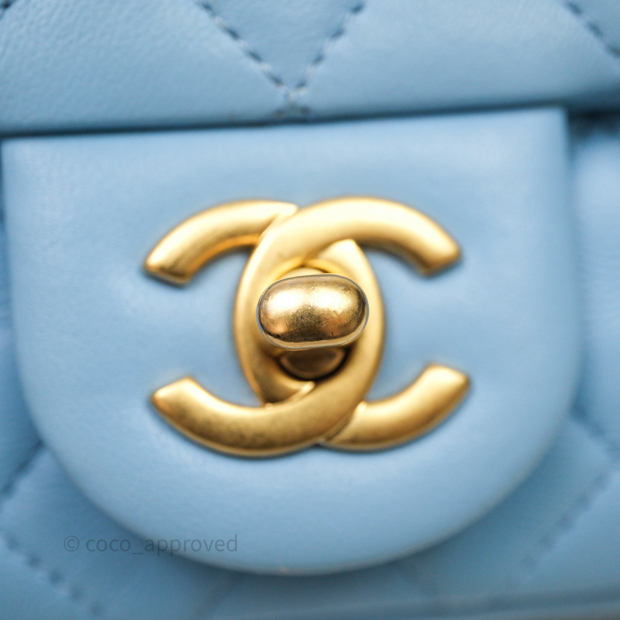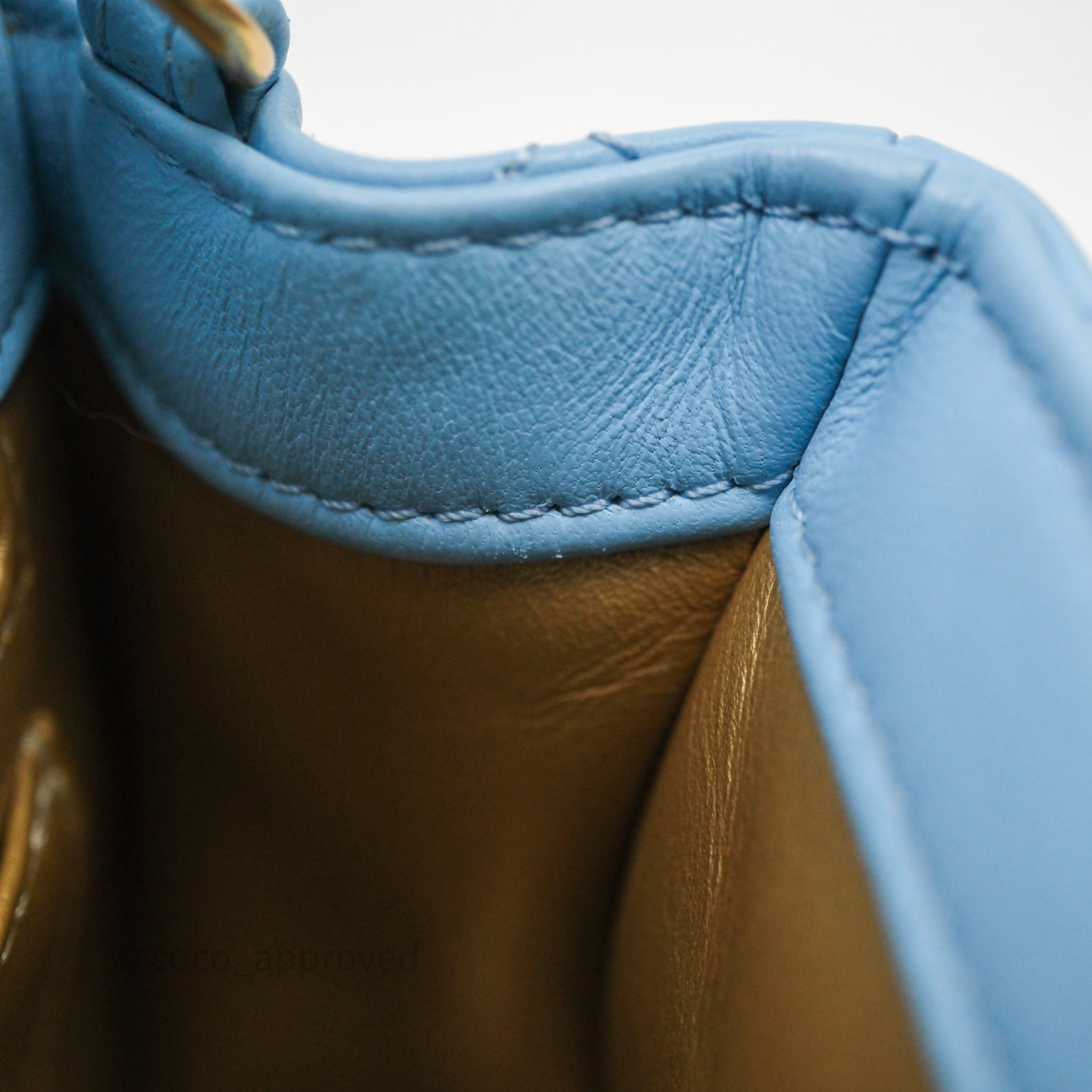 Chanel Mini Rectangular Pearl Crush Quilted Blue Lambskin Aged Gold Hardware