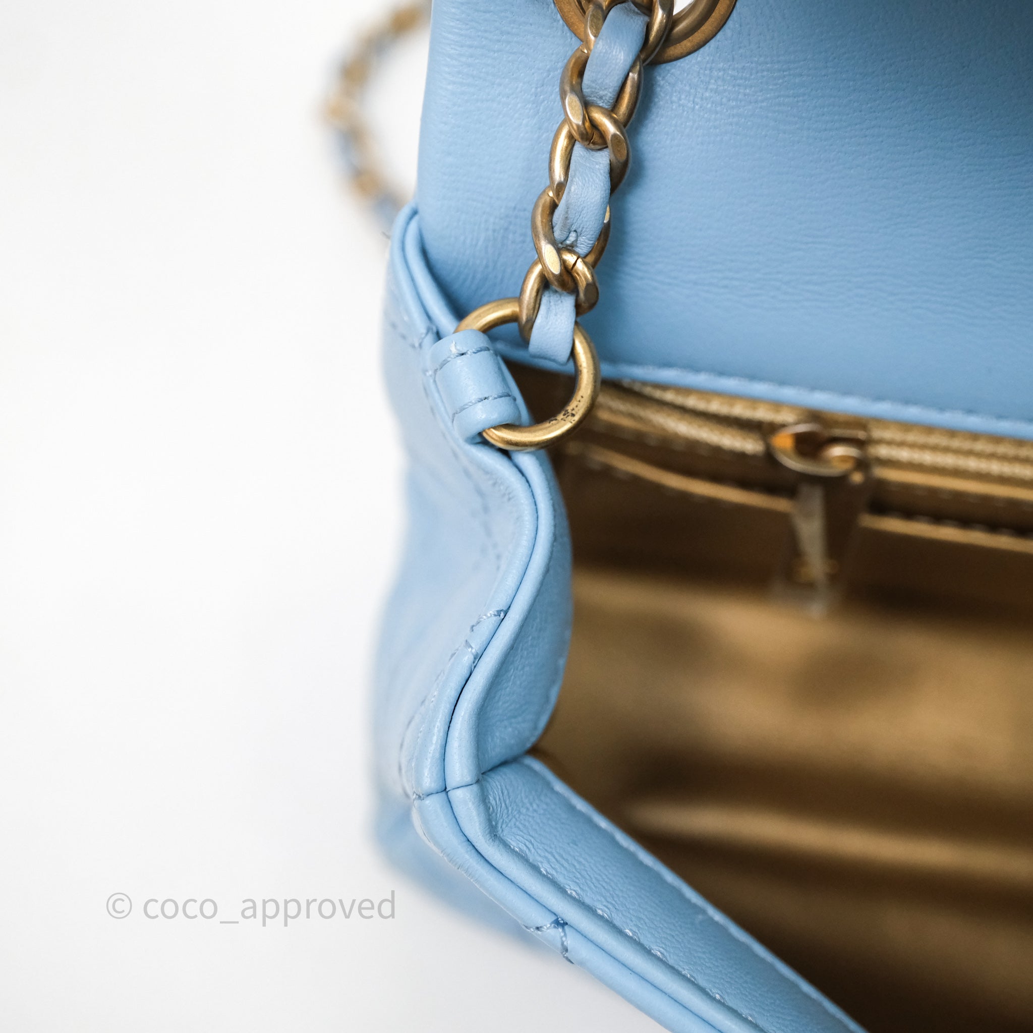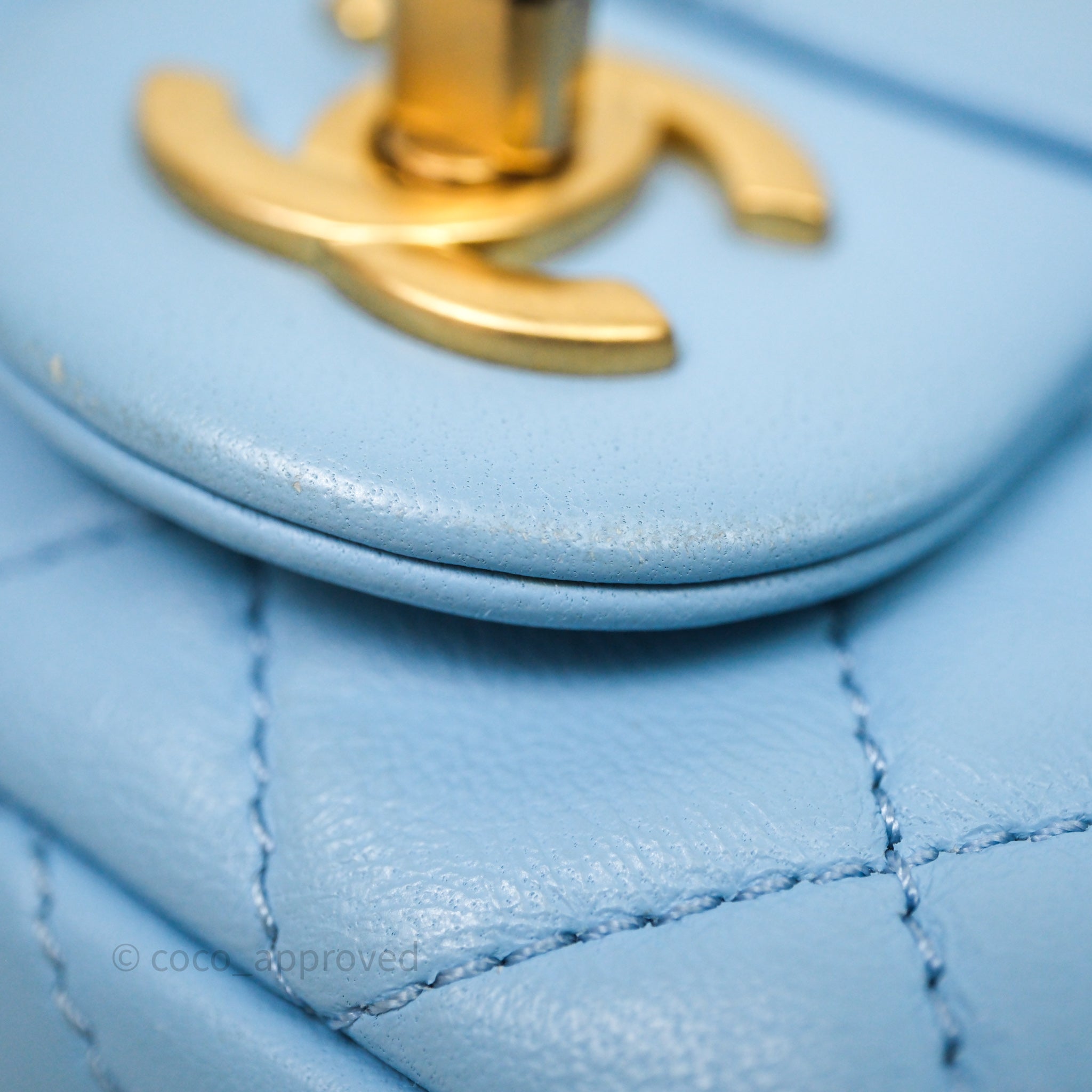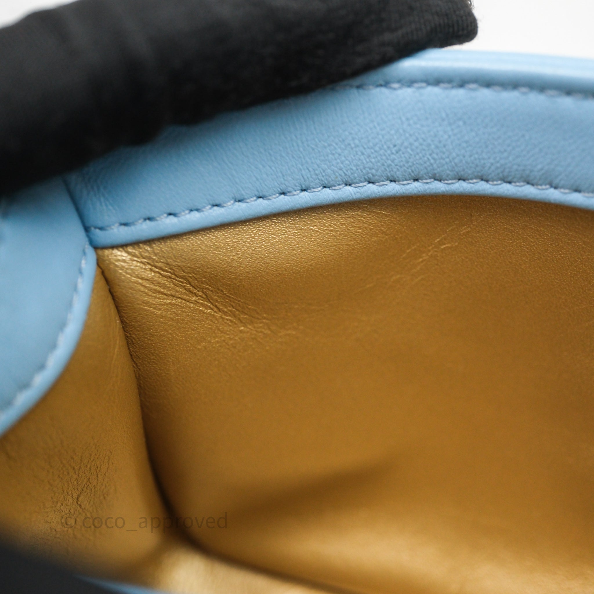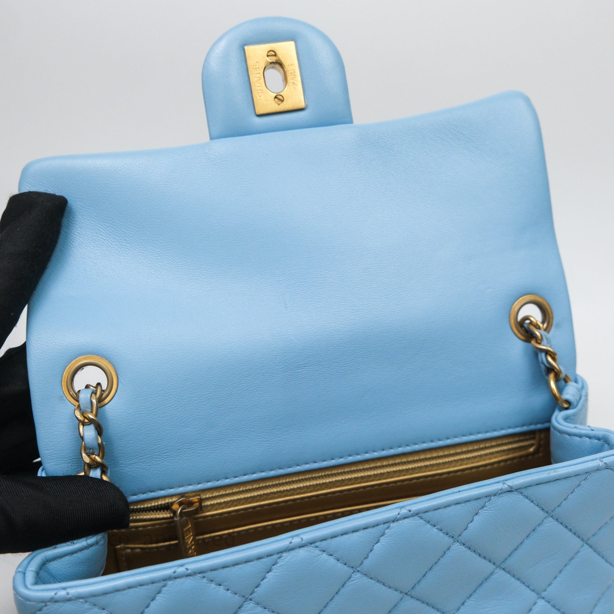 Chanel Mini Rectangular Pearl Crush Quilted Blue Lambskin Aged Gold Hardware