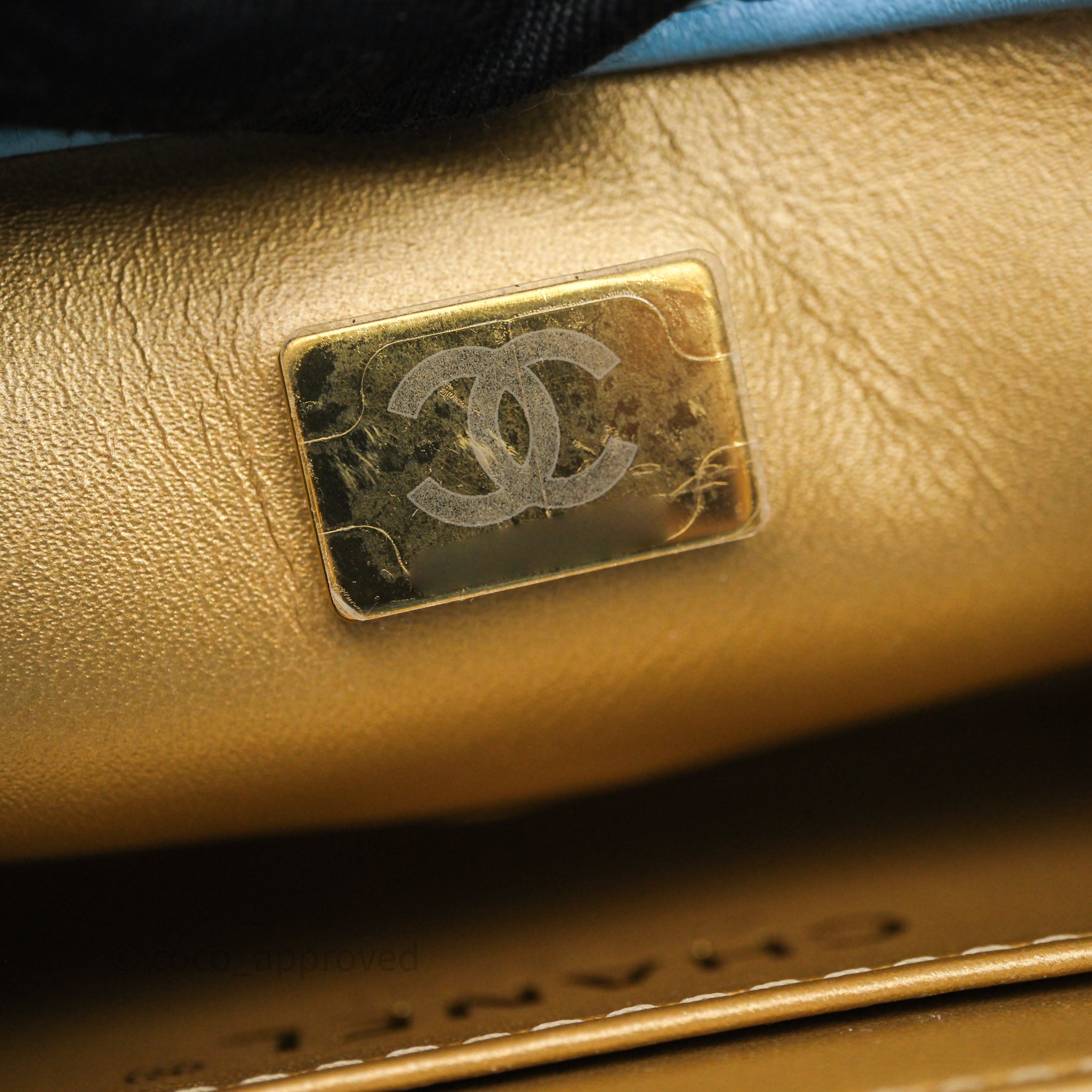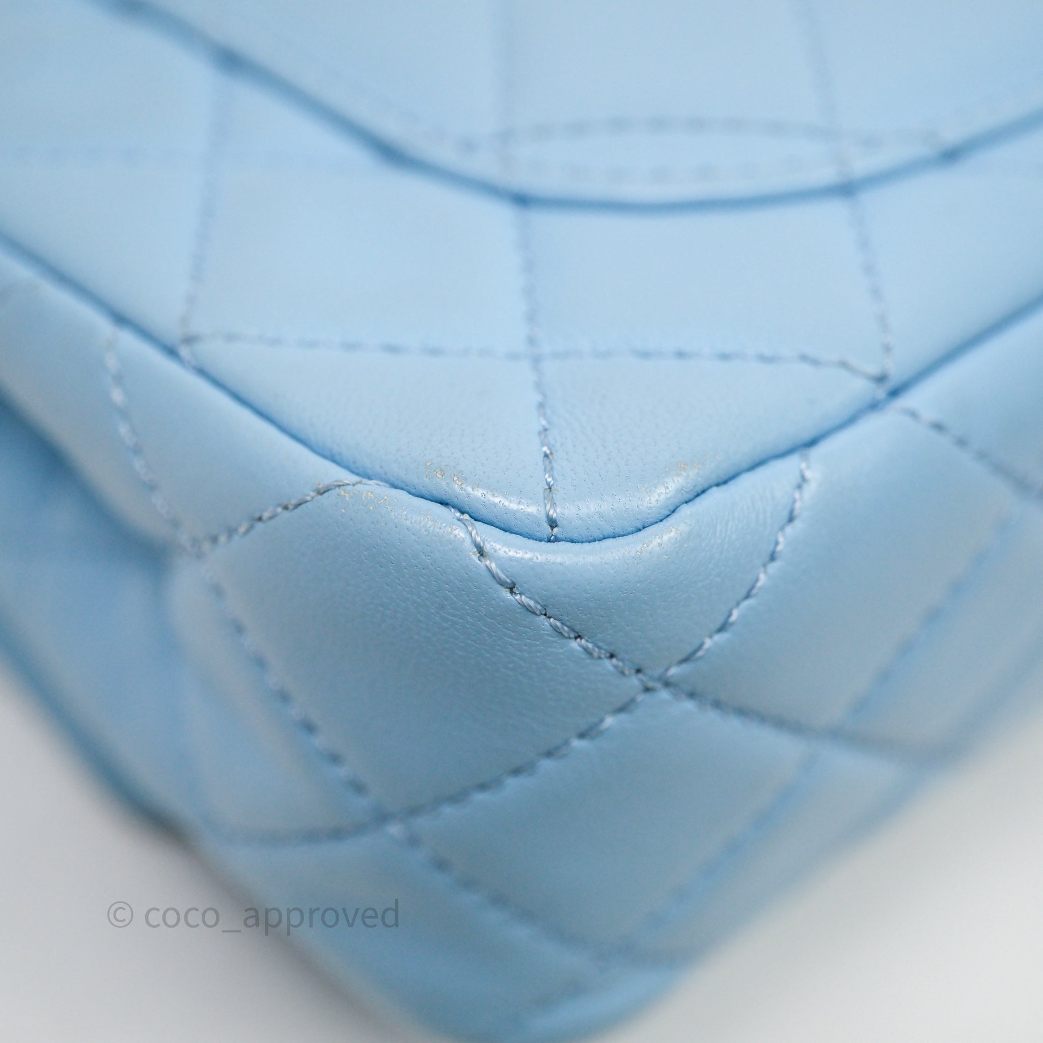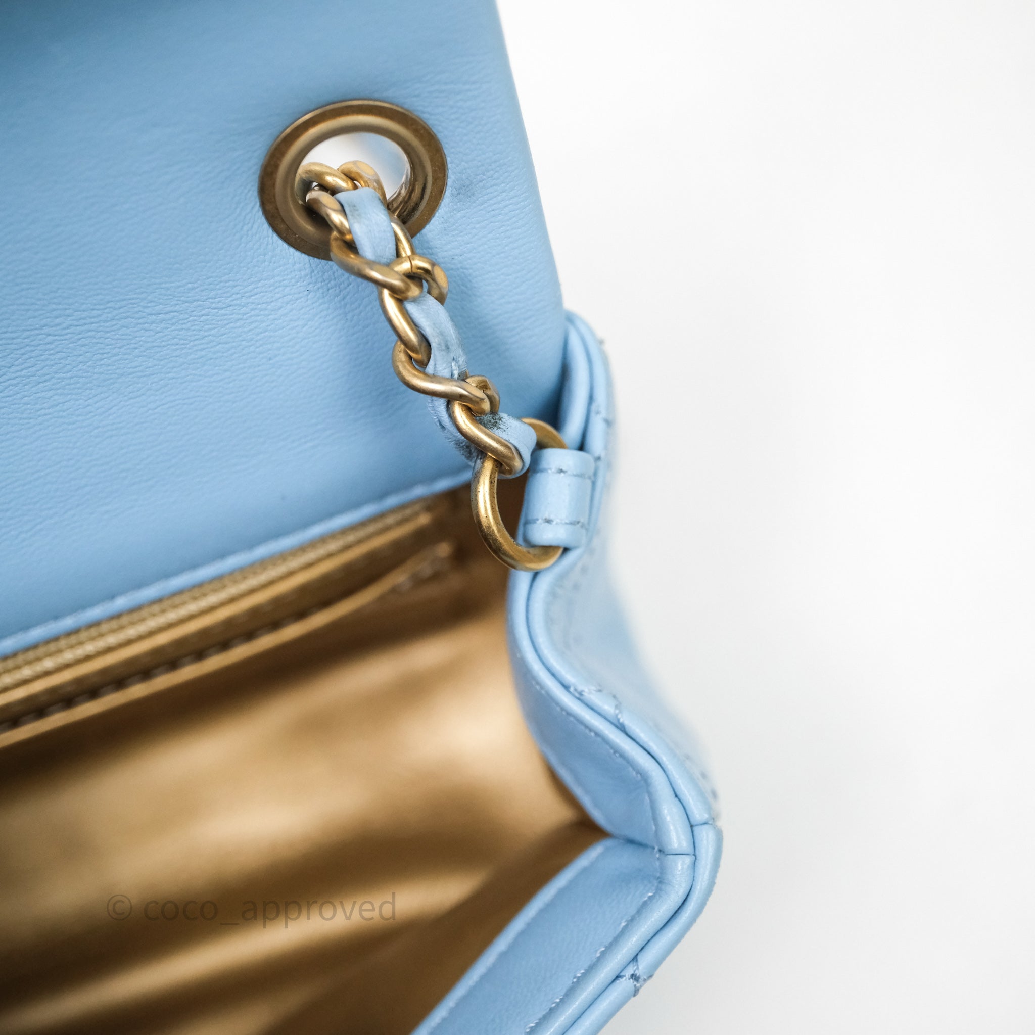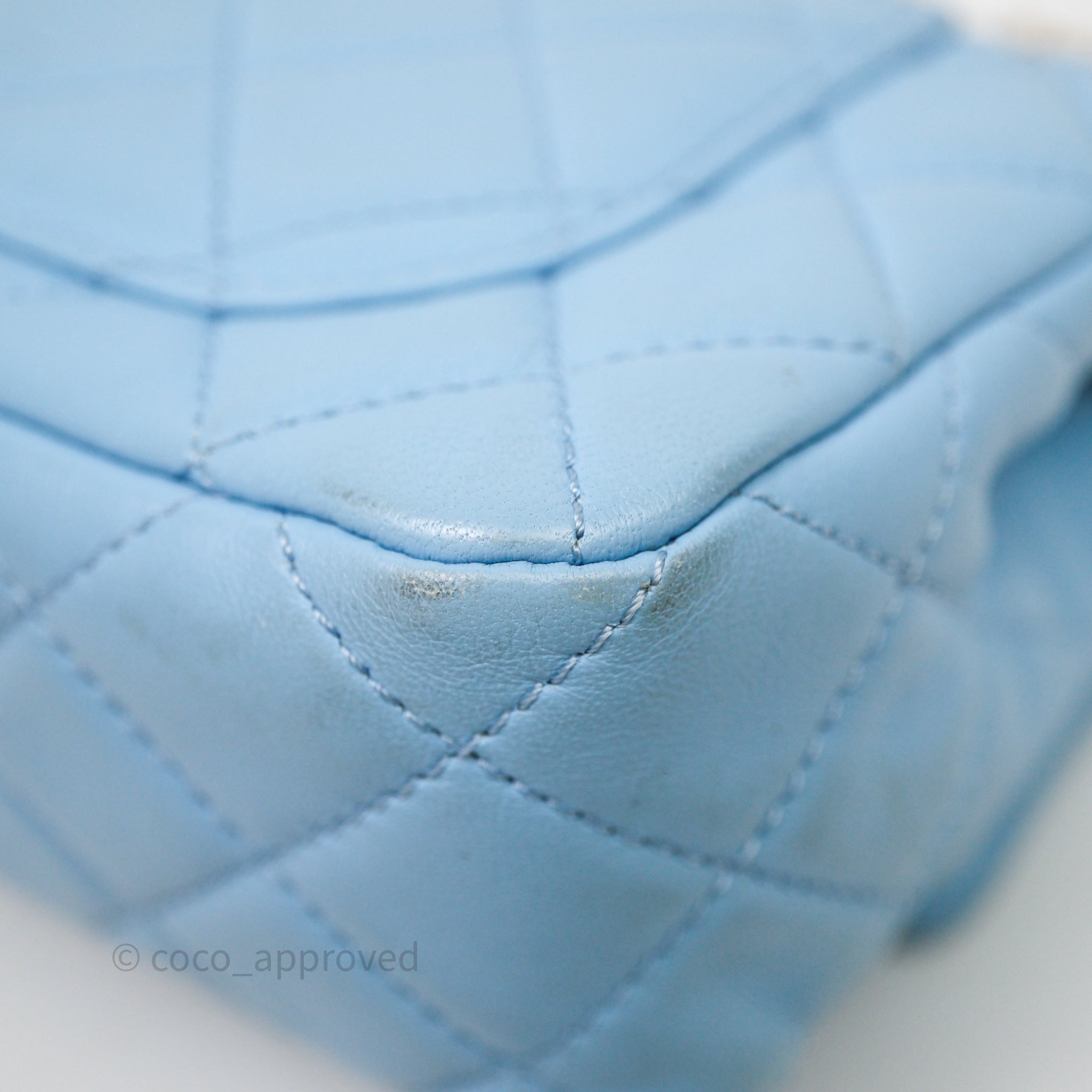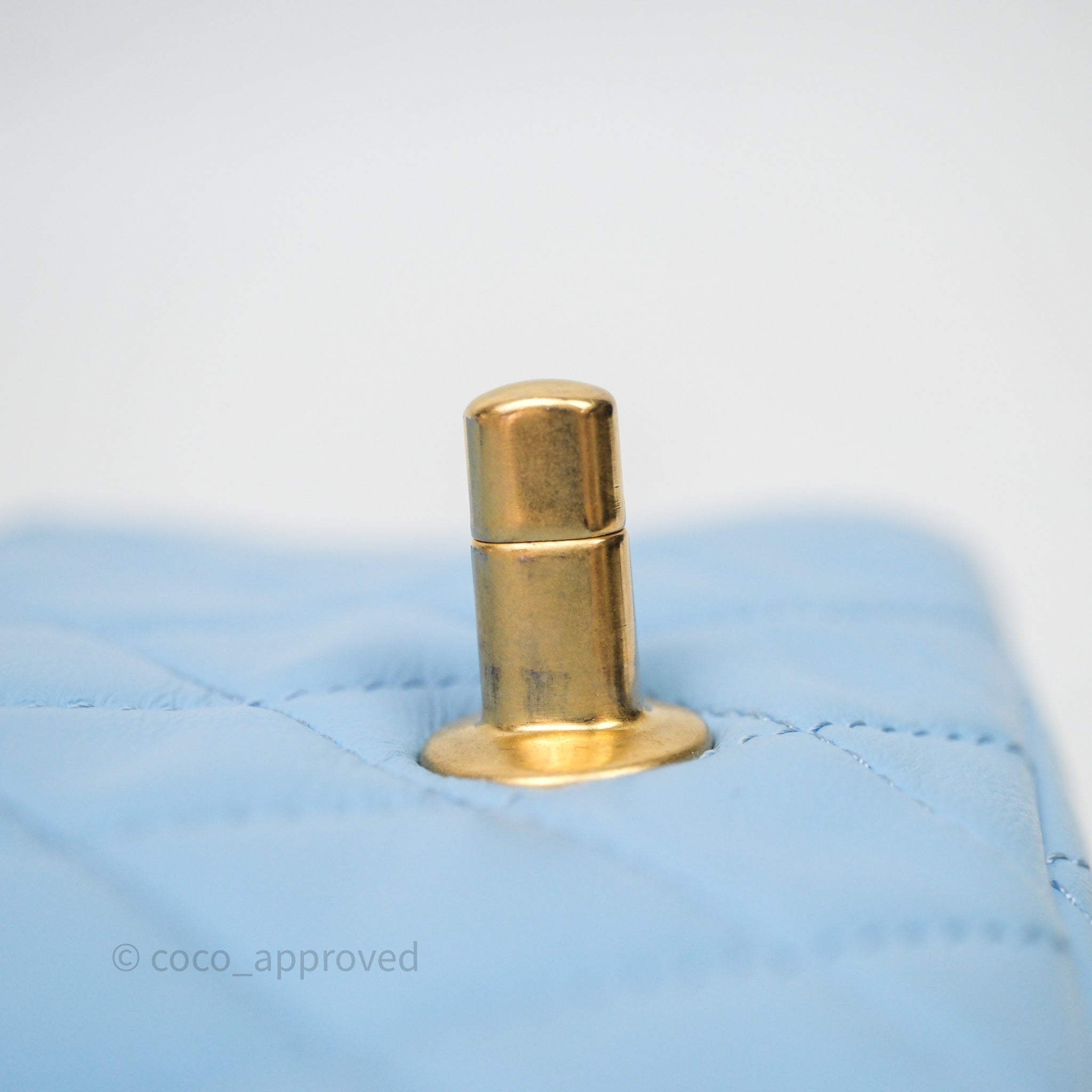 Chanel Mini Rectangular Pearl Crush Quilted Blue Lambskin Aged Gold Hardware