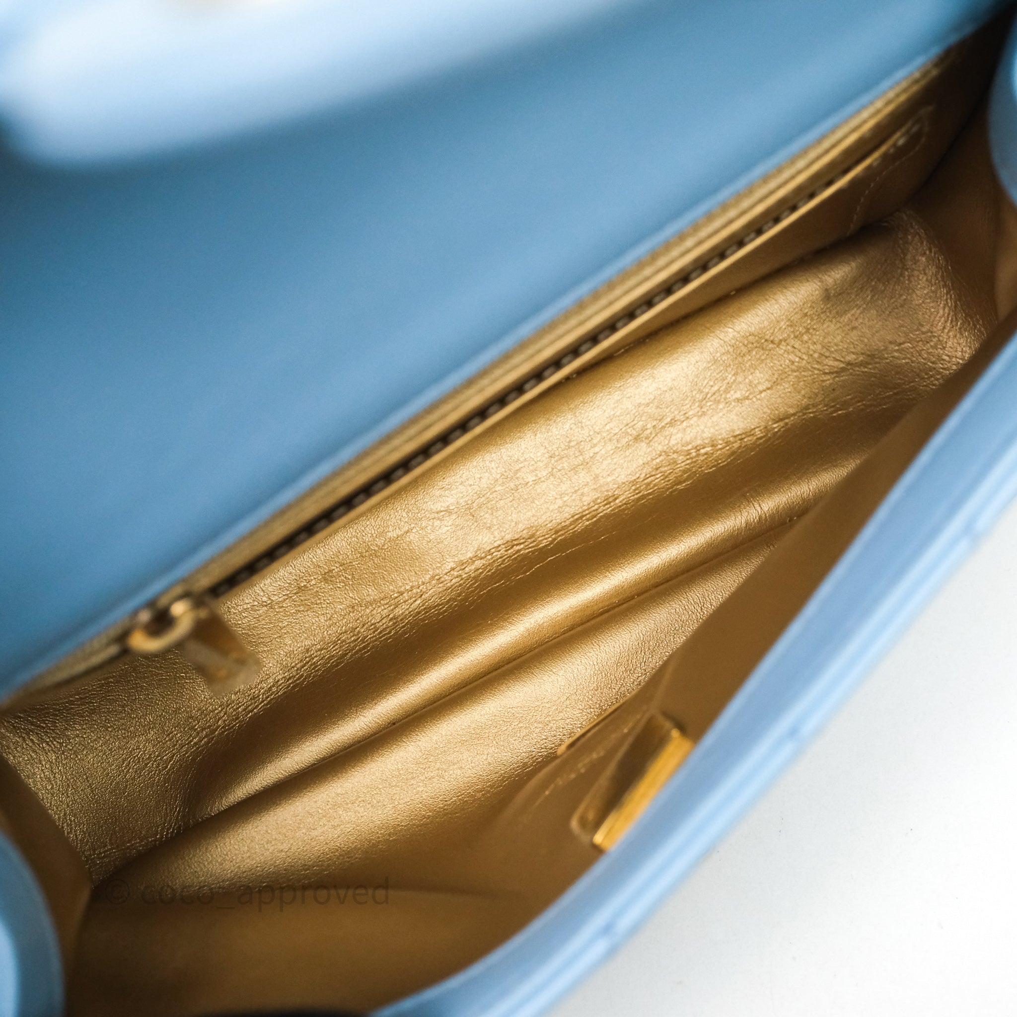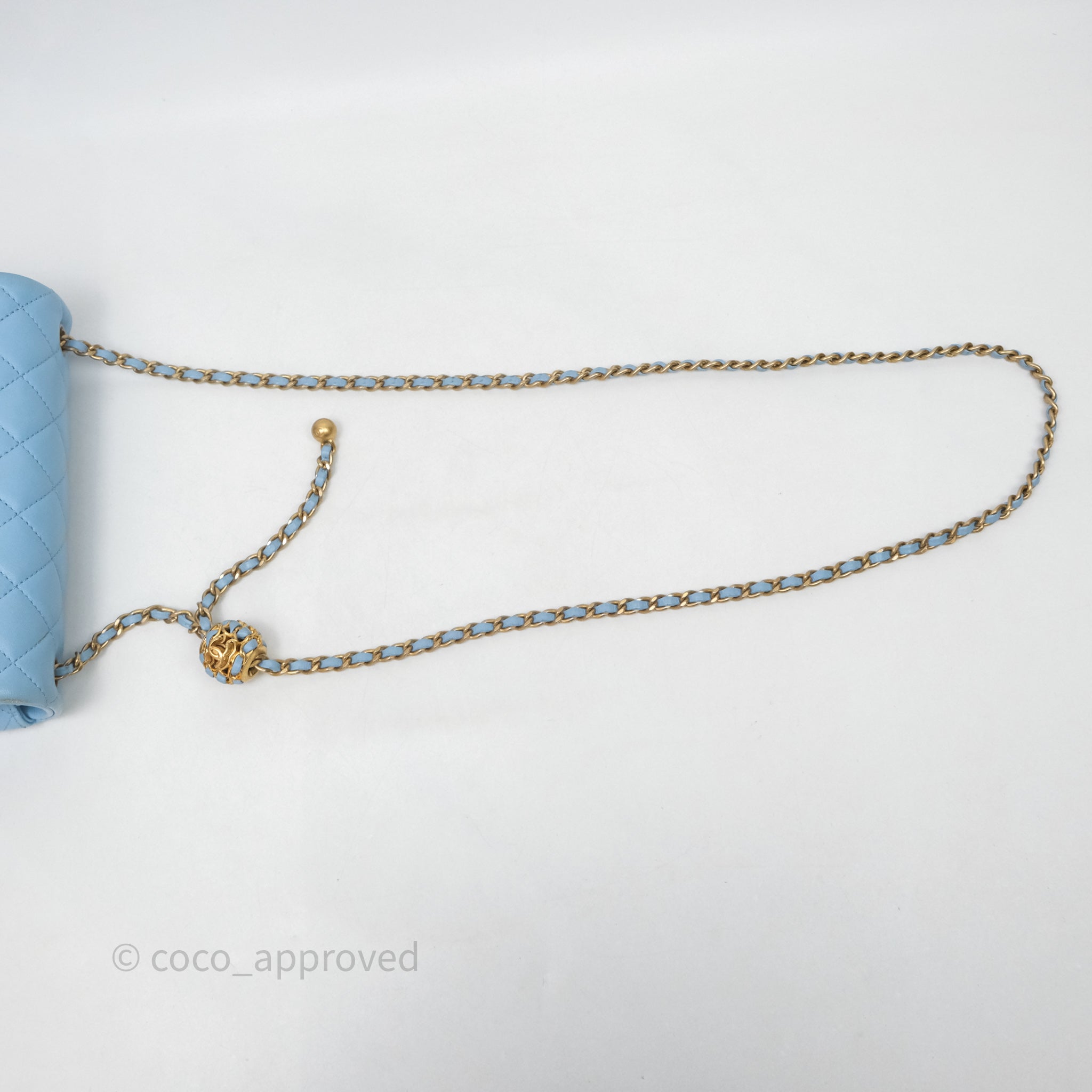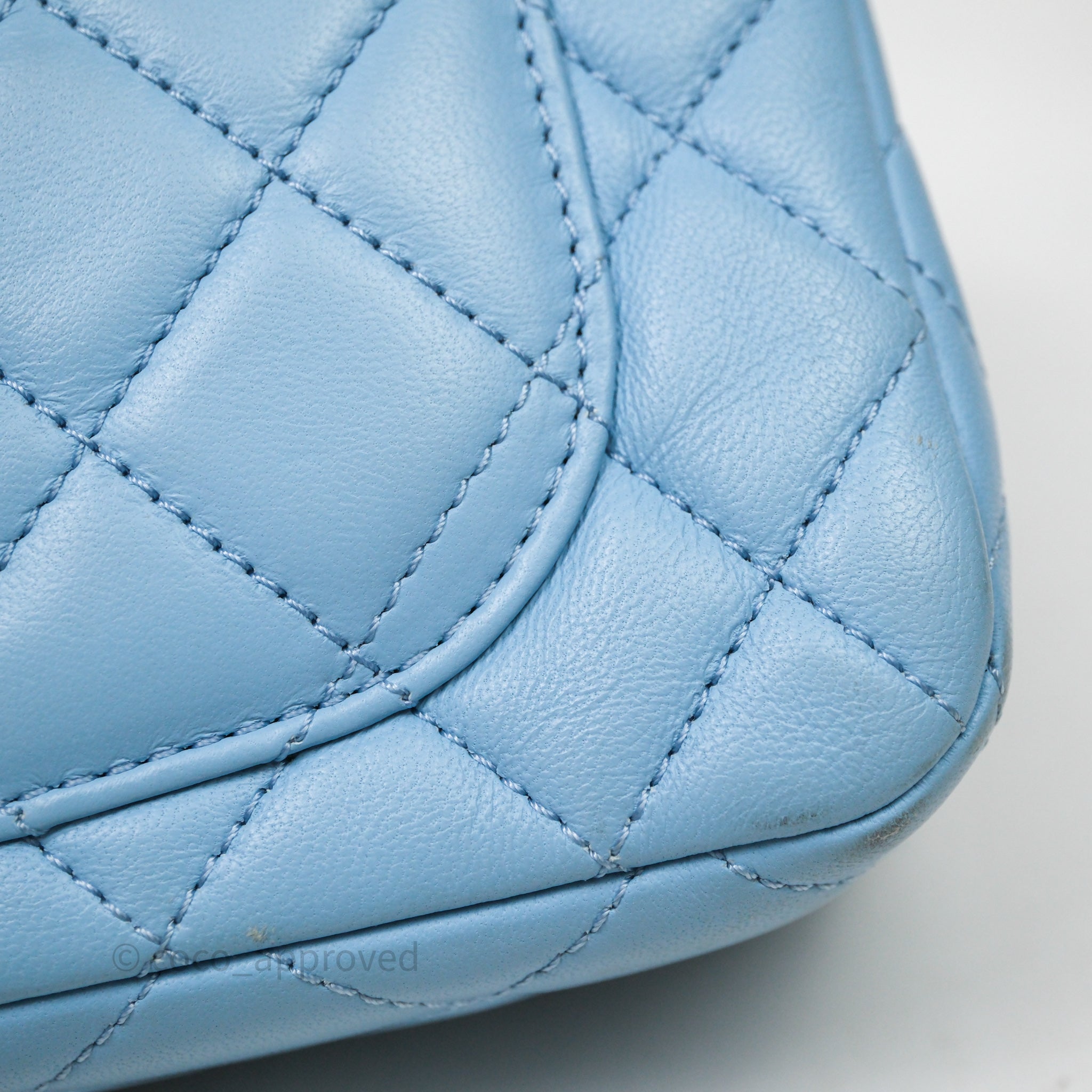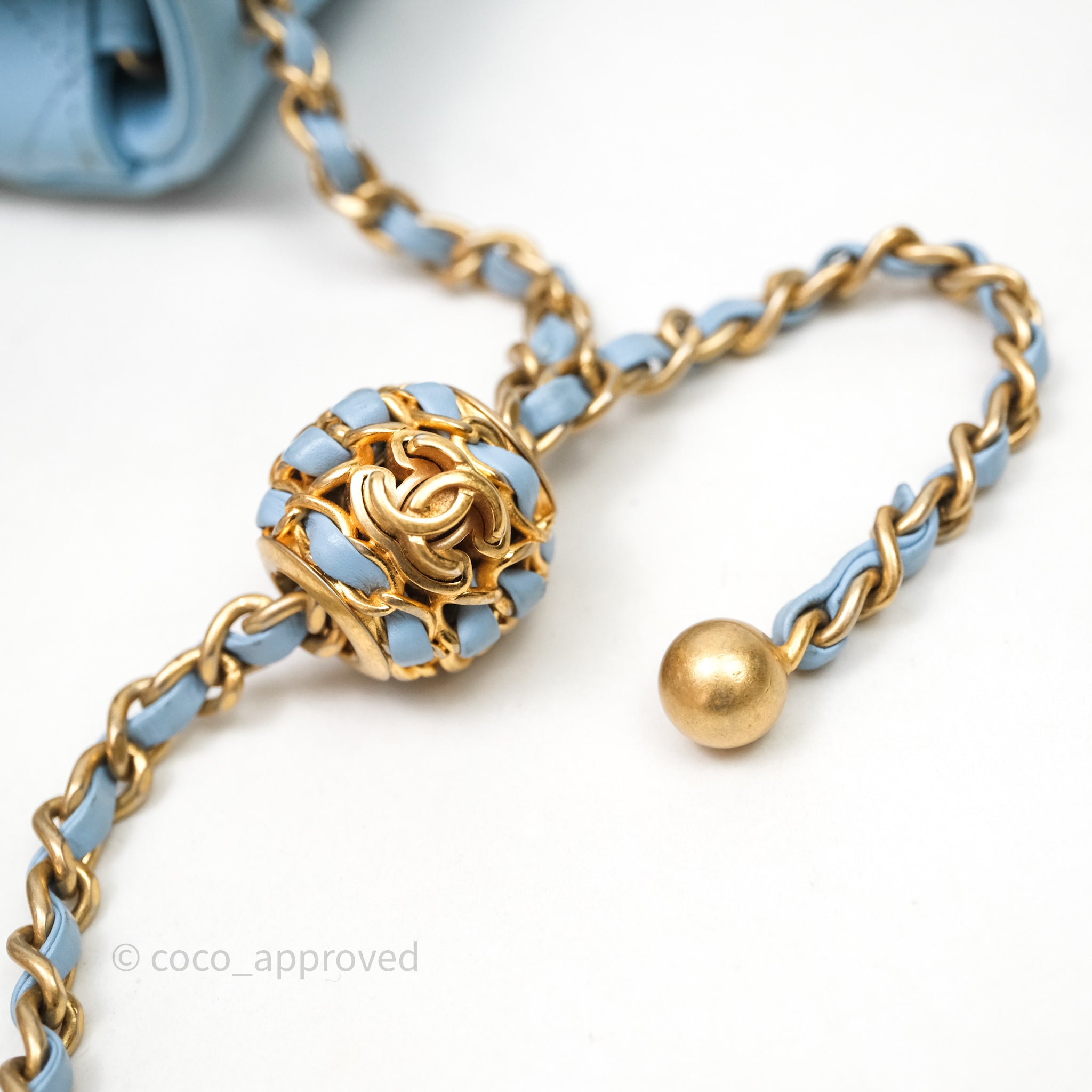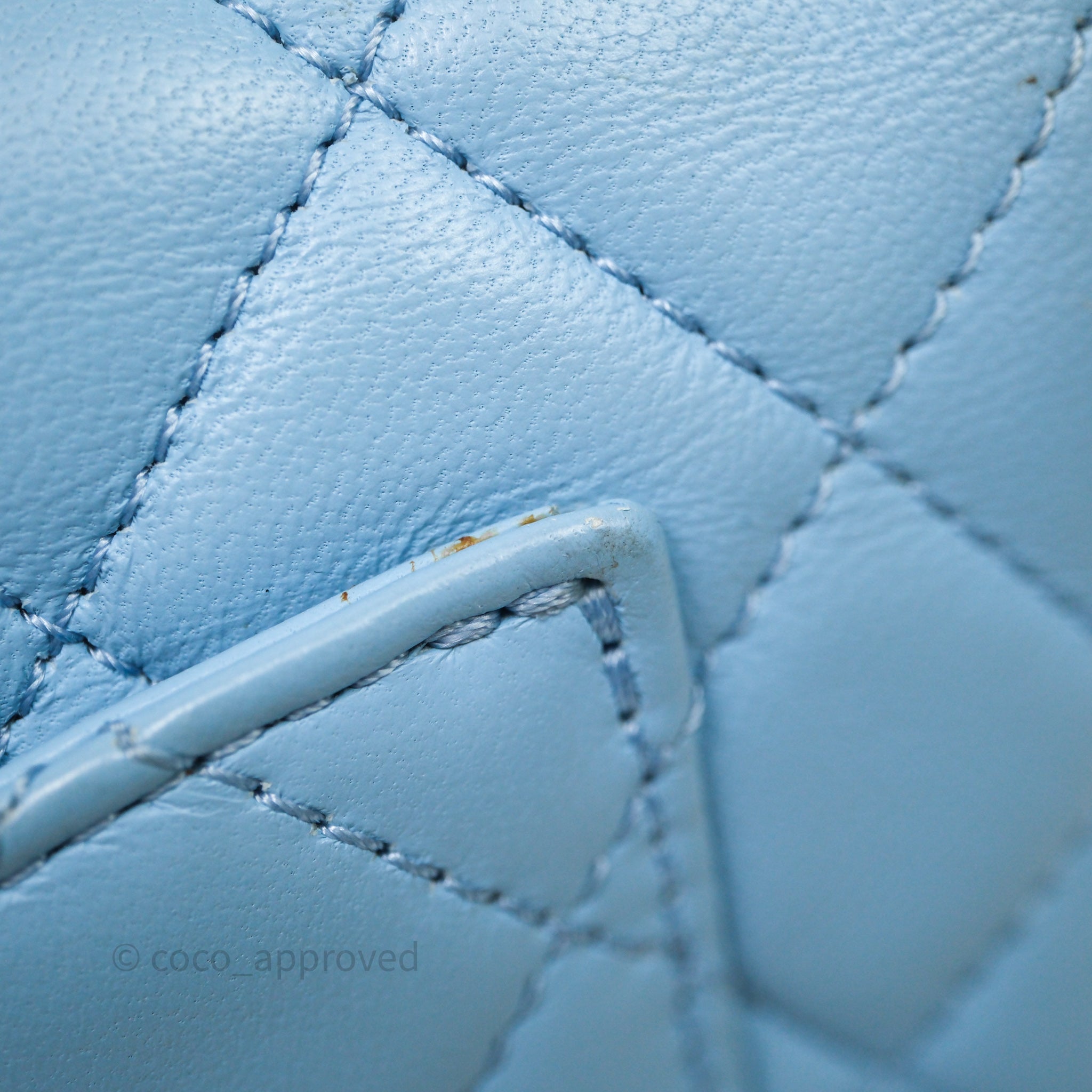 Chanel Mini Rectangular Pearl Crush Quilted Blue Lambskin Aged Gold Hardware