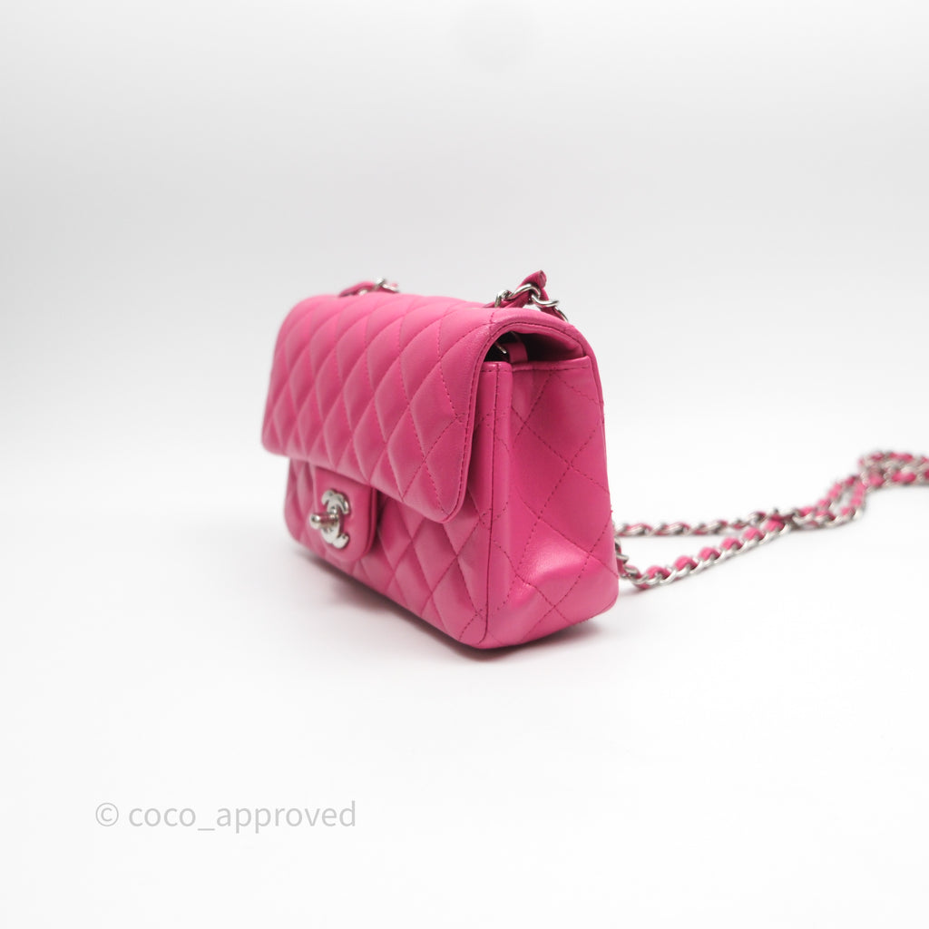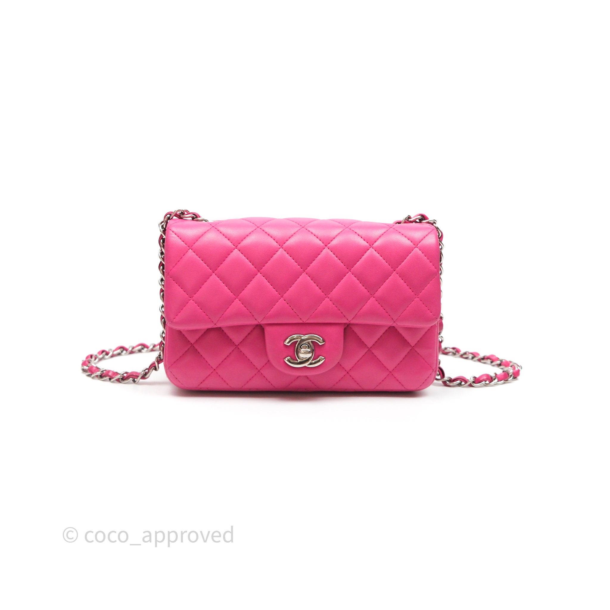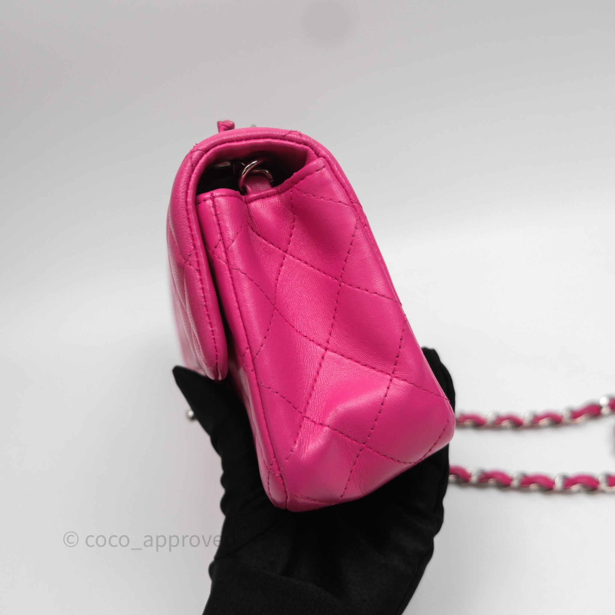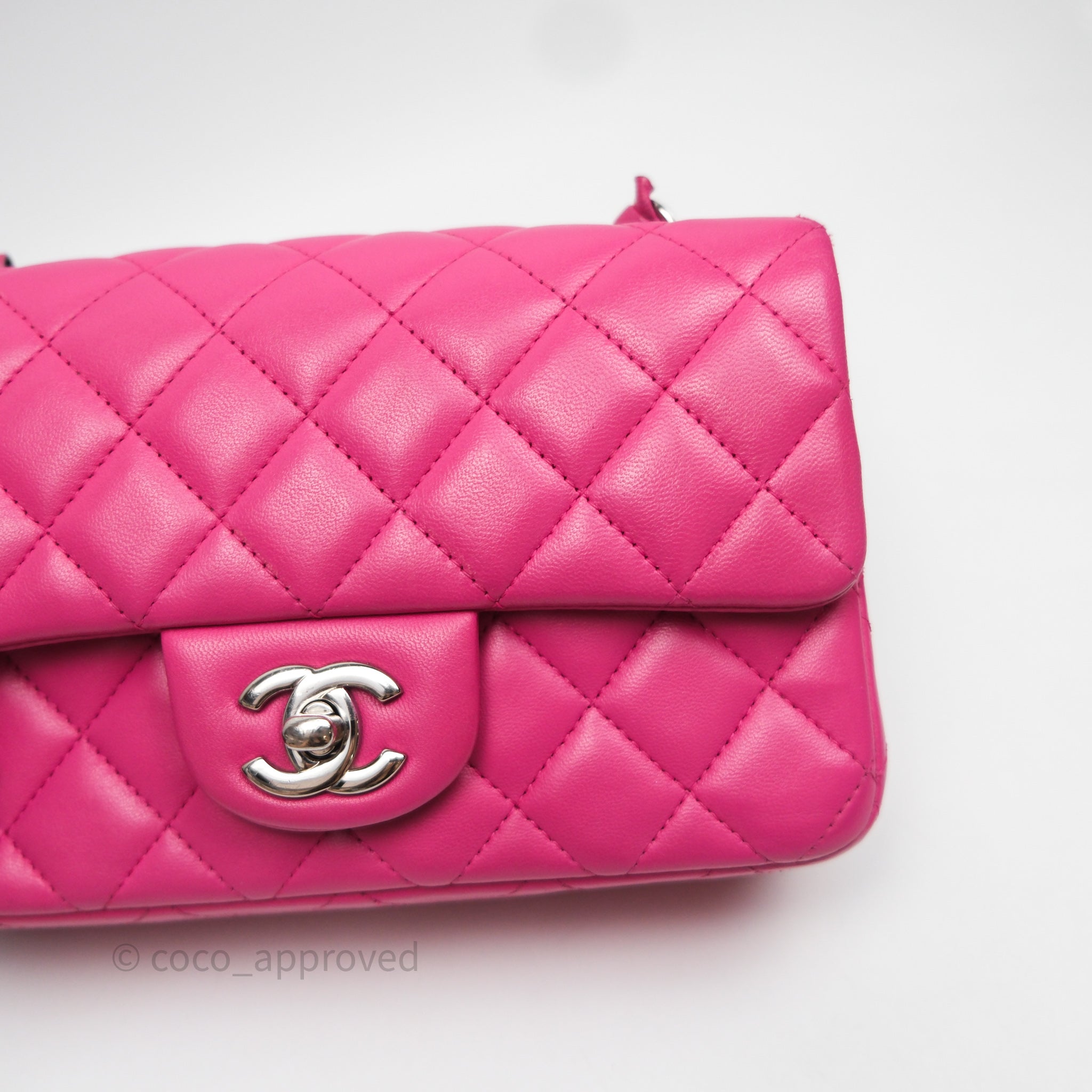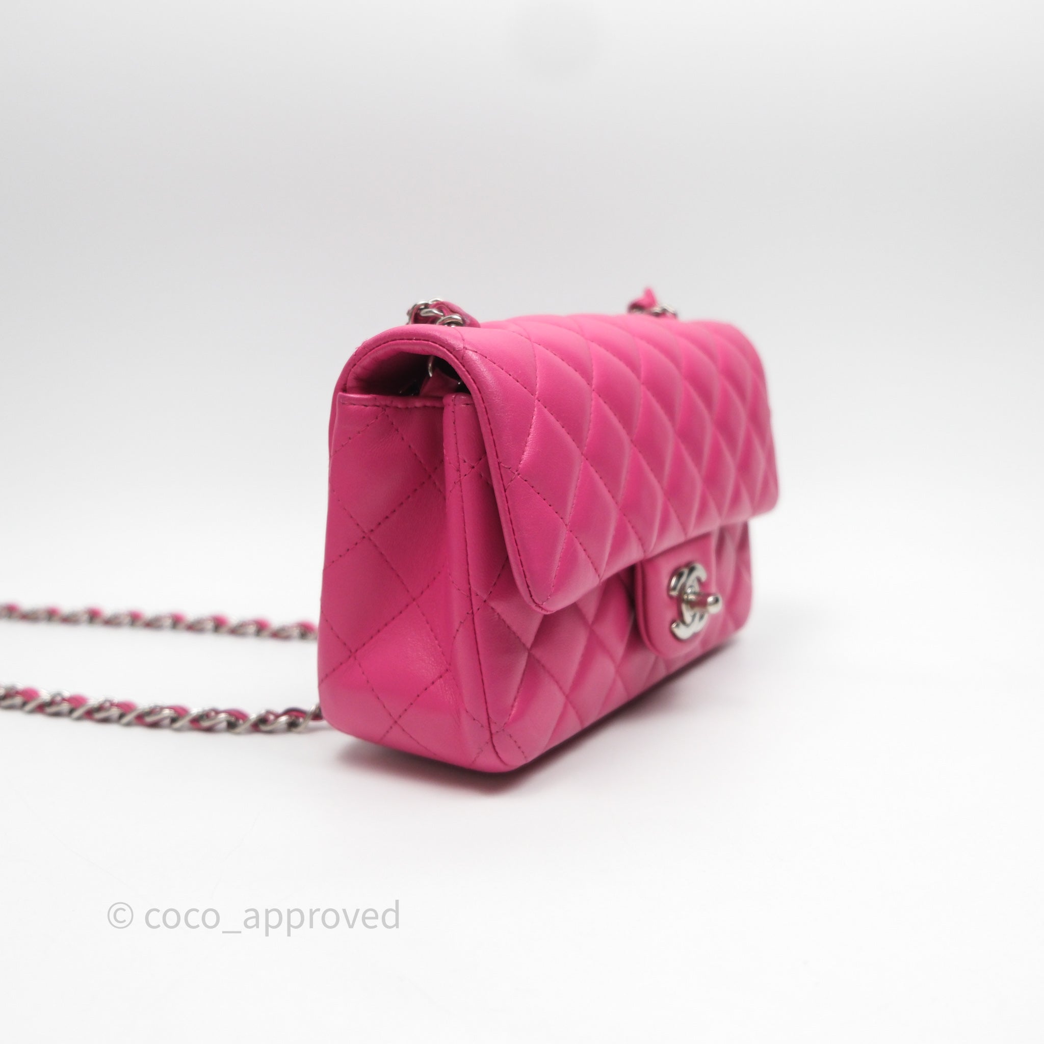 Chanel Mini Rectangular Quilted Dark Pink Lambskin Silver Hardware