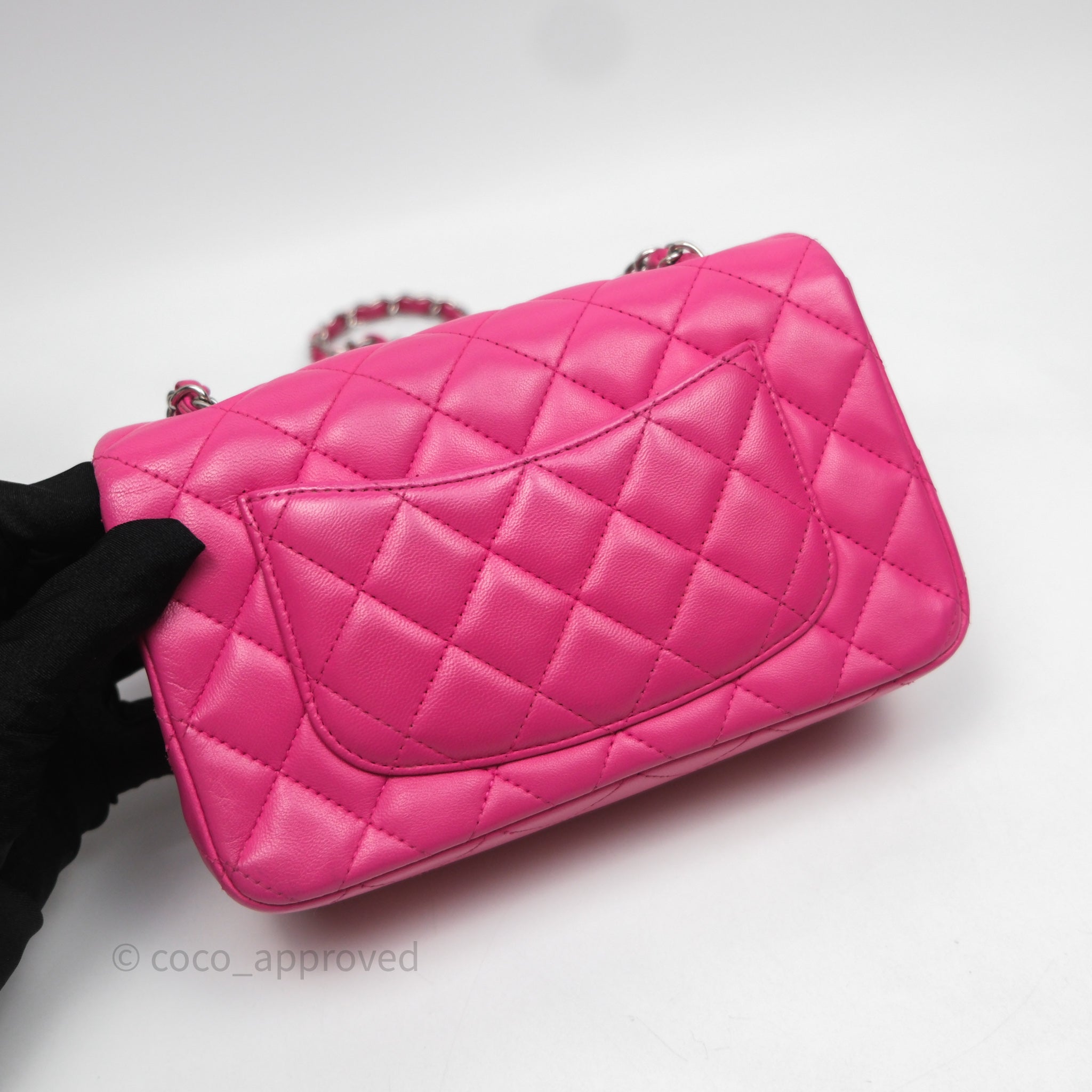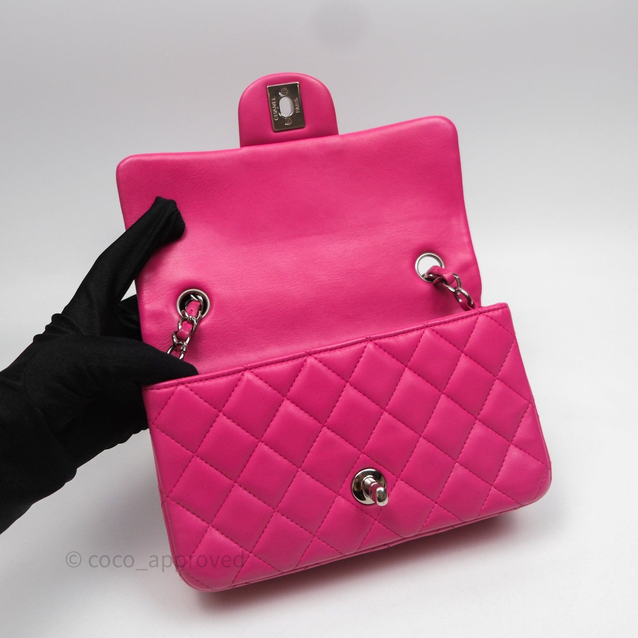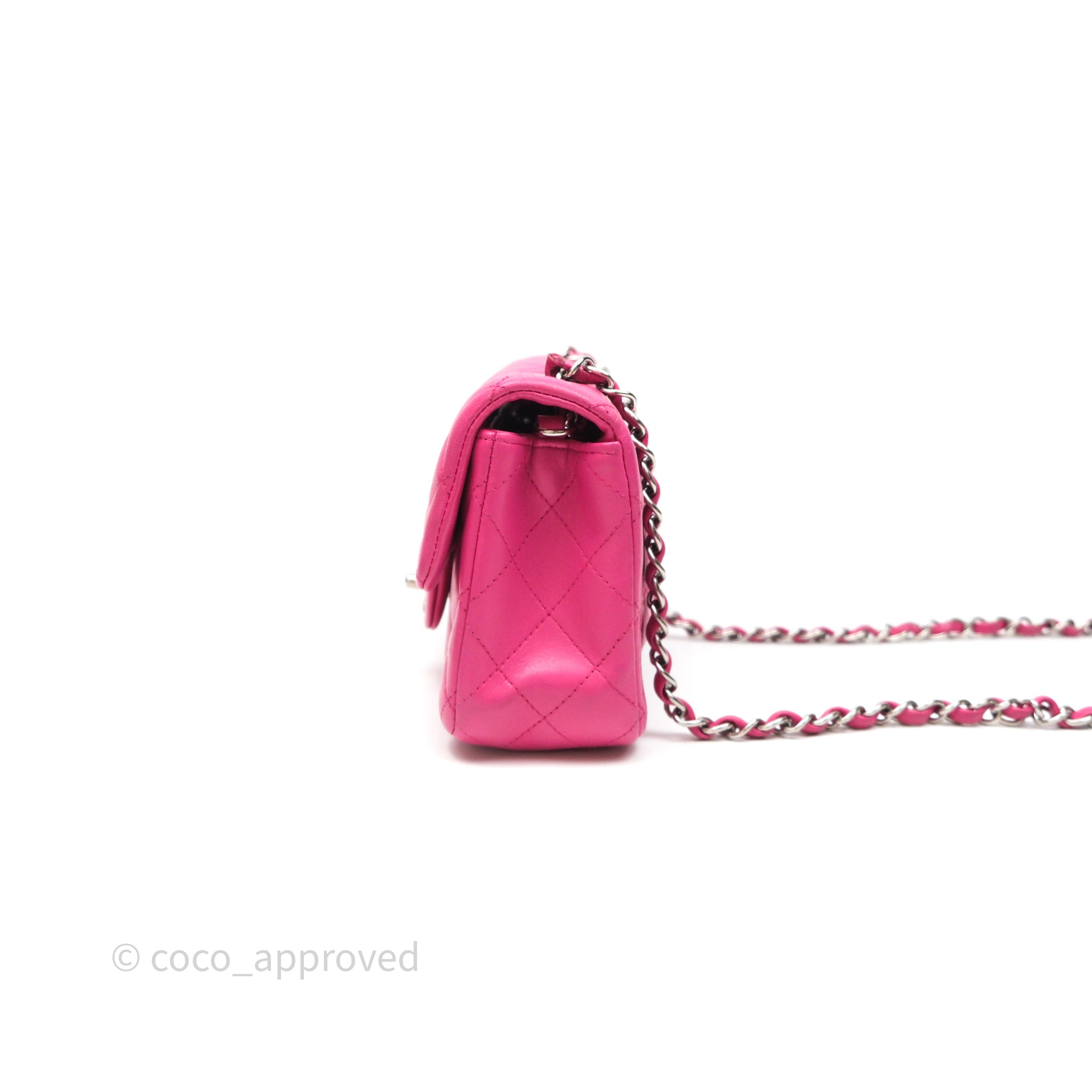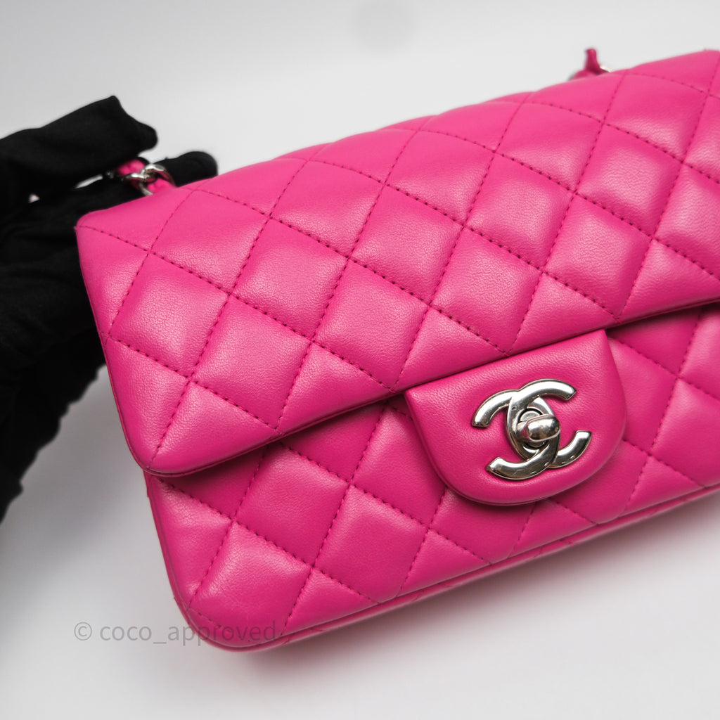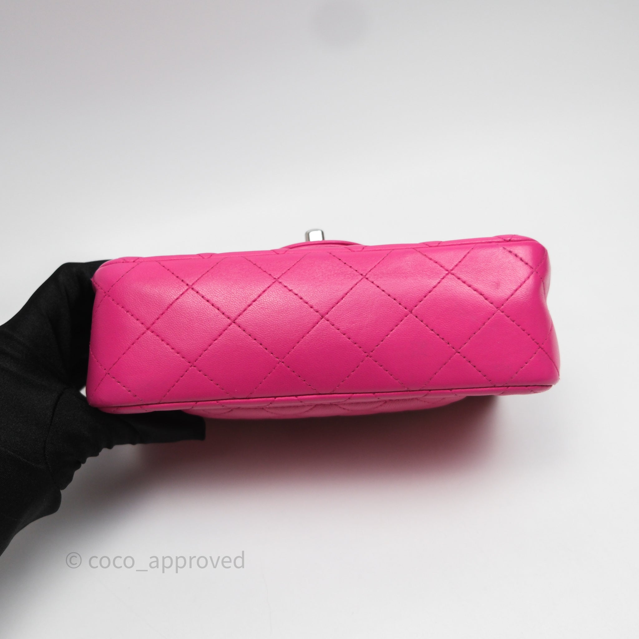 Chanel Mini Rectangular Quilted Dark Pink Lambskin Silver Hardware