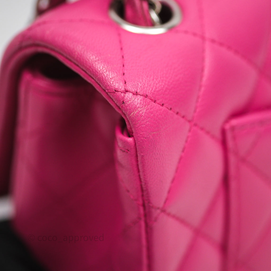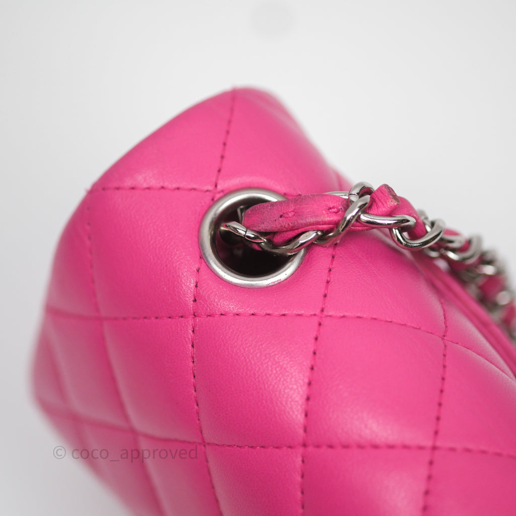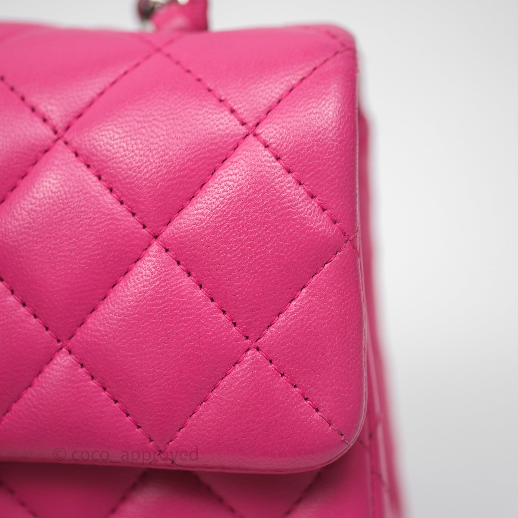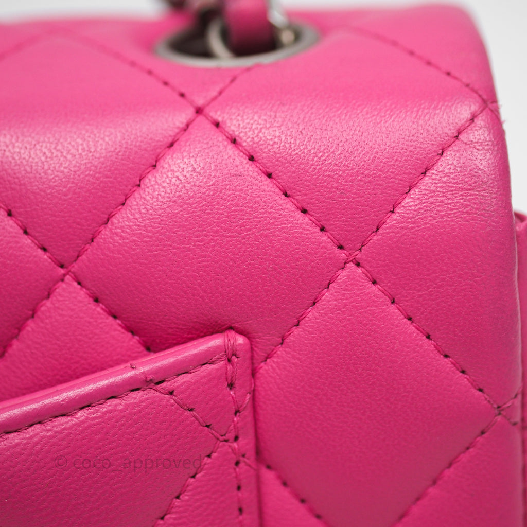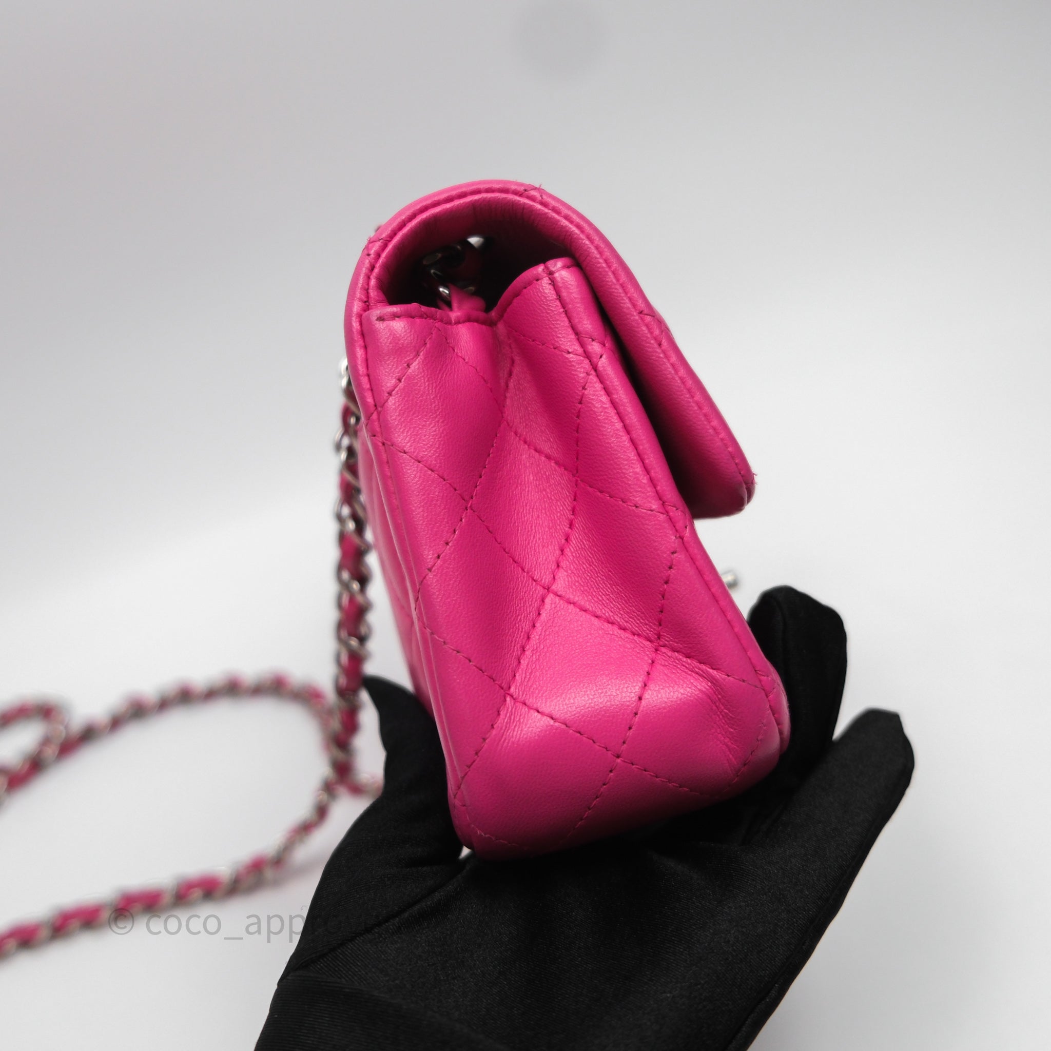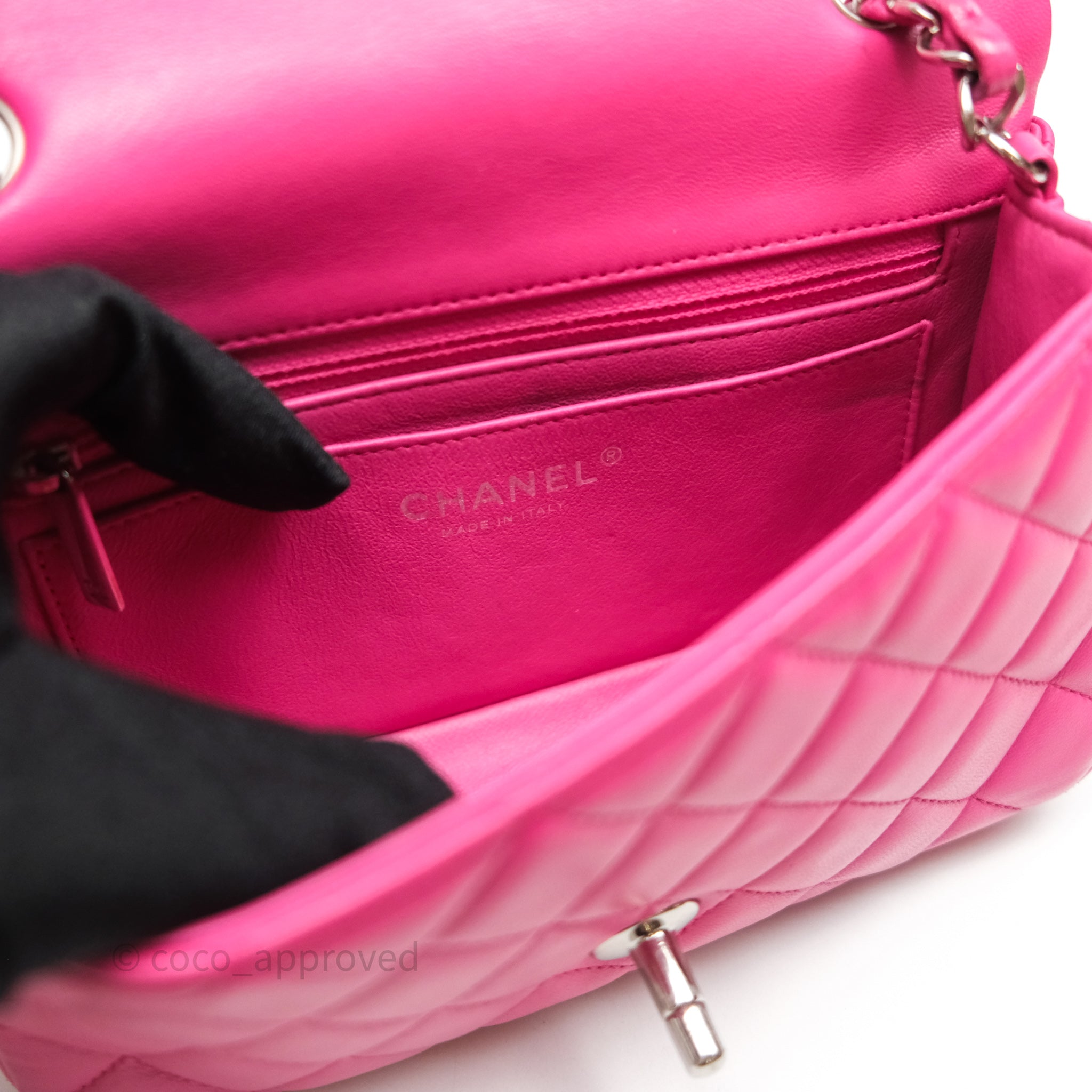 Chanel Mini Rectangular Quilted Dark Pink Lambskin Silver Hardware