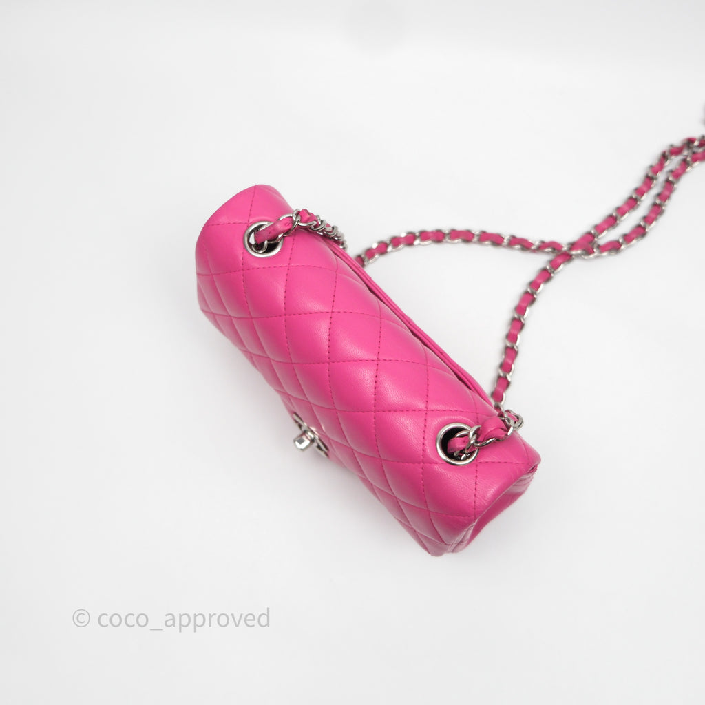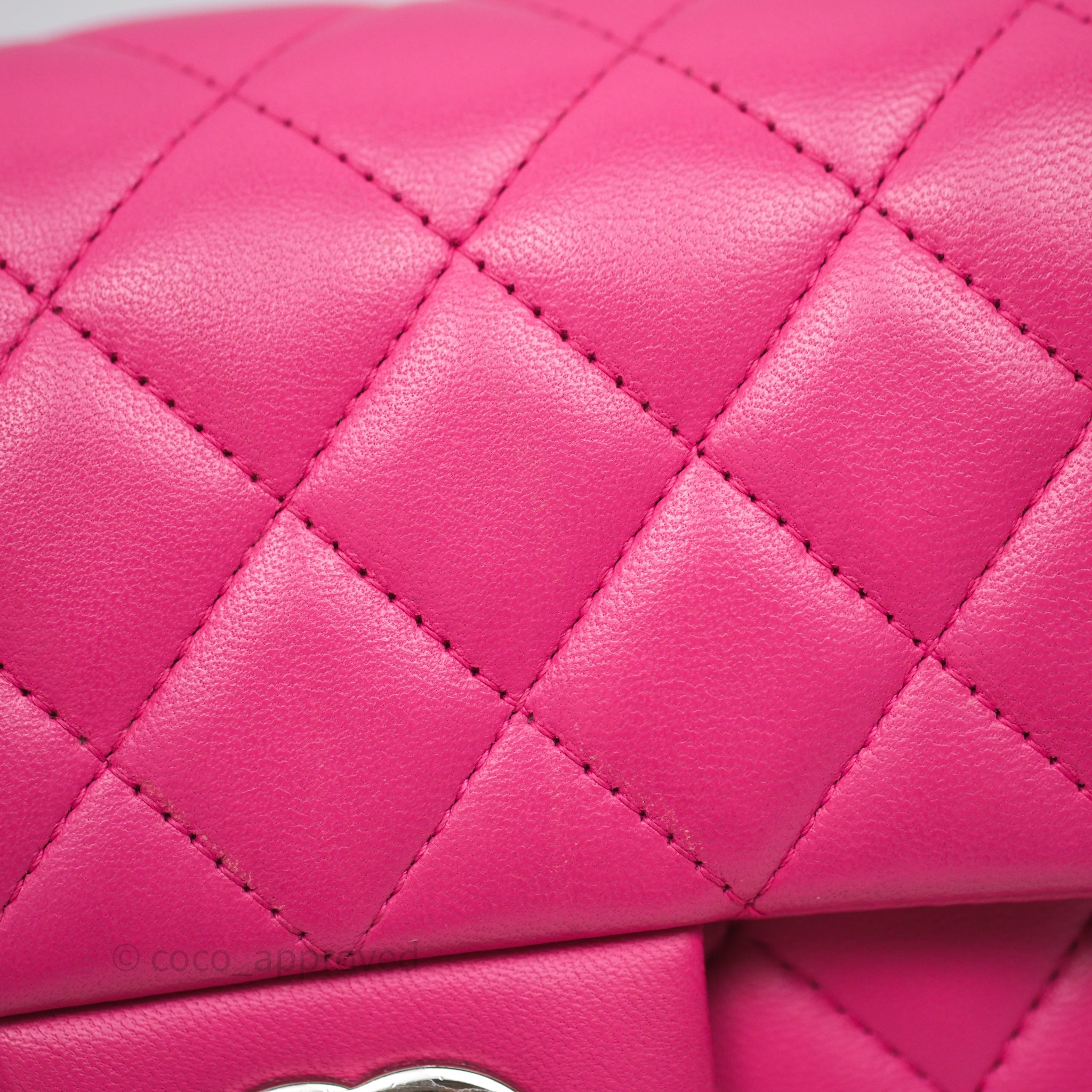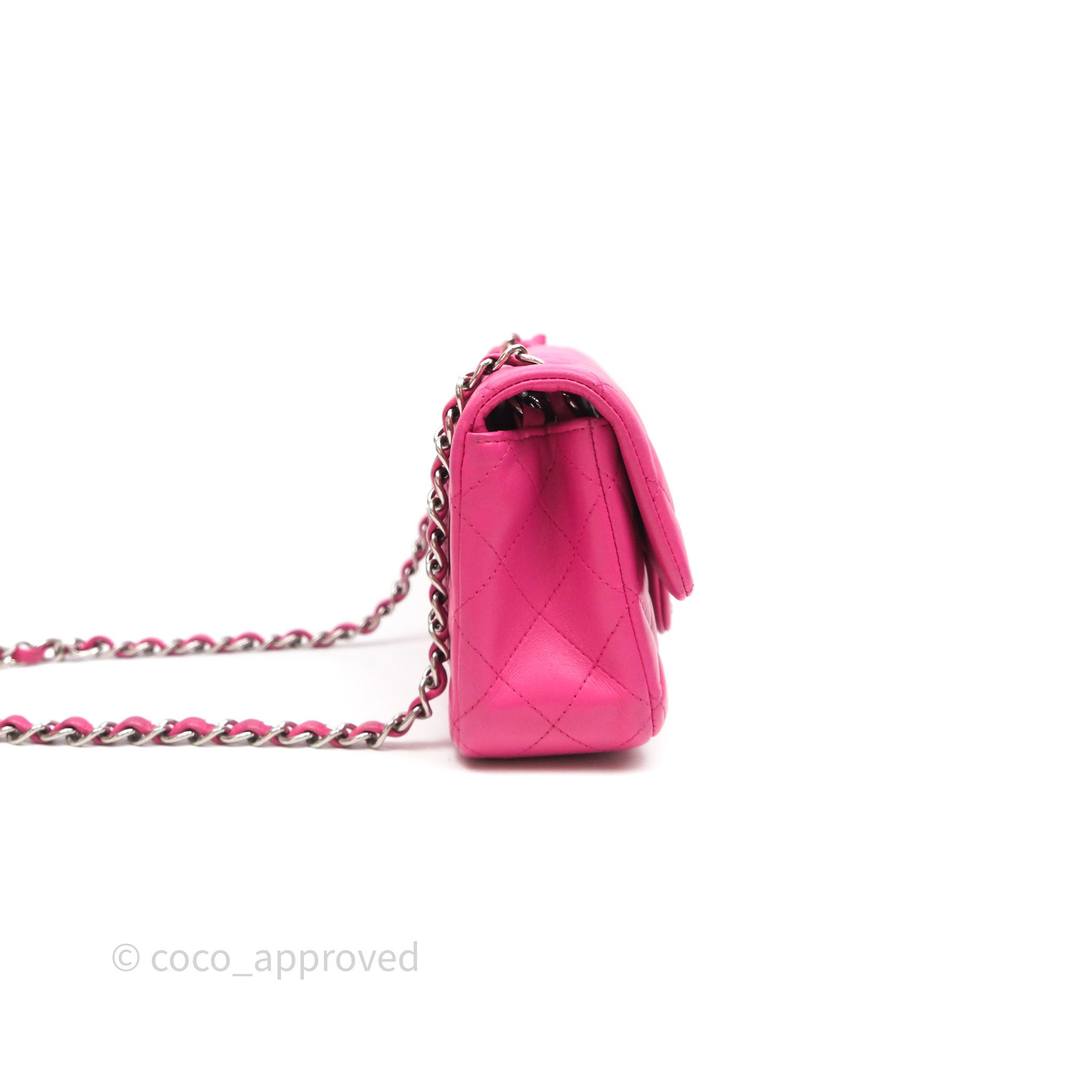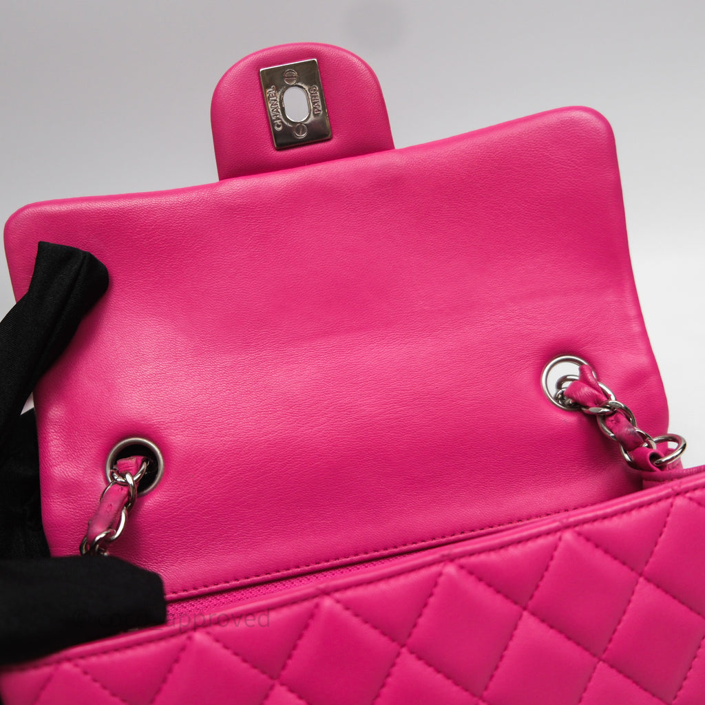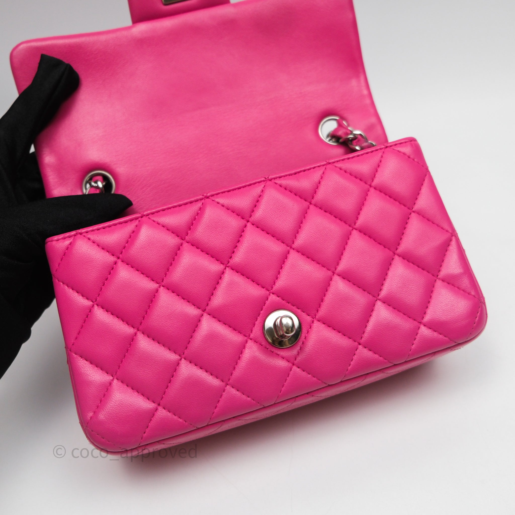 Chanel Mini Rectangular Quilted Dark Pink Lambskin Silver Hardware
