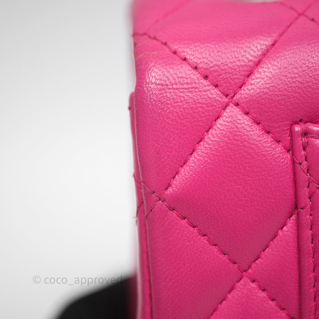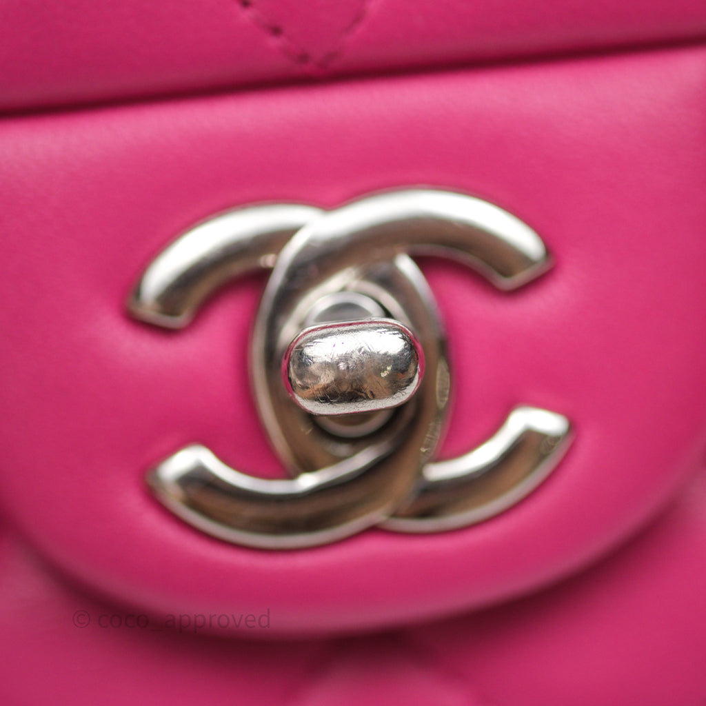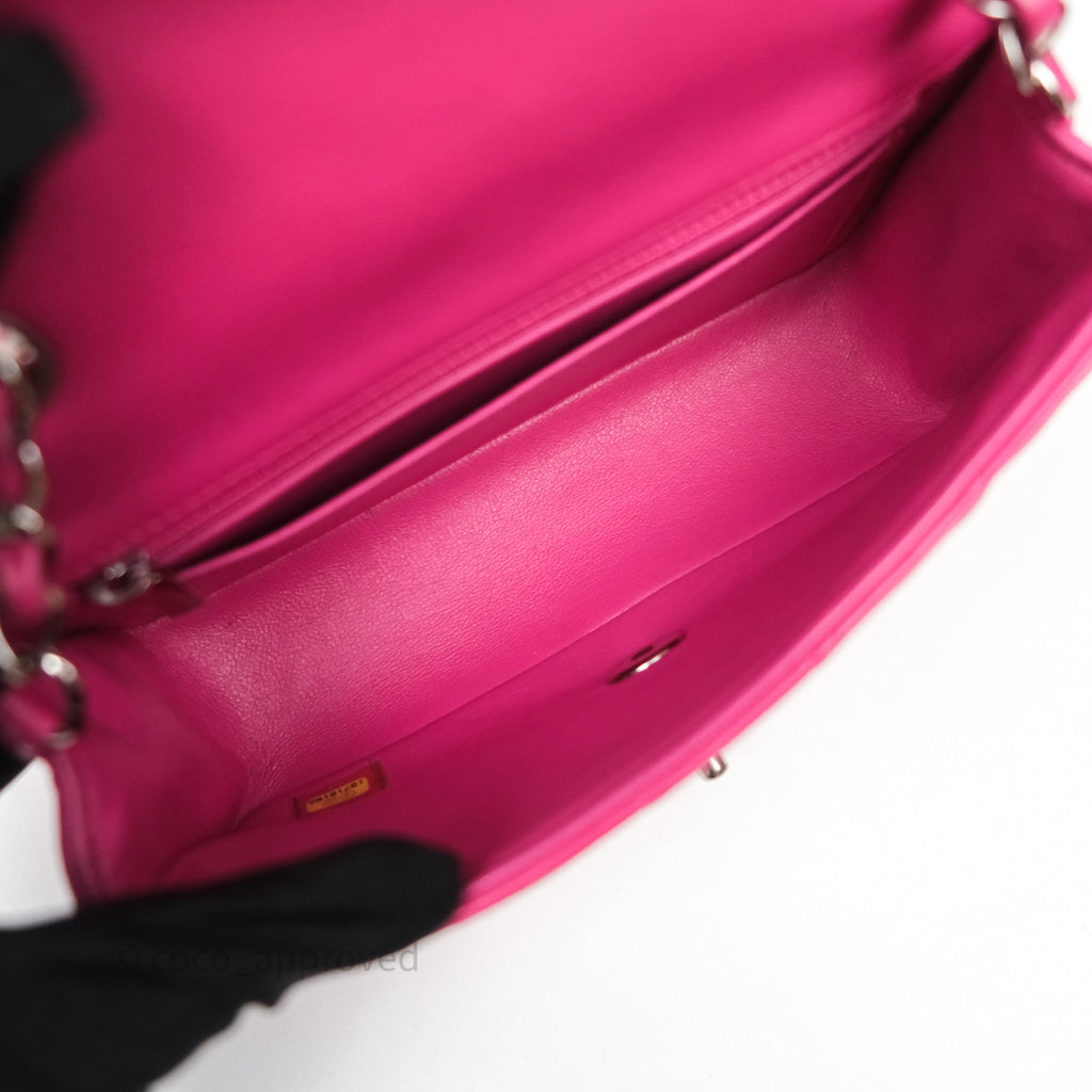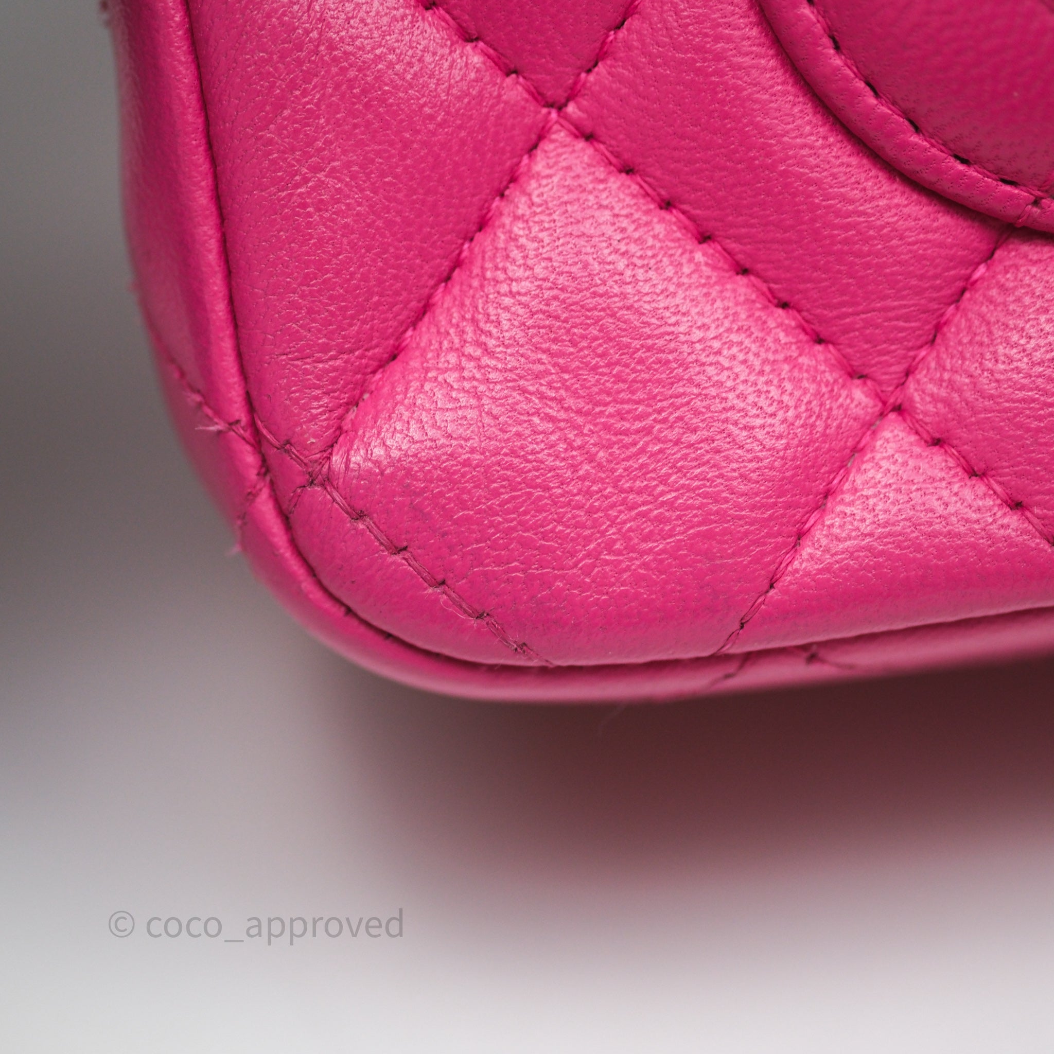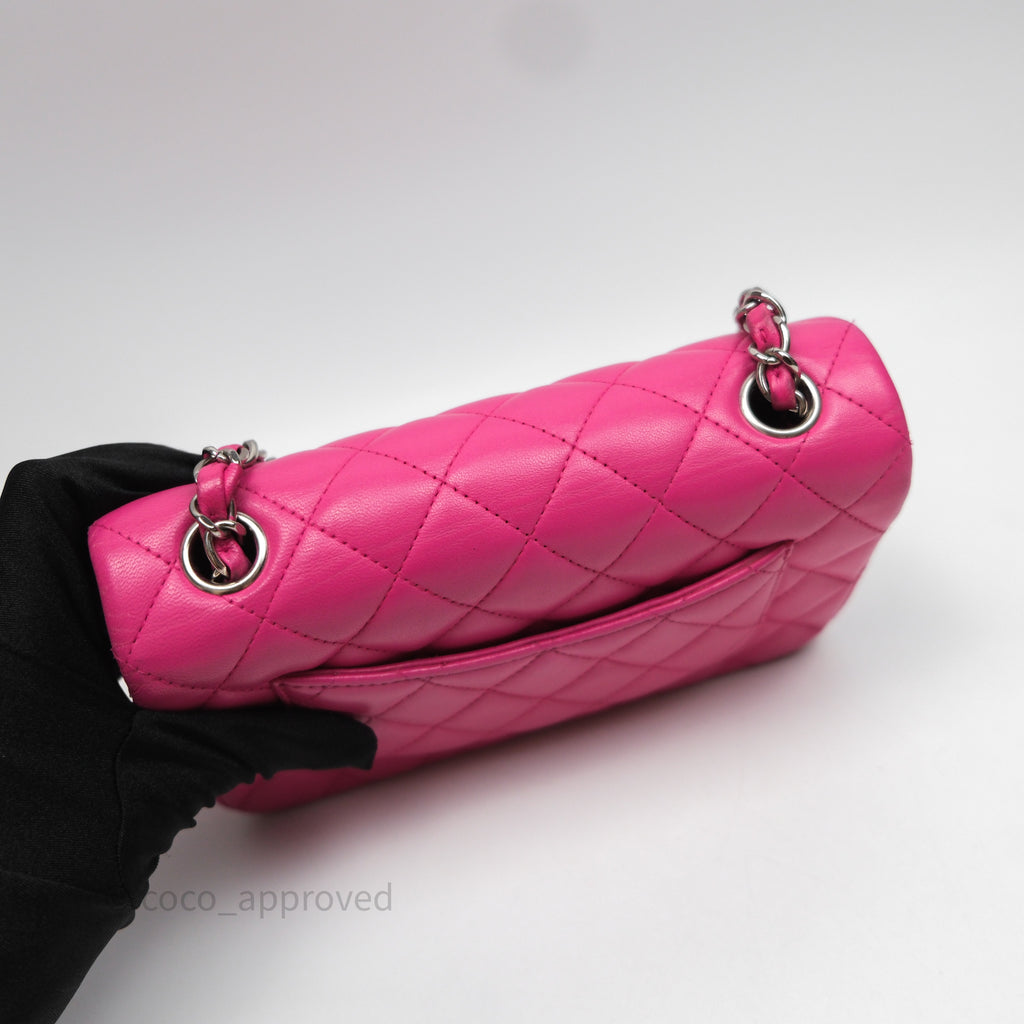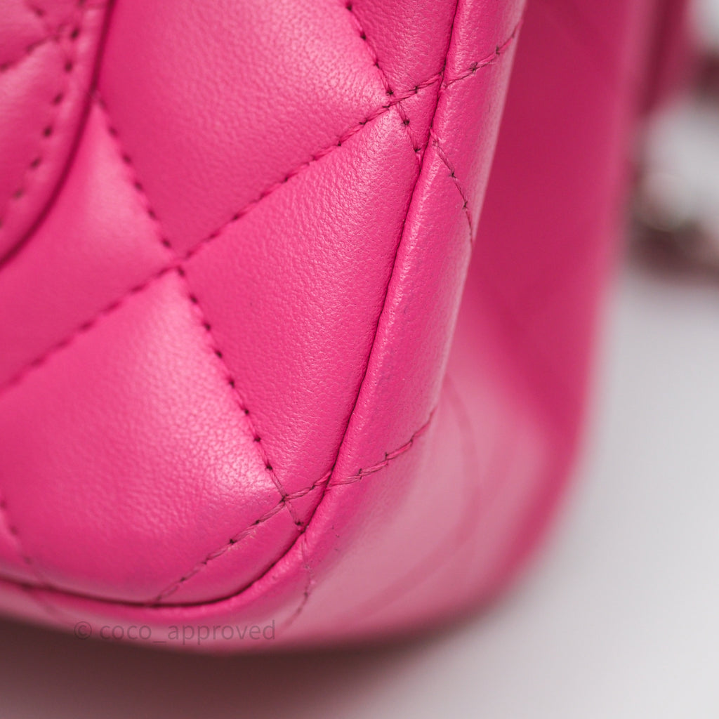 Chanel Mini Rectangular Quilted Dark Pink Lambskin Silver Hardware